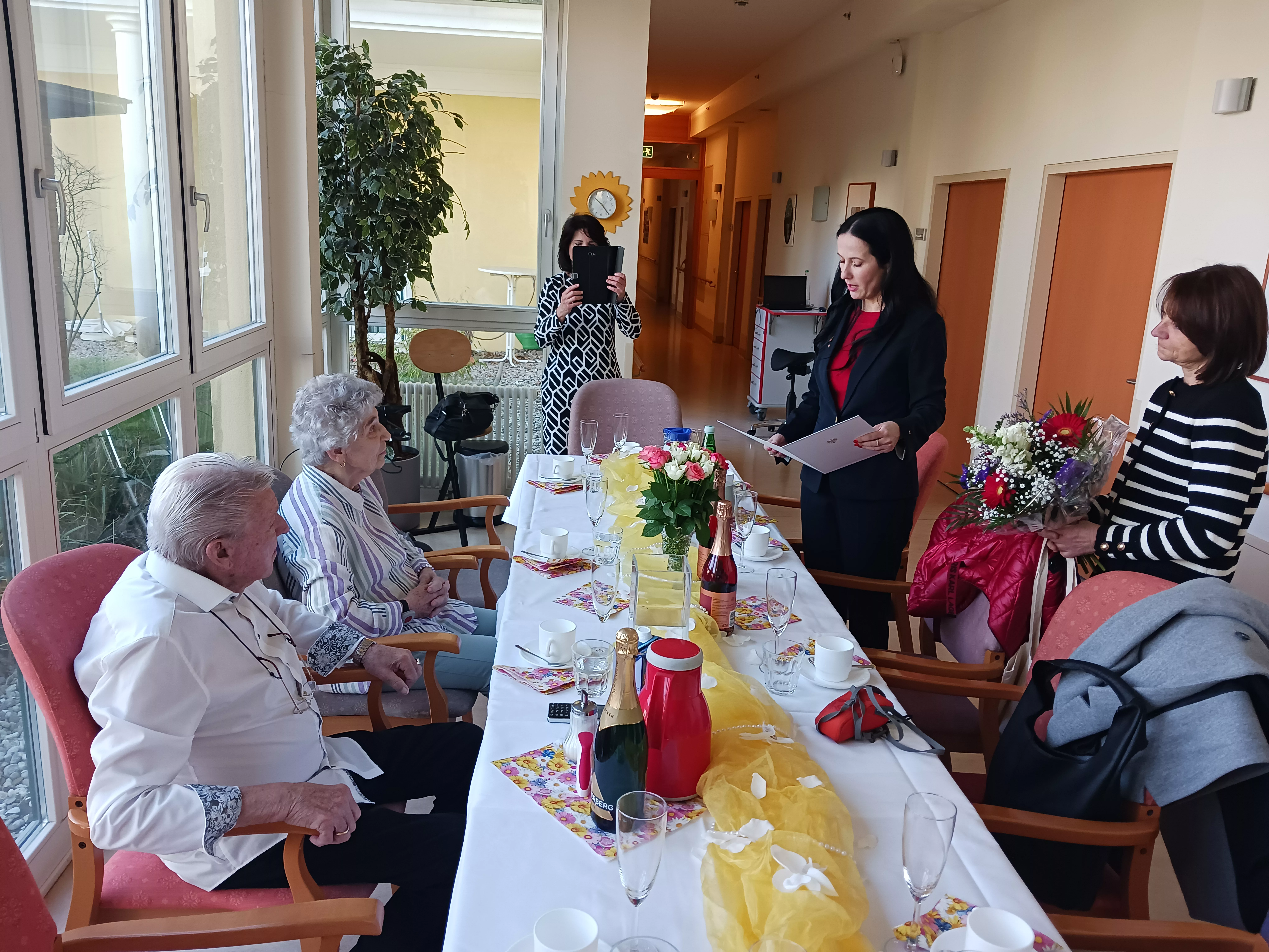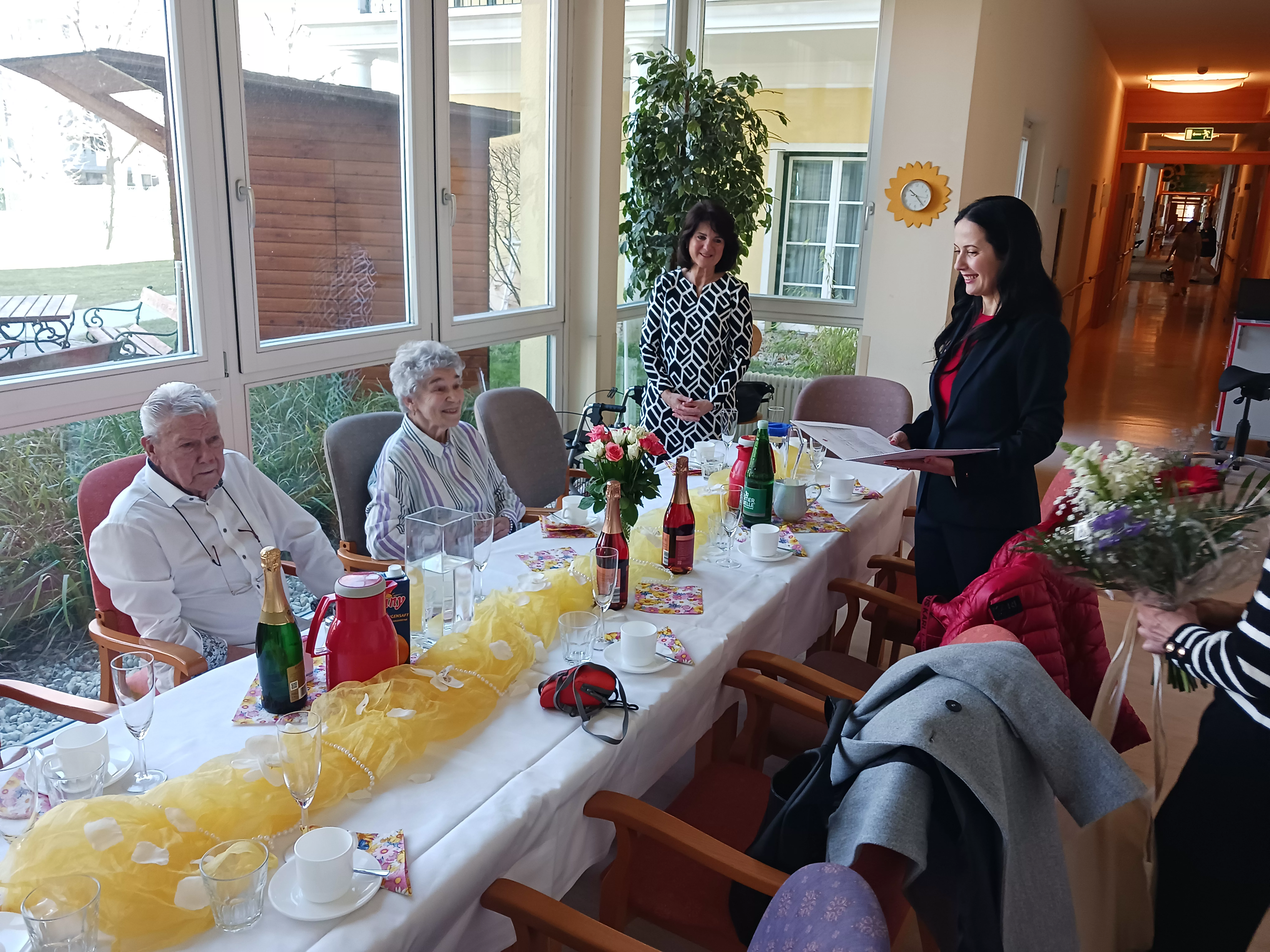 Eine absolute Premiere für unser Haus, Familie Katzensteiner hat es geschafft das erste Paar bei uns im Haus zu sein, das die Eiserne Hochzeit also 65 Jahre Ehe feiern. Wir freuen uns sehr das es geklappt hat das beide bei uns im Haus wohnen und sich sichtlich wohl fühlen und wünschen viele weiter glückliche Jahre zusammen.