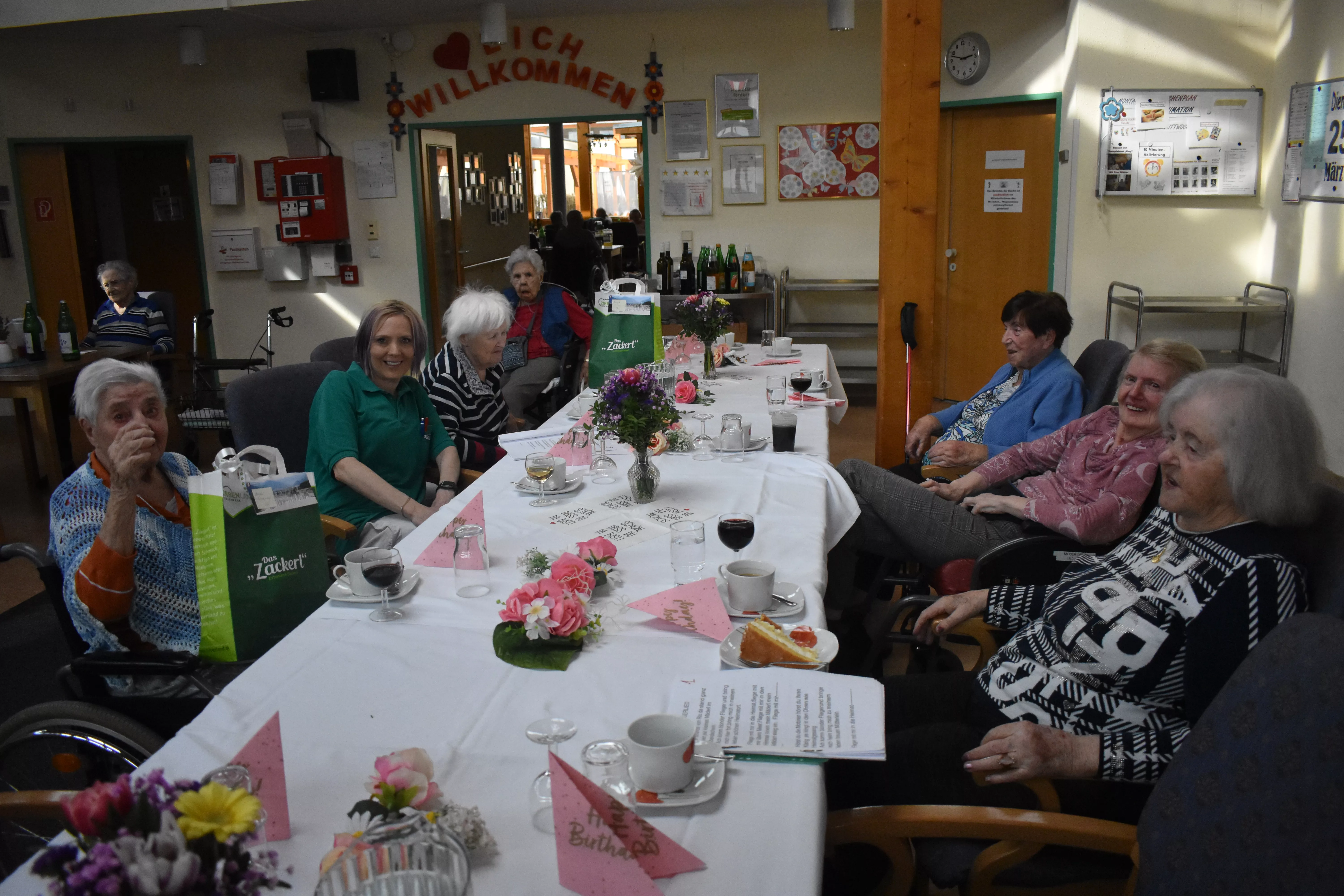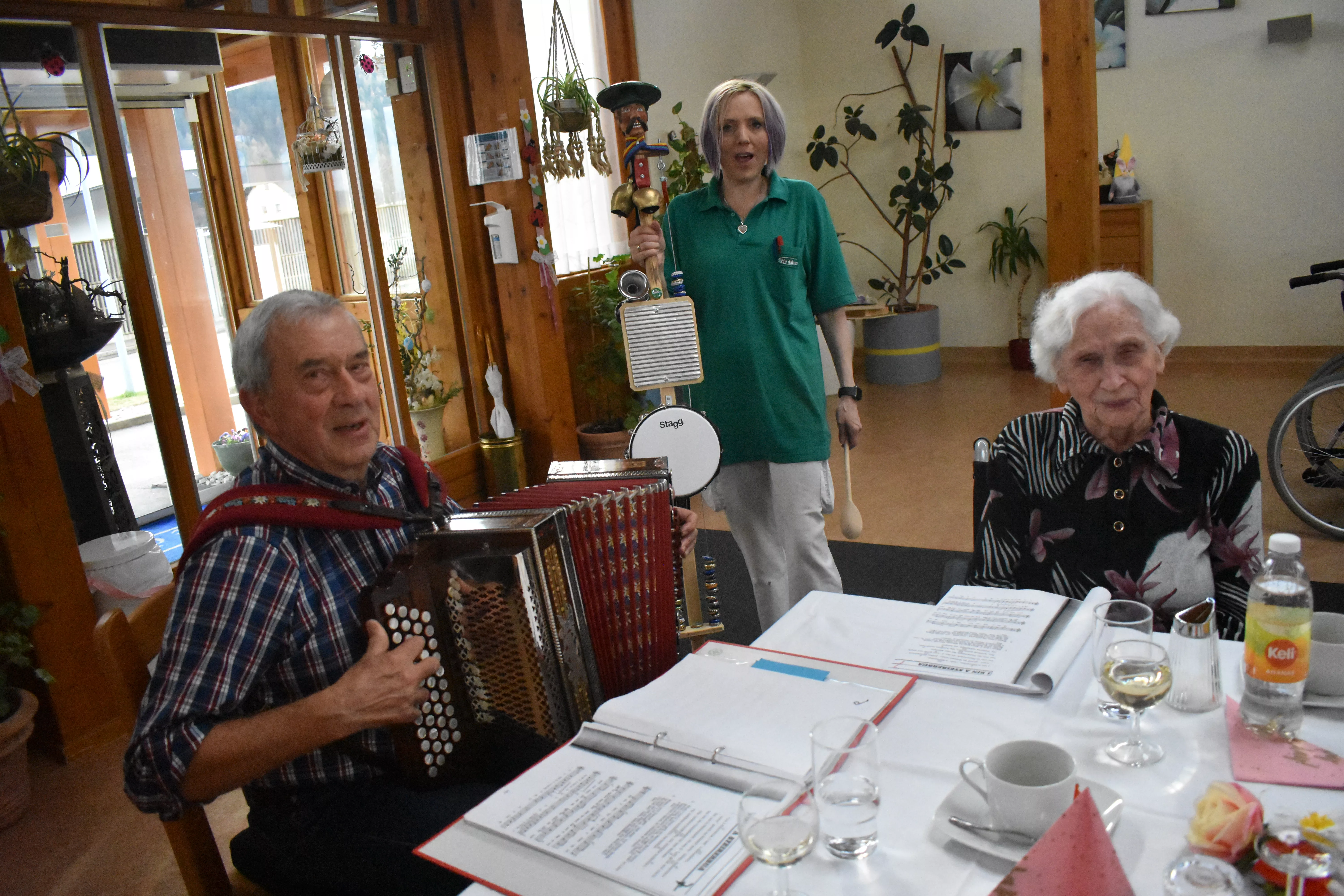 Als älteste Bewohnerin, mit 101 Jahren freute sich Frau Kreuzmayr Anna über den festlich gedeckten Tisch, die köstliche Torte und das Achterl Rotwein. Auch Frau Pichler Margit mit ihren 90 Jahren, Frau Moser Ingeborg 70 Jahre und alle anderen Geburtstagskinder genossen den schwungvollen Nachmittag der von unserem Hausmusikanten „Sunitsch Sepp“ musikalisch umrahmt wurde.