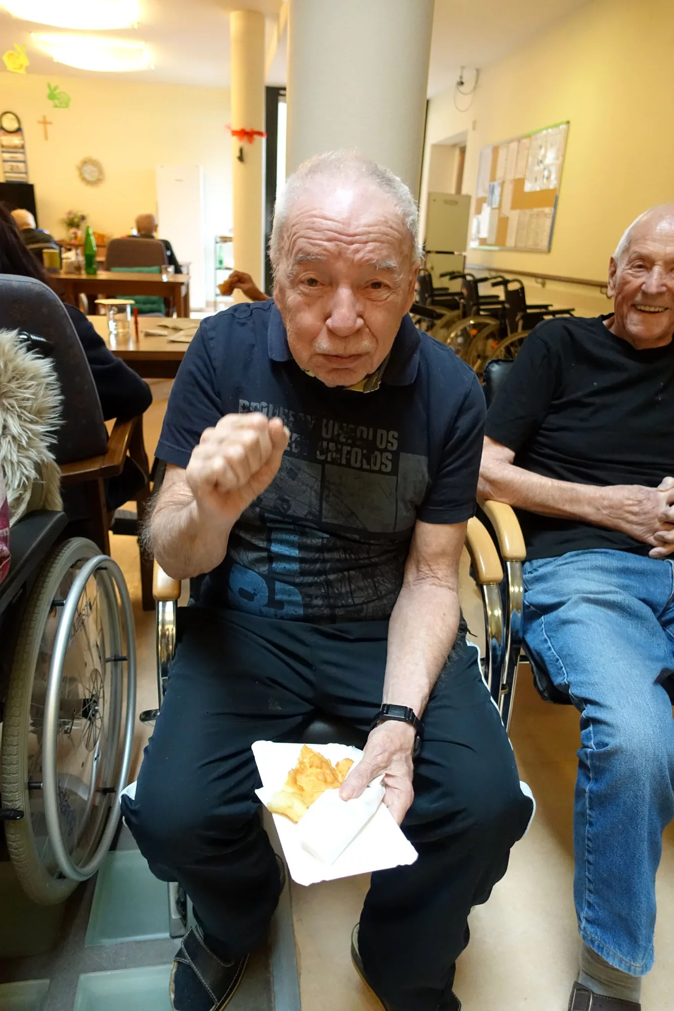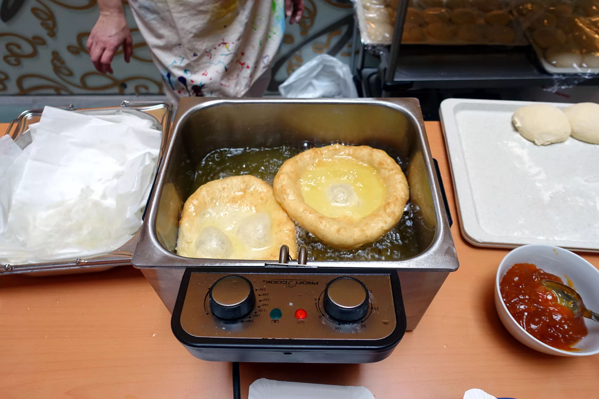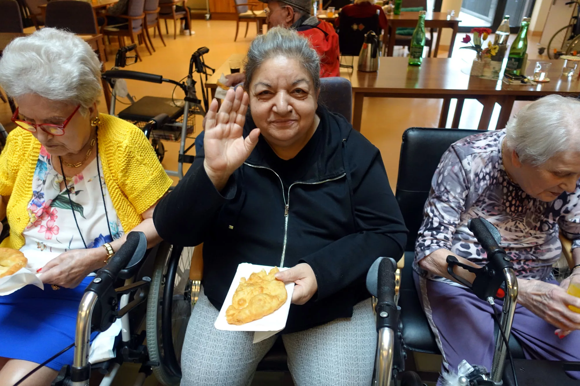 köstliche Langos Die wahrscheinlich besten Langos der Stadt gibt es im „Wie daham…“ Seniorenschlössl Brigittenau, frisch zubereitet nach einem Rezept von Animateurin Branka.
