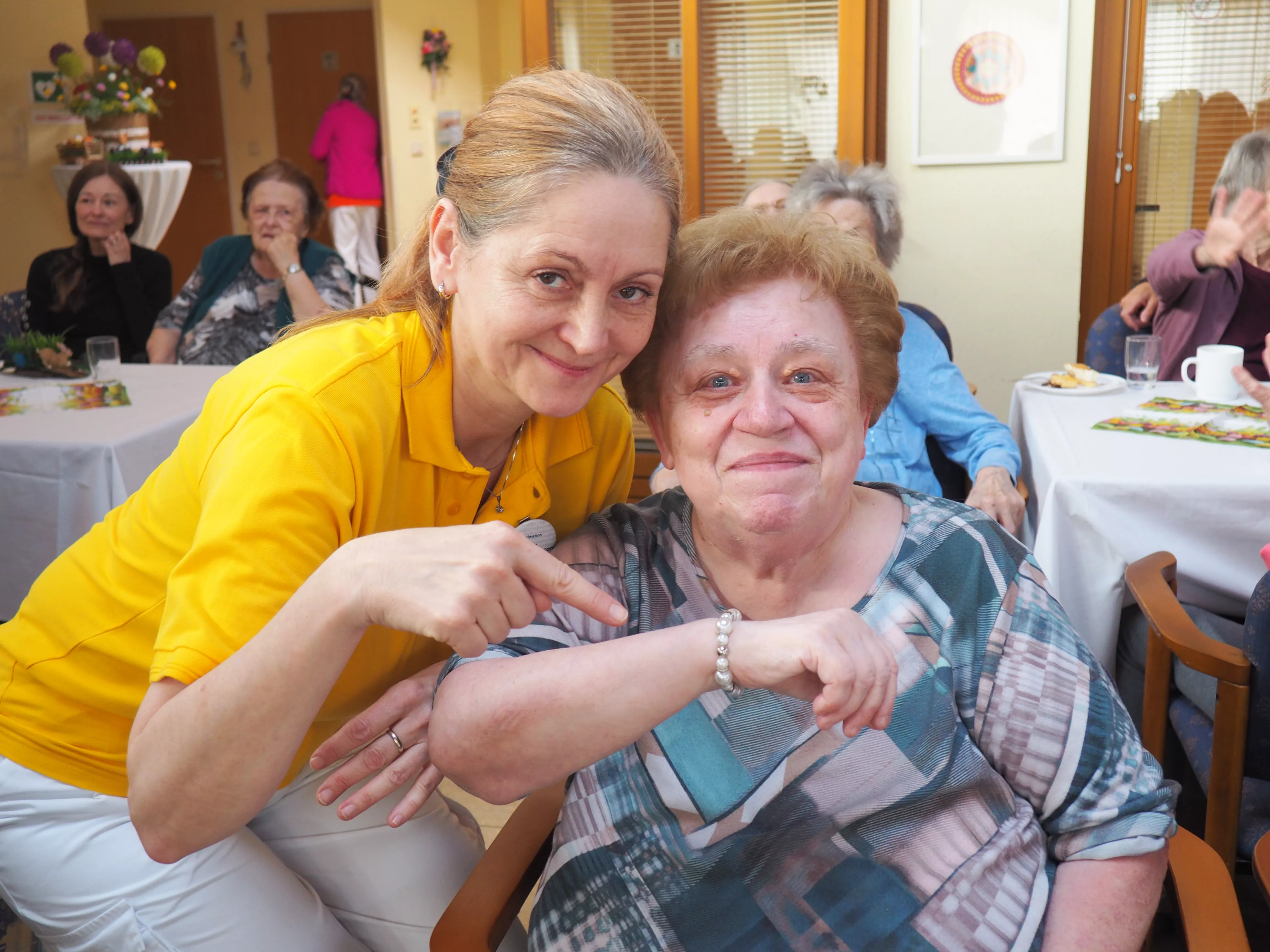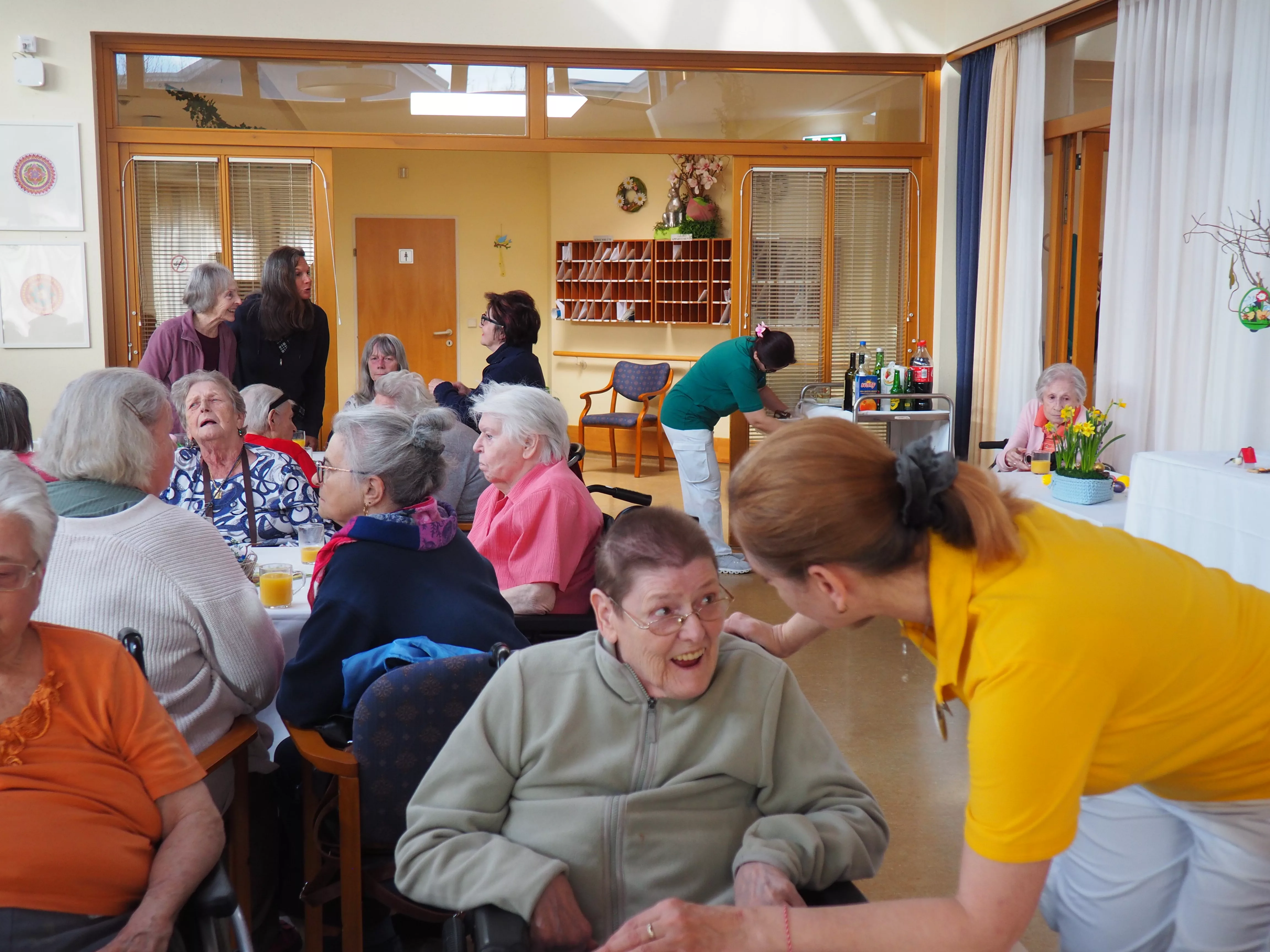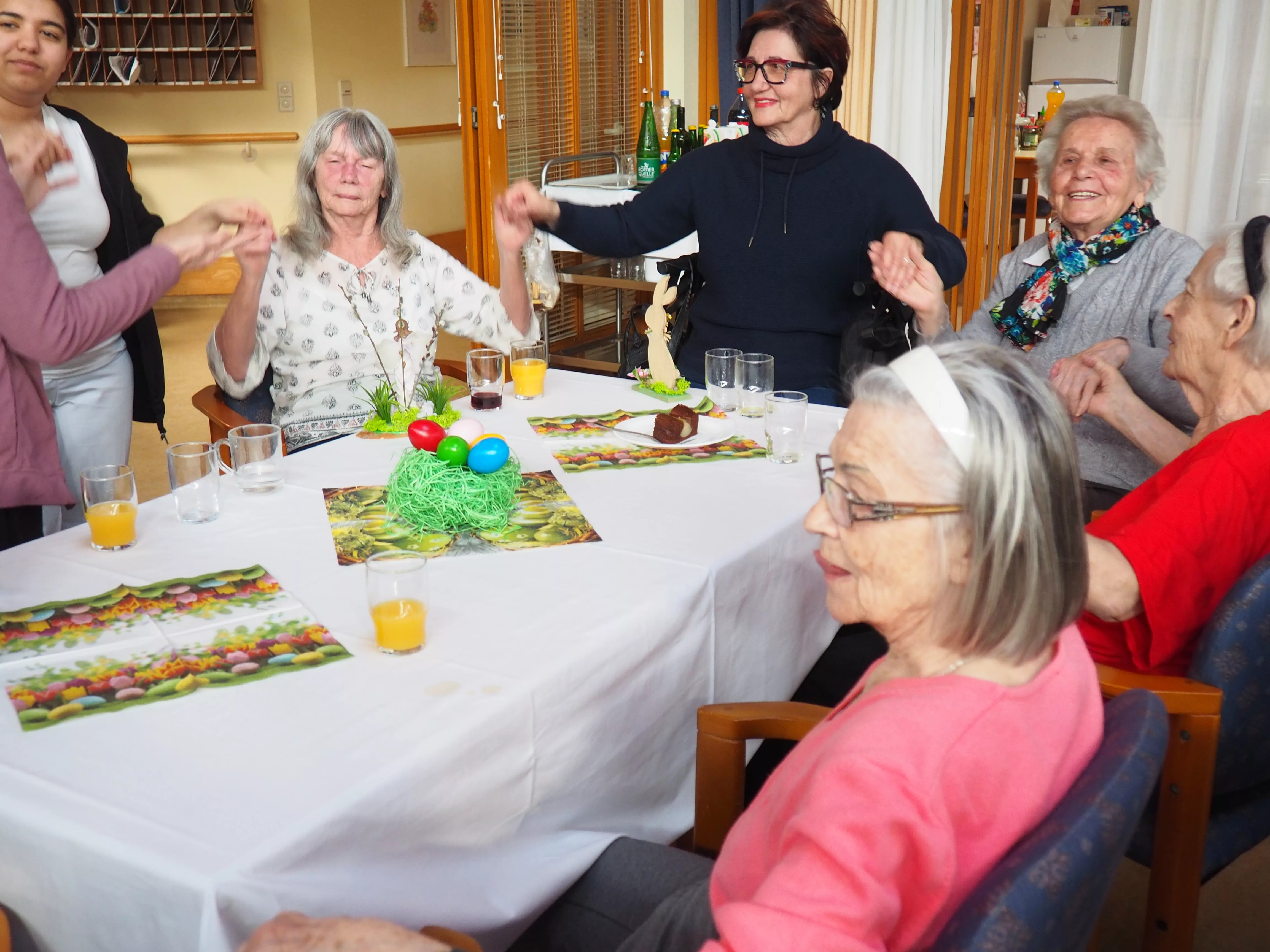 Unser diesjähriger Osterbasar war ein voller Erfolg. Die von den Bewohnerinnen und Bewohnern selbstgebastelten Osterdekorationen wurden vollständig verkauft. Für die musikalische Umrahmung sorgte Herr Djordje Davidovic mit seinem Akkordeon, womit er den Bewohnerinnen und Bewohnern sowie den Gästen einen Tanz aufzwang.