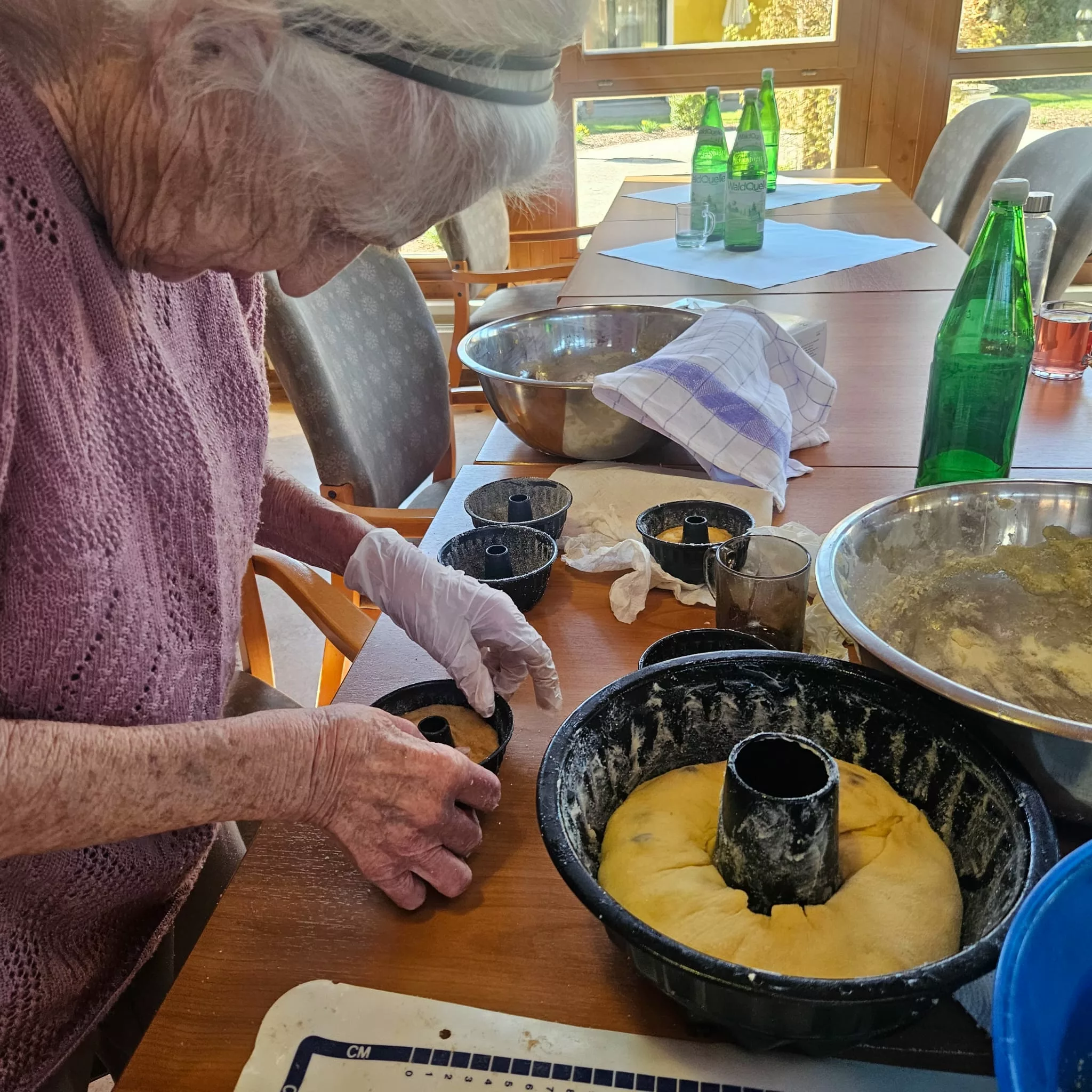 In liebevoller Handarbeit haben unsere Bewohnerinnen und Bewohner im Pflegeheim gemeinsam Reindling gebacken – einen traditionellen, süßen Germteigkuchen mit Zimt, Zucker, Rosinen und Nüssen, wie er in vielen Regionen Österreichs zu Ostern gehört.