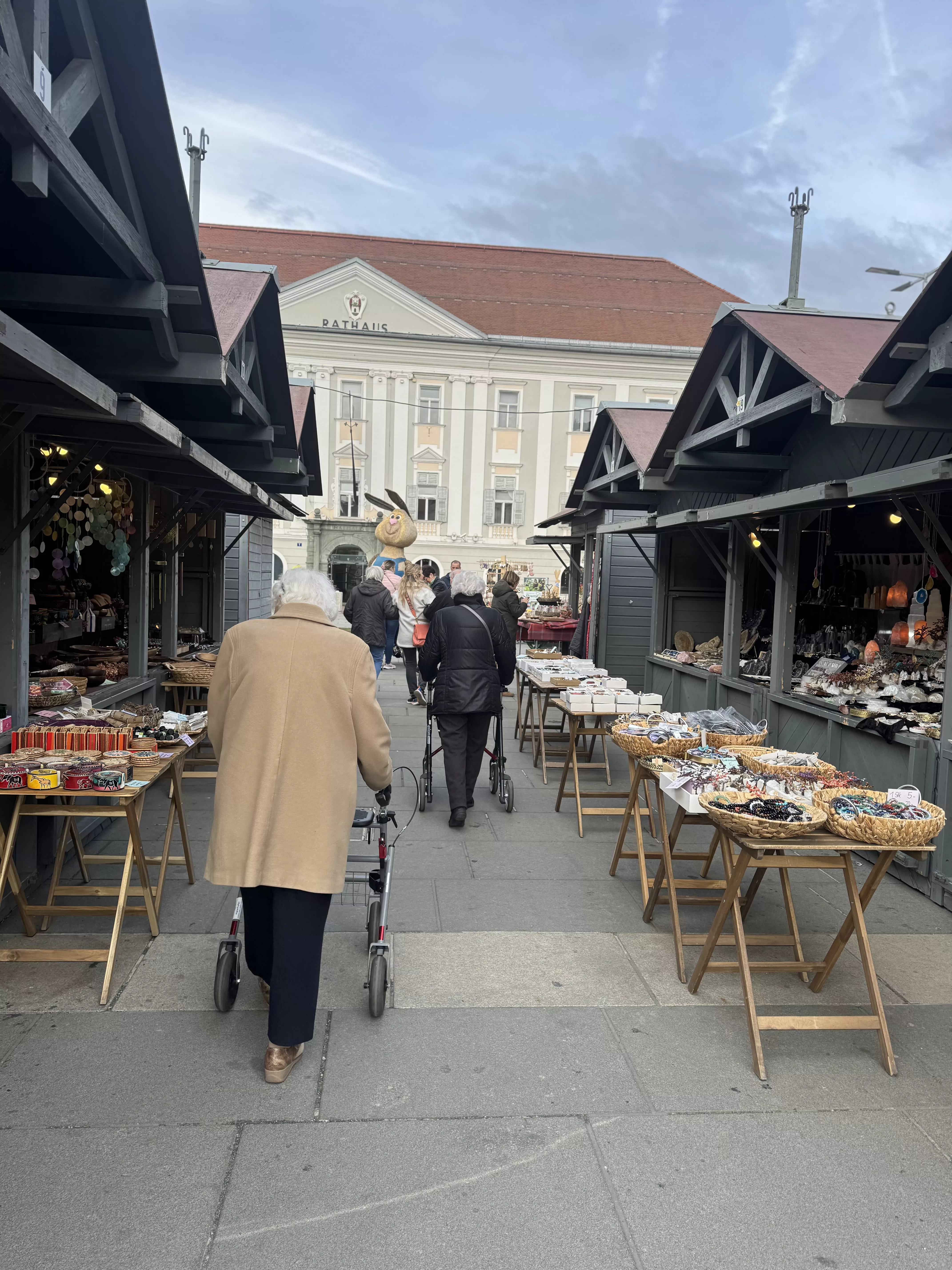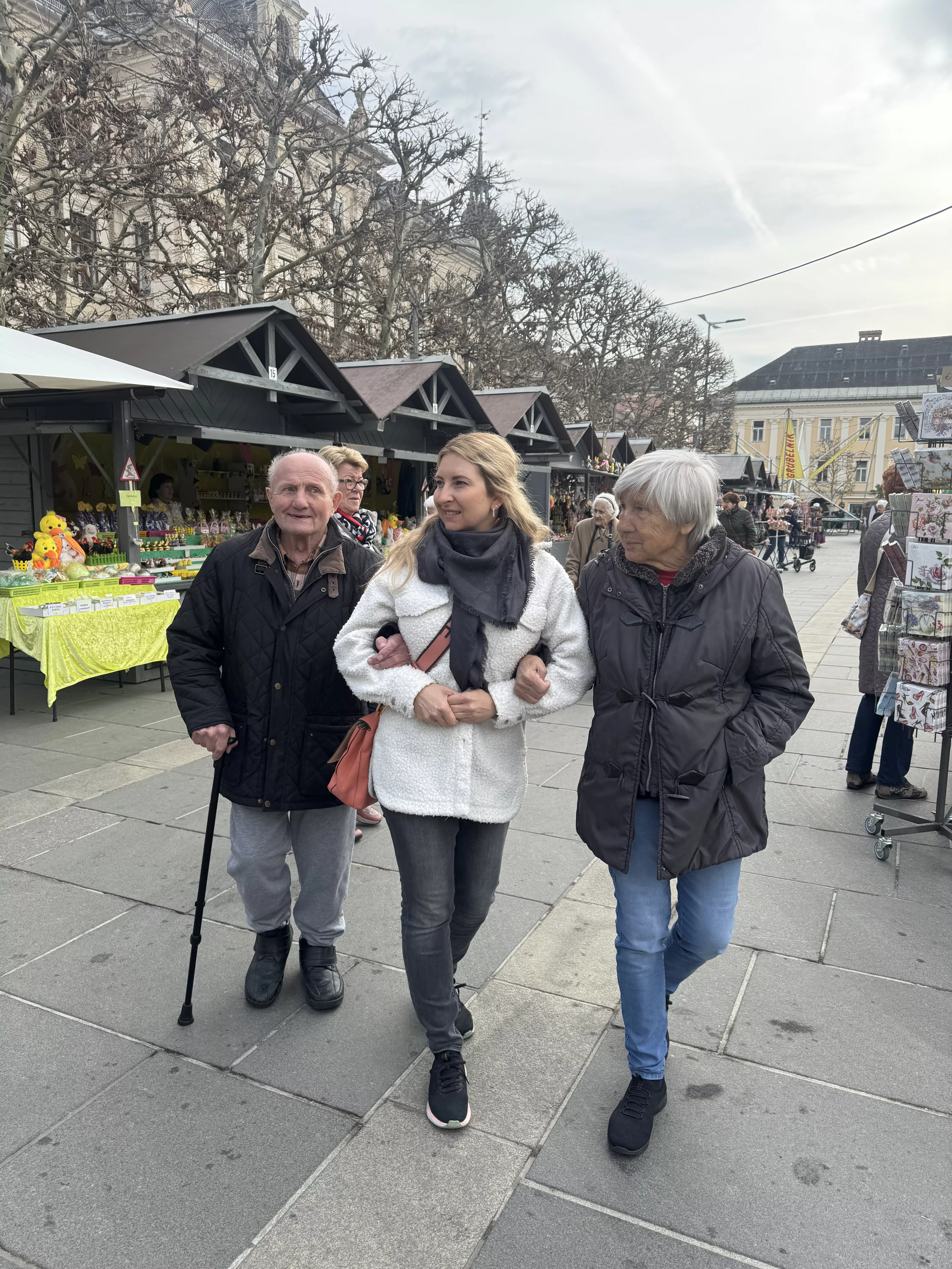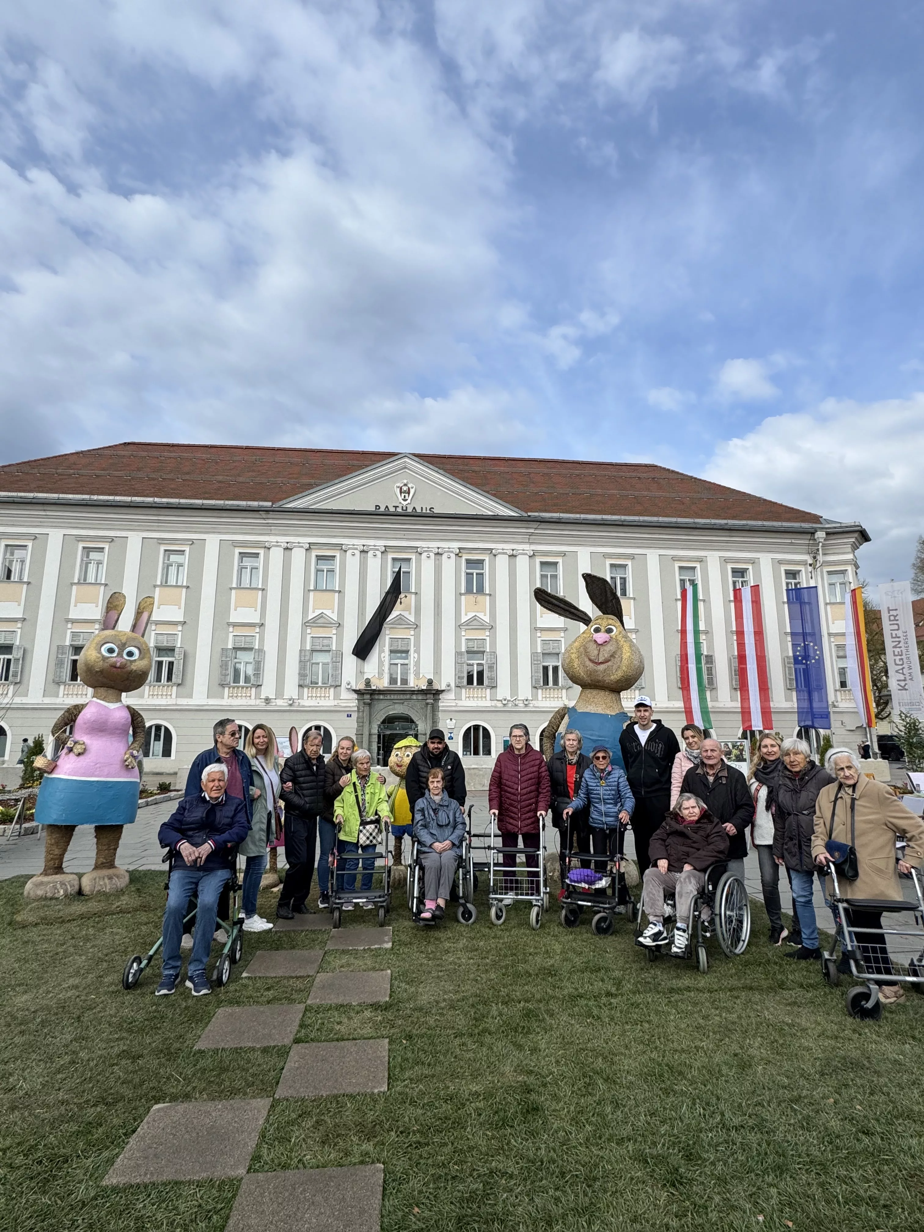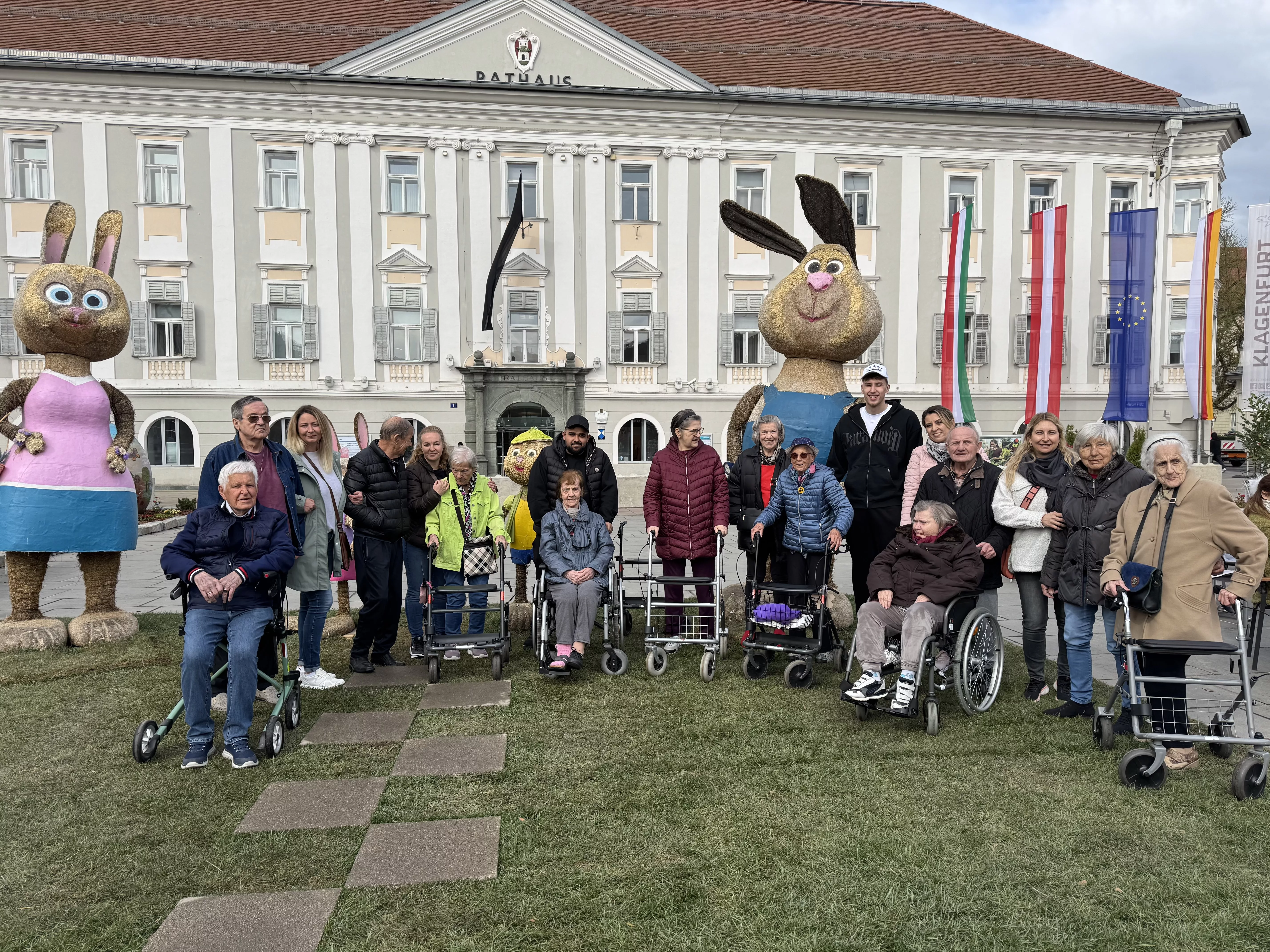 Bei frühlingshaftem Wetter durften wir am Vormittag gemeinsam mit einigen unserer Bewohnerinnen einen schönen Ausflug zum Ostermarkt unternehmen, wo wir auch die Bewohnerinnen und Bewohner des Pflegeheims in Waidmannsdorf trafen, gemeinsam etwas naschten und einen Kaffee in der Sonne genossen. Zwischen bunt geschmückten Ständen, handgefertigten Dekorationen und dem Duft von frischem Gebäck genossen wir die festliche Atmosphäre in vollen Zügen. Die fröhlichen Gespräche, das gemeinsame Staunen über kunstvolle Osterdekorationen und kleine kulinarische Köstlichkeiten machten diesen Vormittag zu einem besonderen Erlebnis.