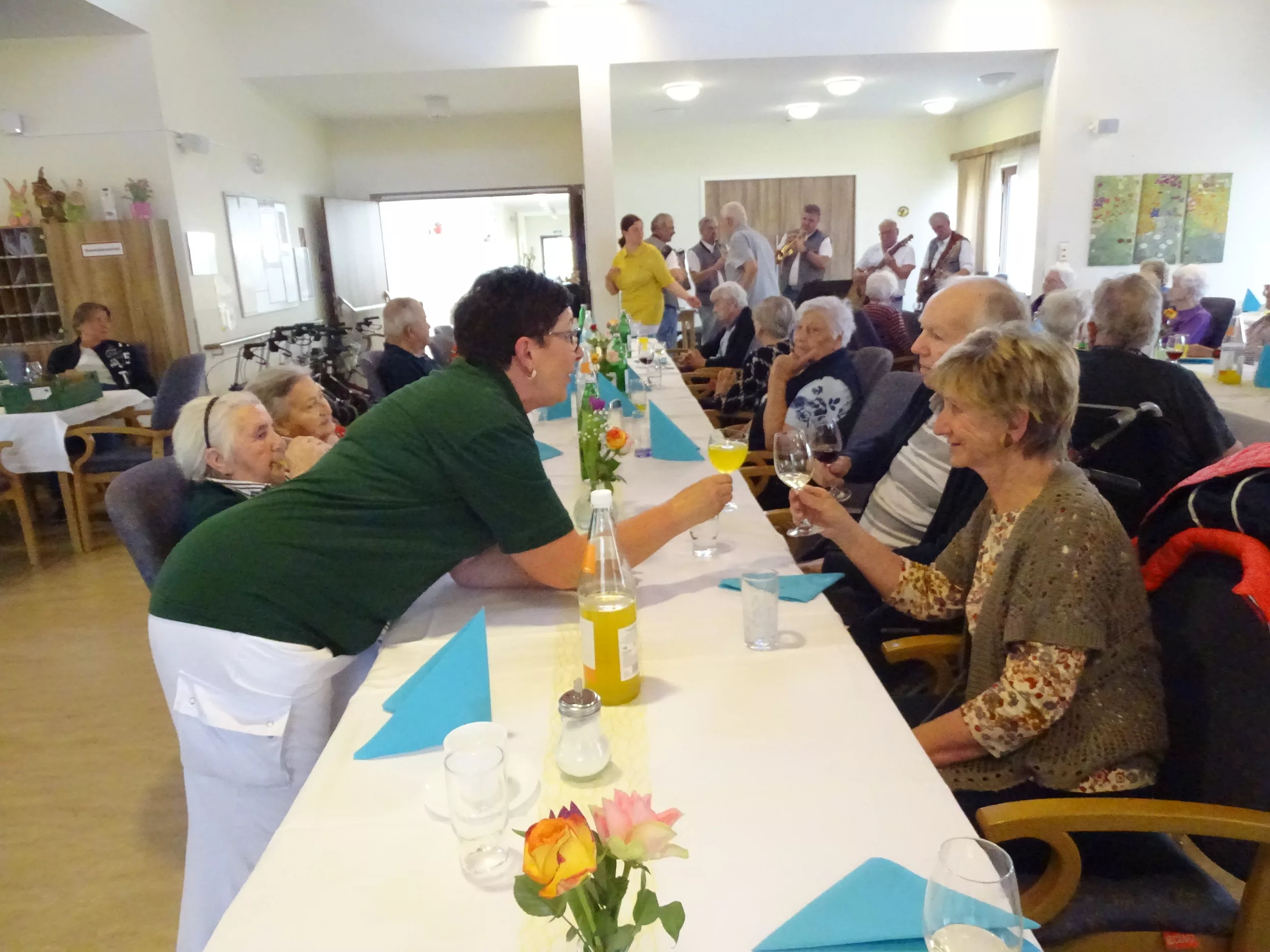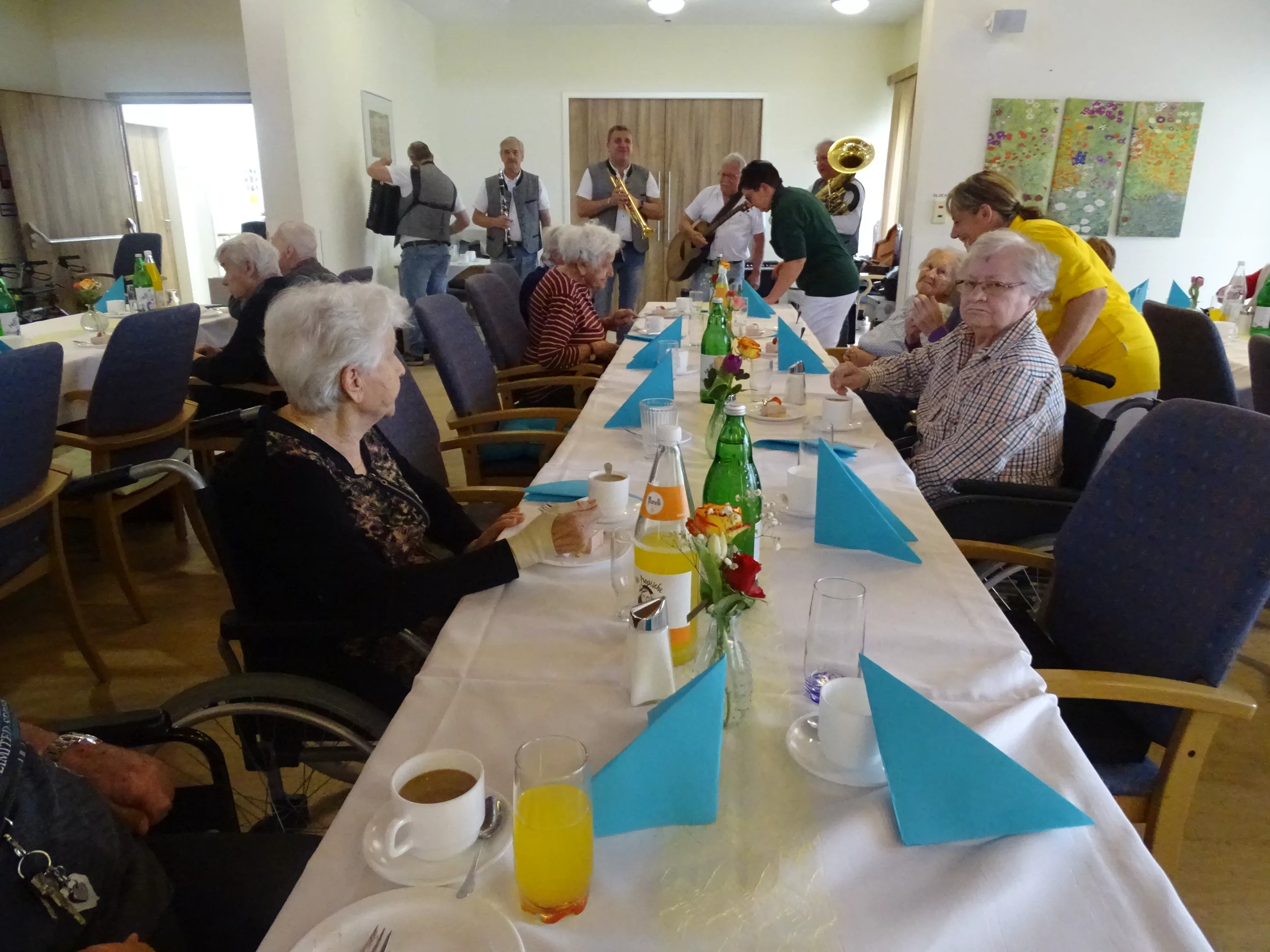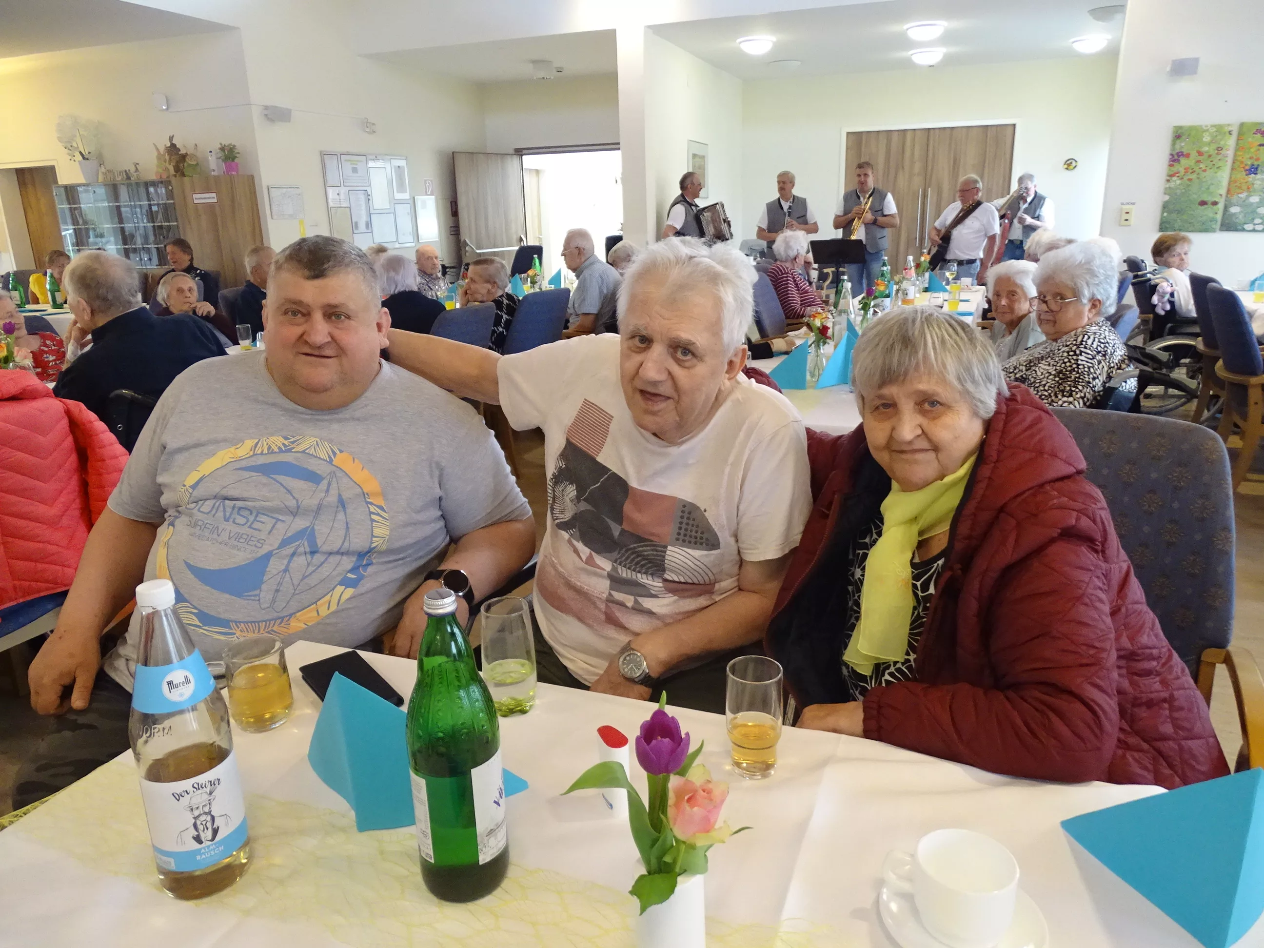 Am 08.04.2025 veranstalteten wir an einem wunderschönen, kalten Dienstagnachmittag unser Frühlingsfest! Die „Breitenegger“ brachten Schwung in unser Haus und wir alle tanzten, sangen und lachten um die Wette! Wir genossen die leckere Fruchtschnitte mit Kaffee und prosteten mit einem Achterl Wein auf den Frühling an! Beschwingt wurde die Polka getanzt und zur „Tante Miezi“ gesungen! Es war wieder beschwingtes Fest mit Lachen, Tanzen und Gesang!
