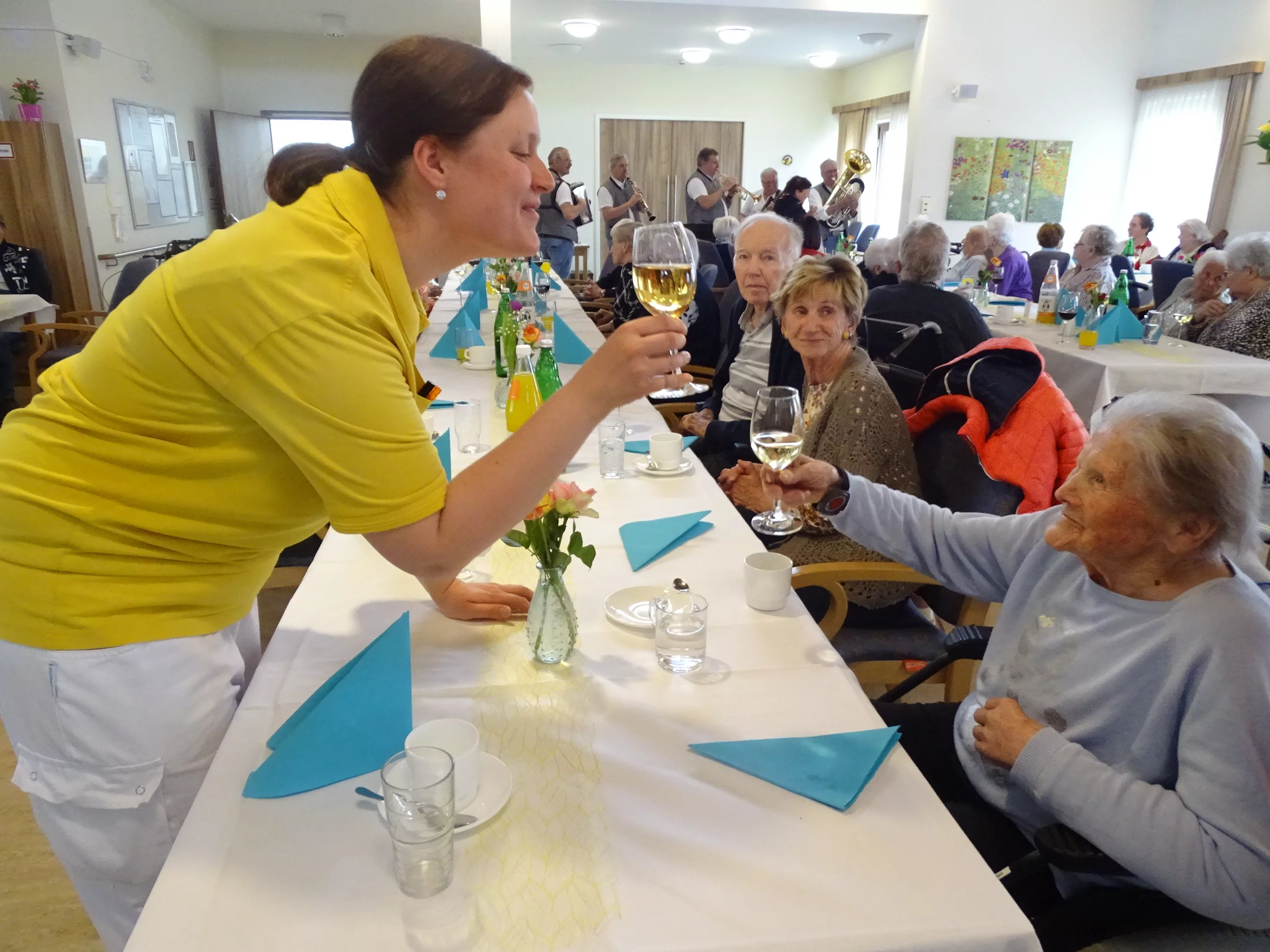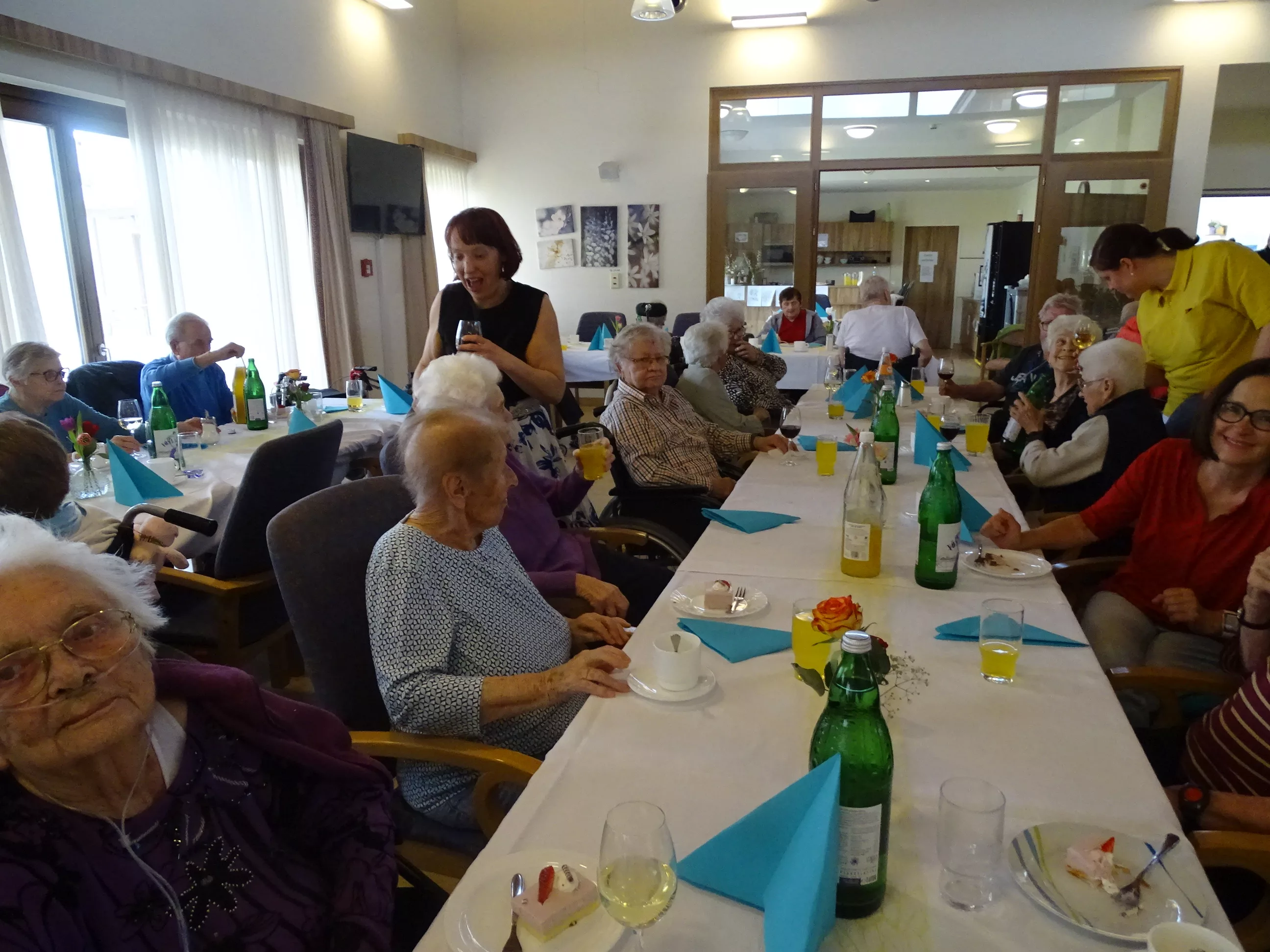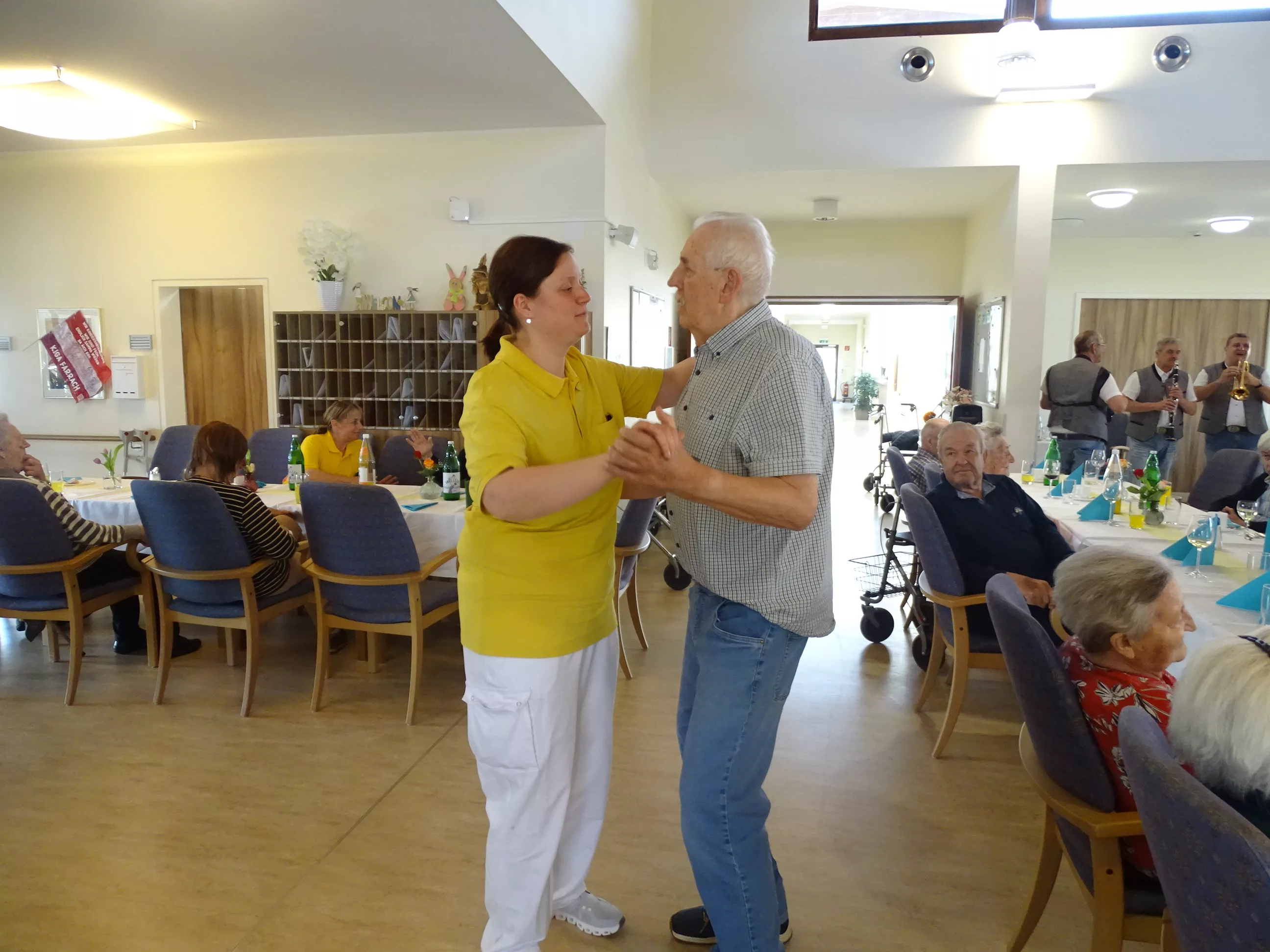Am 08.04.2025 veranstalteten wir an einem wunderschönen, kalten Dienstagnachmittag unser Frühlingsfest! Die „Breitenegger“ brachten Schwung in unser Haus und wir alle tanzten, sangen und lachten um die Wette! Wir genossen die leckere Fruchtschnitte mit Kaffee und prosteten mit einem Achterl Wein auf den Frühling an! Beschwingt wurde die Polka getanzt und zur „Tante Miezi“ gesungen! Es war wieder beschwingtes Fest mit Lachen, Tanzen und Gesang!