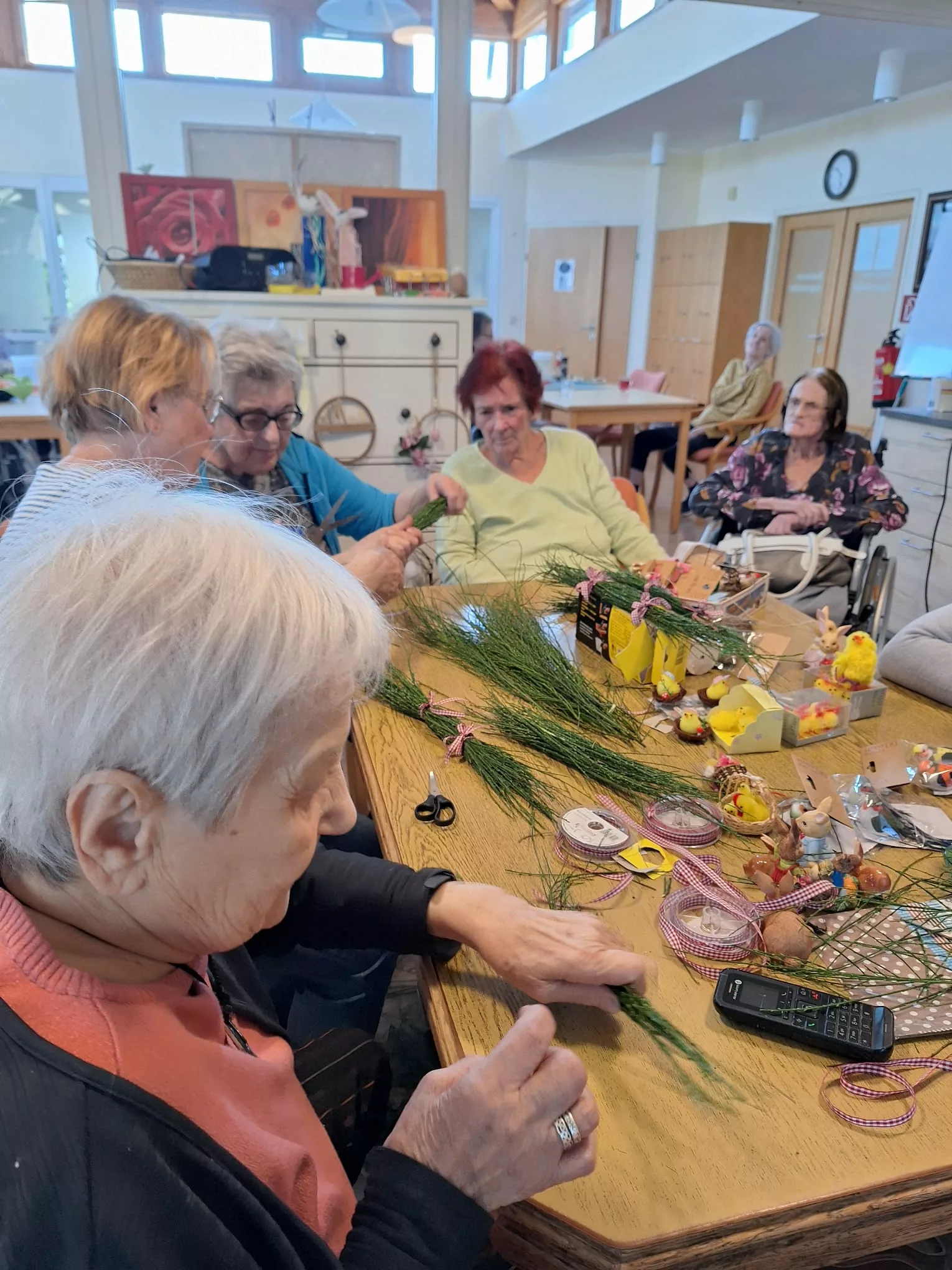In Vorbereitung auf das Osterfest basteln unsere Bewohnerinnen und Bewohner mit viel Freude Dekorationen aus Naturmaterialien und bereiten den traditionellen Reindling vor.