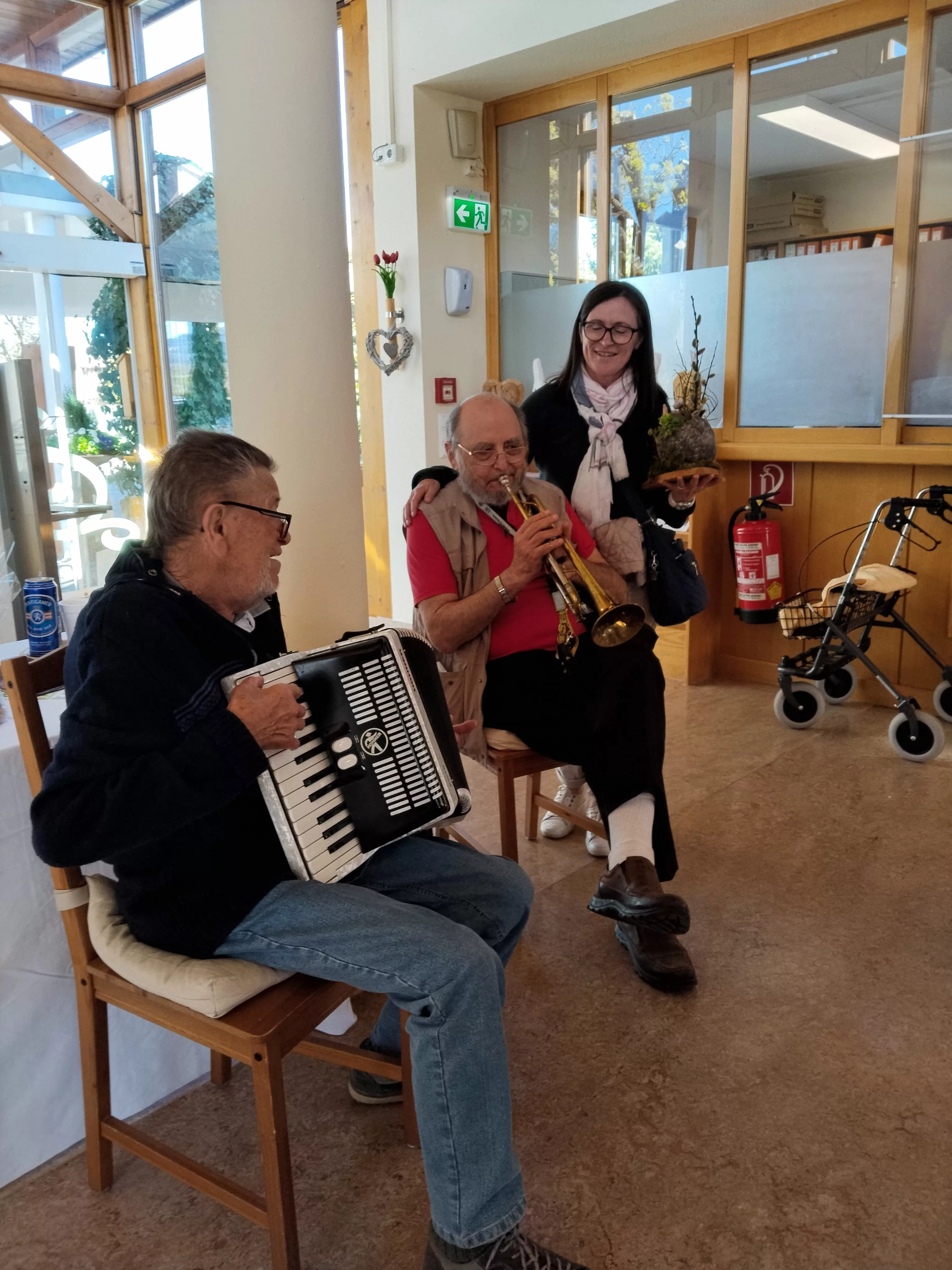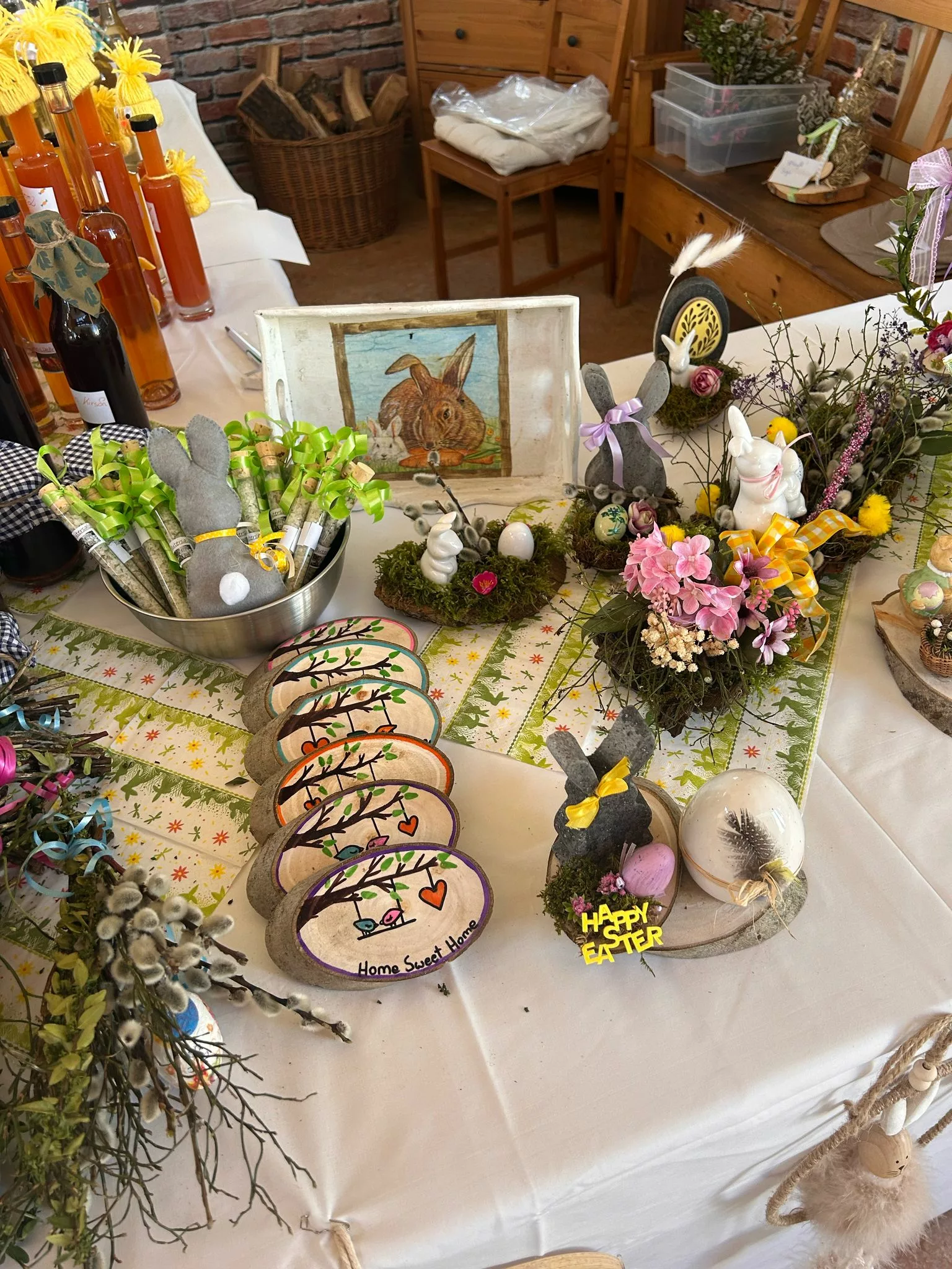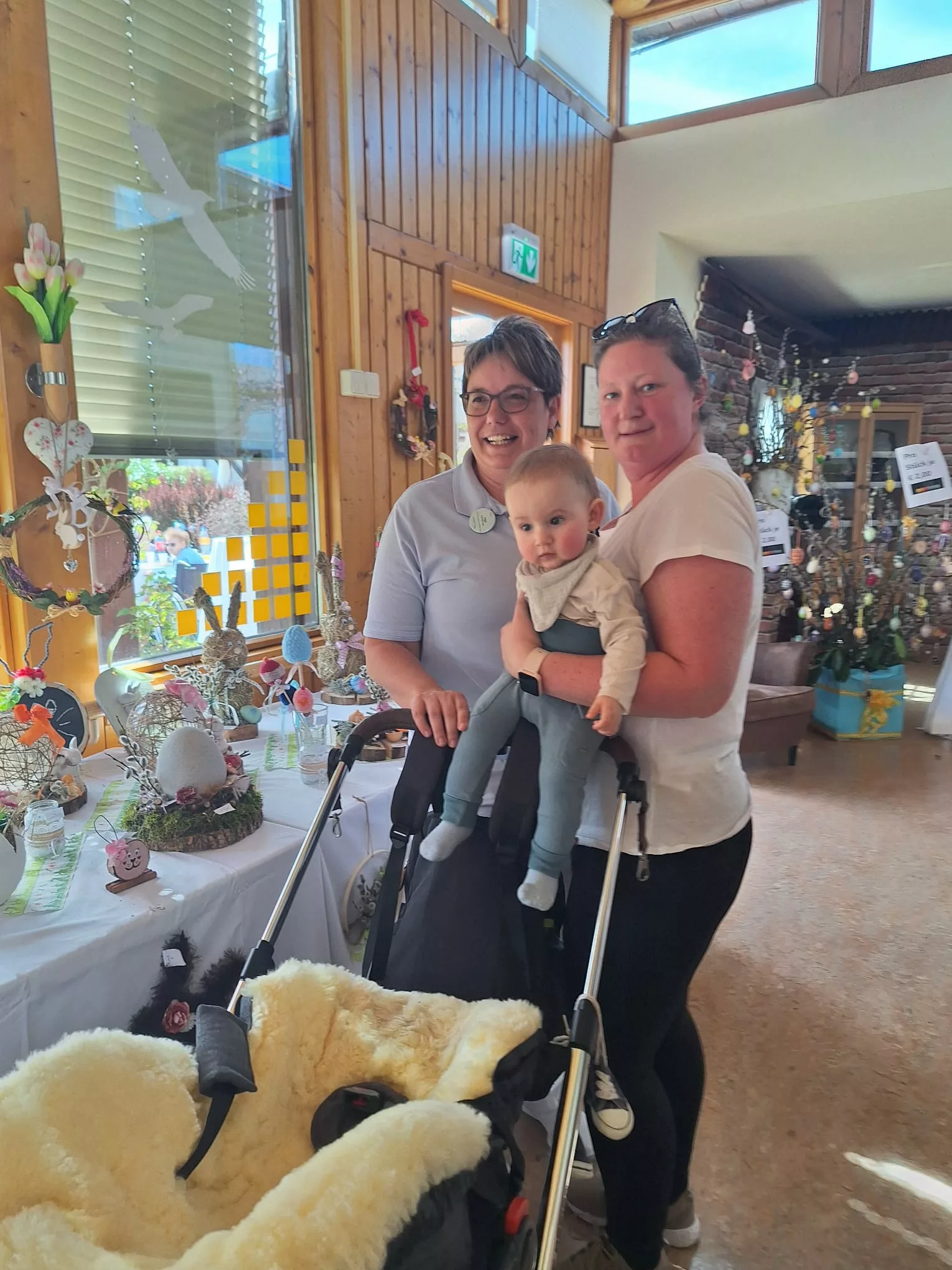 Beim Anschließenden Osterbasar sorgten Sonnenschein und Musik von Ziehharmonika und Trompete, fröhlicher Tanz und liebevoll gestaltete Basteleien für gute Stimmung. Bei Brötchen und Getränken wurde gelacht, genossen und gefeiert.