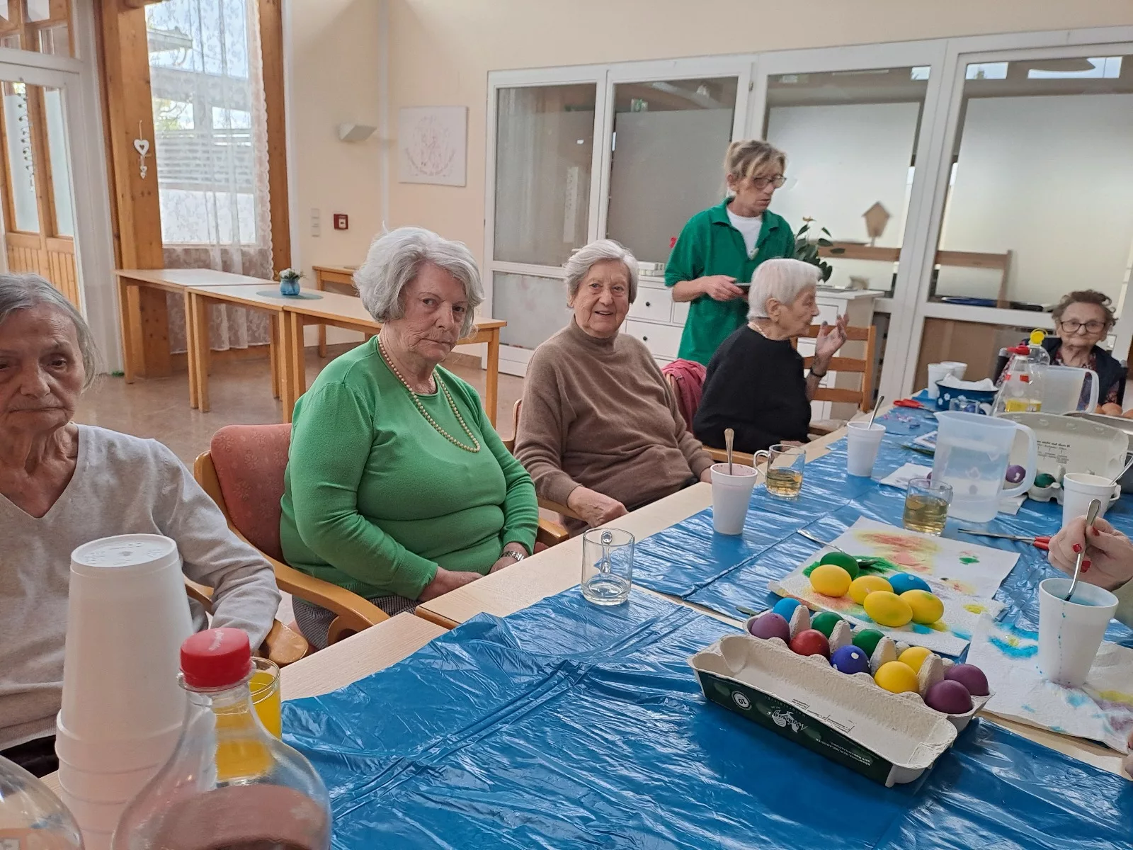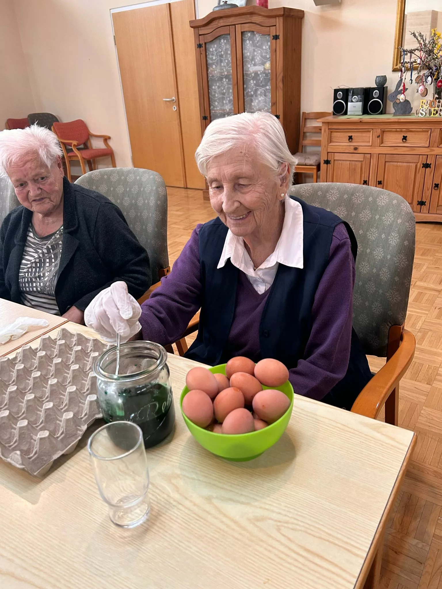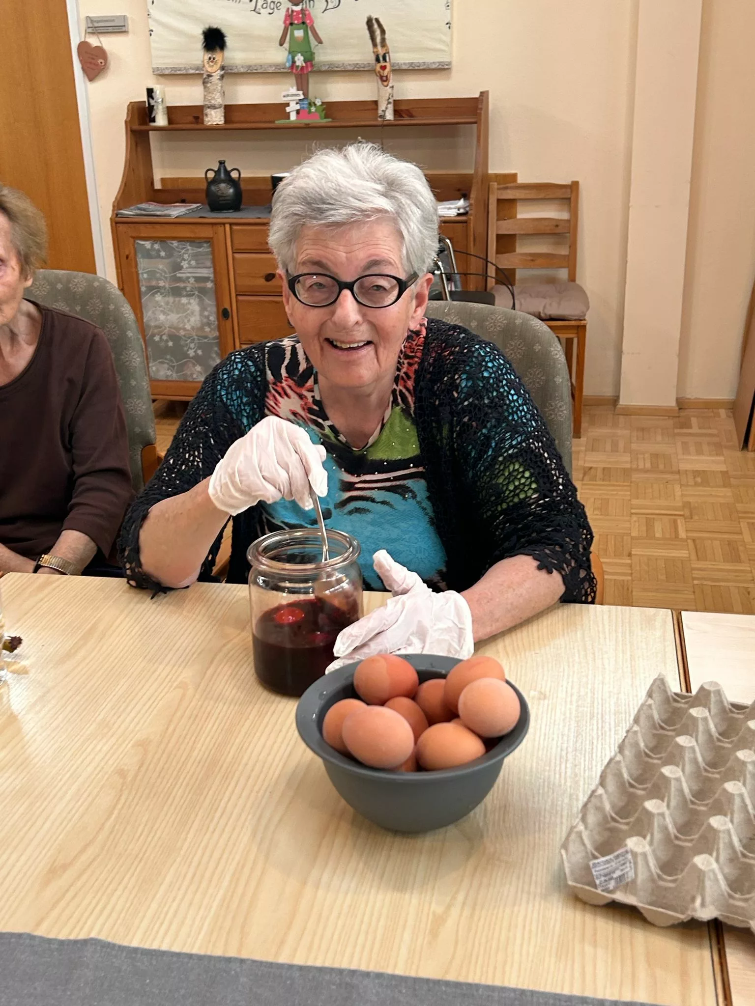 Am 17.04. wurden traditionell mit den Bewohnern und Bewohnerinnen gemeinsam Ostereier gefärbt. Bunte und kreativ verzierte Ostereier sind entstanden.