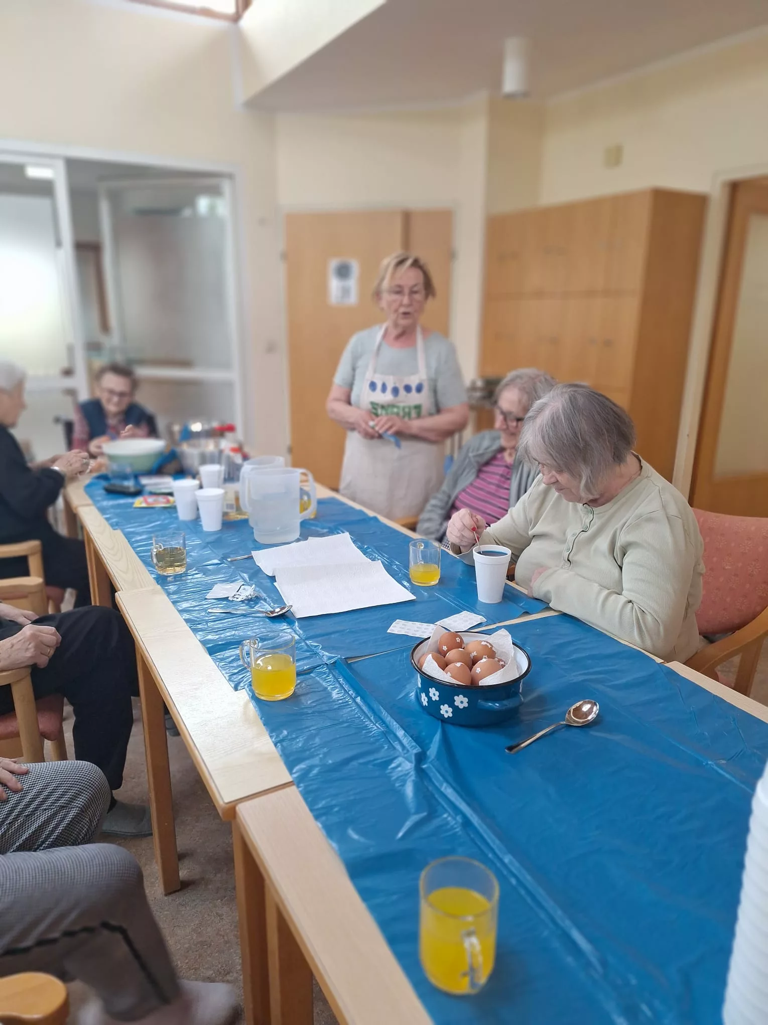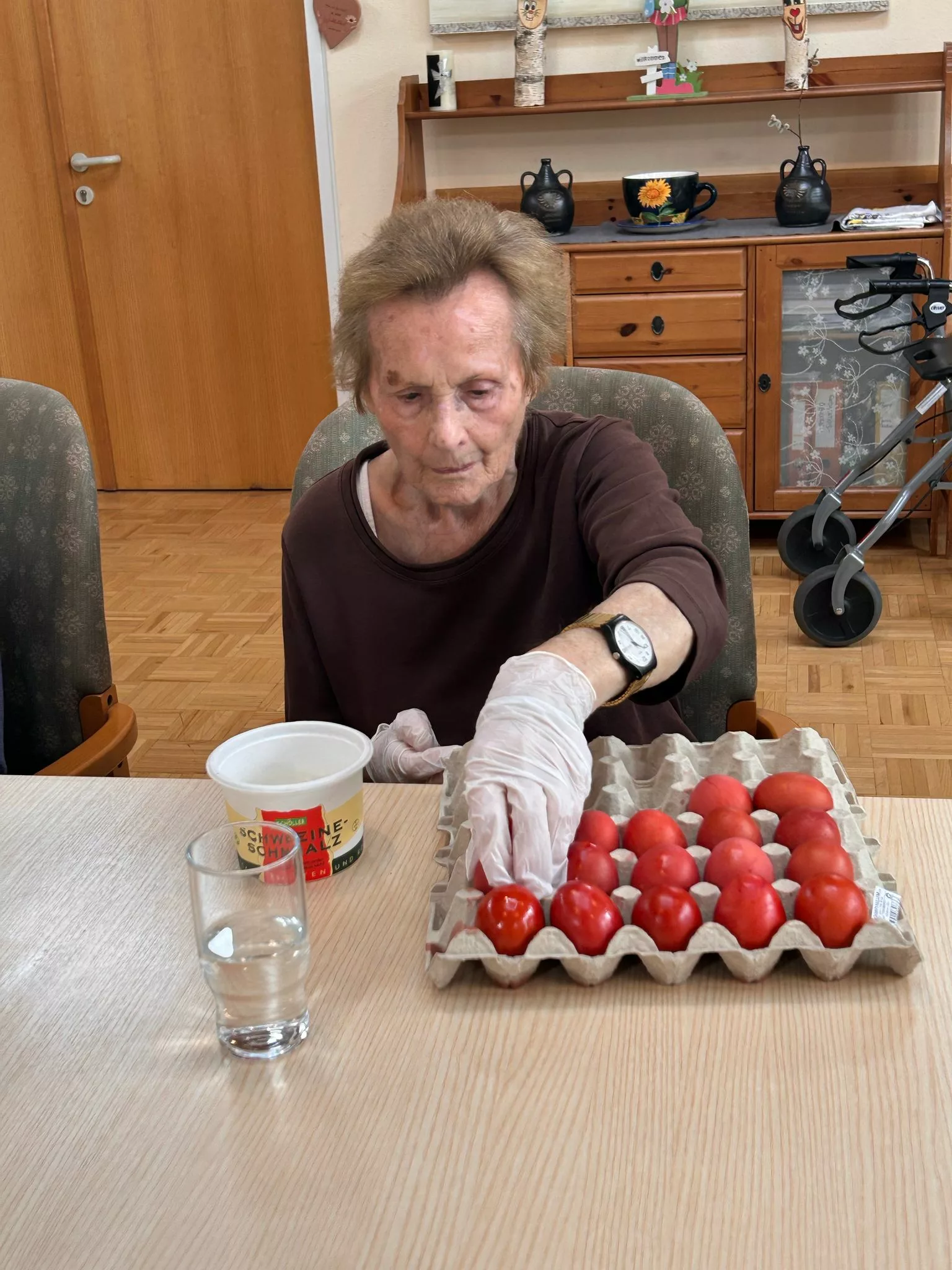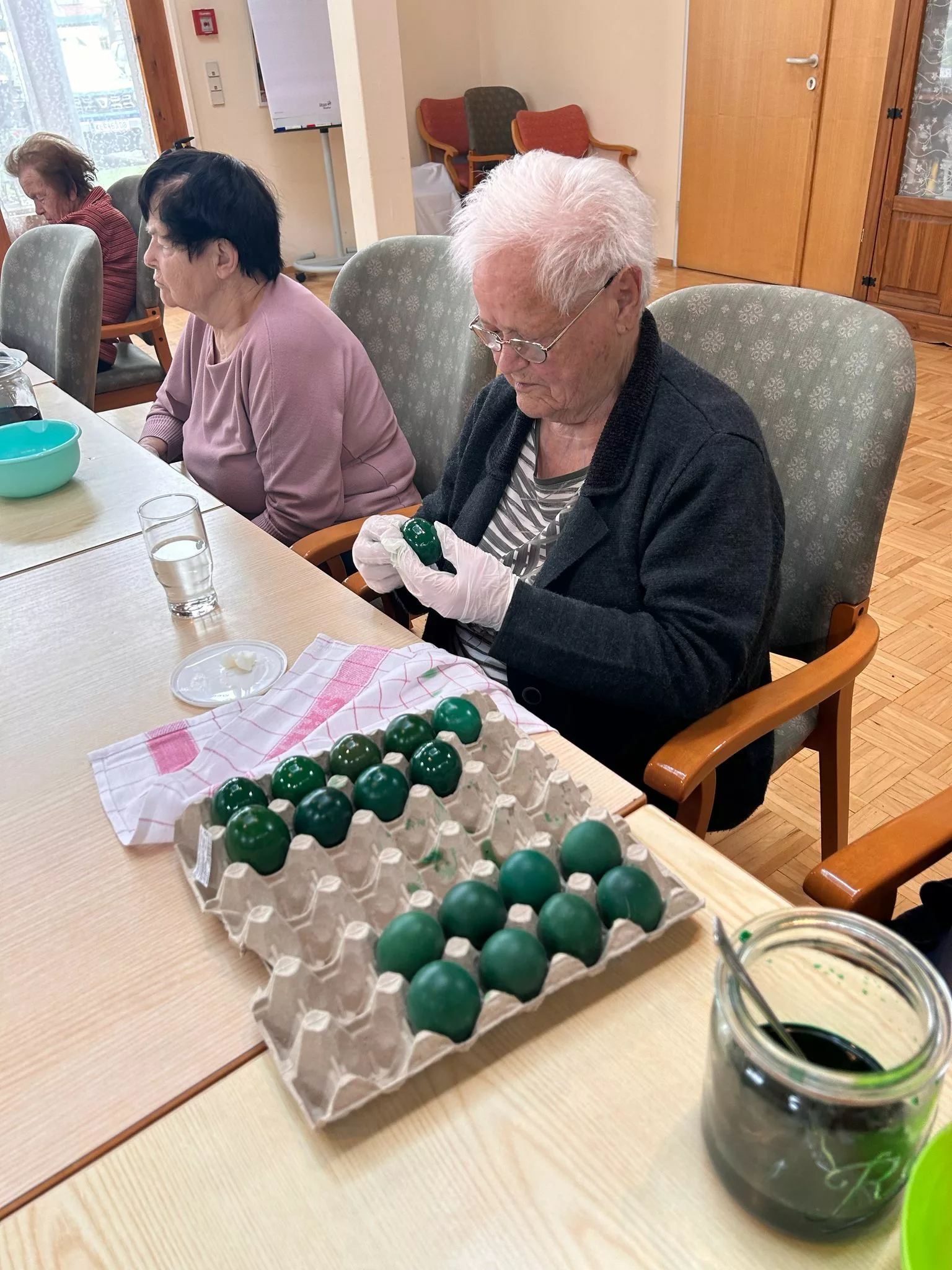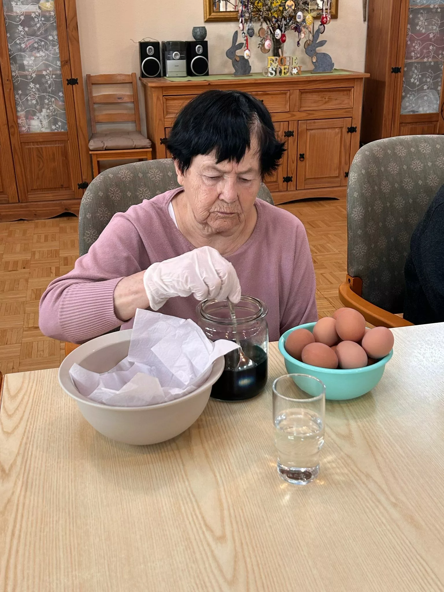 Am 17.04. wurden traditionell mit den Bewohnern und Bewohnerinnen gemeinsam Ostereier gefärbt. Bunte und kreativ verzierte Ostereier sind entstanden.