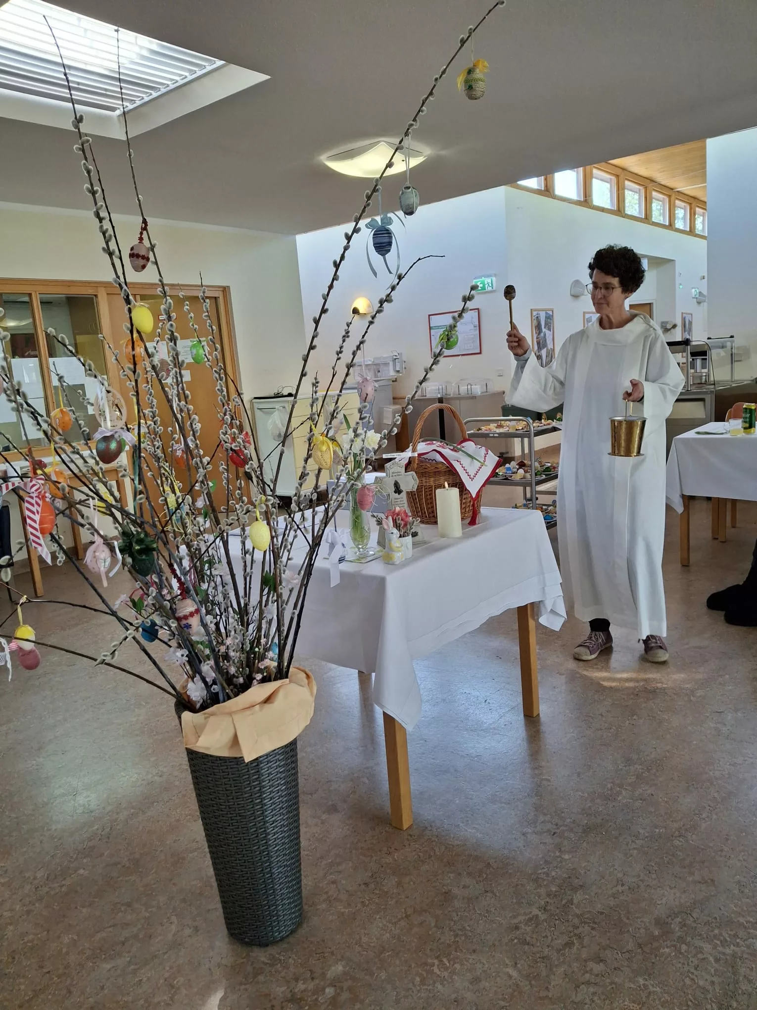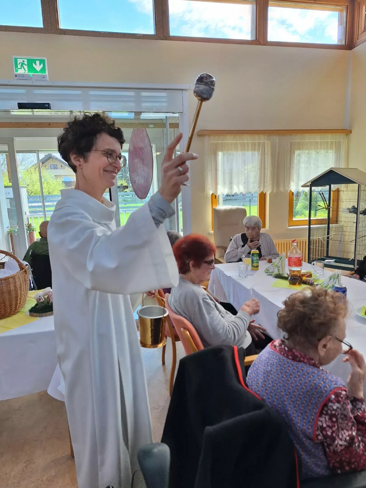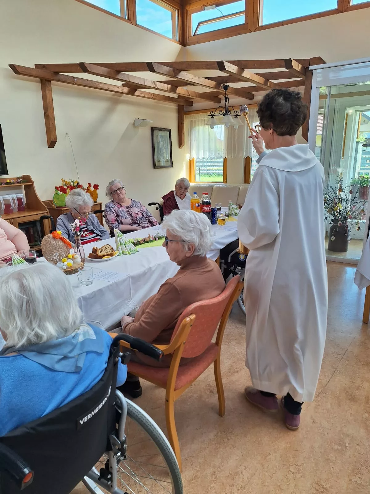 Die Osterjause wurde von Mag. Judith Höhndorf feierlich gesegnet. Gemeinsam wurde gebetet, gesungen und die Fleischweihe als schöner Bestandteil der Osterzeit erlebt. Ein schöner Moment, der Gemeinschaft und Brauchtum auf besondere Weise verbunden hat.