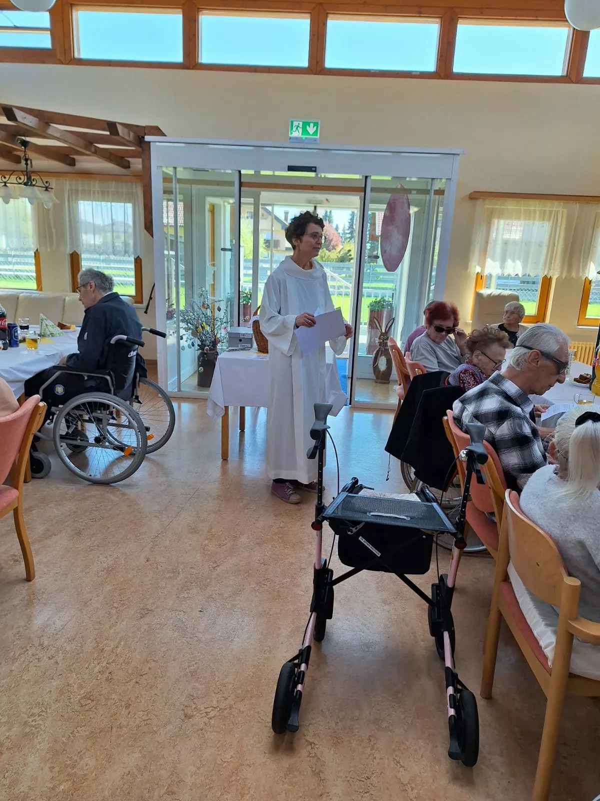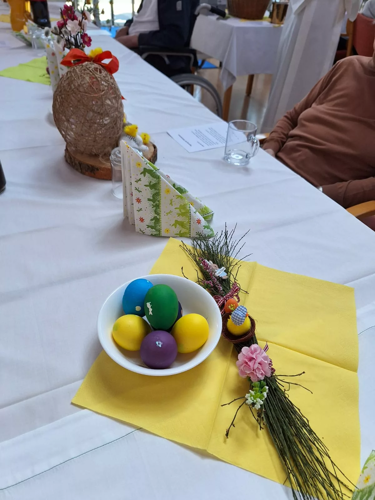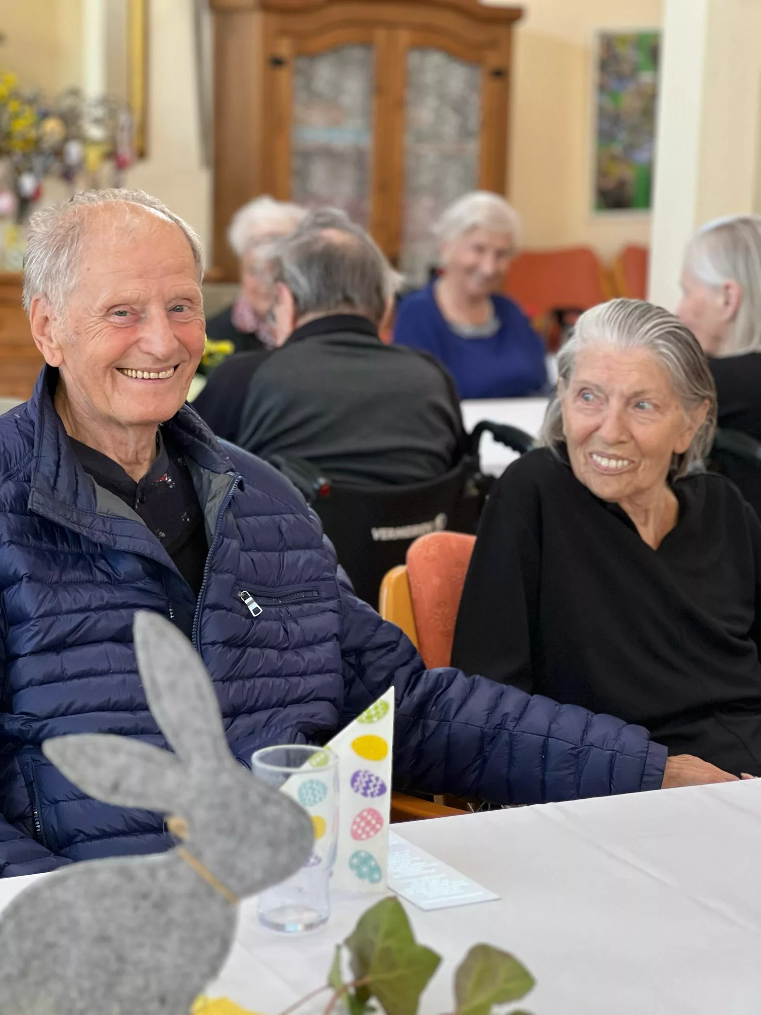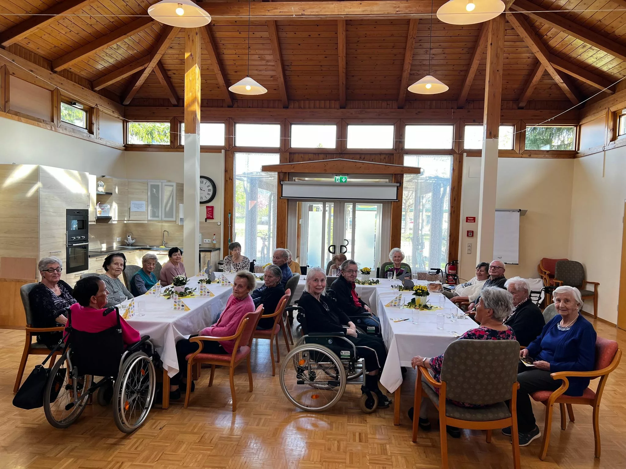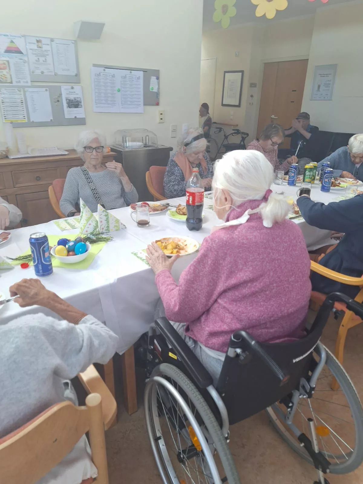 Im „Wie daham“ Generationenpark Welzenegg wurde Ostern ausgiebig gefeiert: Schön geschmückte Tische mit liebevoller Osterdekoration sorgten für eine fröhliche Atmosphäre. Die Bewohnerinnen und Bewohner genossen eine köstliche Osterjause mit Eierkren, Osterschinken, Selchwürste und Zunge – alles, was dazugehört. Festlich gekleidet und mit vielen lachenden Gesichtern wurde der Tag zu einem rundum gelungenen Fest für alle.