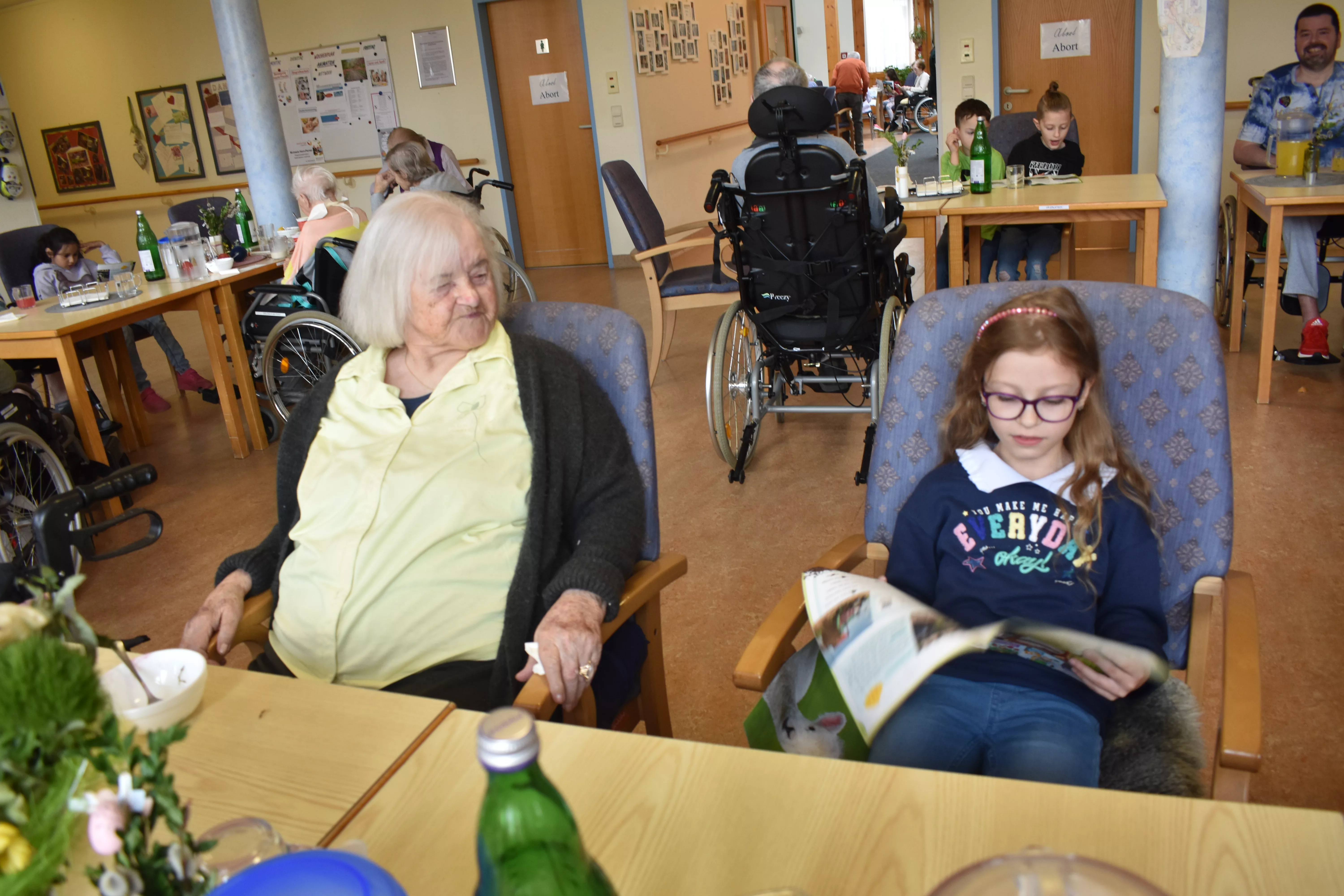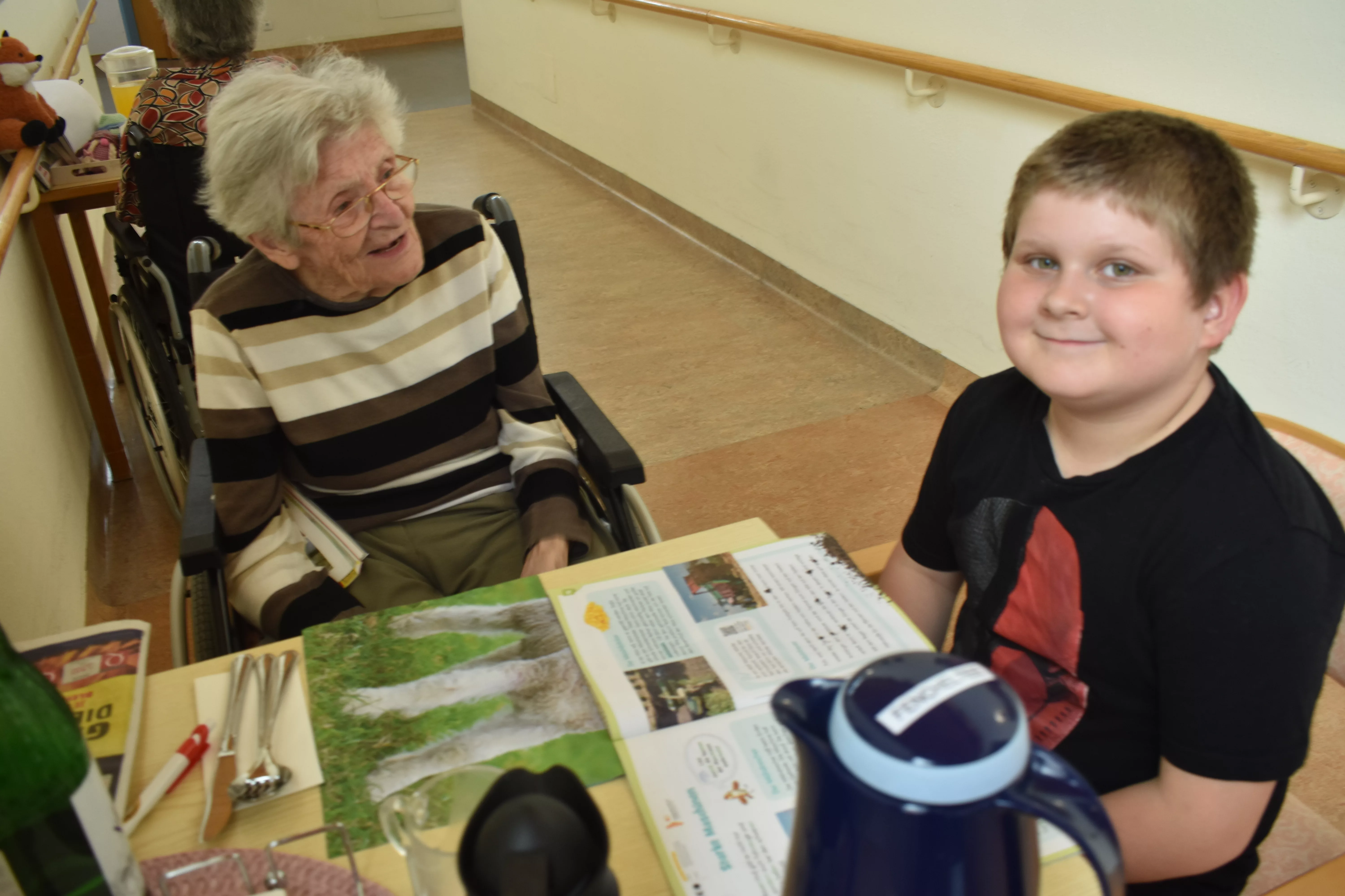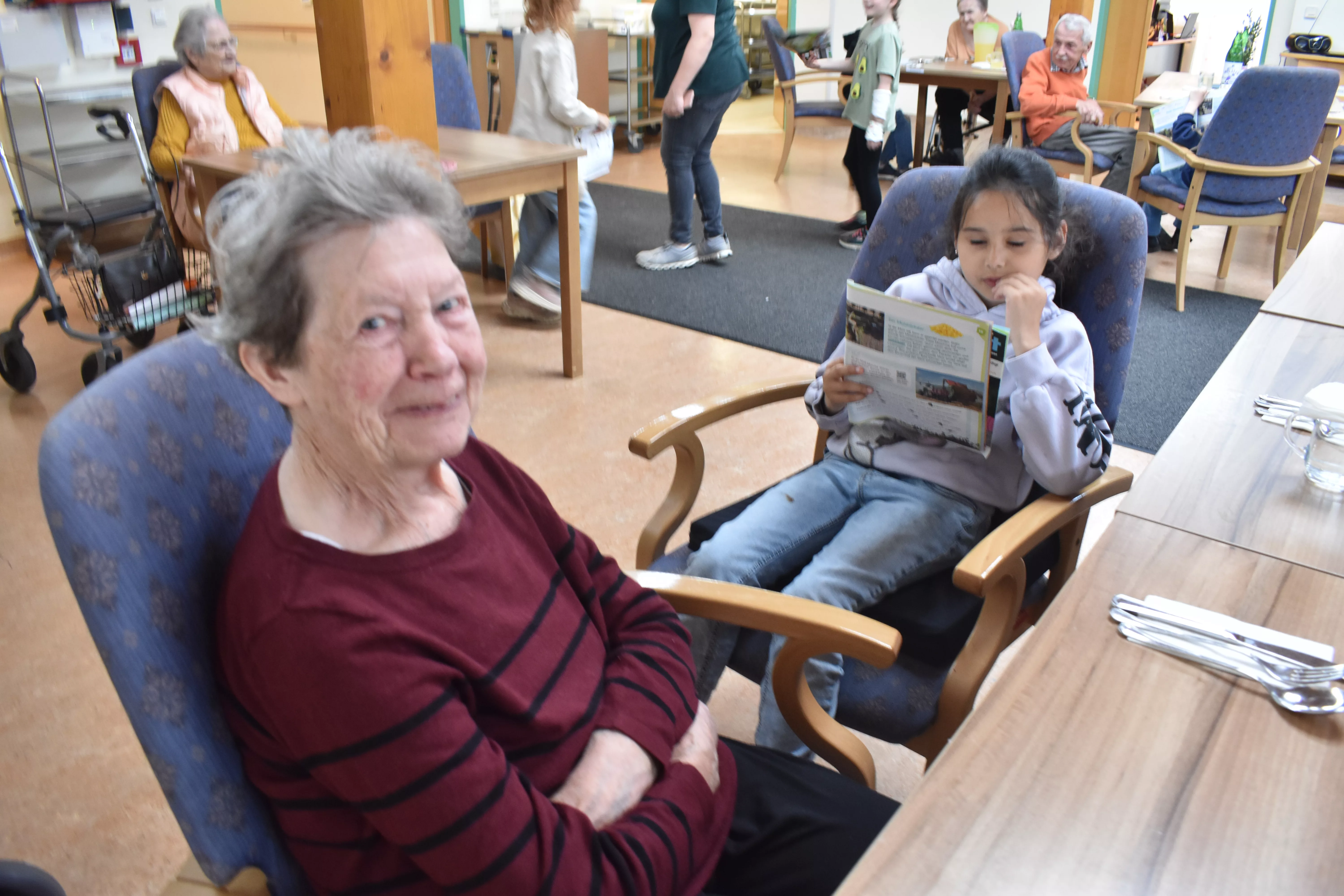Am 24. April 2025 gestalteten SchülerInnen der Volksschule Lindfeld (2. Klasse) unseren BewohnerInnen wieder einen unvergesslichen Vormittag. Dieses Mal kam die Spatzenpost zum Einsatz, woraus die kleinen Leseratten Geschichten vorgelesen haben. Mittlerweile sind die Kinder schon ein Teil von der großen Wie daham… Familie und suchen sich die BewohnerInnen und Plätze selbständig aus. Es wird geplaudert, gescherzt, gelacht und gelesen.