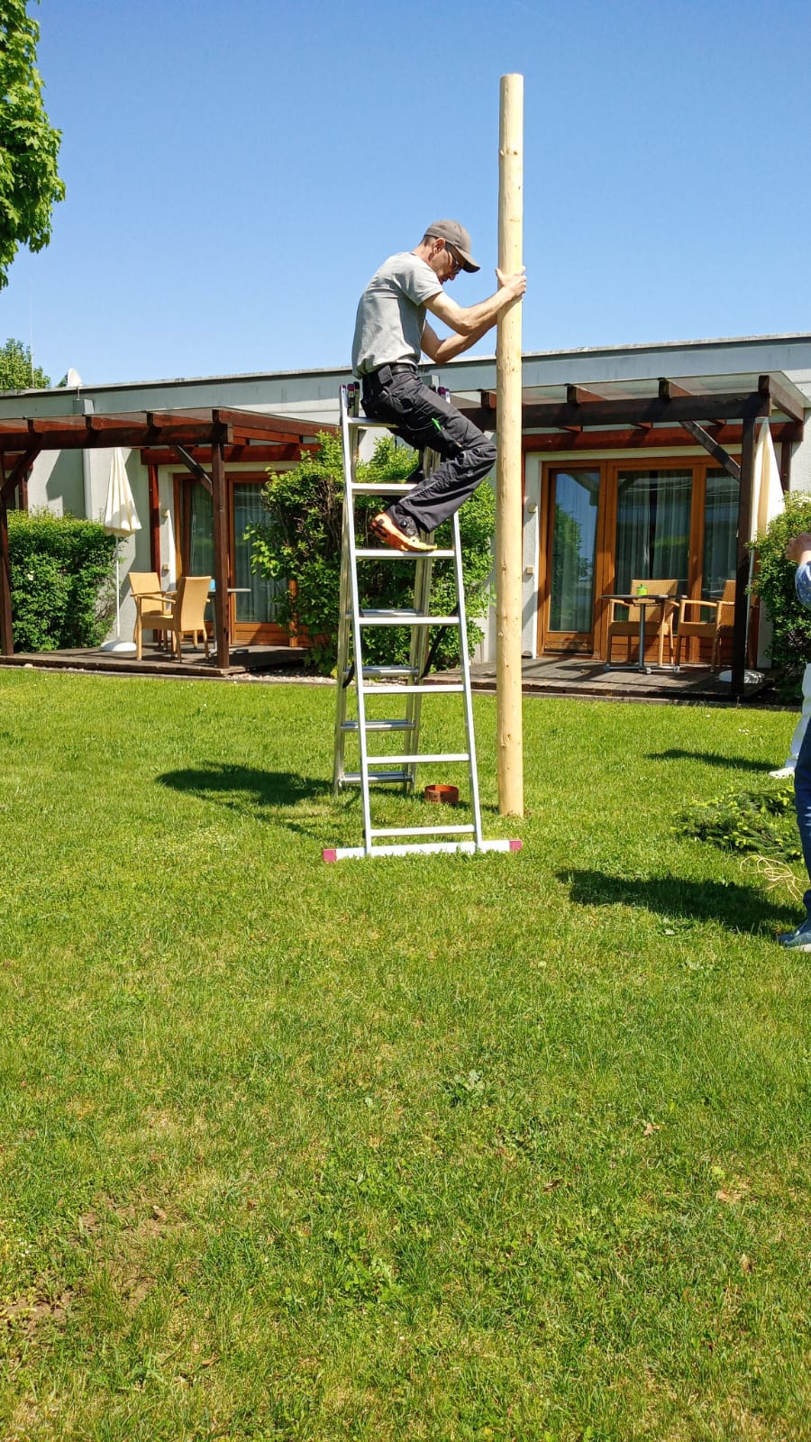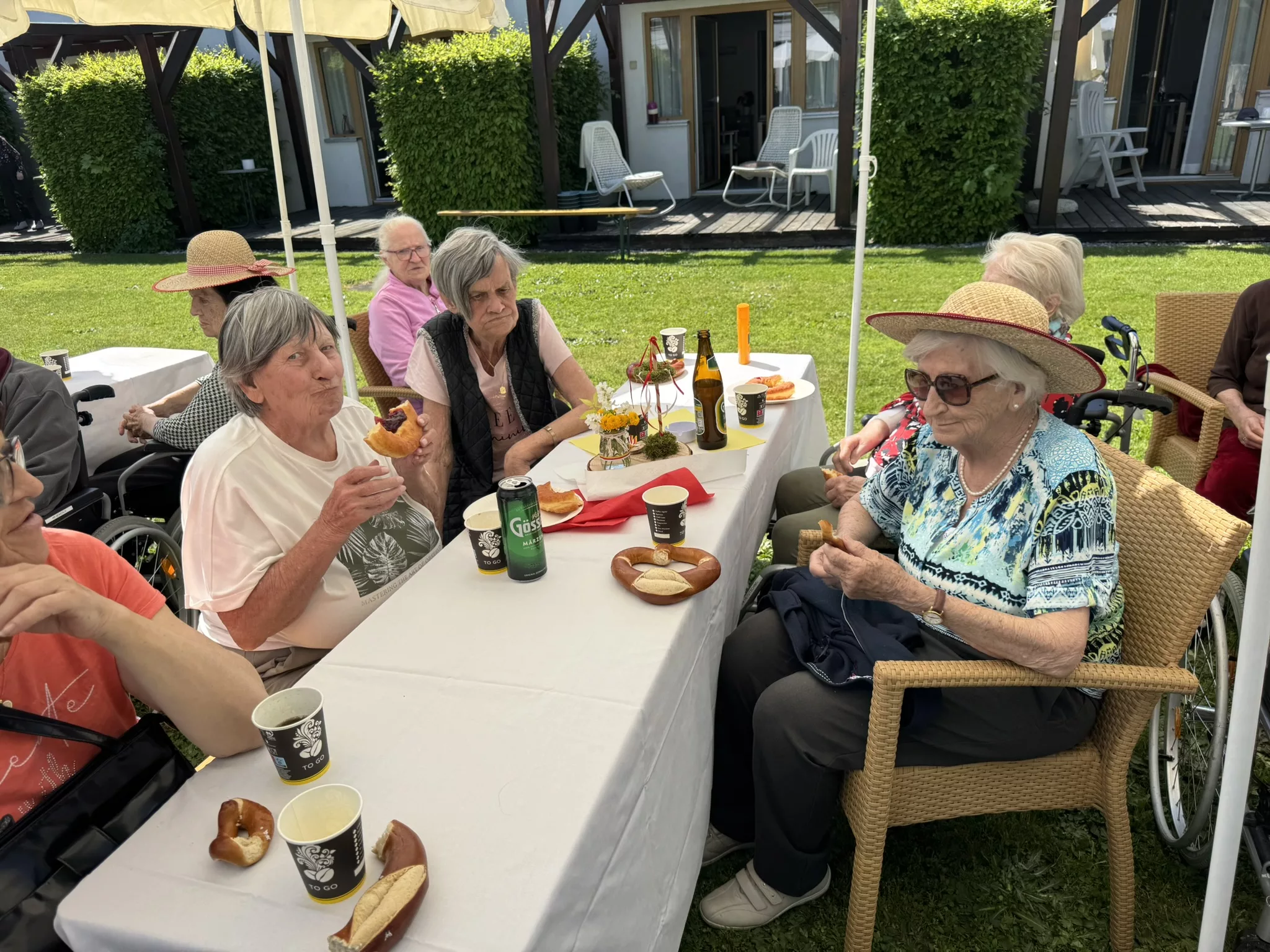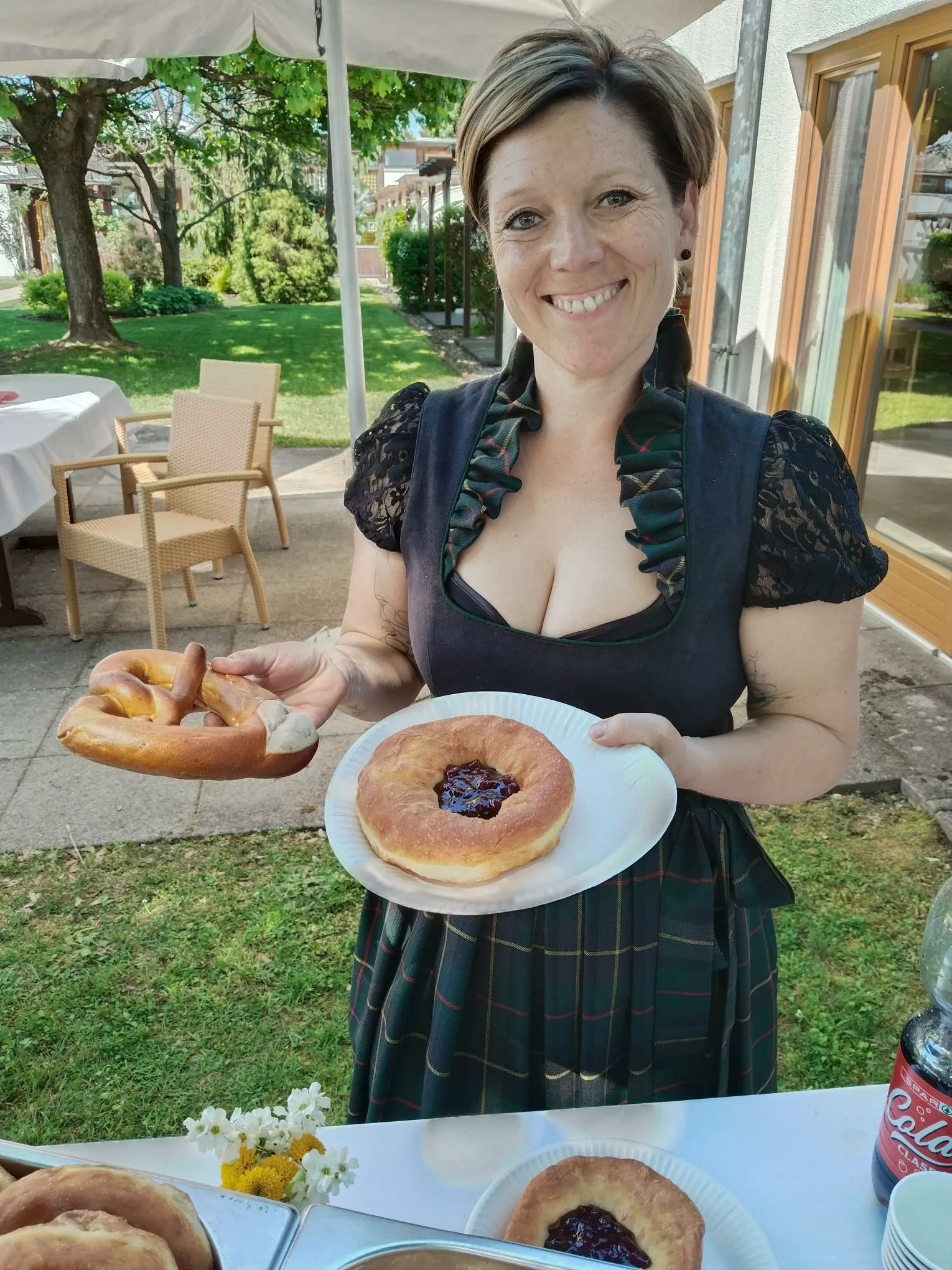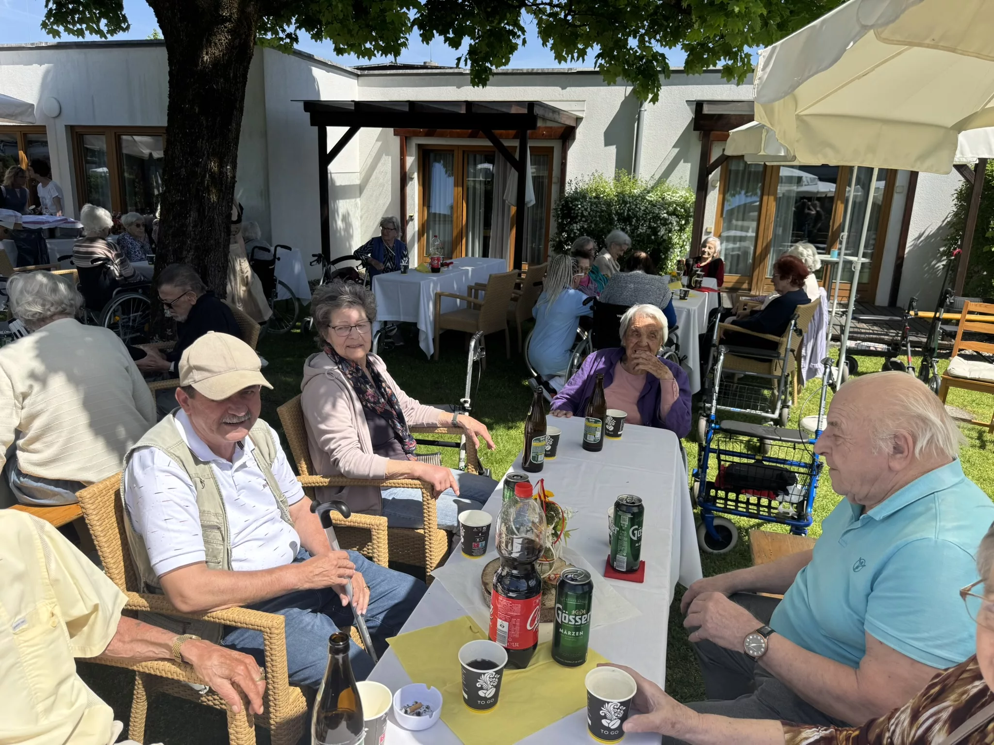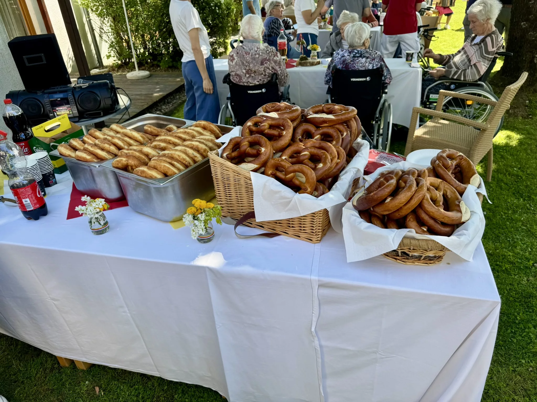 Neben der Musik sorgten kühle Getränke, frische Bauernkrapfen und knusprige Brezen für das leibliche Wohl. Und natürlich durfte auch ein prächtig geschmückter Maibaum nicht fehlen, der für festliche Stimmung im Innenhof sorgte.