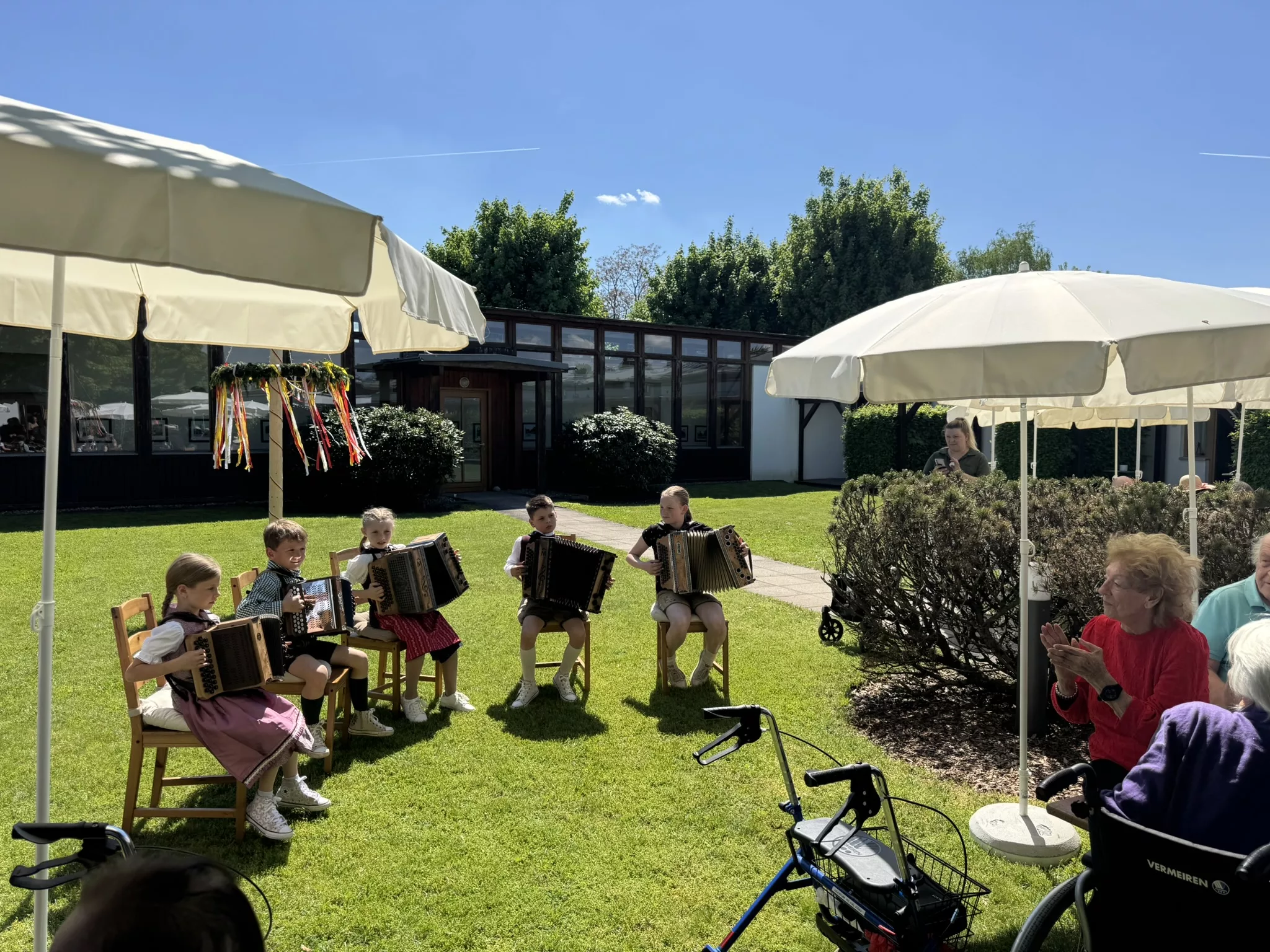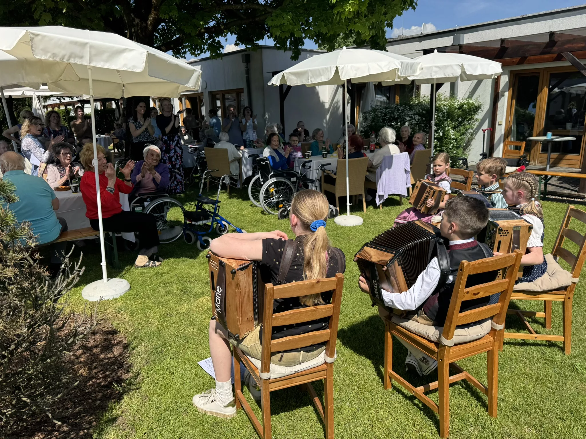 Die fünf jungen Mitglieder– Marie Rappitsch, Clarissa Kienzl, Alexander Pachatz, Lukas Deutschmann und Emily Schöner – beeindruckten unsere Bewohnerinnen und Bewohner und alle anderen Anwesenden. Wir waren zutiefst berührt davon, mit wie viel Gefühl, Hingabe und erstaunlichem Können die jungen Talente in so jungen Jahren die steirischen Harmonikas bereits spielen.