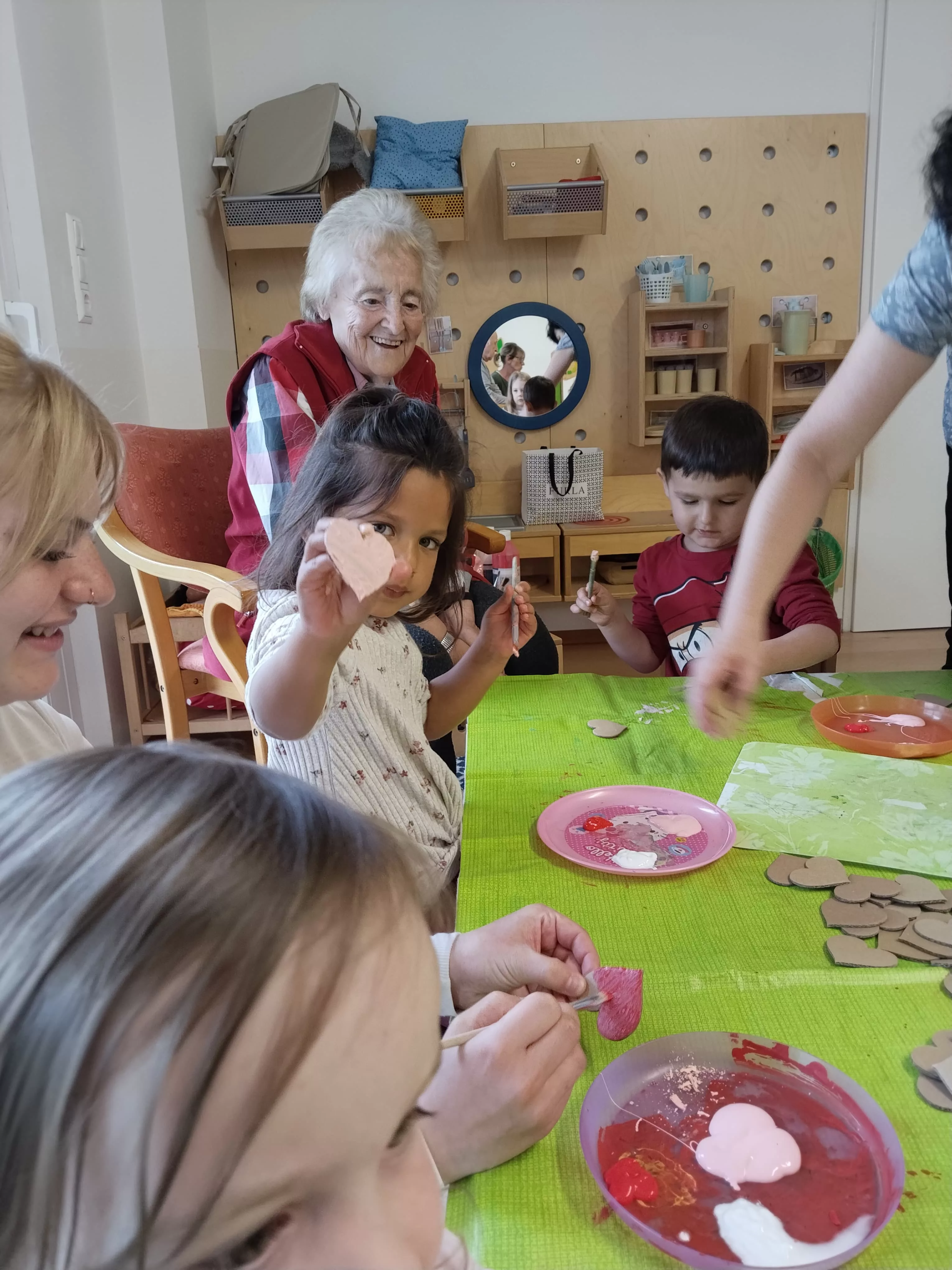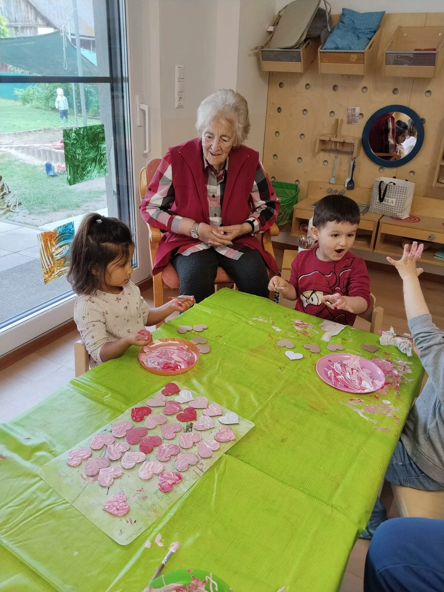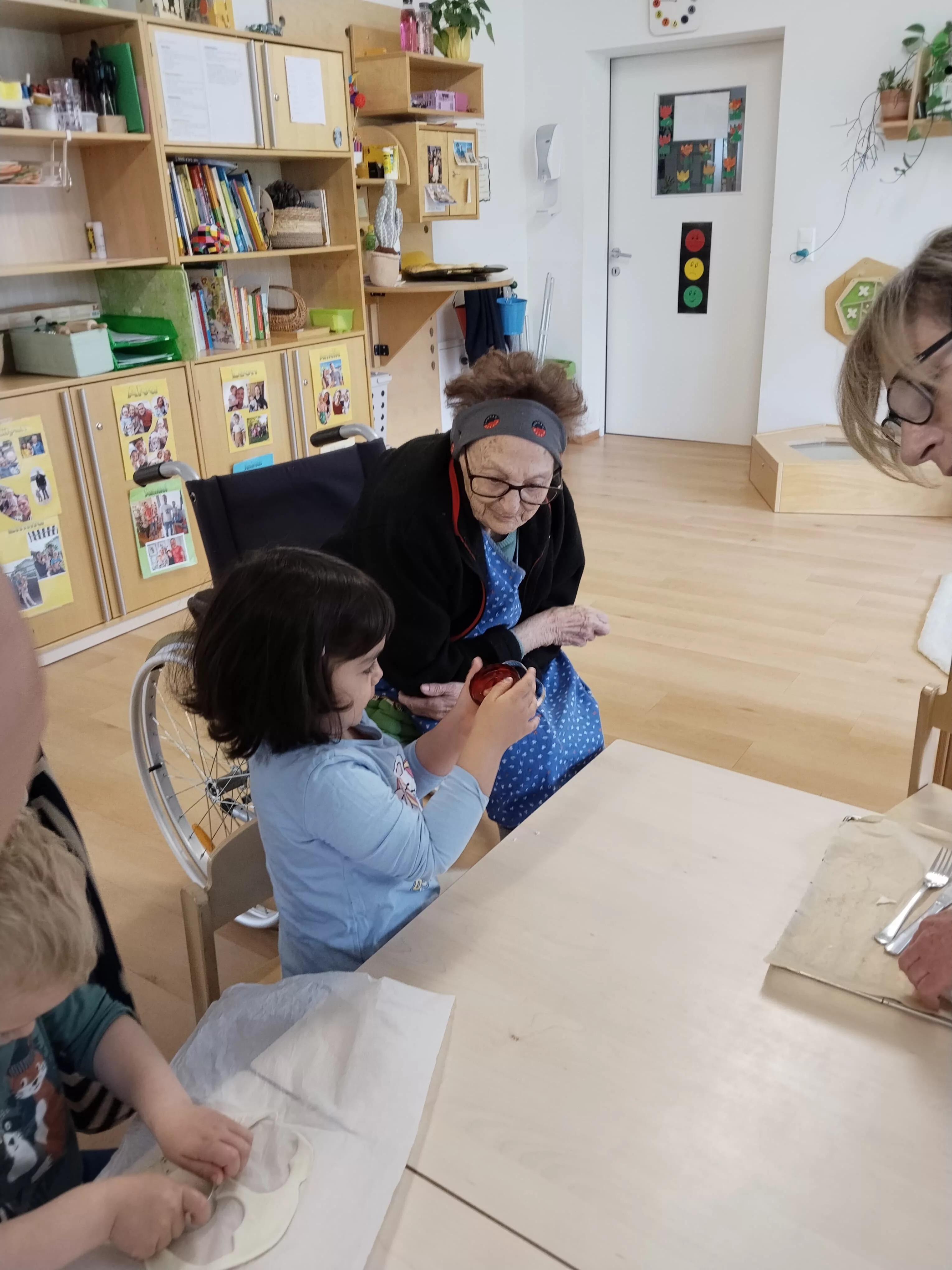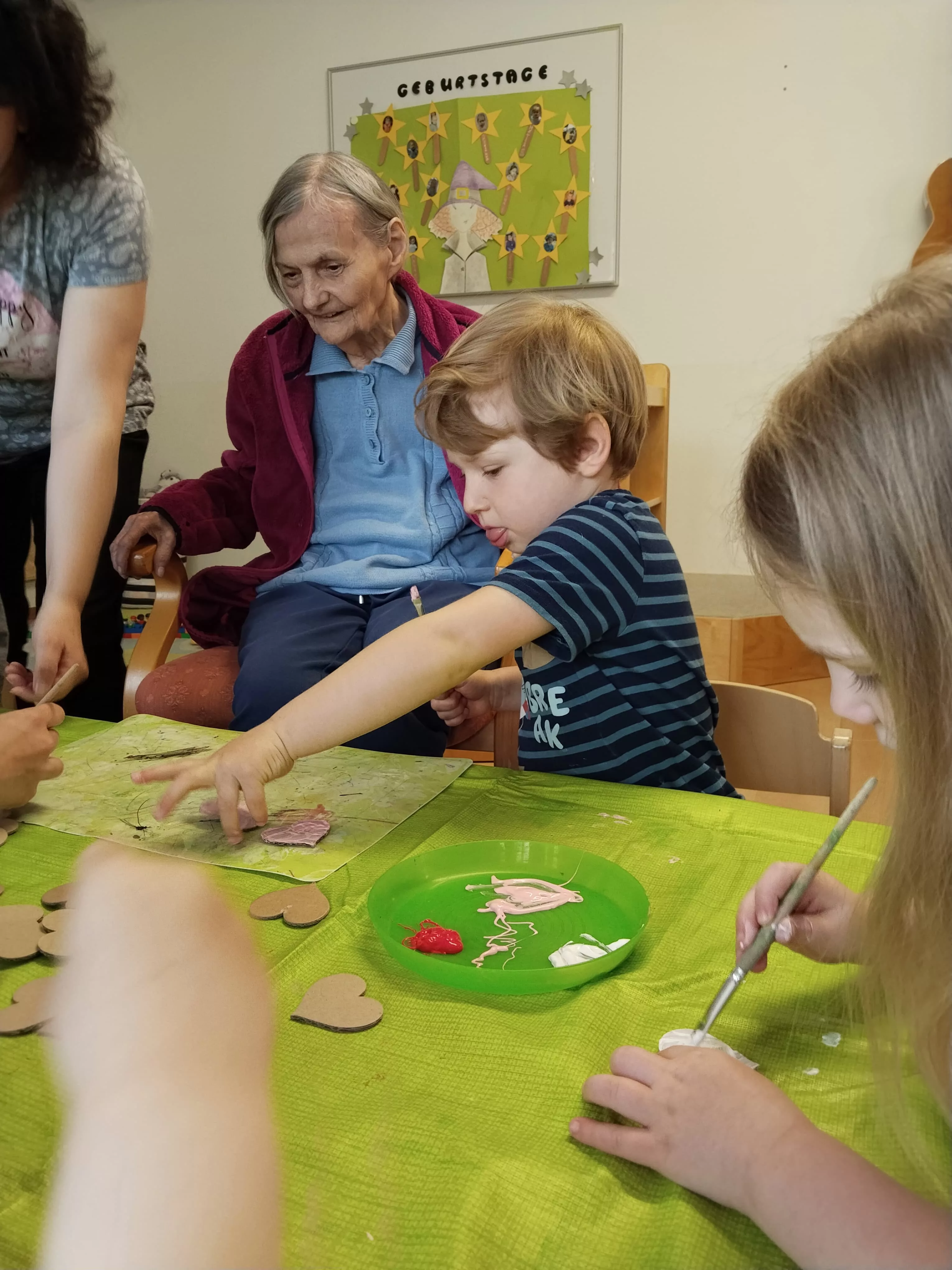 Besonders berührend ist, wie selbstverständlich die Kinder inzwischen auf unsere Seniorinnen zugehen. Sie helfen beim Finden des richtigen Weges, begleiten aufmerksam – und die kräftigeren unter ihnen packen sogar beim Stühlerücken mit an.