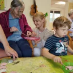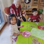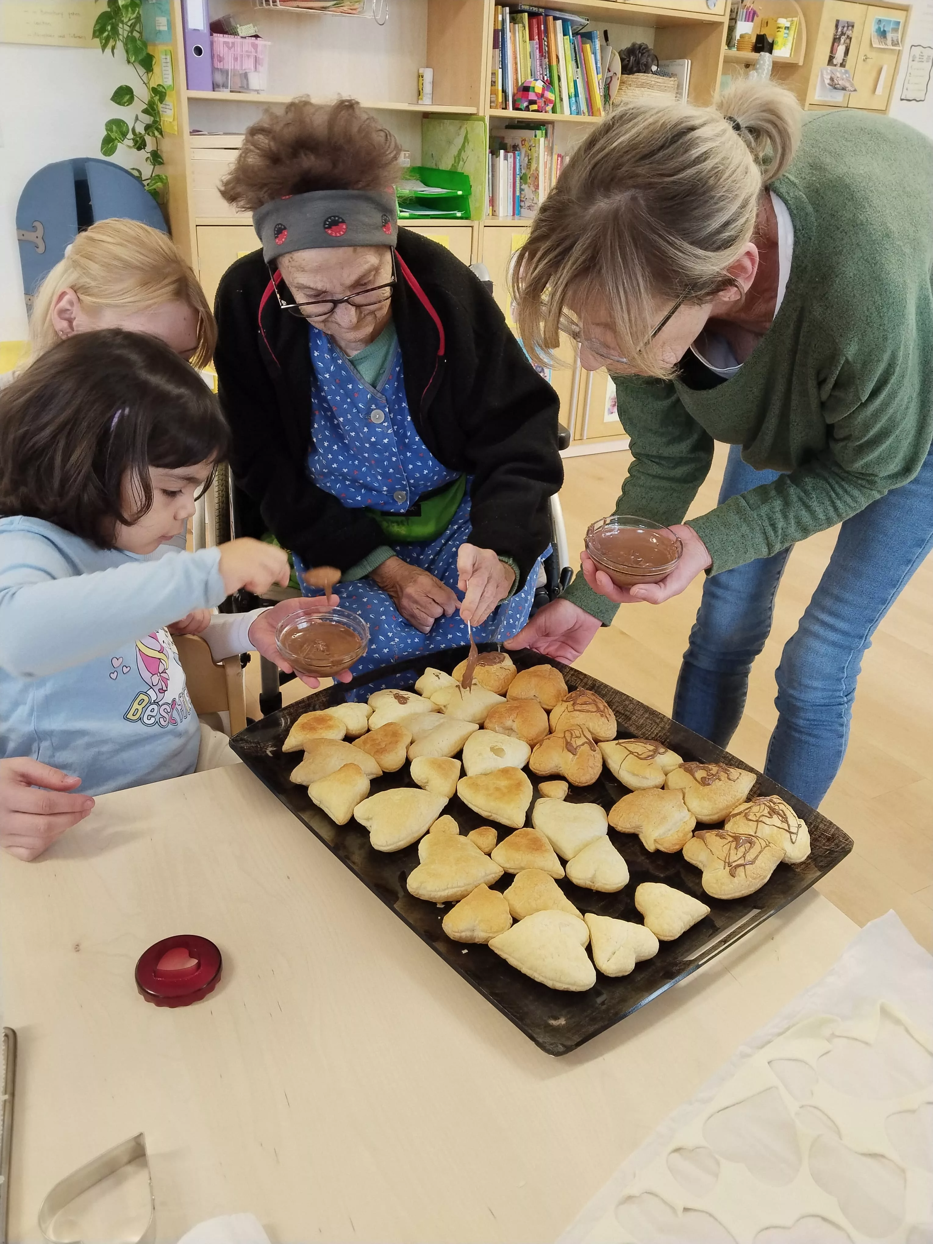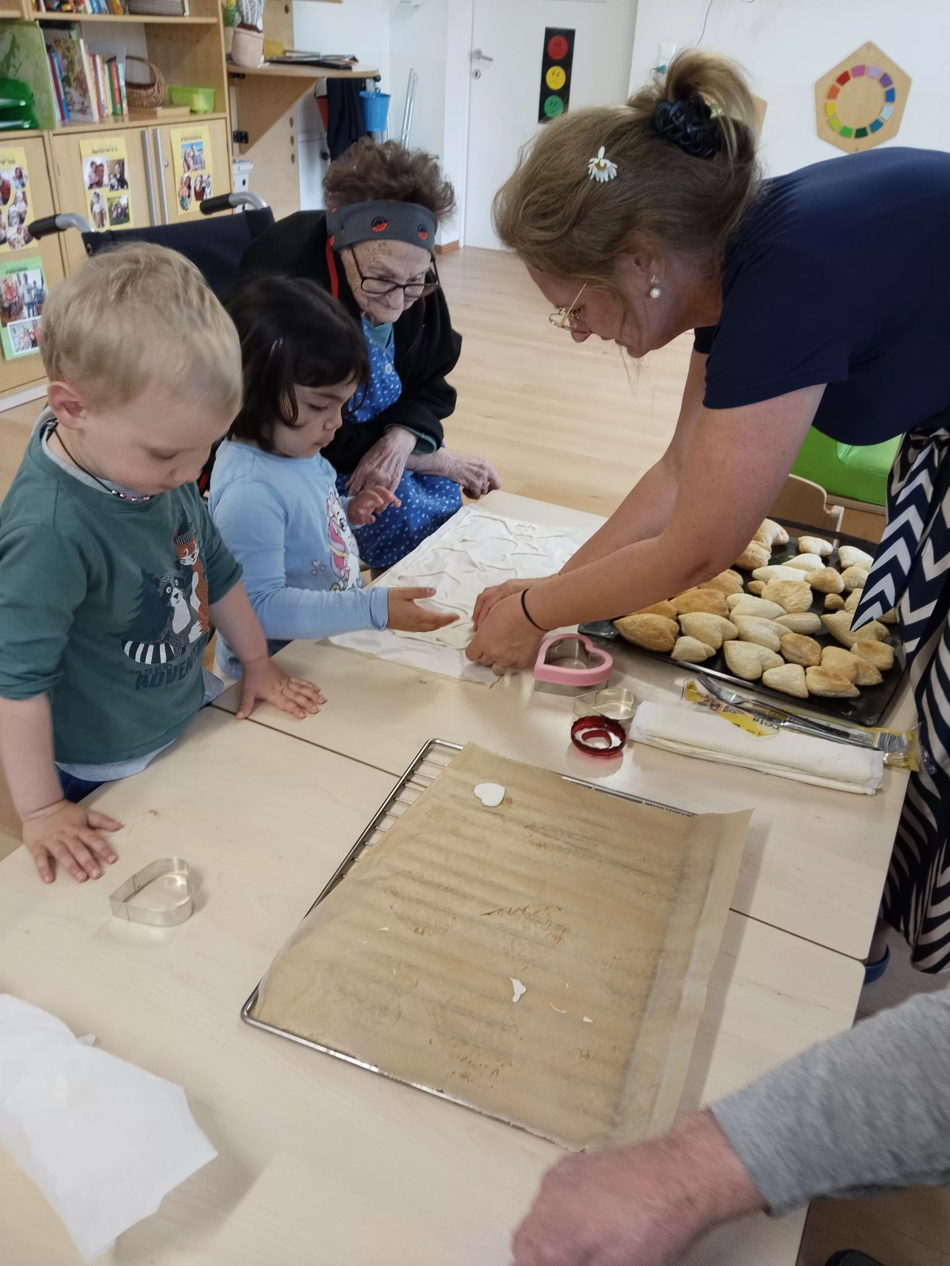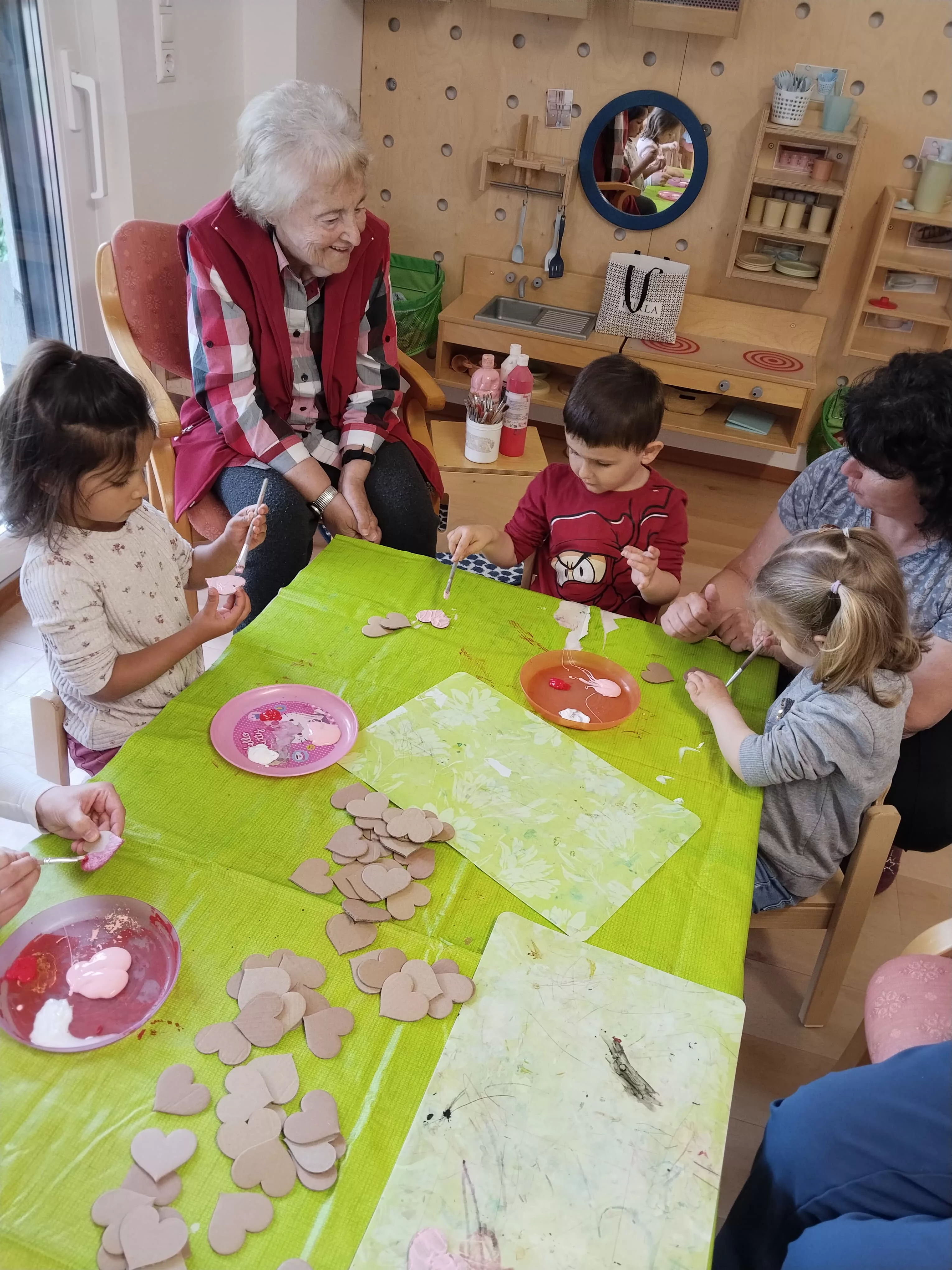 Besonders berührend ist, wie selbstverständlich die Kinder inzwischen auf unsere Seniorinnen zugehen. Sie helfen beim Finden des richtigen Weges, begleiten aufmerksam – und die kräftigeren unter ihnen packen sogar beim Stühlerücken mit an.