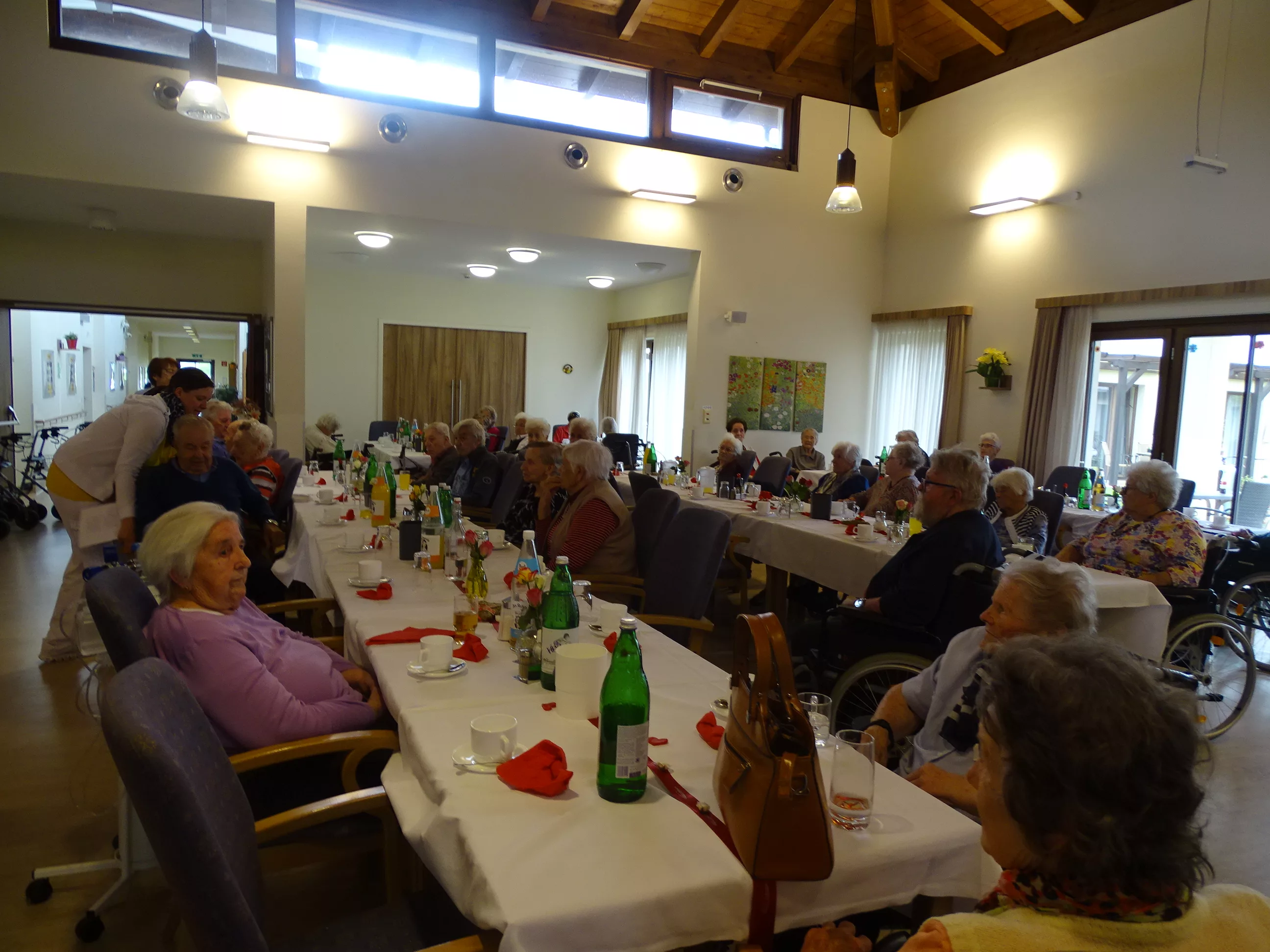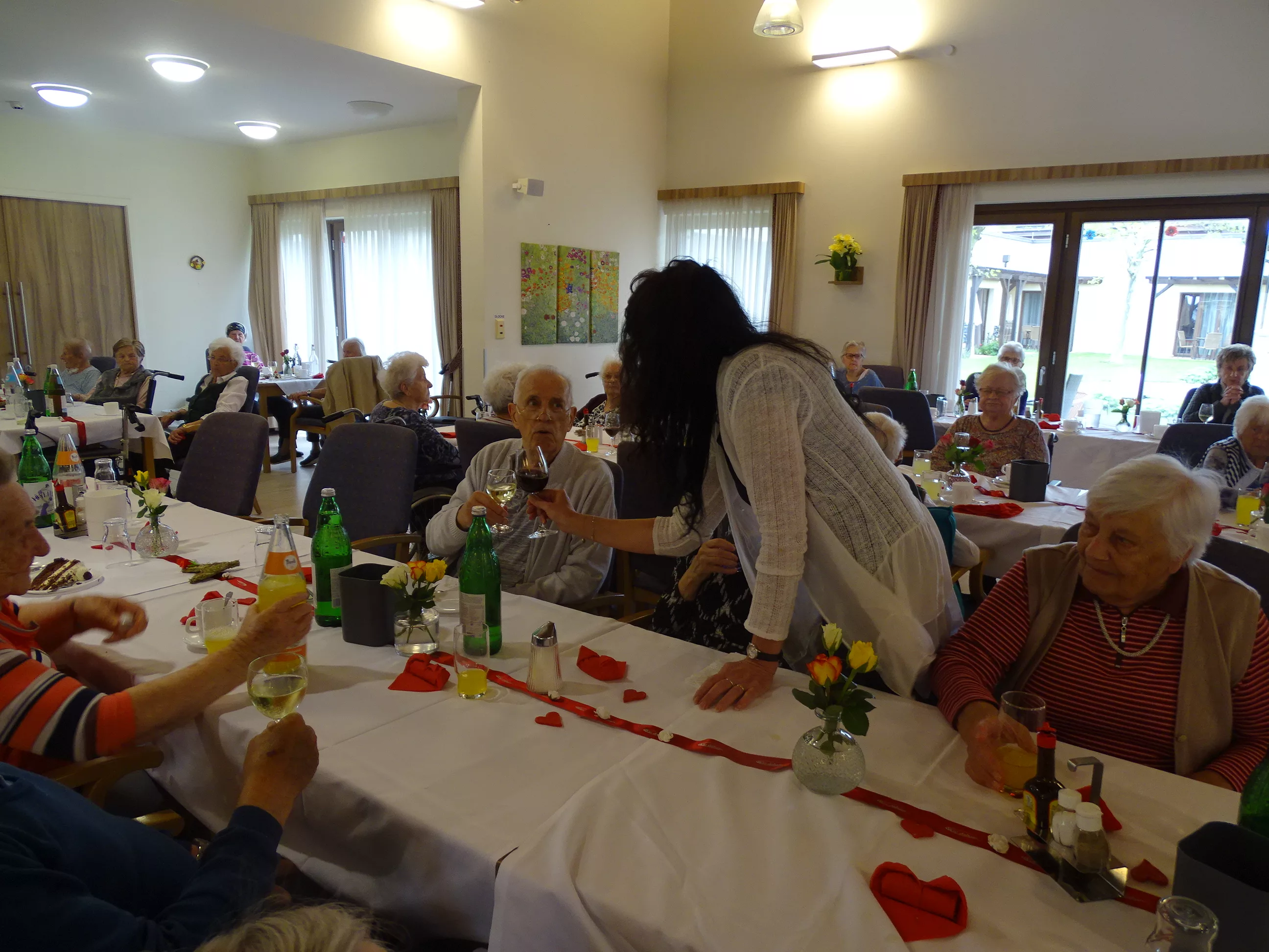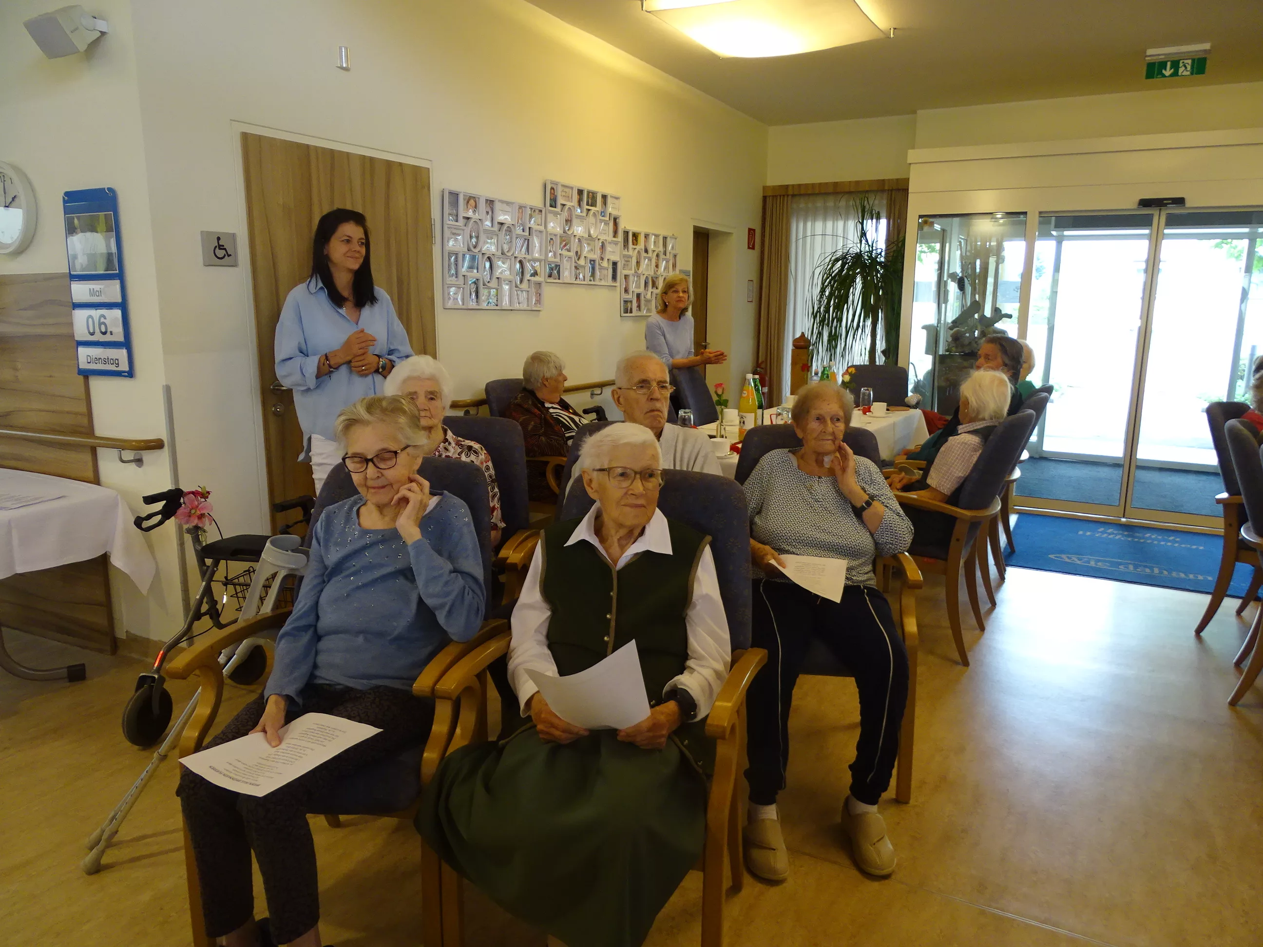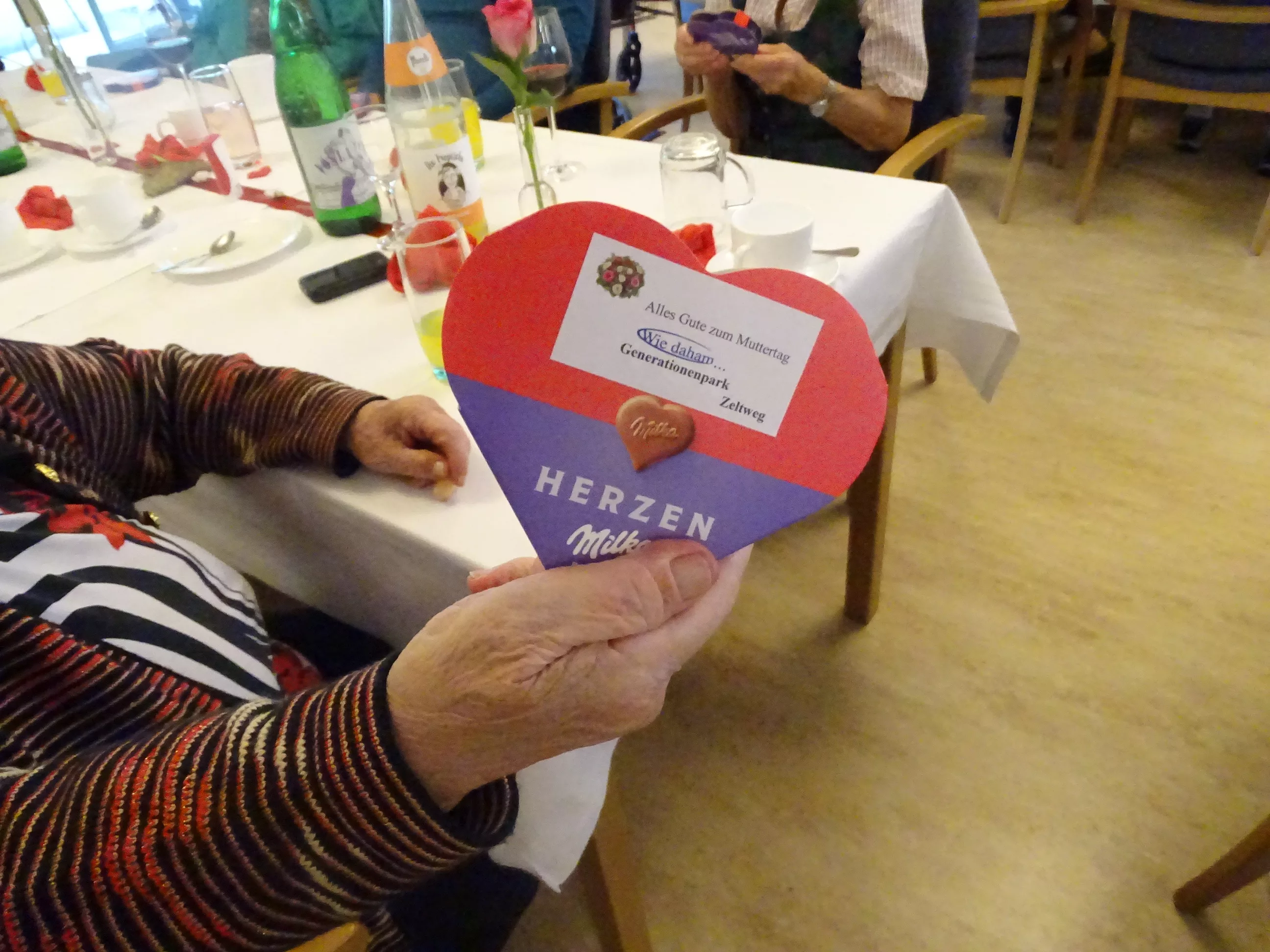 Am 06.05.2025 feierten wir im Generationenpark Muttertag, unsere Mütter, Omas und Uromas wurden gefeiert und wir ließen sie hochleben. Es gab ein wunderbares Muttertagsmenü im wunderschön dekoriertem Speisesaal. Unser hauseigener Chor unter der Leitung von Sabine brachte mit toller Stimme Schwung in unser Haus, unsere Gäste aus der Tagesstätte durften natürlich auch nicht fehlen, Evi und Toni lasen Muttertagsgedichte und wir alle lauschten erfreut zu!