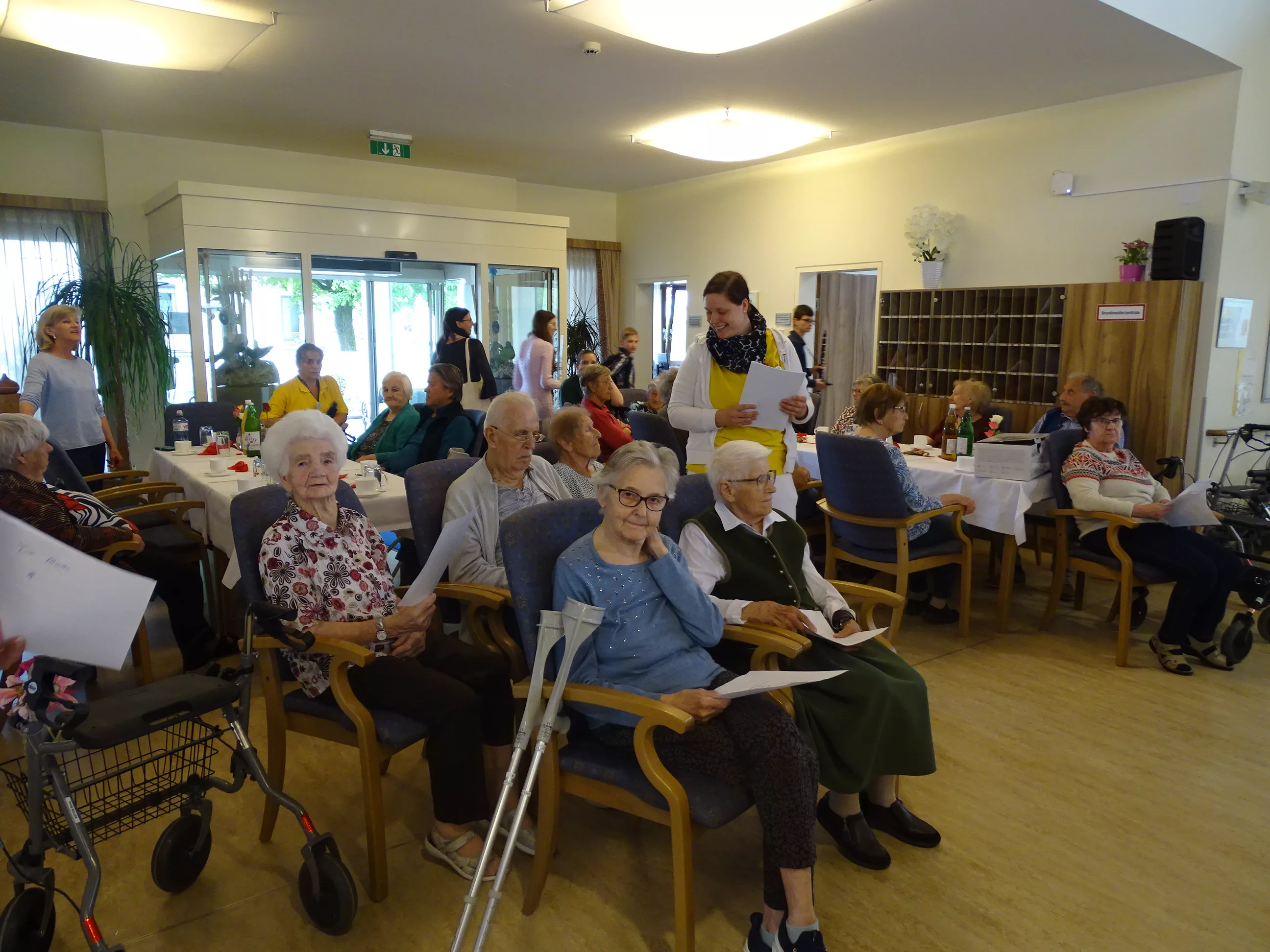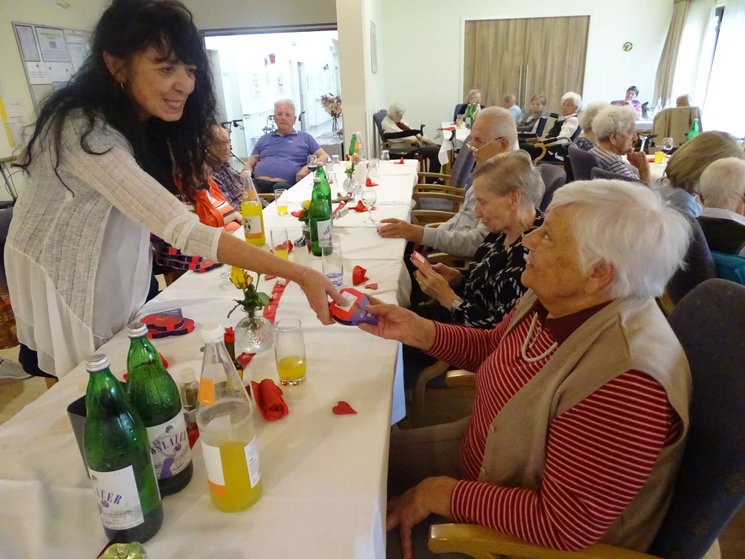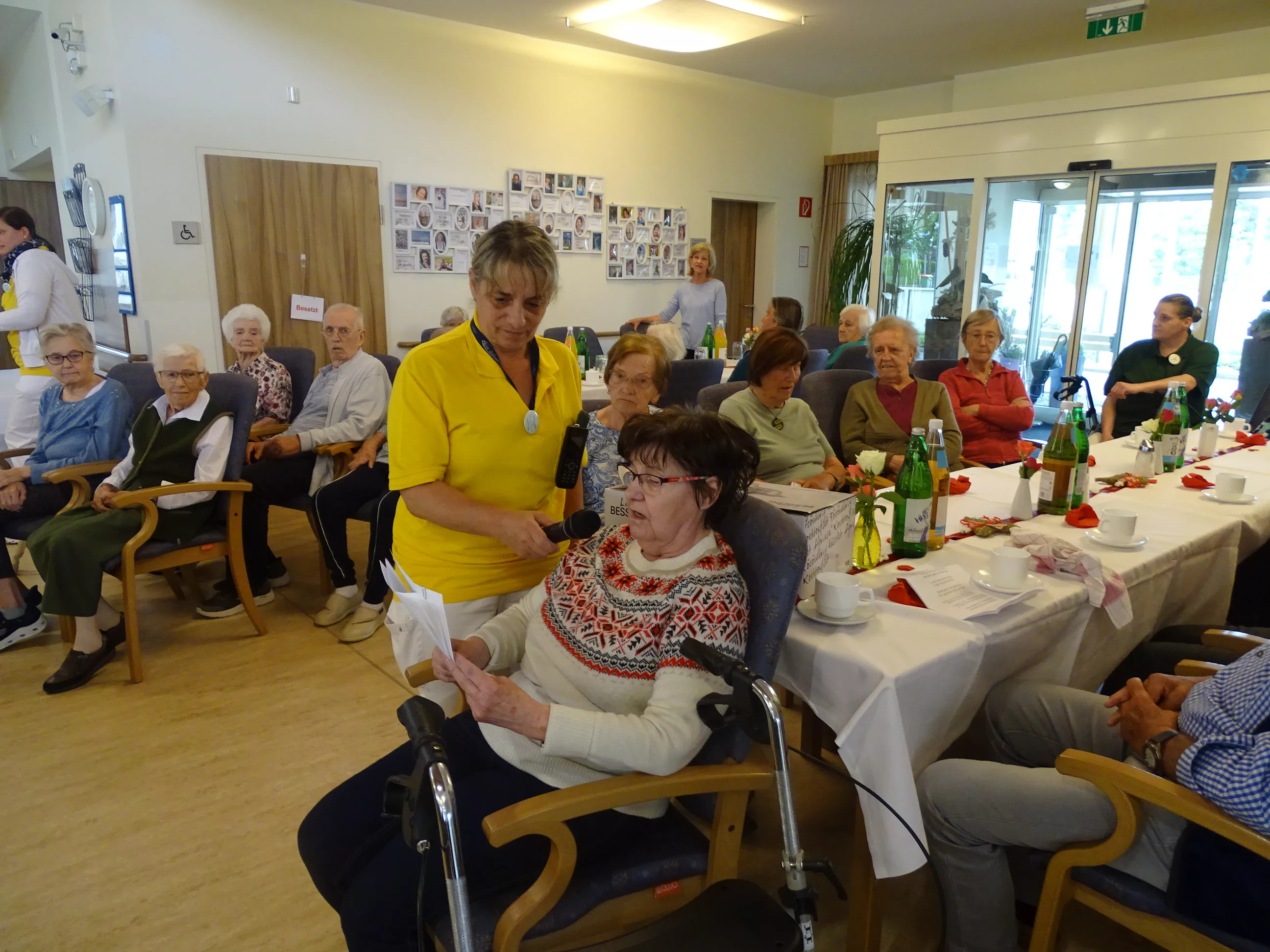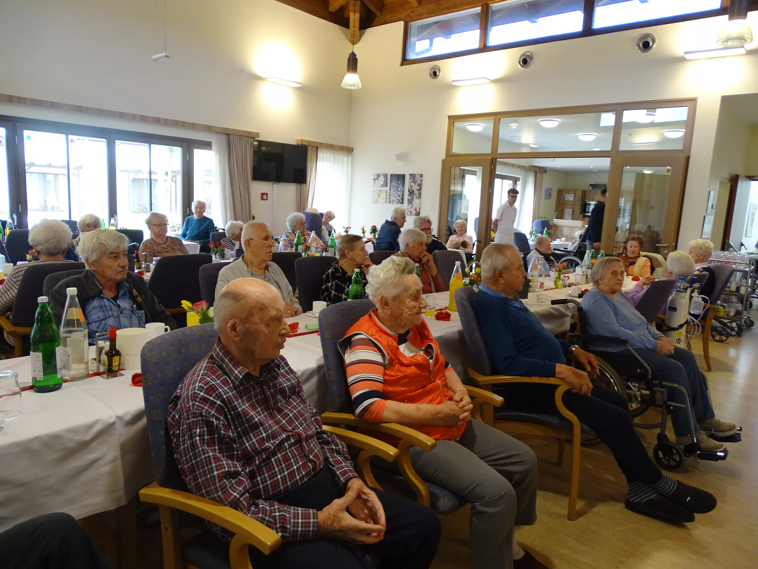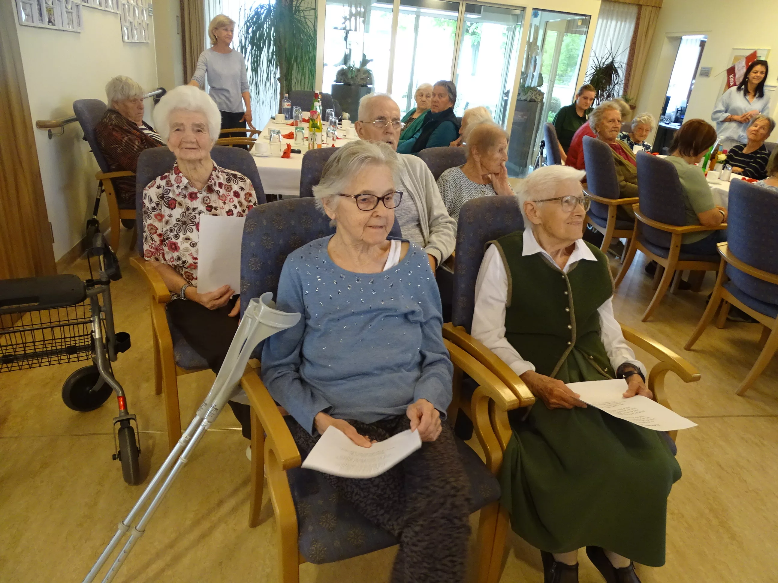 Am 06.05.2025 feierten wir im Generationenpark Muttertag, unsere Mütter, Omas und Uromas wurden gefeiert und wir ließen sie hochleben. Es gab ein wunderbares Muttertagsmenü im wunderschön dekoriertem Speisesaal. Unser hauseigener Chor unter der Leitung von Sabine brachte mit toller Stimme Schwung in unser Haus, unsere Gäste aus der Tagesstätte durften natürlich auch nicht fehlen, Evi und Toni lasen Muttertagsgedichte und wir alle lauschten erfreut zu!