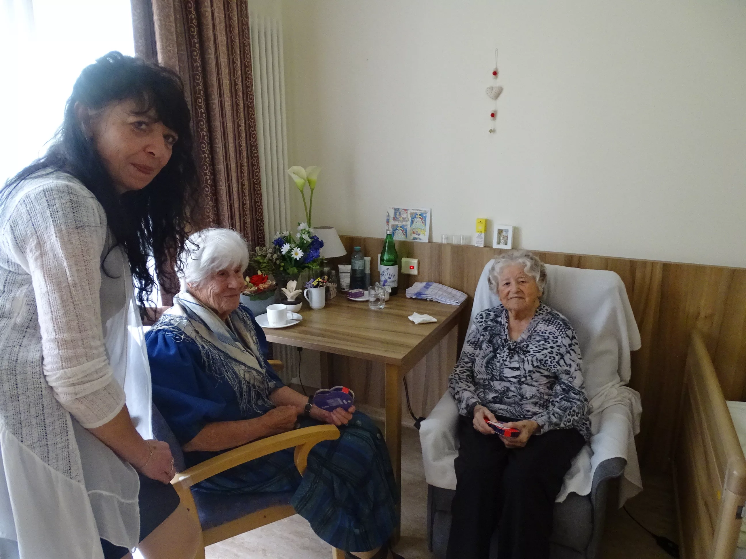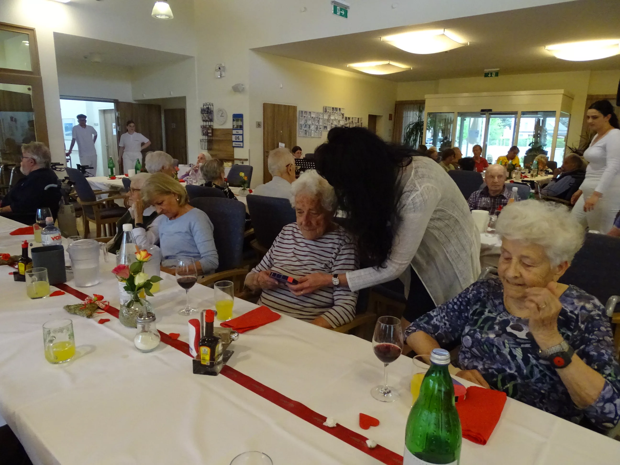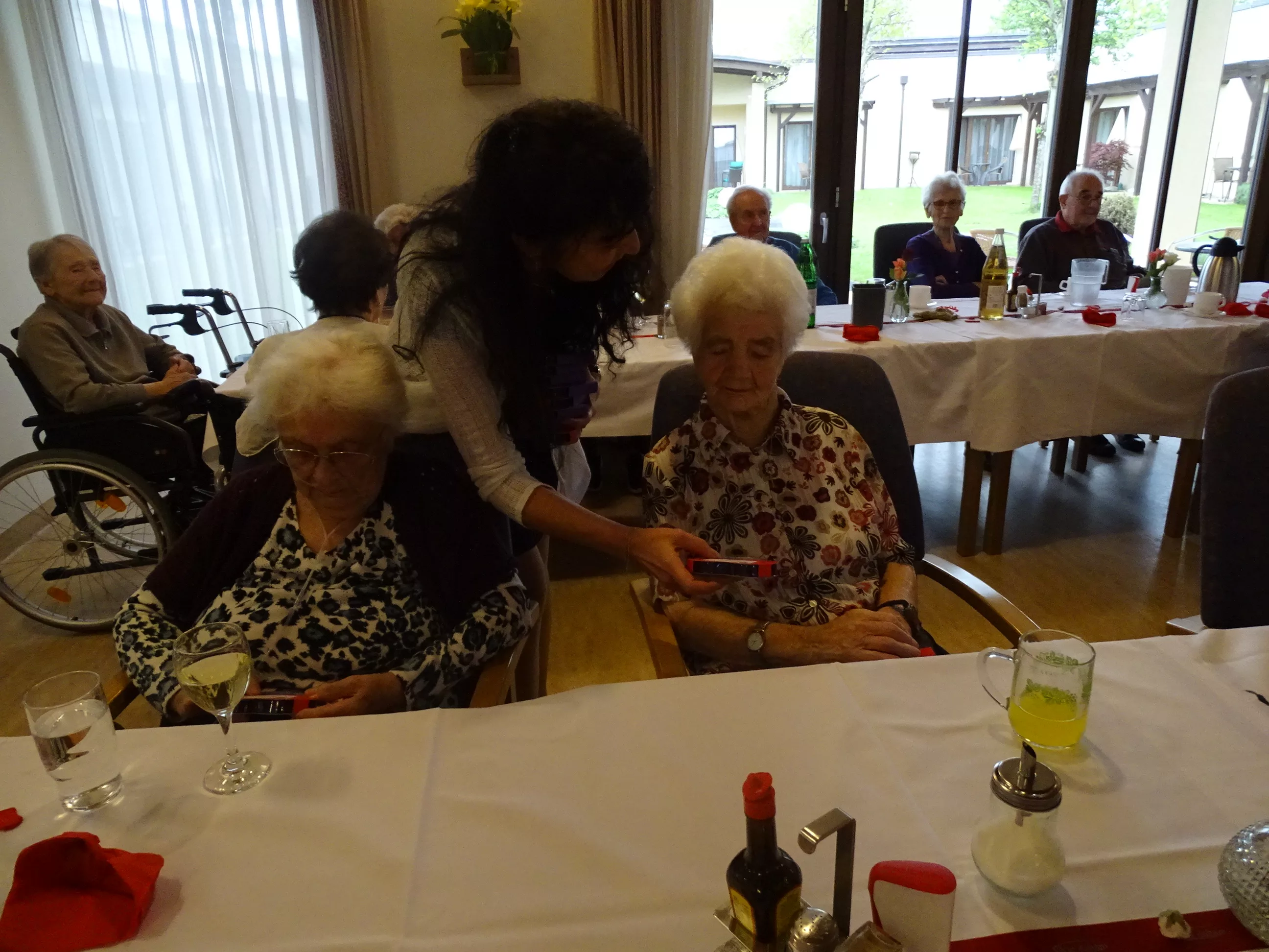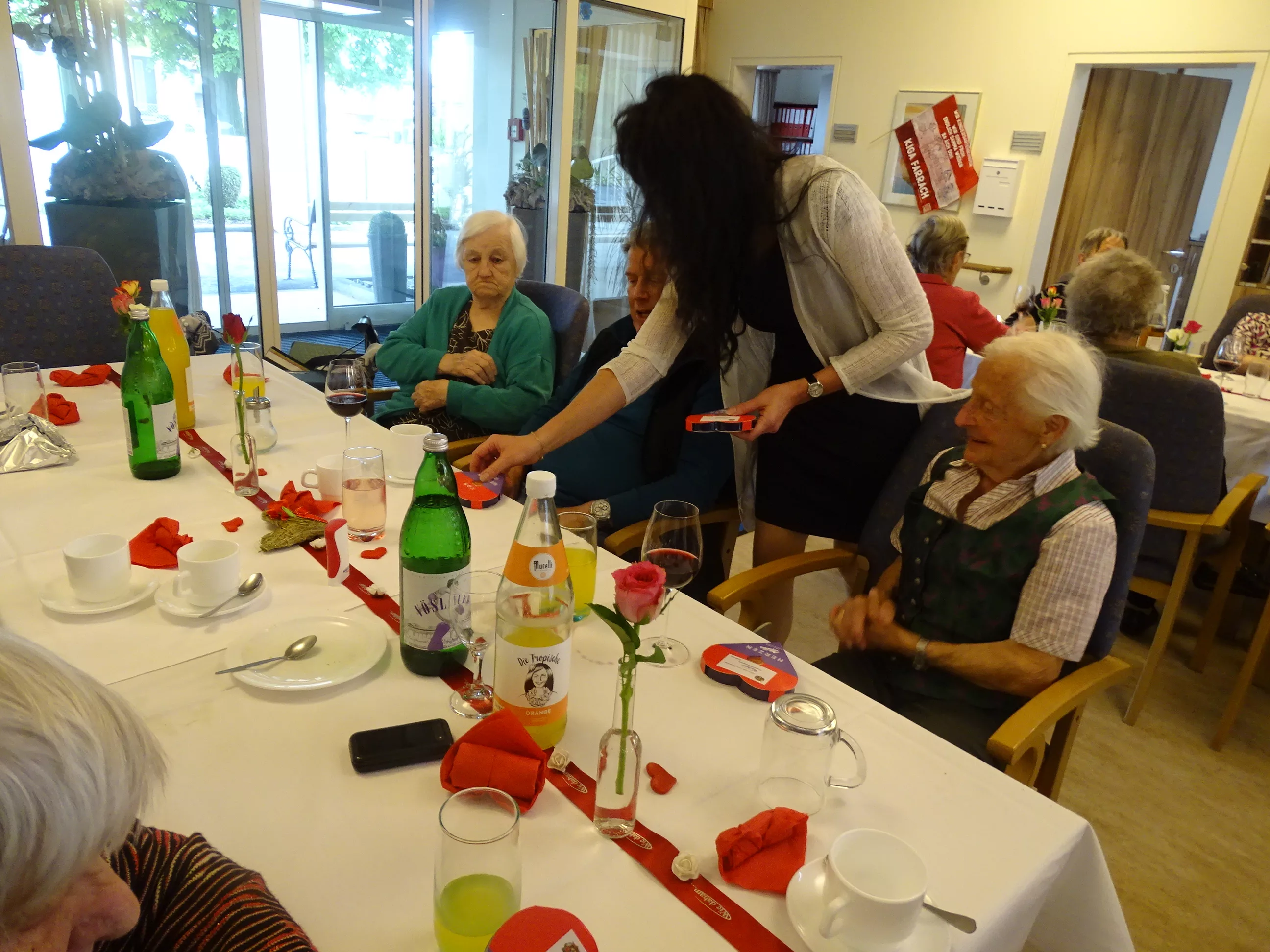 Nach dem Essen besuchte uns das Trio Alseto und unsere BewohnerInnen erfreuten sich sehr an ihrer Musik! Unsere Claudia backte sechs verschiedene Torten für unsere Feier, eine besser wie die andere! Mit einem Achterl Wein wurde auf die Mamas, Omas und Uromas angestossen. Es war wieder ein wunderbares Fest im „wie daham Generationenpark Zeltweg“!