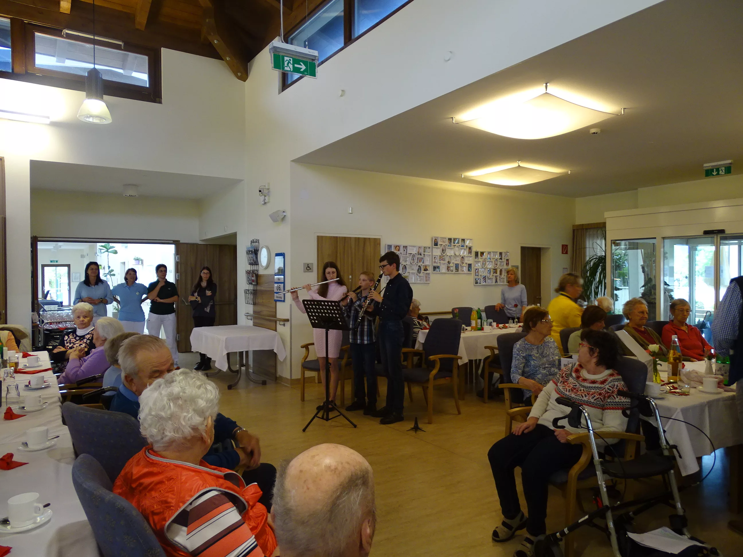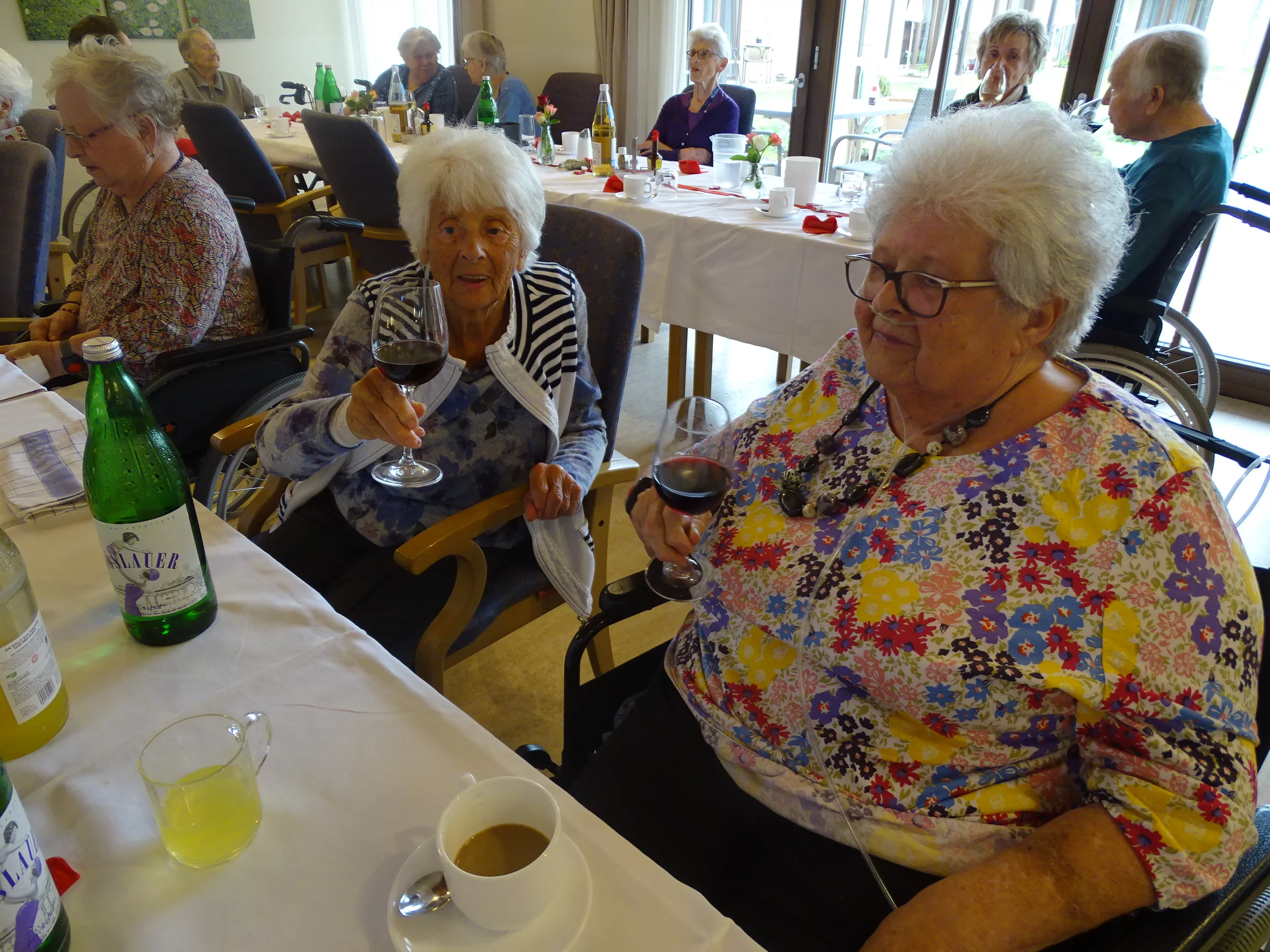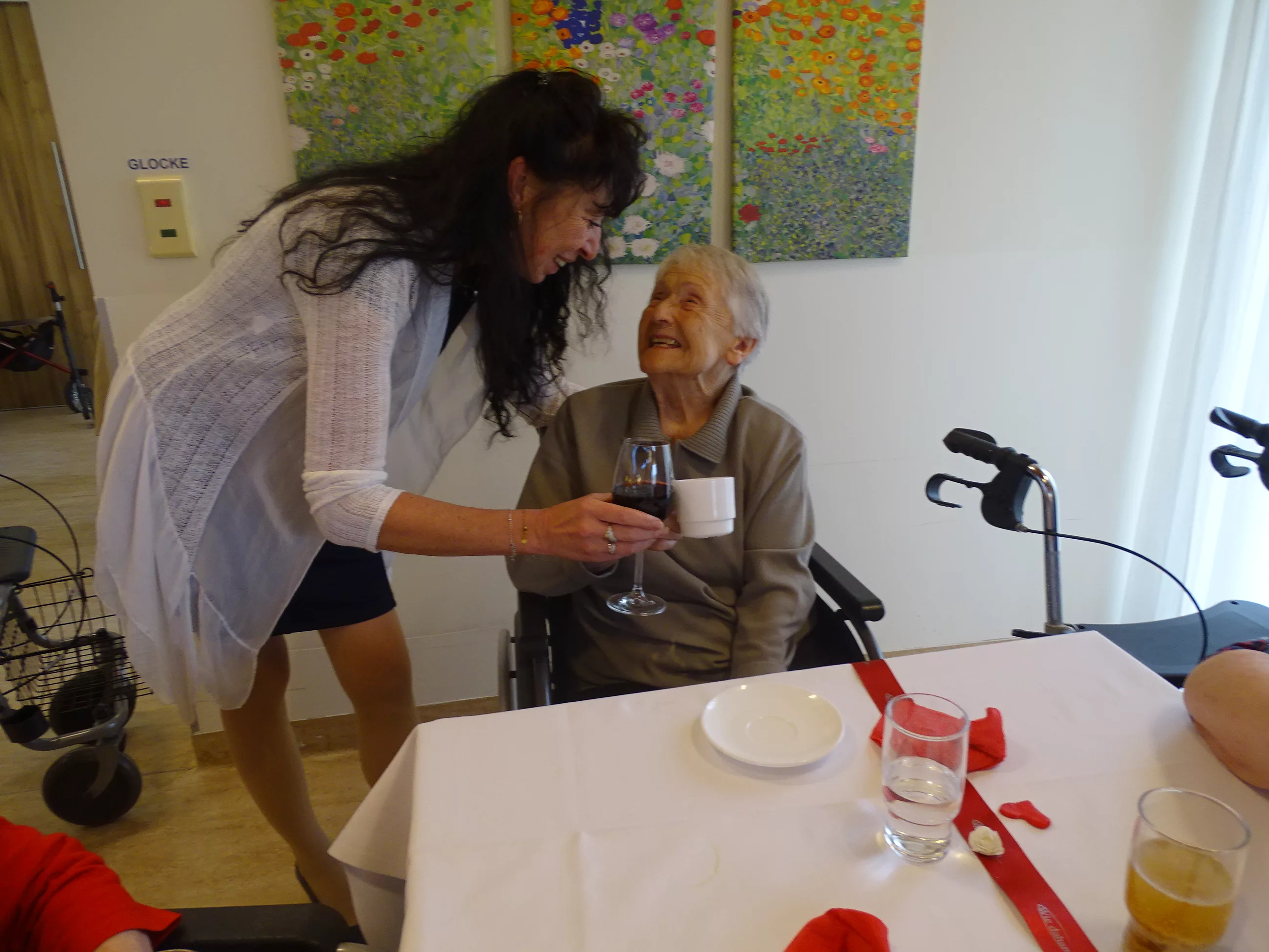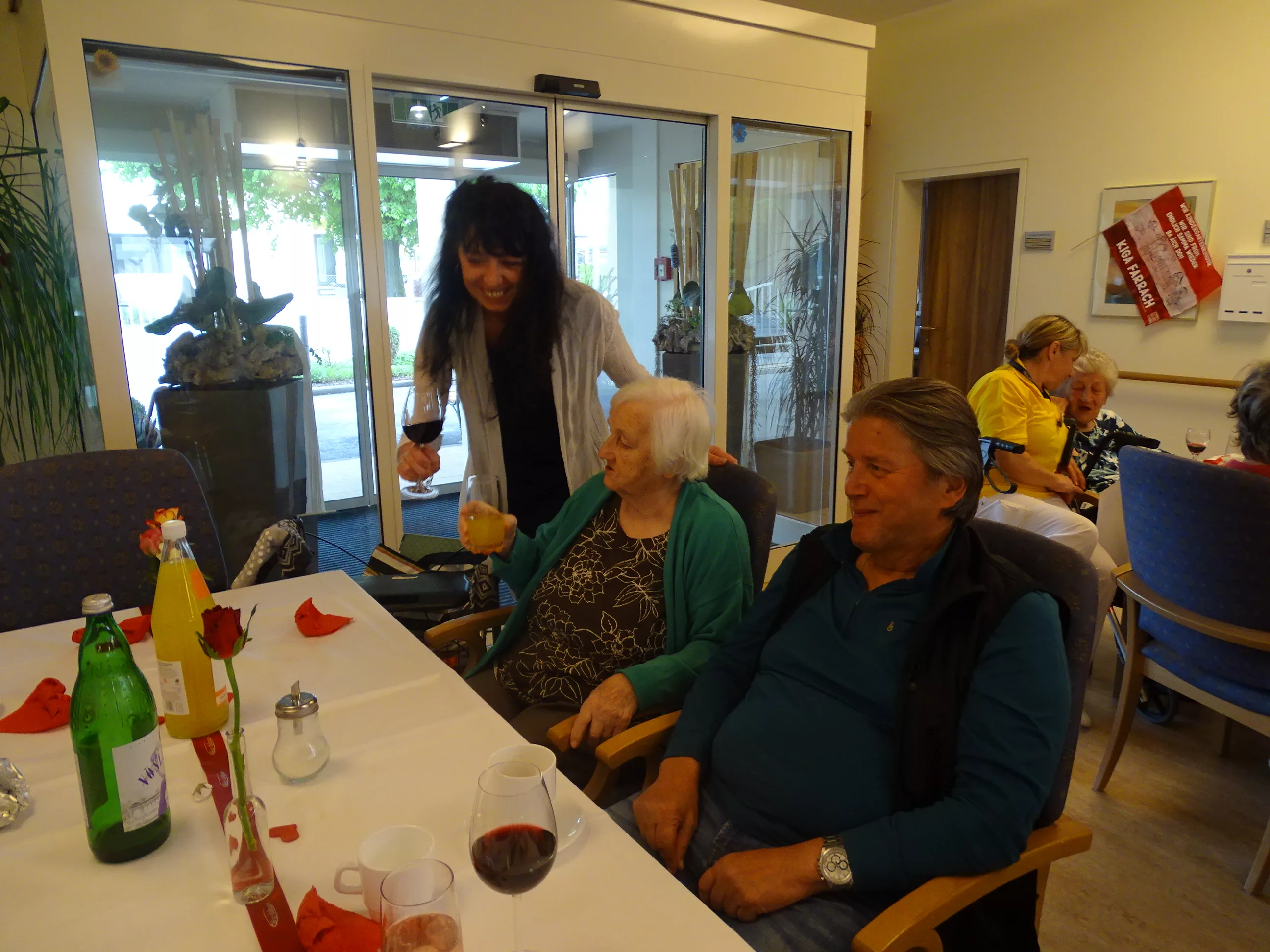Nach dem Essen besuchte uns das Trio Alseto und unsere BewohnerInnen erfreuten sich sehr an ihrer Musik! Unsere Claudia backte sechs verschiedene Torten für unsere Feier, eine besser wie die andere! Mit einem Achterl Wein wurde auf die Mamas, Omas und Uromas angestossen. Es war wieder ein wunderbares Fest im „wie daham Generationenpark Zeltweg“!