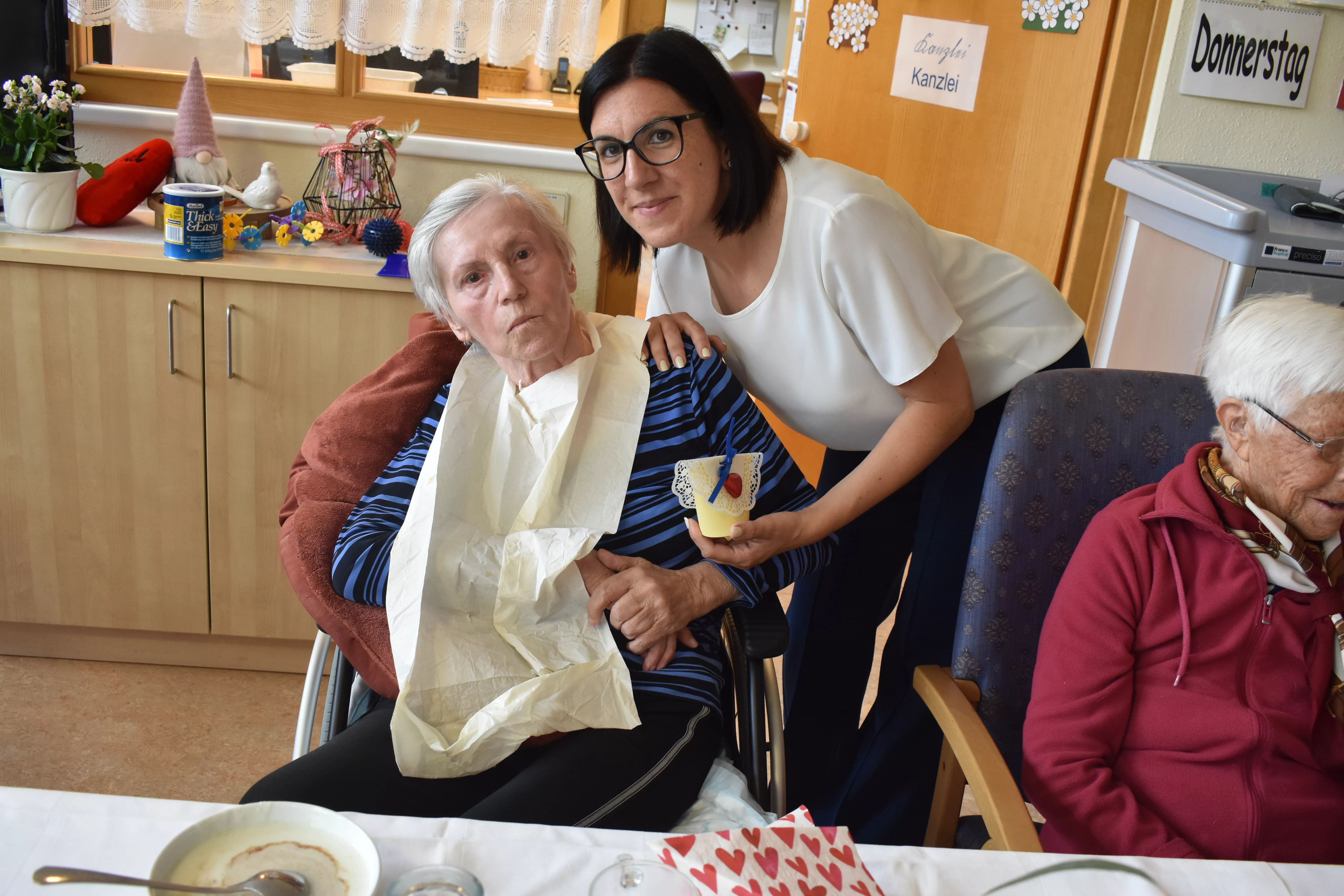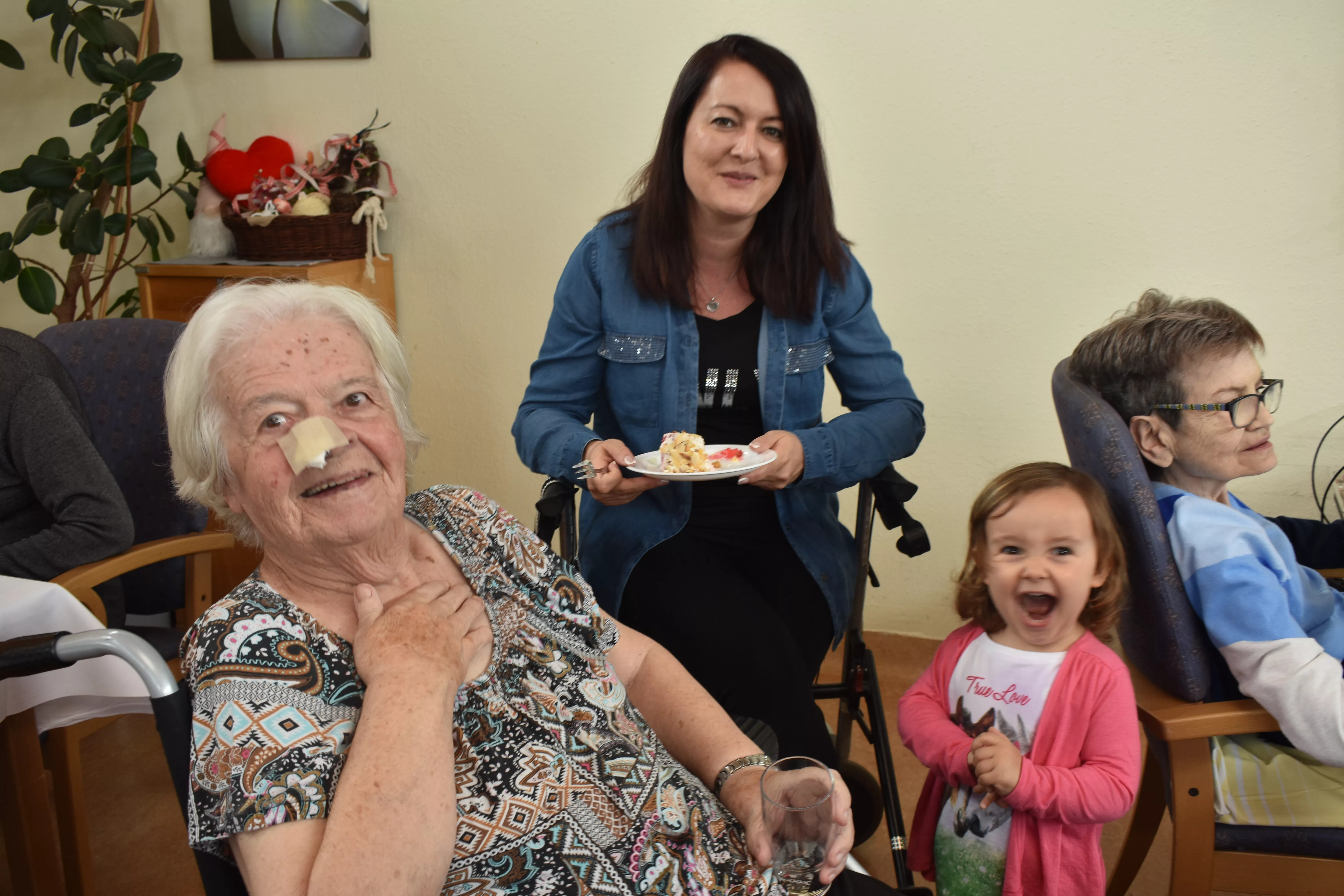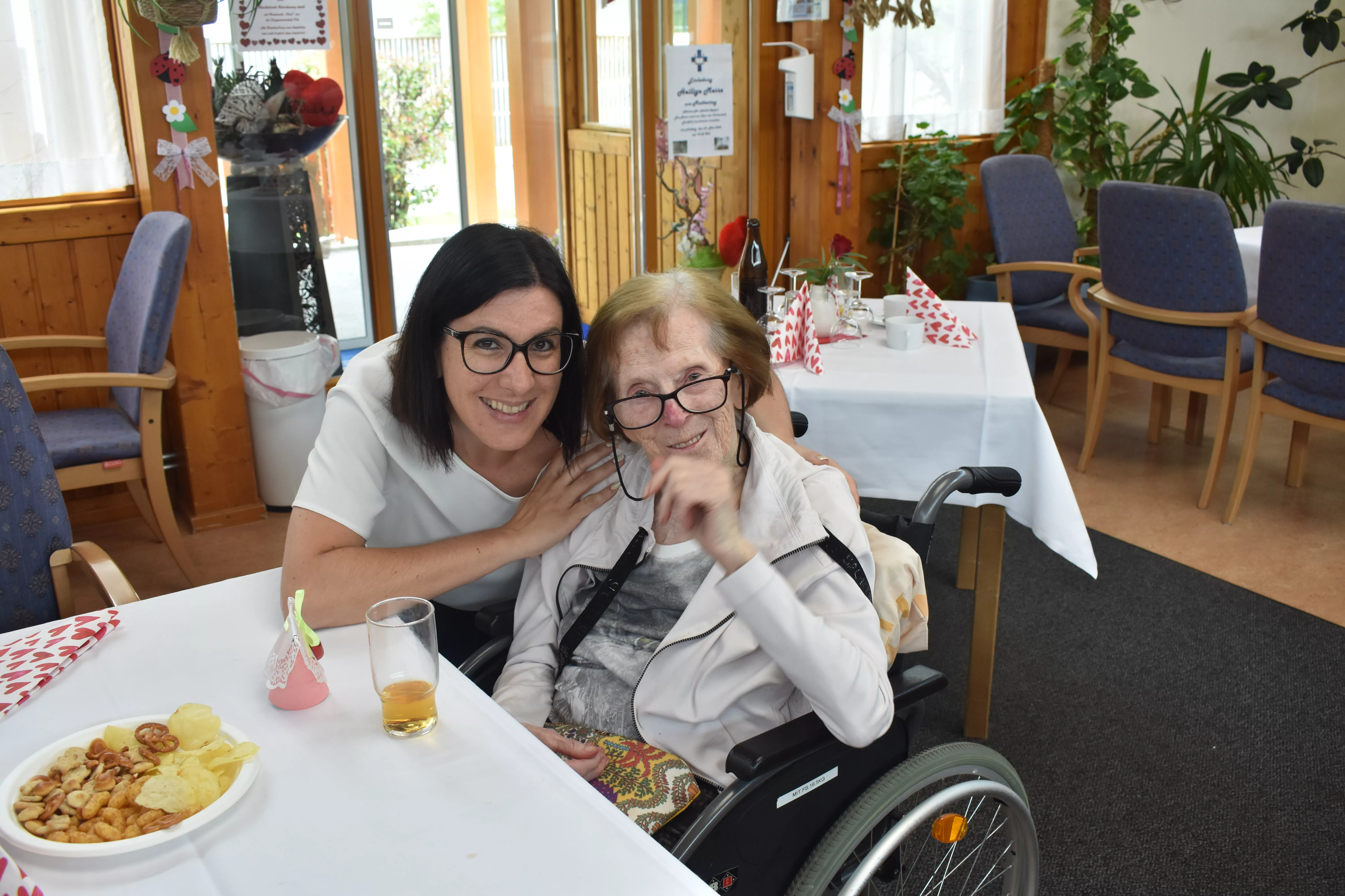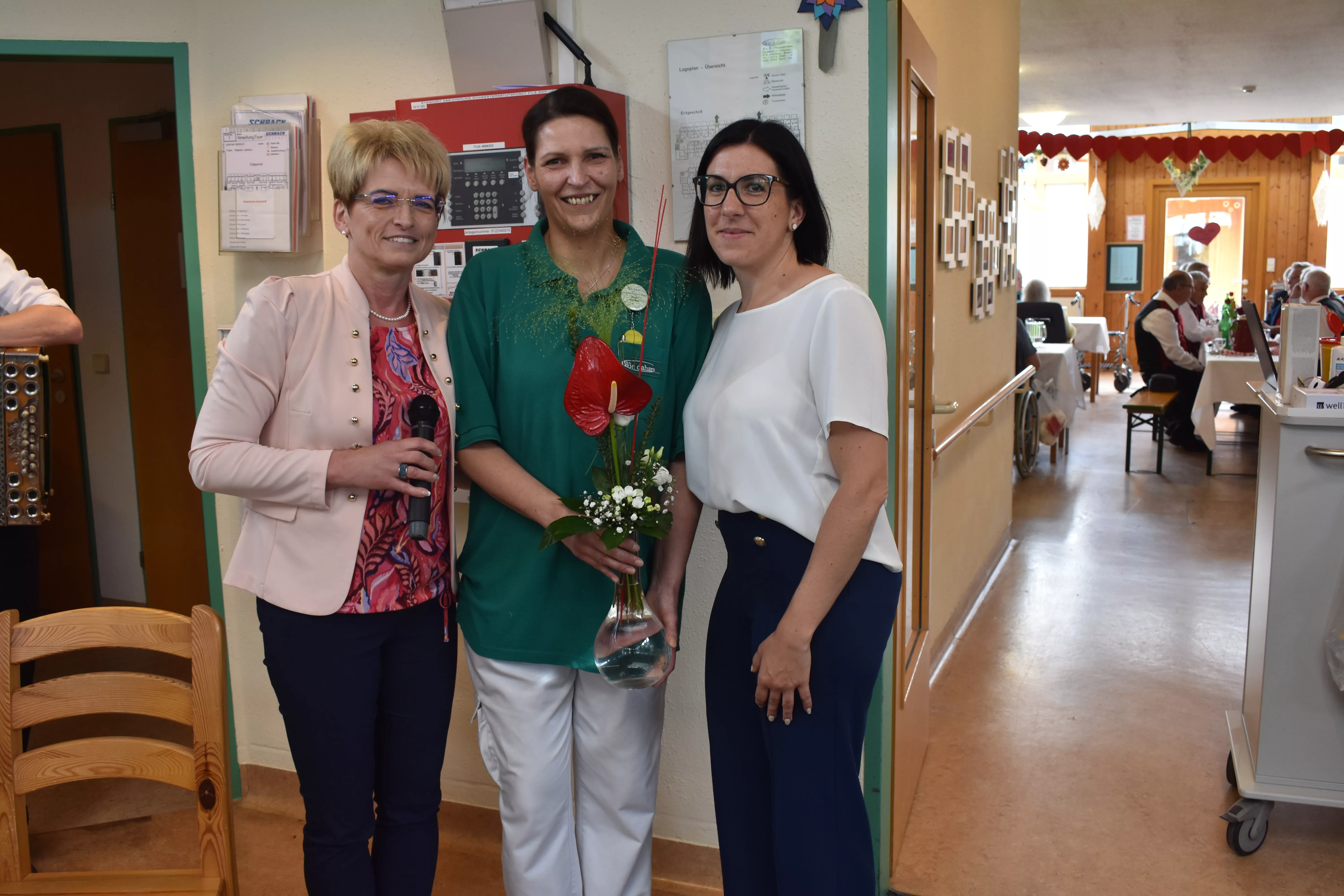 Ein Höhepunkt an diesem Nachmittag war das 5jährige Jubiläum von Frau Stocker Nicole, die unser Küchenteam seit Mai 2020 tatkräftig und immer gut gelaunt unterstützt. Mit einem Blumenstrauß bedankten wir uns für ihre Treue und ihren Einsatz.