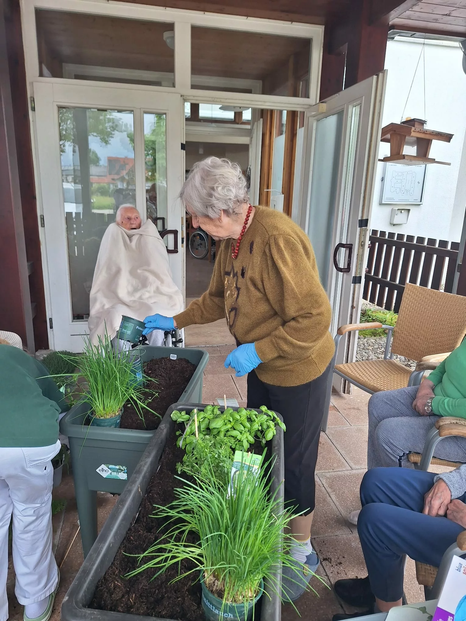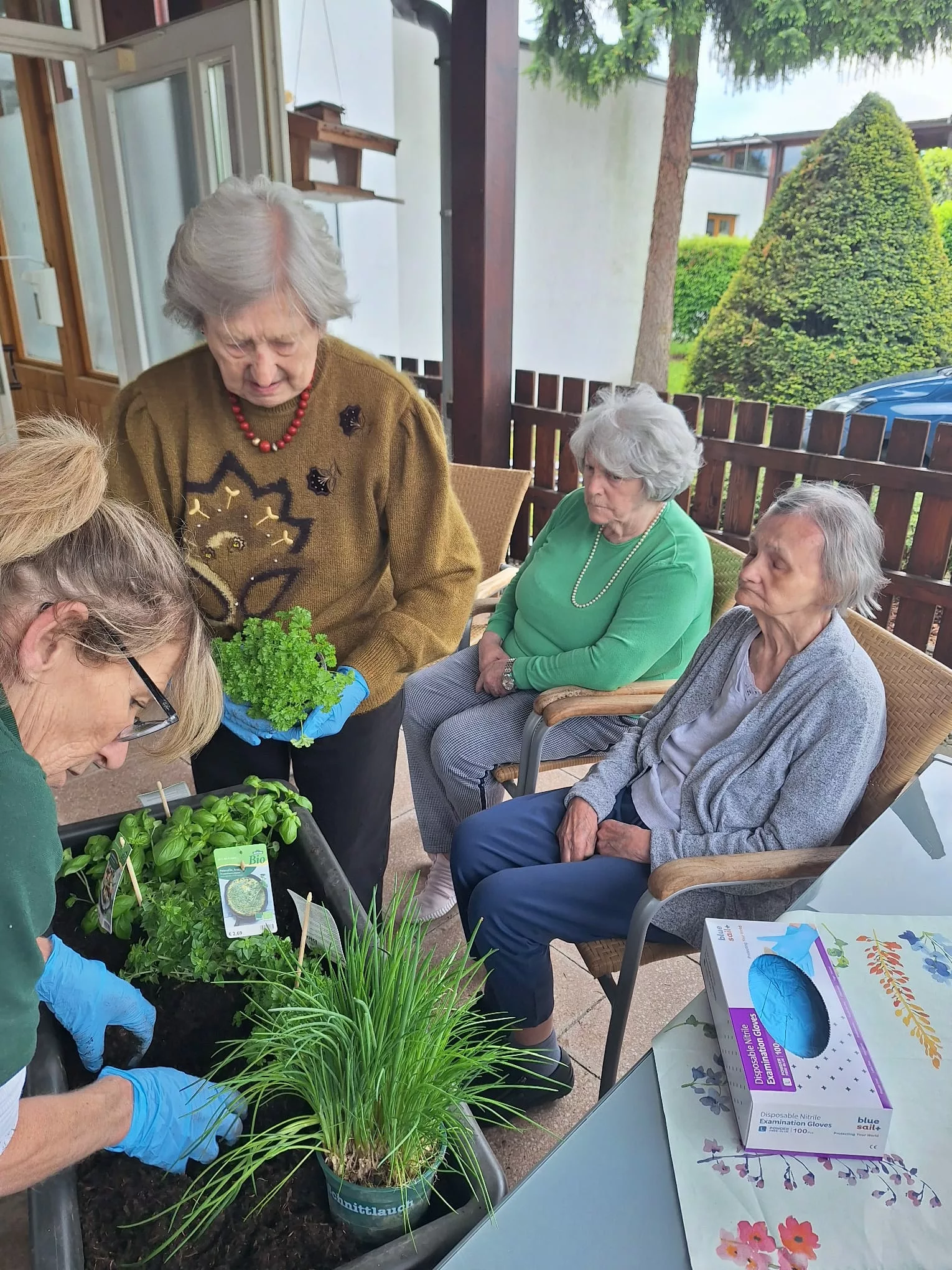 Im Haus wurde kürzlich ein ganz besonderes Projekt umgesetzt: Unsere Bewohnerinnen und Bewohner setzten gemeinsam verschiedene Kräuter in kleinen Hochbeeten an.