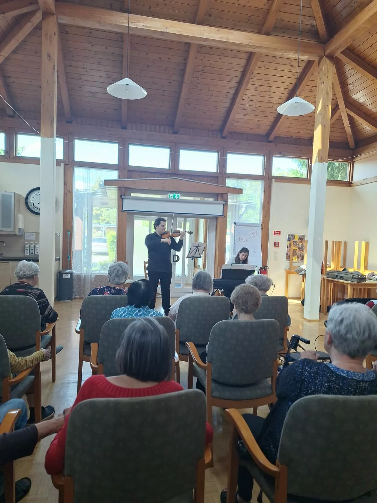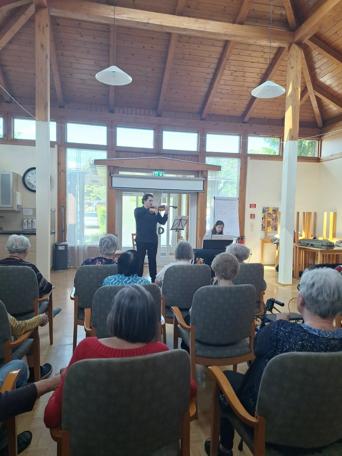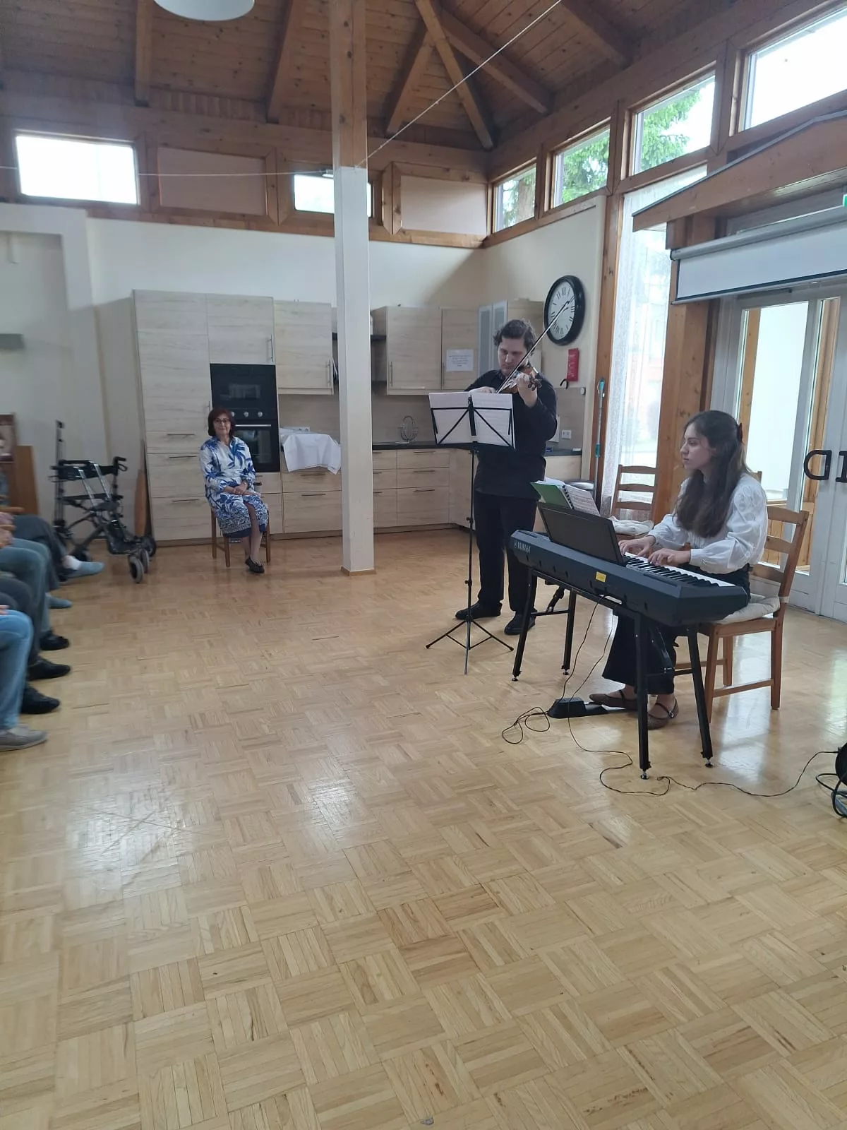 Die beiden Künstler waren perfekt aufeinander eingestimmt und präsentierten ein klangvolles Repertoire, das die Zuhörer sofort in seinen Bann zog. Unsere Bewohner lauschten mit Begeisterung und genossen die Darbietung in vollen Zügen.