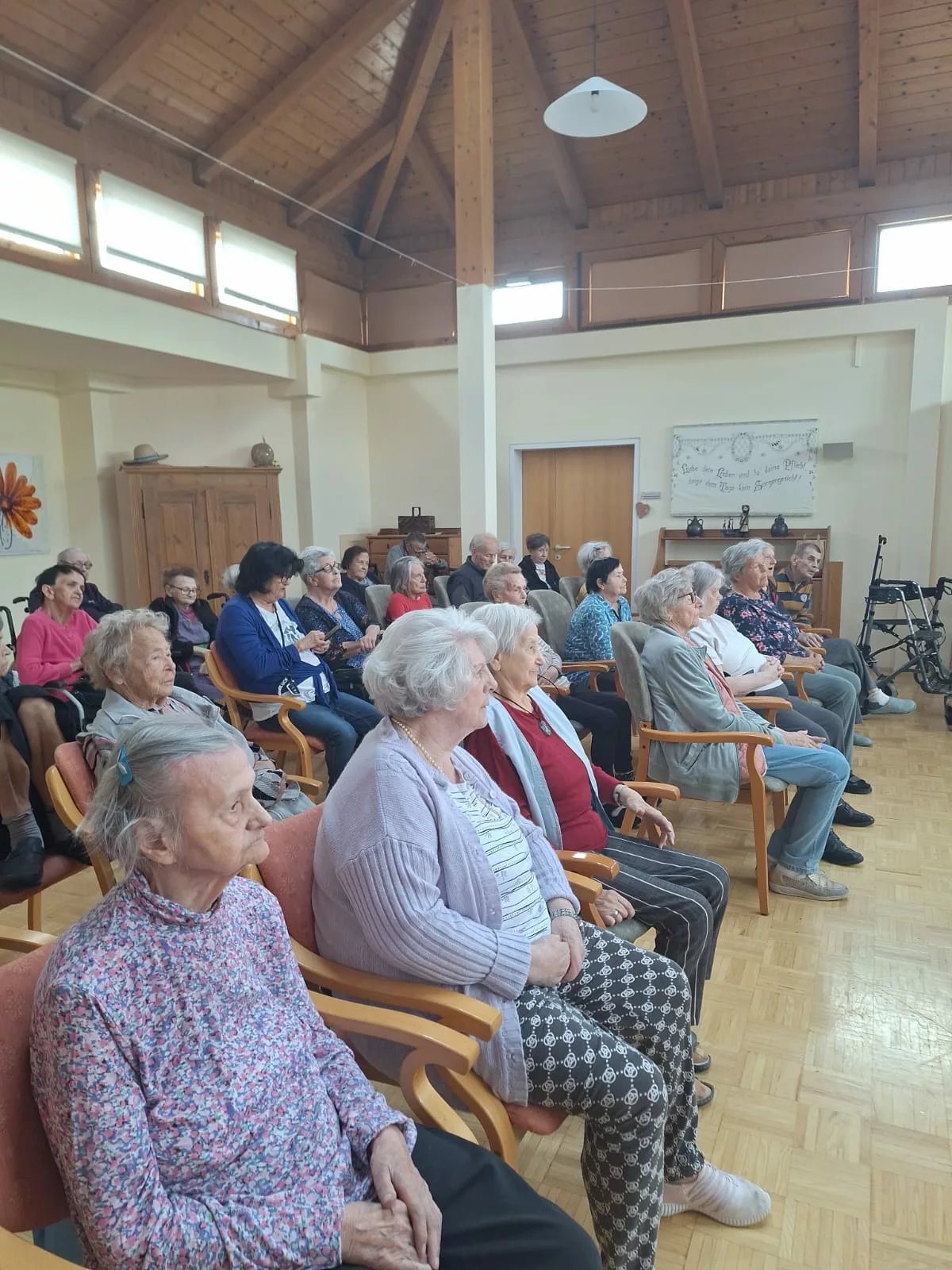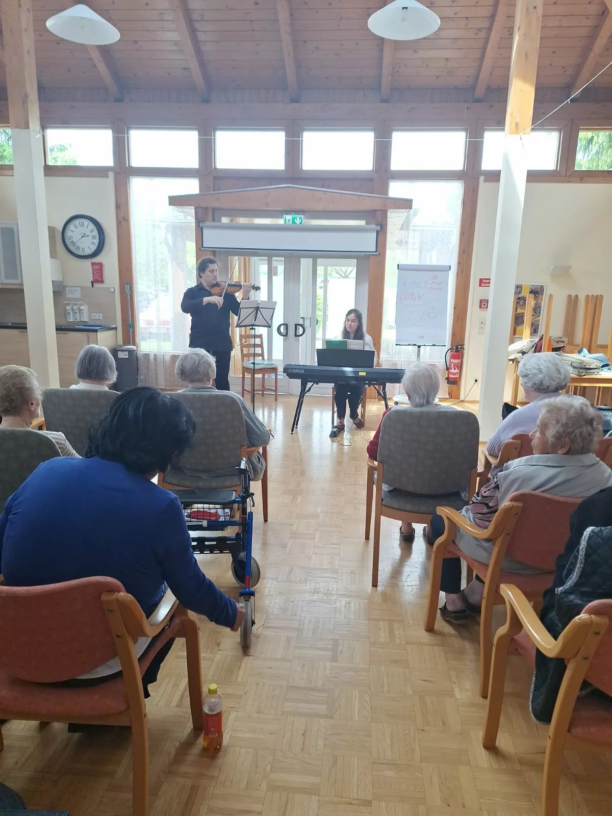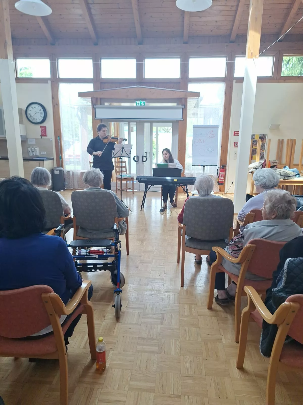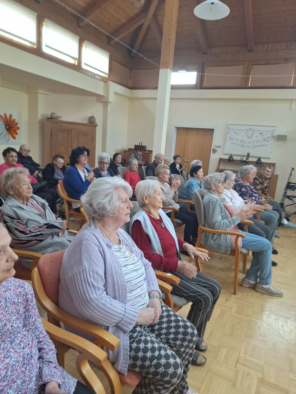 Die beiden Künstler waren perfekt aufeinander eingestimmt und präsentierten ein klangvolles Repertoire, das die Zuhörer sofort in seinen Bann zog. Unsere Bewohner lauschten mit Begeisterung und genossen die Darbietung in vollen Zügen.