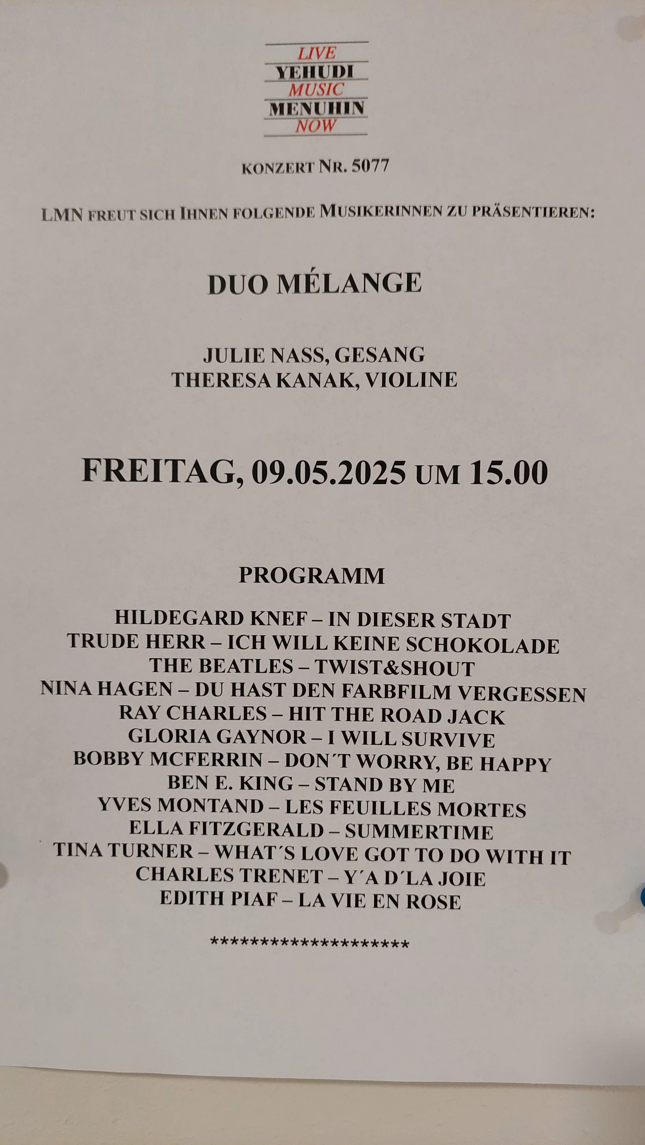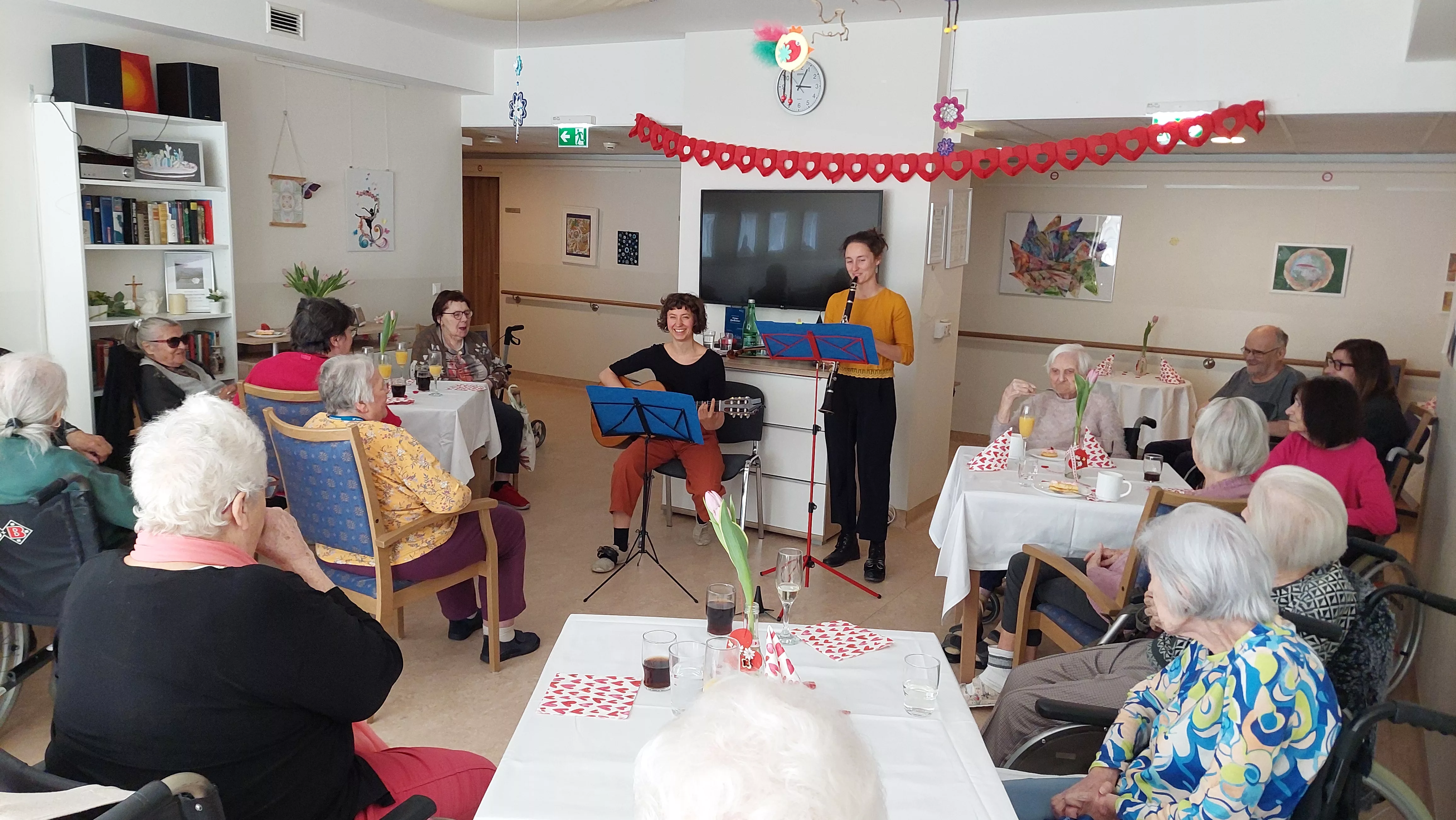 Duo Melange Am Freitag vor Muttertag gab es im Generationenpark ein unterhaltsames Muttertag-Konzert von Duo Melange. Dazu gab es selbstgemachte Mehlspeisen in Form von Herzen.
