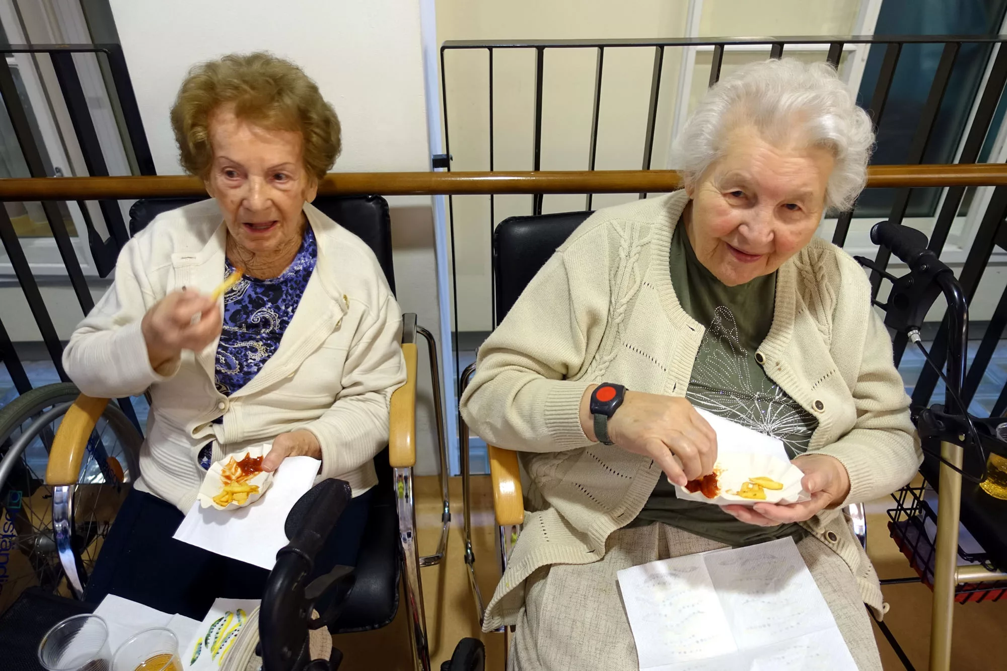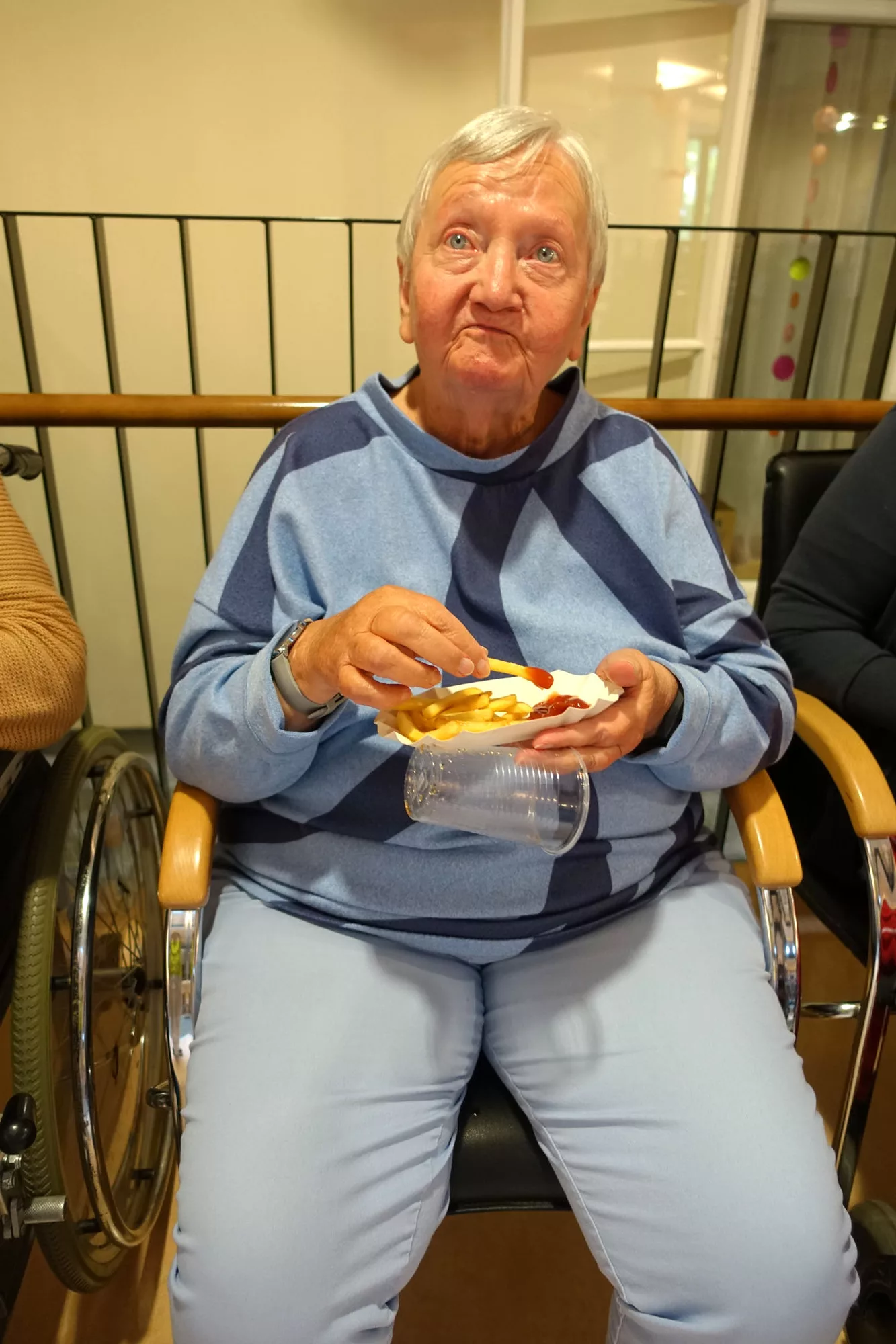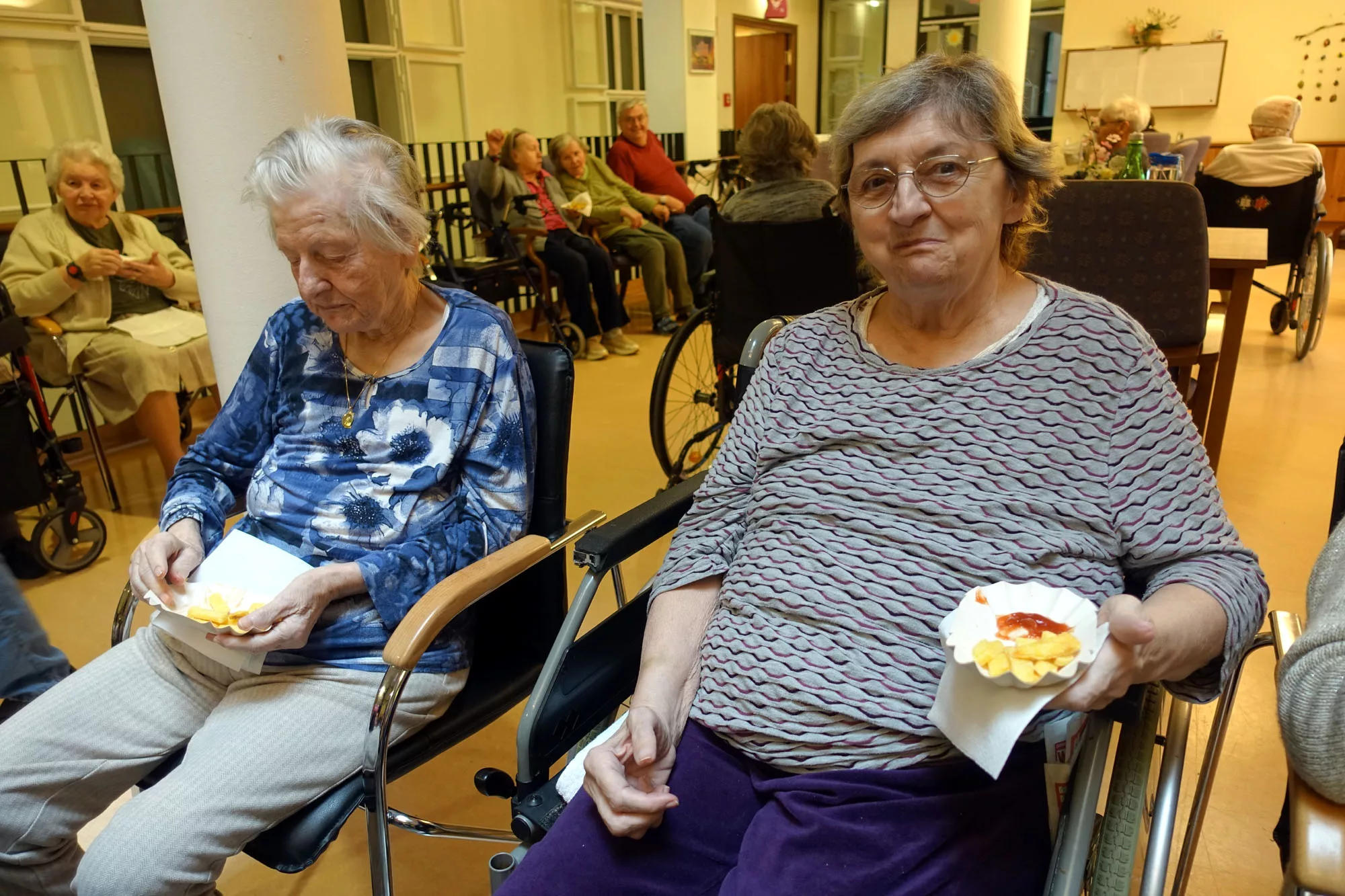 Das Animationsteam bereitete heute Nachmittag den Senioren im „Wie daham…“ Senirenschlössl die allseits beliebten Pommes frites zu. Mehr und mehr Bewohner wurden durch den verführenden Duft der frisch zubereiteten Köstlichkeit angelockt, um sich eine Portion zu holen.
