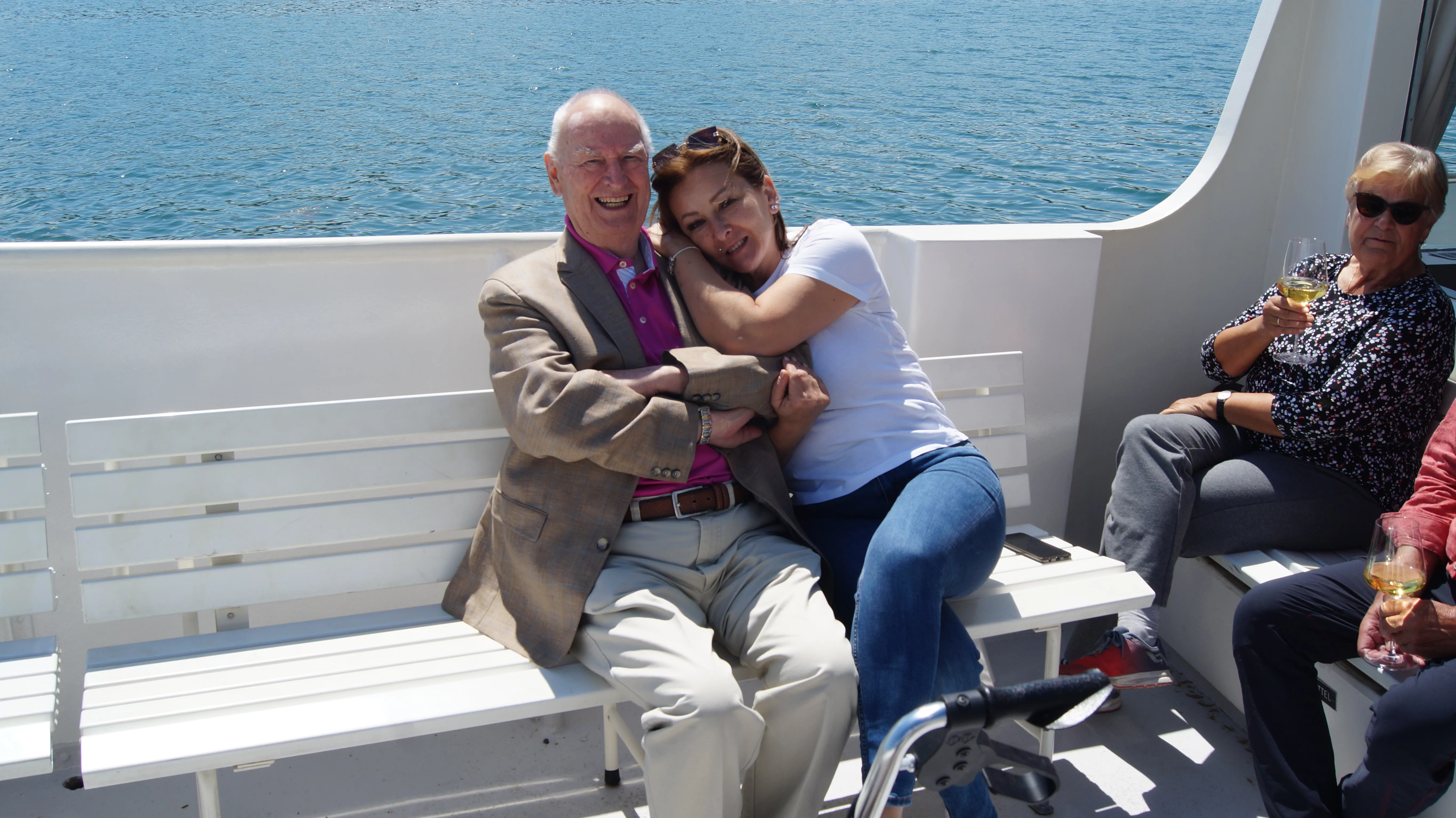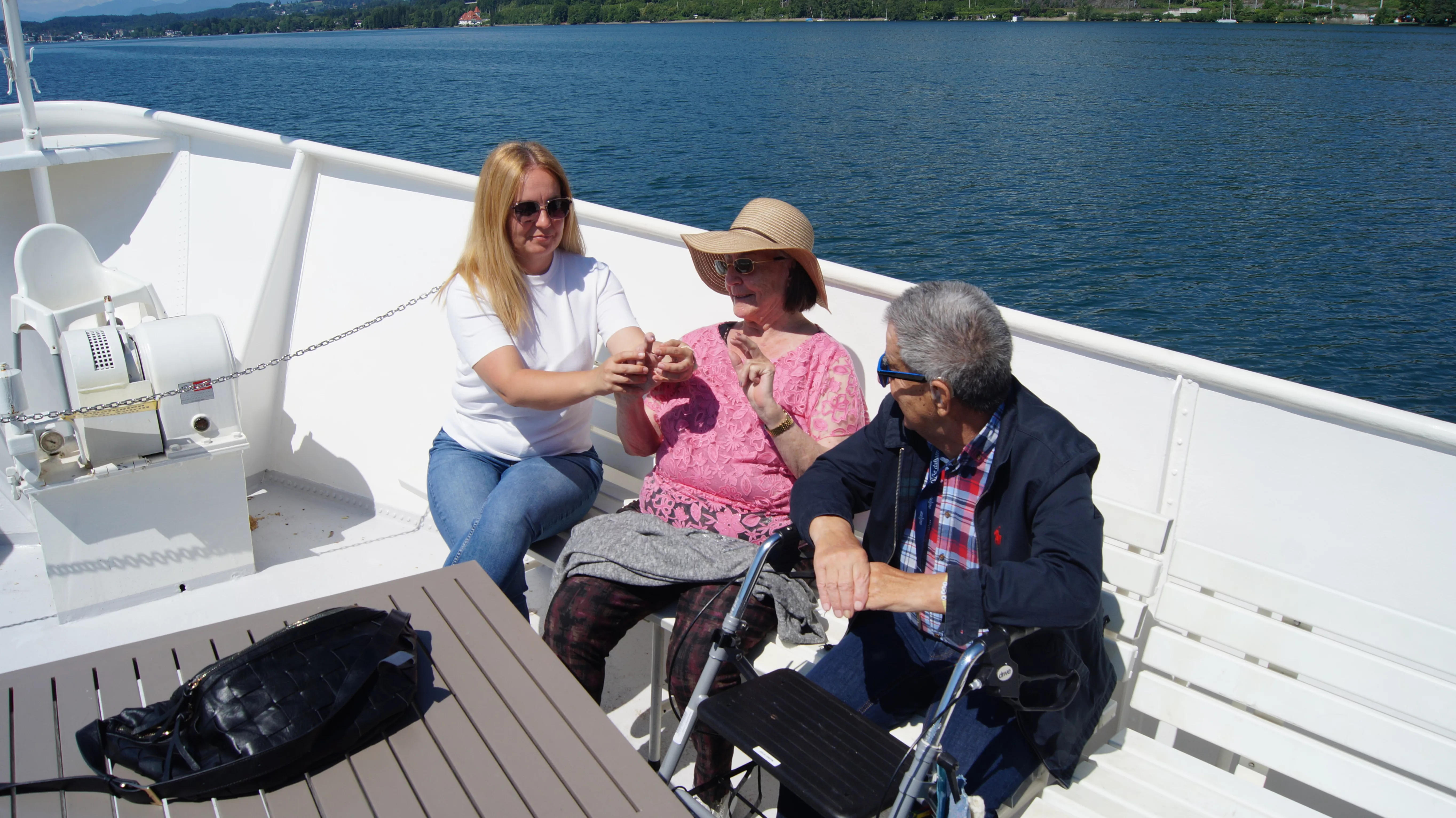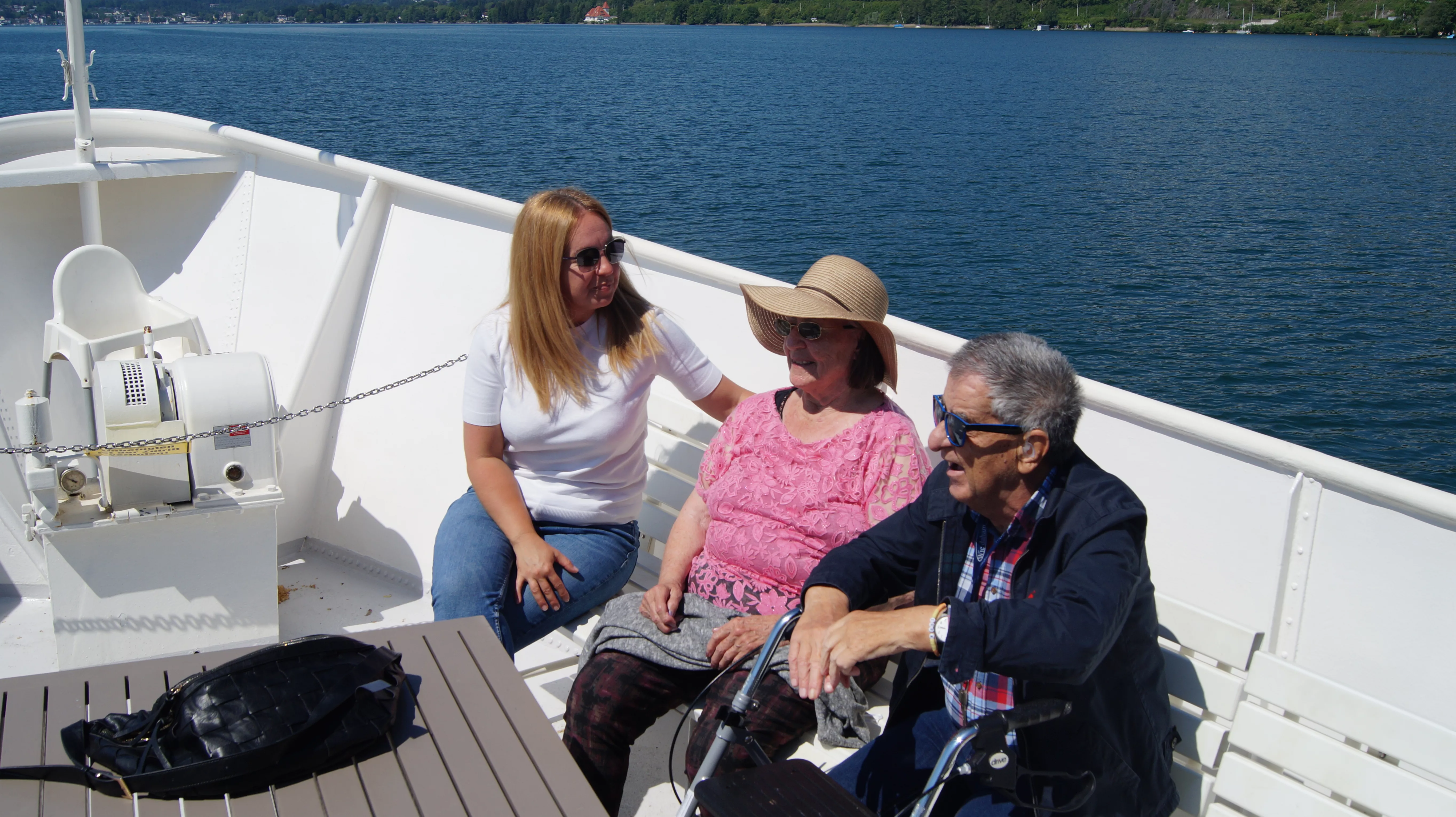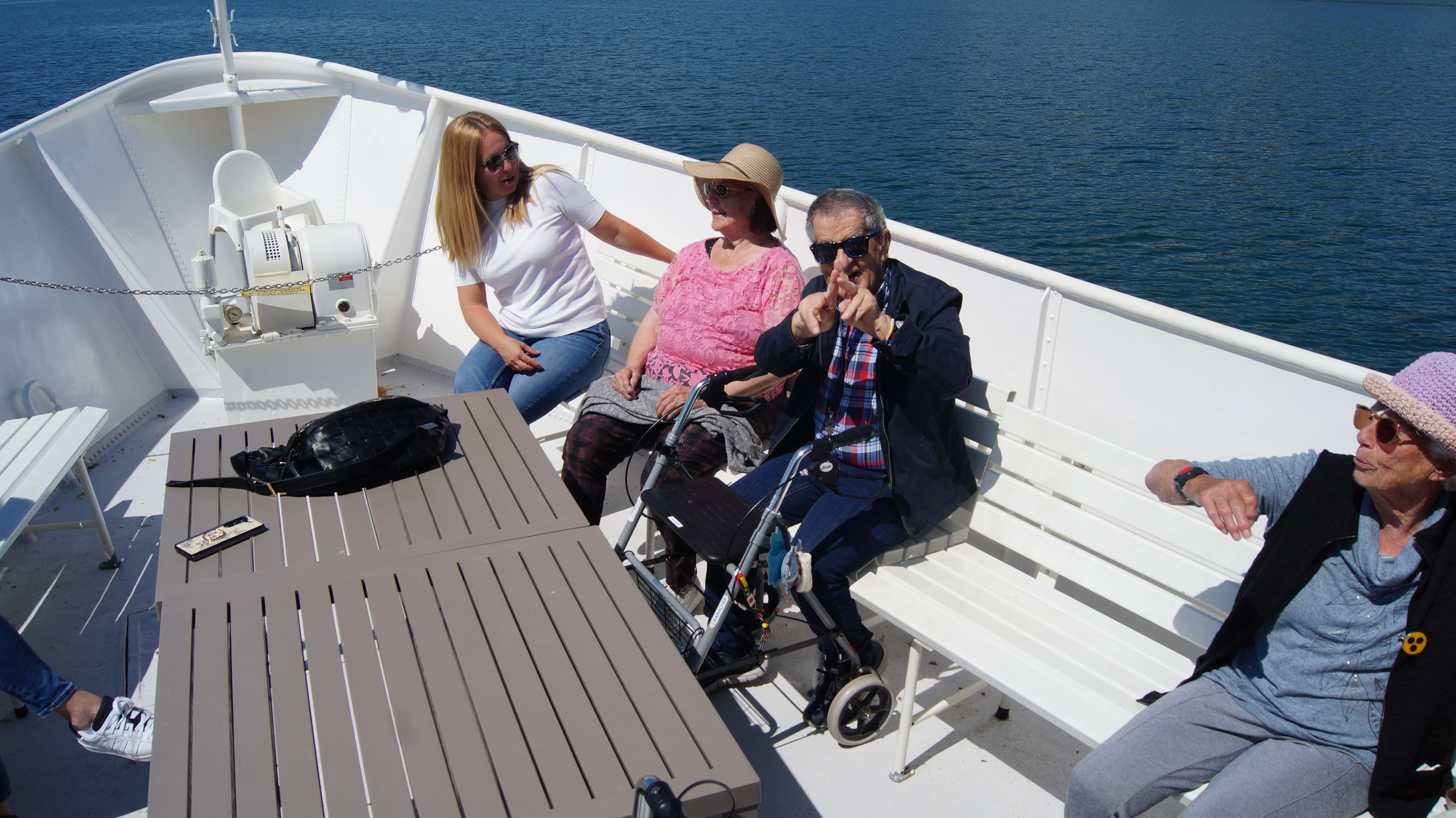 Während der Fahrt genossen unsere Bewohner ein wunderbares Frühstück mit Lachs und Sekt. Es wurden viele Erinnerungen geteilt – beispielsweise, wie die Orte früher aussahen, was man dort erlebt hat und wie sehr sich alles im Laufe der Jahre verändert hat.