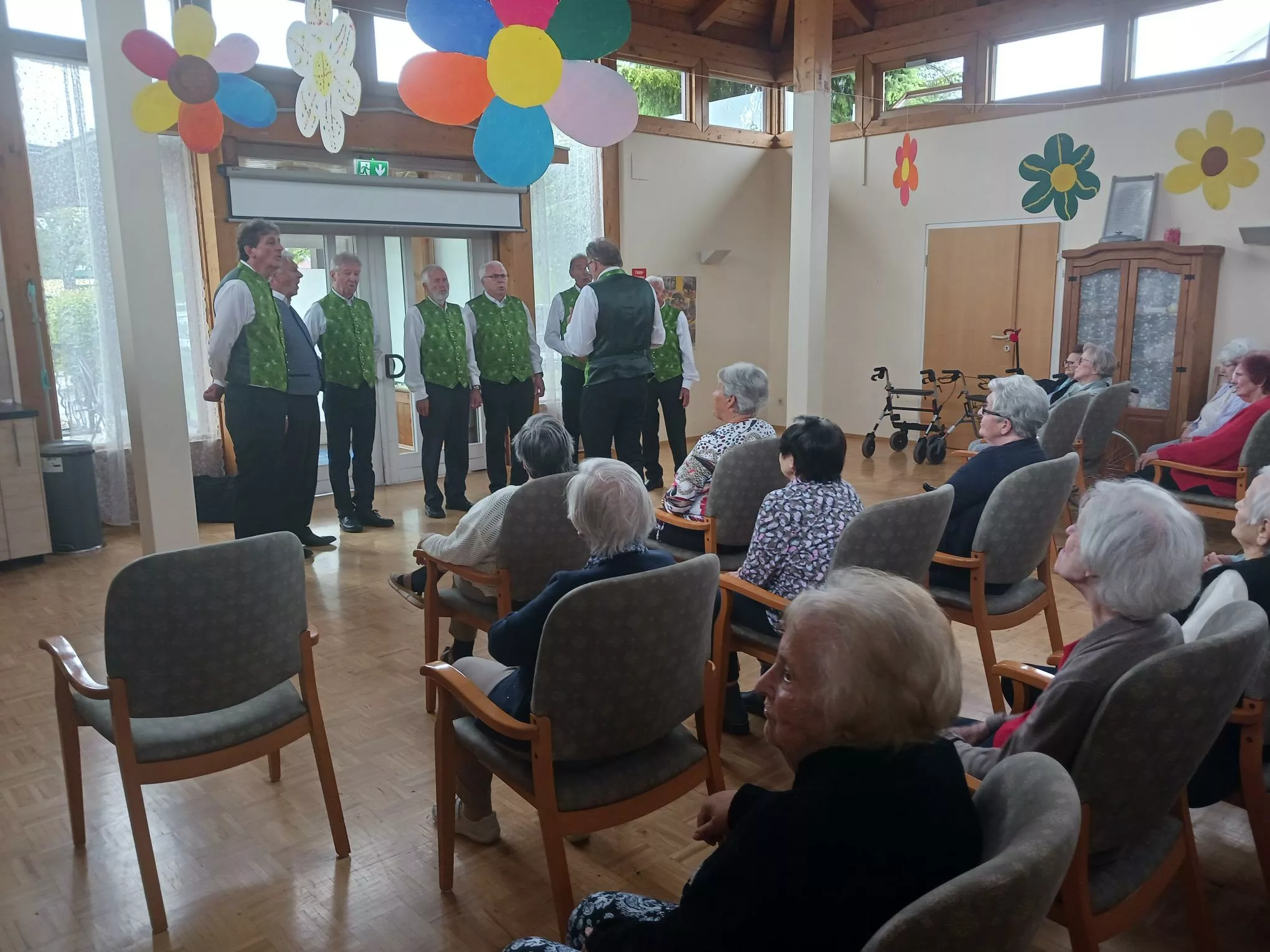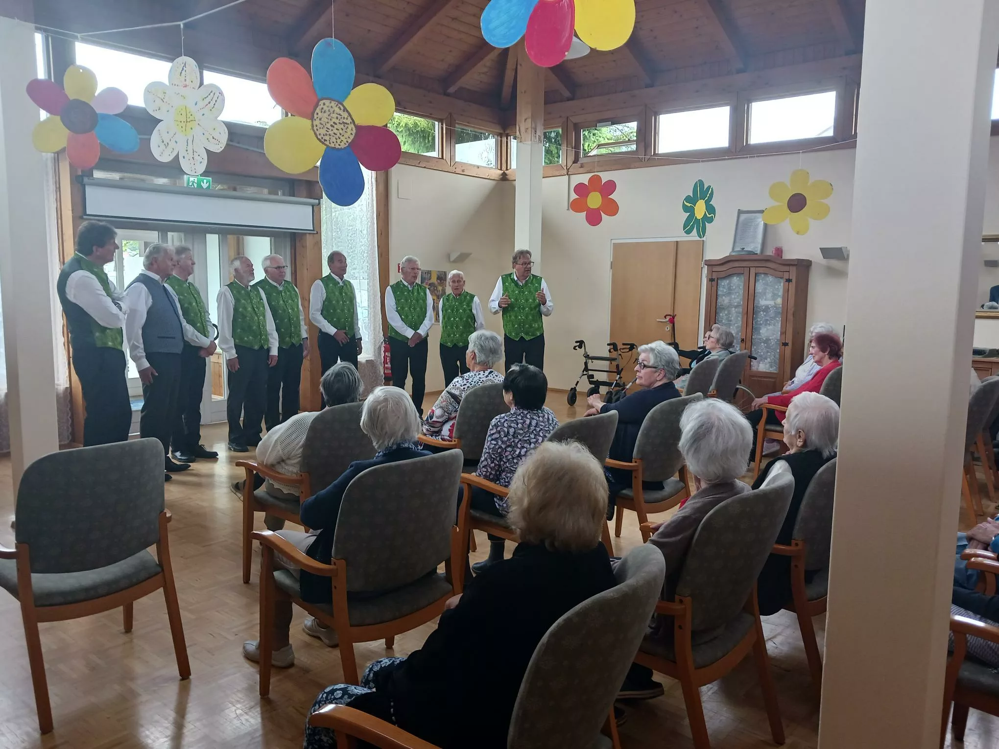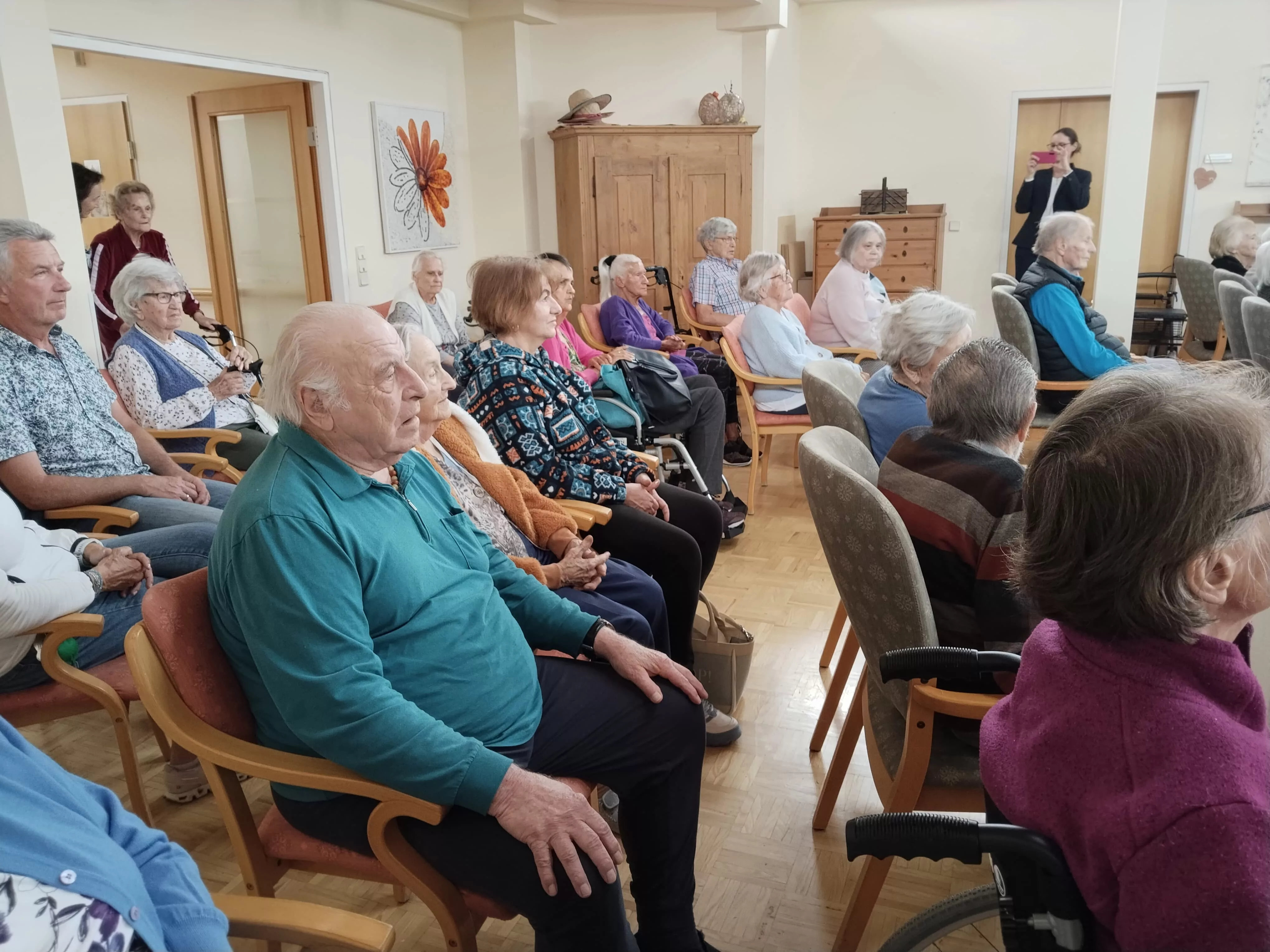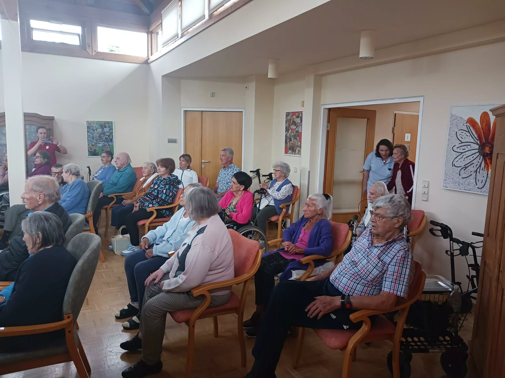 Das Männerdoppelsextett Klagenfurt verwöhnte uns mit einer Mischung aus stimmungsvollen Kärntnerlieder und heiteren Kurzgeschichten, die für beste Stimmung sorgten. Immer wieder wurden die Zuhörer zum Mitsingen eingeladen . Mit welcher Freude und Begeisterung viele Bewohner einstimmten, war einfach herzerwärmend.
