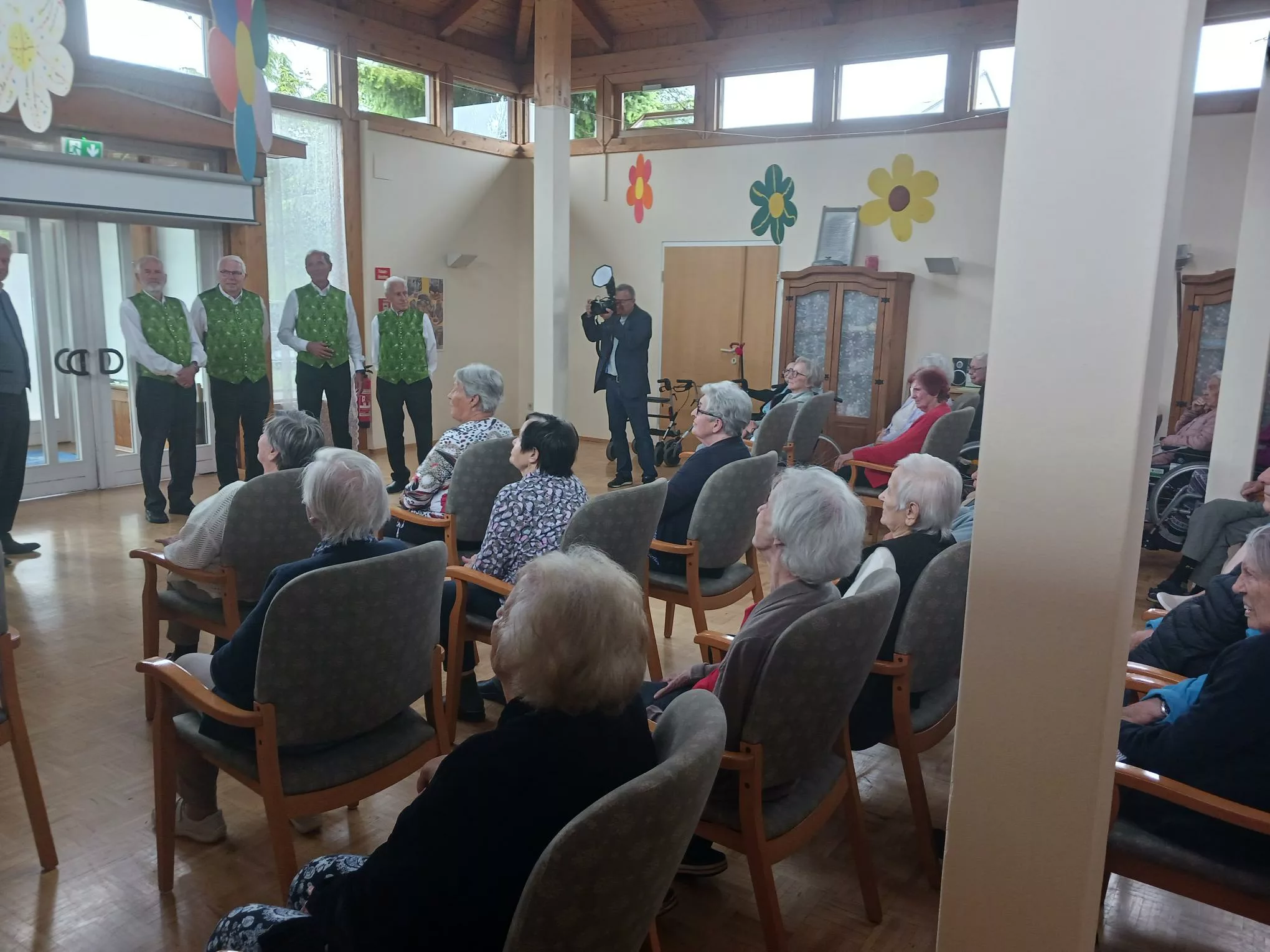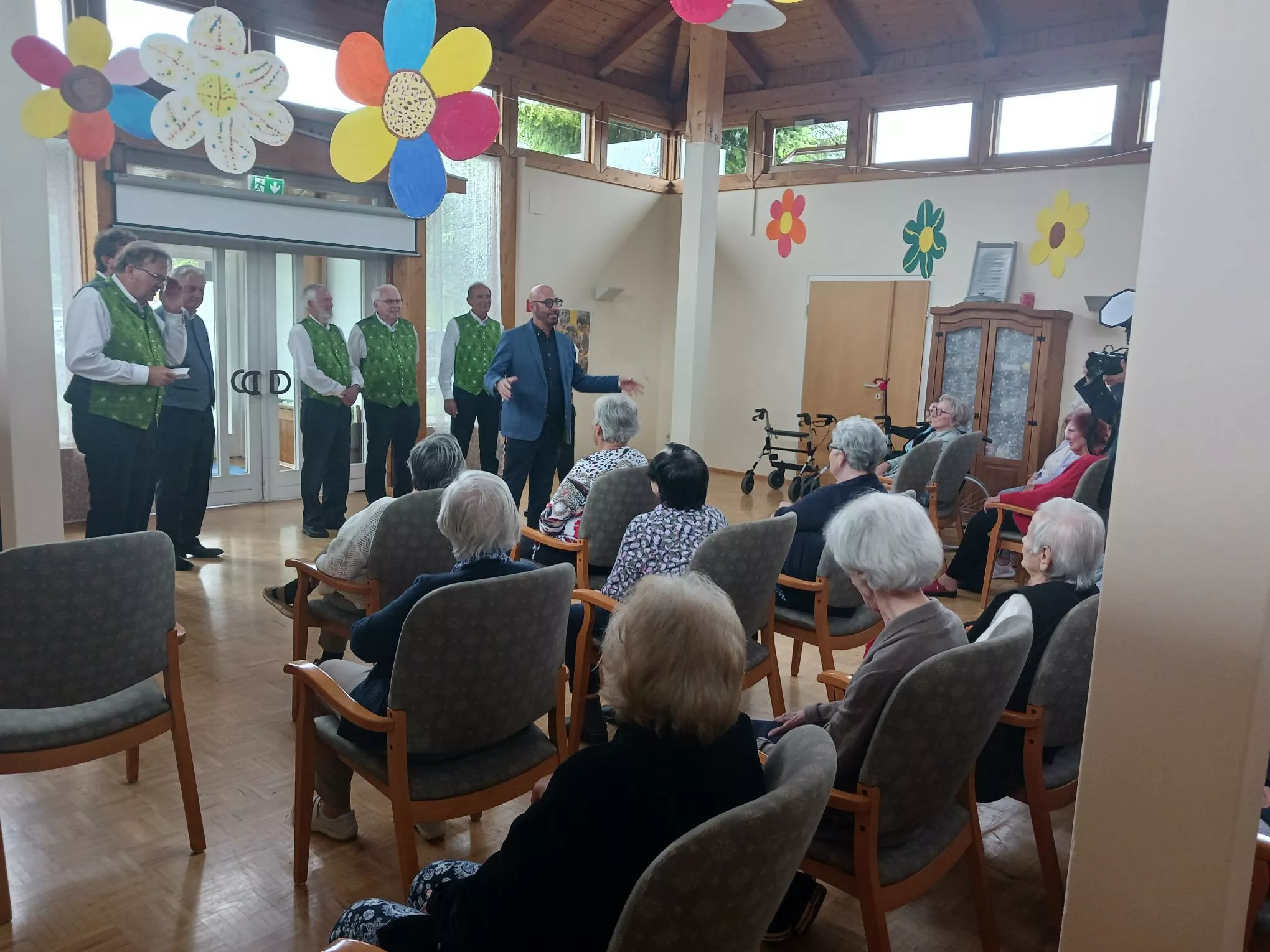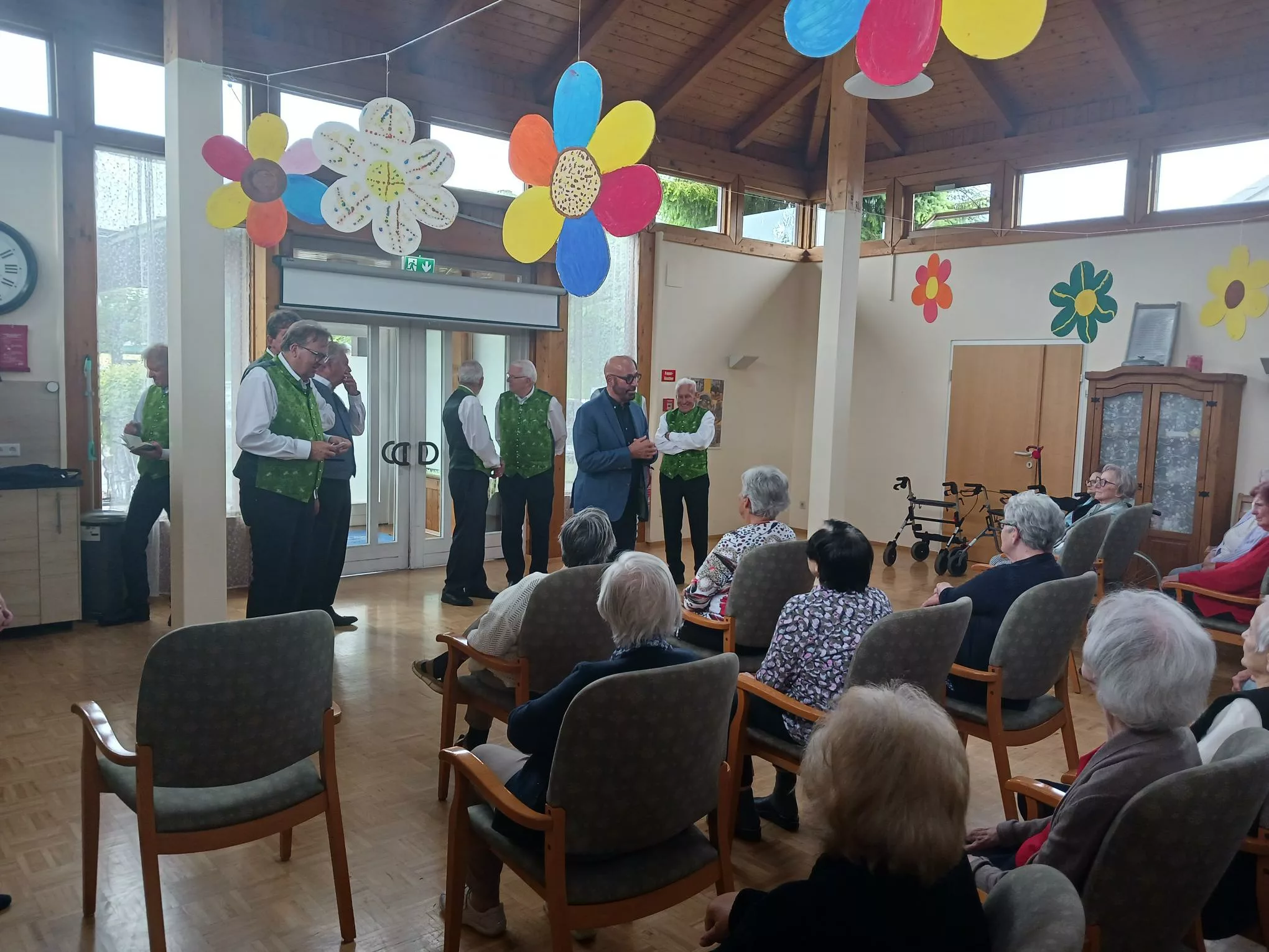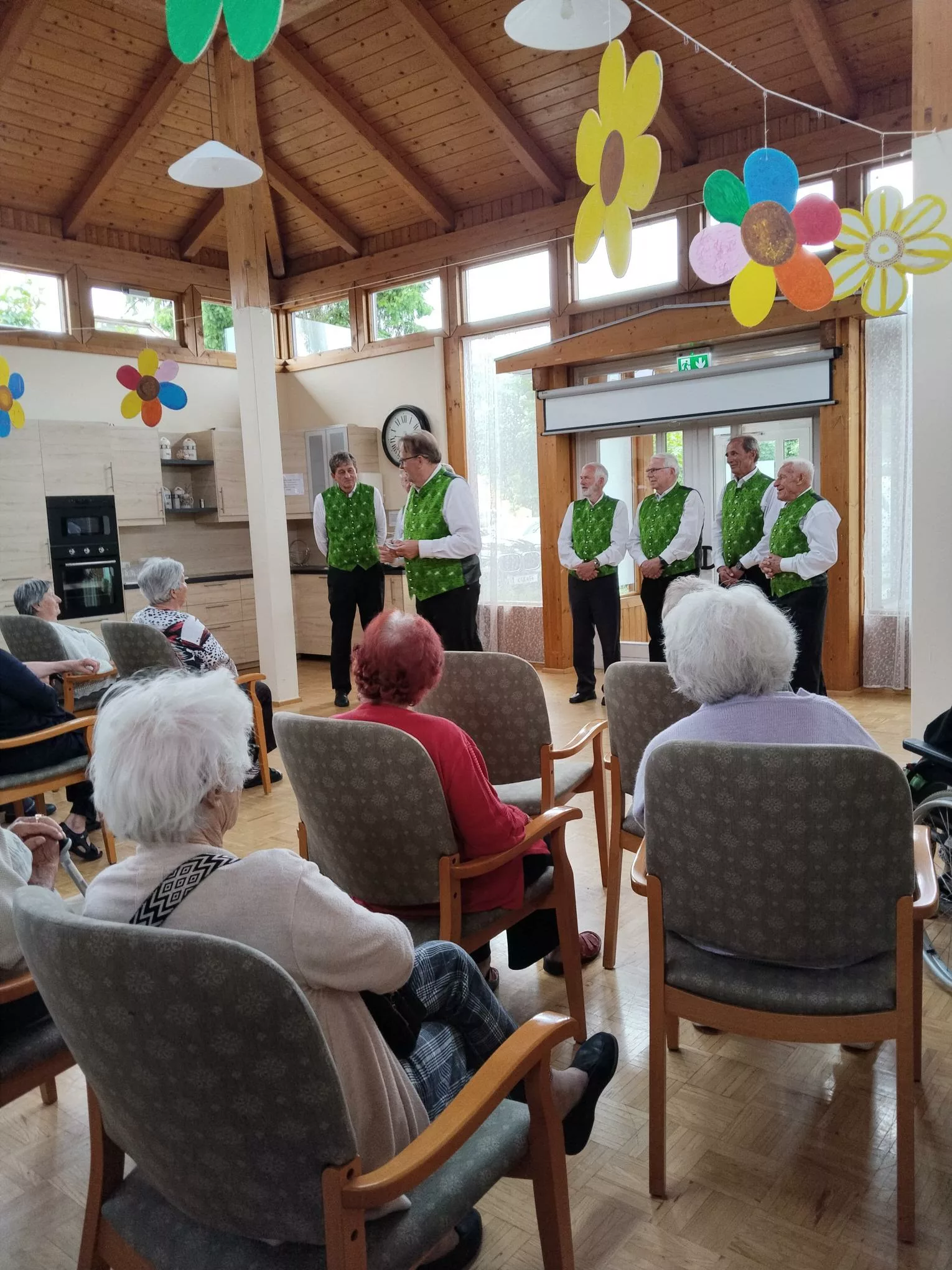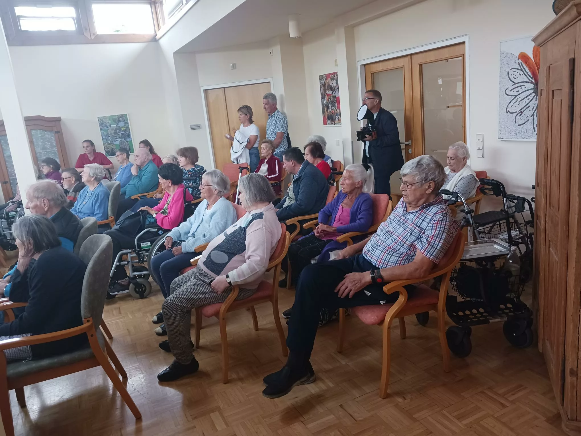 Das Männerdoppelsextett Klagenfurt verwöhnte uns mit einer Mischung aus stimmungsvollen Kärntnerlieder und heiteren Kurzgeschichten, die für beste Stimmung sorgten. Immer wieder wurden die Zuhörer zum Mitsingen eingeladen . Mit welcher Freude und Begeisterung viele Bewohner einstimmten, war einfach herzerwärmend.