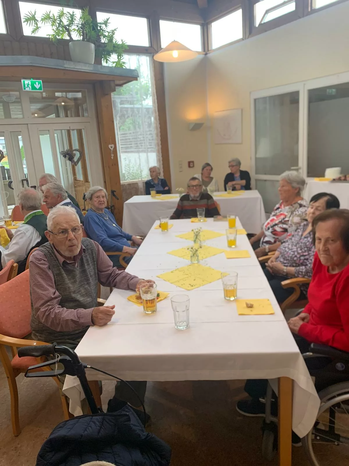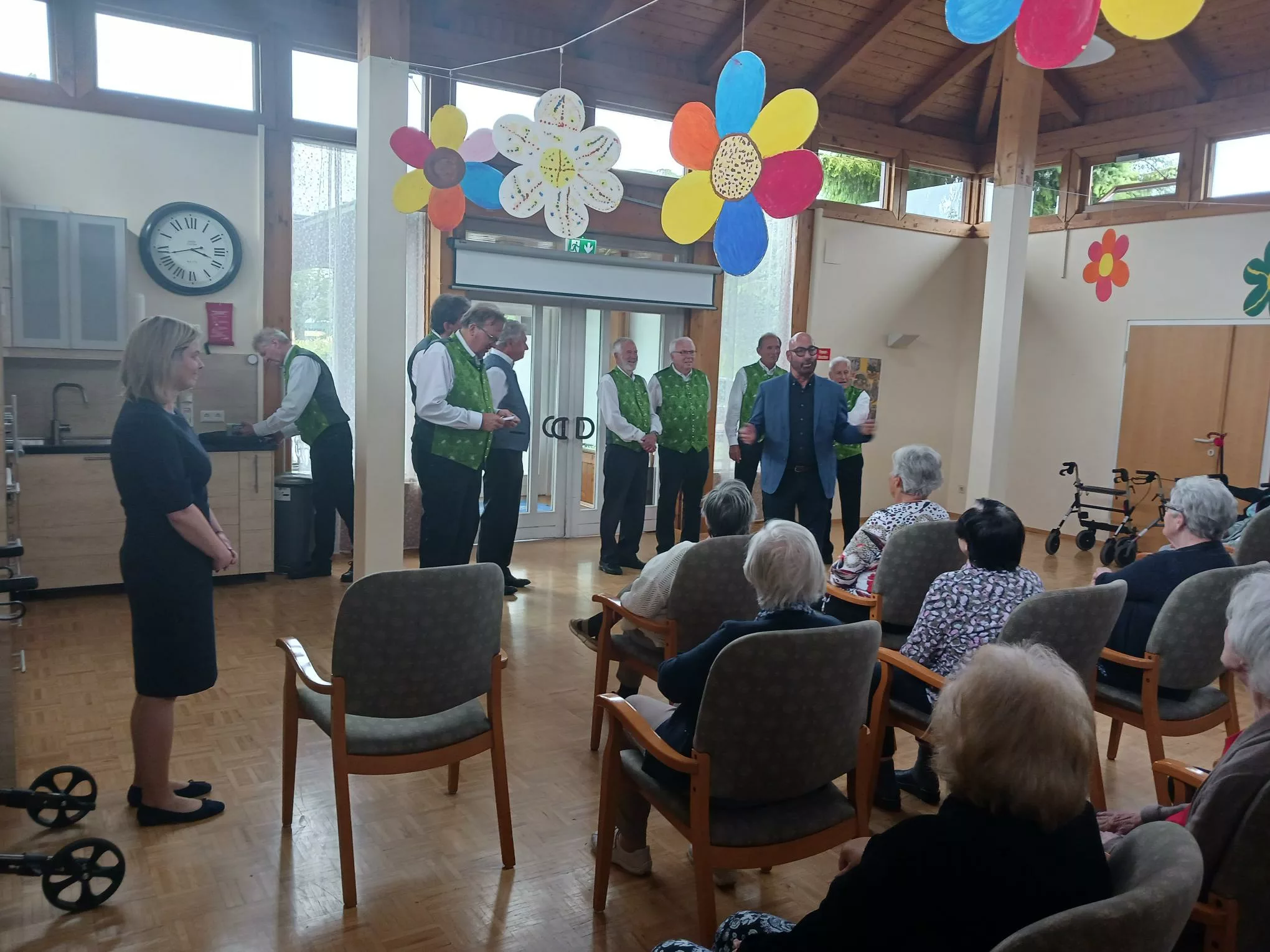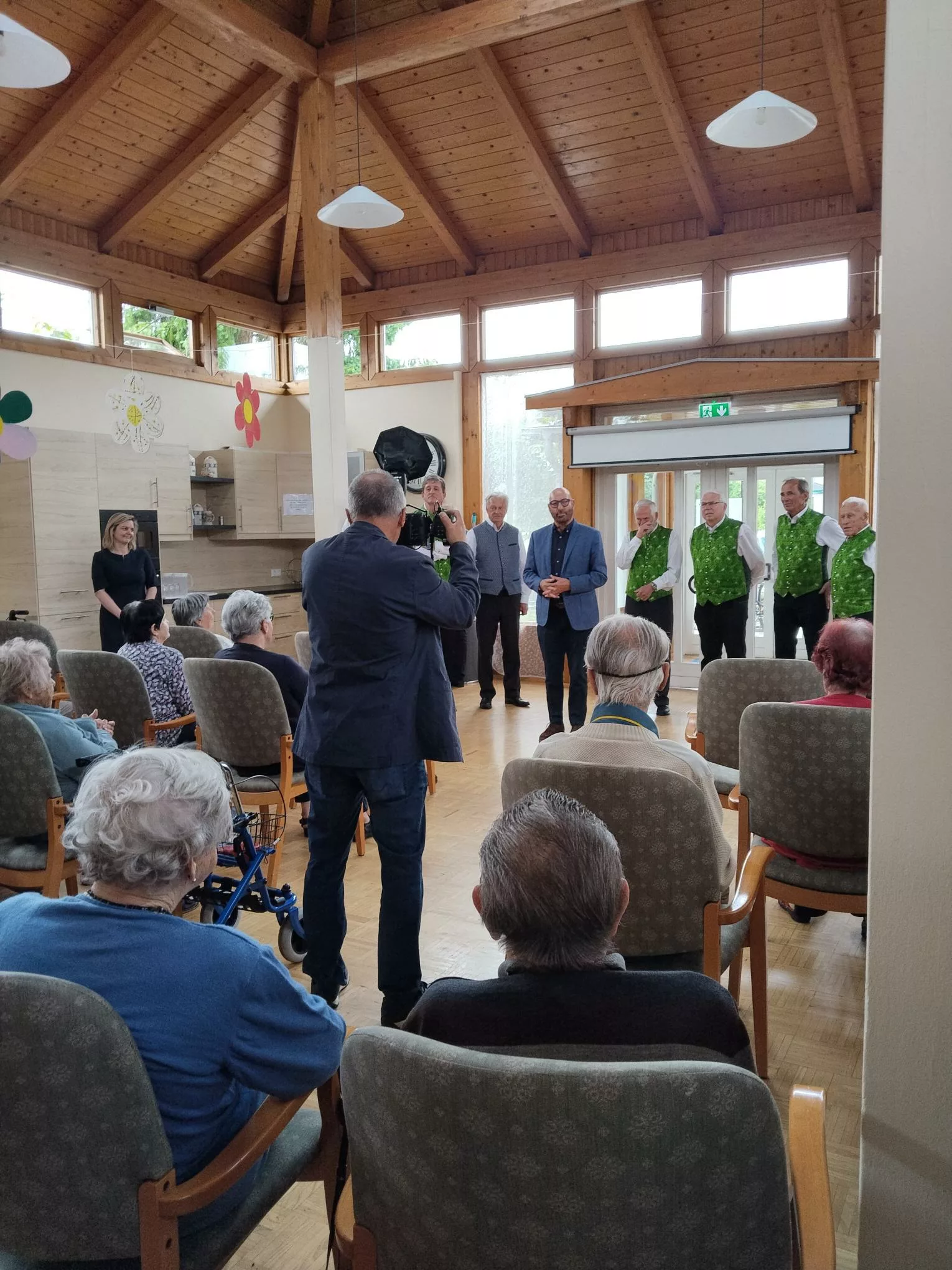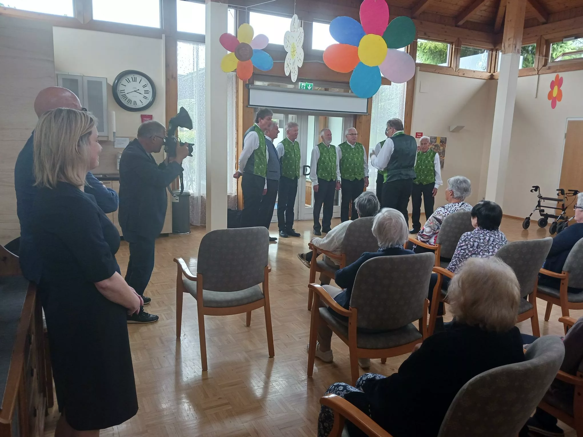 Das Männerdoppelsextett Klagenfurt verwöhnte uns mit einer Mischung aus stimmungsvollen Kärntnerlieder und heiteren Kurzgeschichten, die für beste Stimmung sorgten. Immer wieder wurden die Zuhörer zum Mitsingen eingeladen . Mit welcher Freude und Begeisterung viele Bewohner einstimmten, war einfach herzerwärmend.
