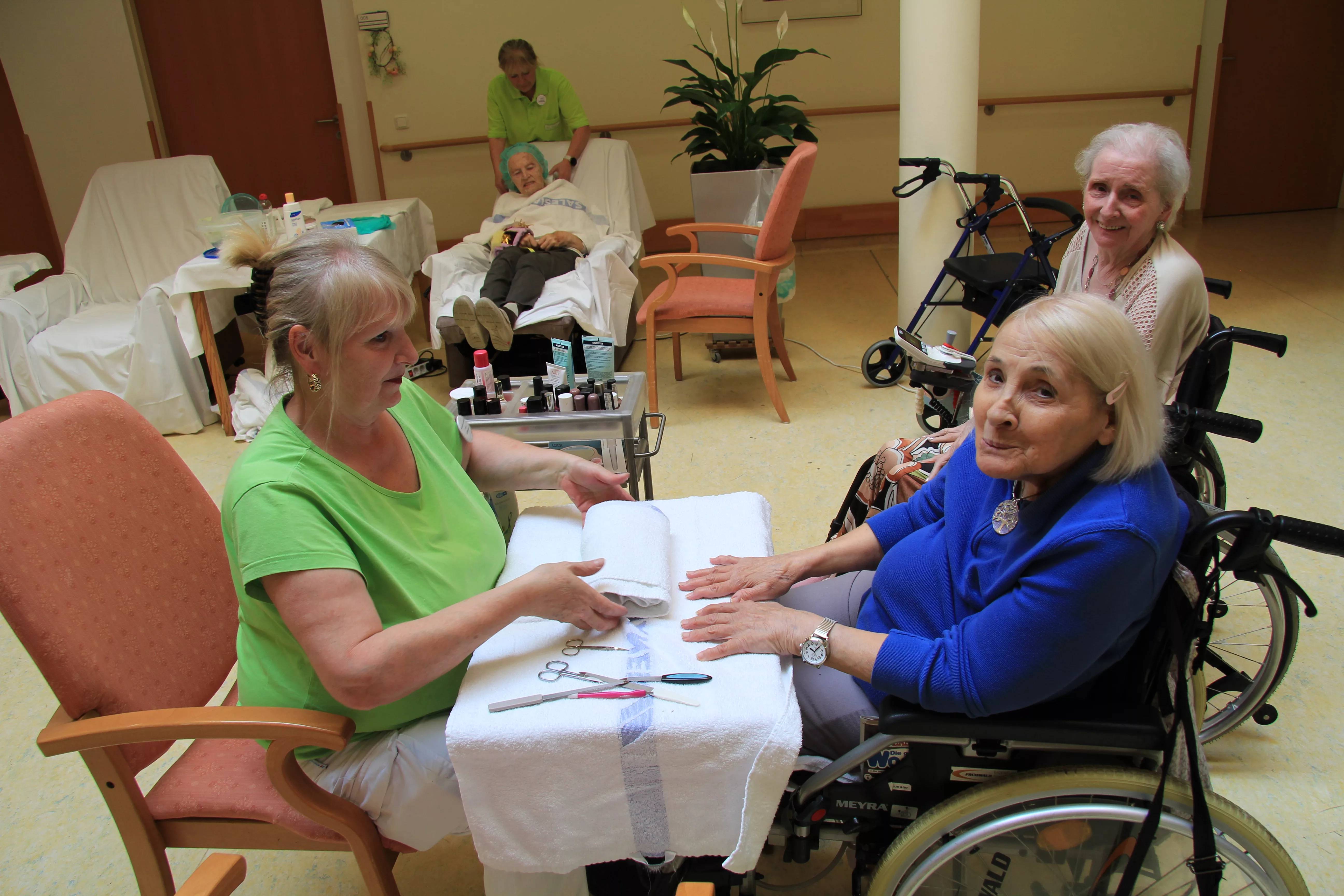 Und wieder einmal verwandelte sich das Foyer in eine kleine Wohlfühloase: Die Animateurinnen und Animateure luden zum Wellnessday ein. Schon bald starteten die Bewohnerinnen mit einer sanften Hand- und Fußpflege – Pediküre und Maniküre zauberten strahlende Nägel und ein Lächeln ins Gesicht. Erfahrene MitarbeiterInnen starteten mit pflegenden Gesichtsbehandlungen und sorgten für tiefenentspannte Momente. Zufriedene Rückmeldungen zeigten: Eine kleine Auszeit mit professioneller Pflege tut Körper und Seele gleichermaßen gut.