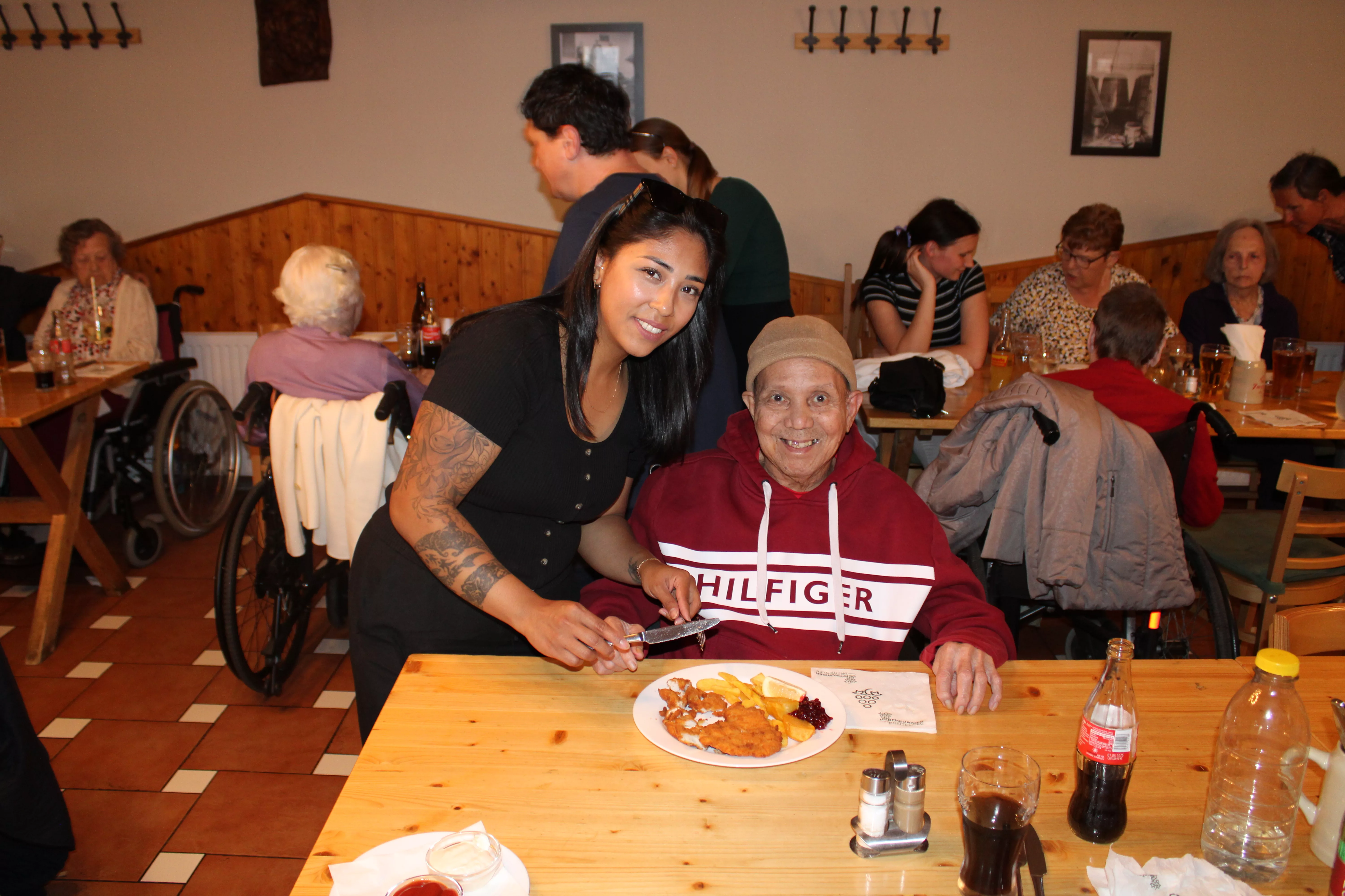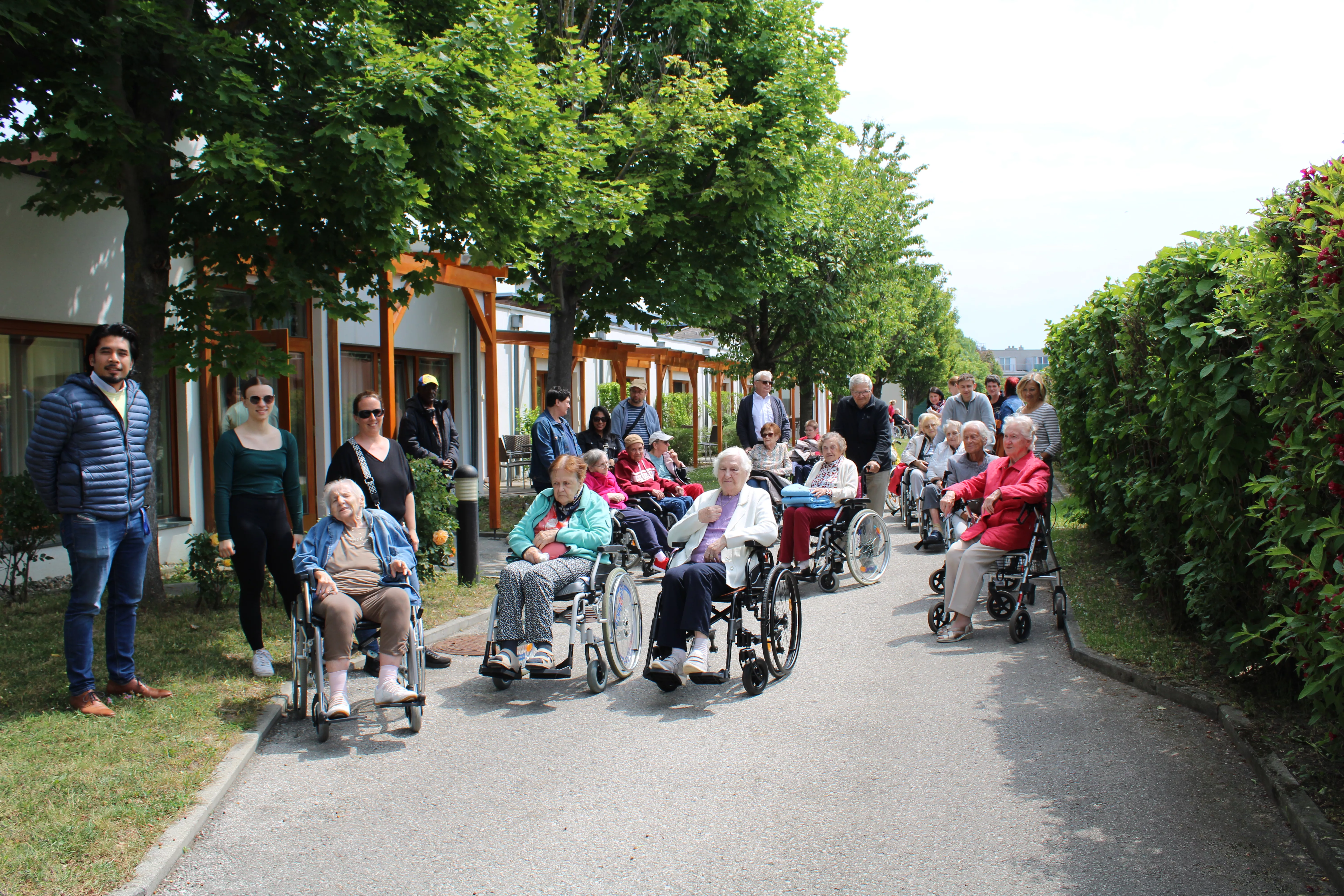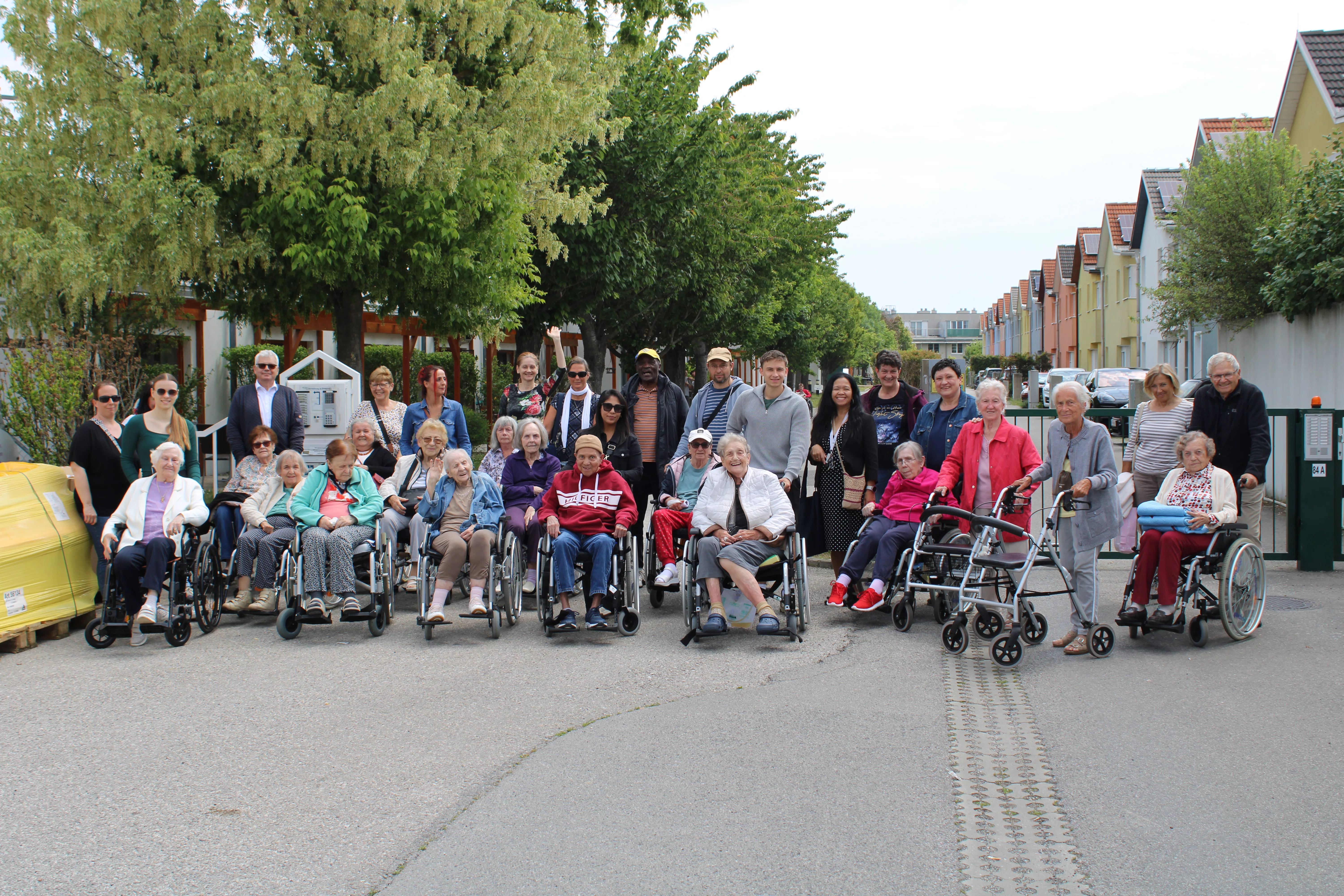Bei strahlendem Sonnenschein und angenehmen Temperaturen machen sich die beiden Wohnbereiche „Kirschblüte“ und „Apfelblüte“ des liebevoll betreuten Seniorenschlössls „Wie daham“ Donaustadt auf den Weg zum nahegelegenen, gemütlichen Dorfheurigen Breitenlee. Wir freuten uns auf eine willkommene und vor allem gesellige sowie köstliche Abwechslung. Schon aus der Küche kam der verführerische Duft der frisch zubereiteten Spezialitäten. Egal, ob für Schweinsbraten, Zwiebelrostbraten oder Schnitzerl – es wird immer ein kulinarisches Erlebnis sein. Während unseres gemeinsamen Mittagessens sorgen beliebte Heurigenlieder für gute Stimmung. Wir freuen uns sehr, dass auch einige Angehörige dieses Jahr wieder mit dabei sind. Nach einer netten Plauderei, die uns allen sehr gefallen hat, geht es gut gelaunt zurück nach Hause. Es war ein wunderbarer Nachmittag voller Freude und Ausgelassenheit.