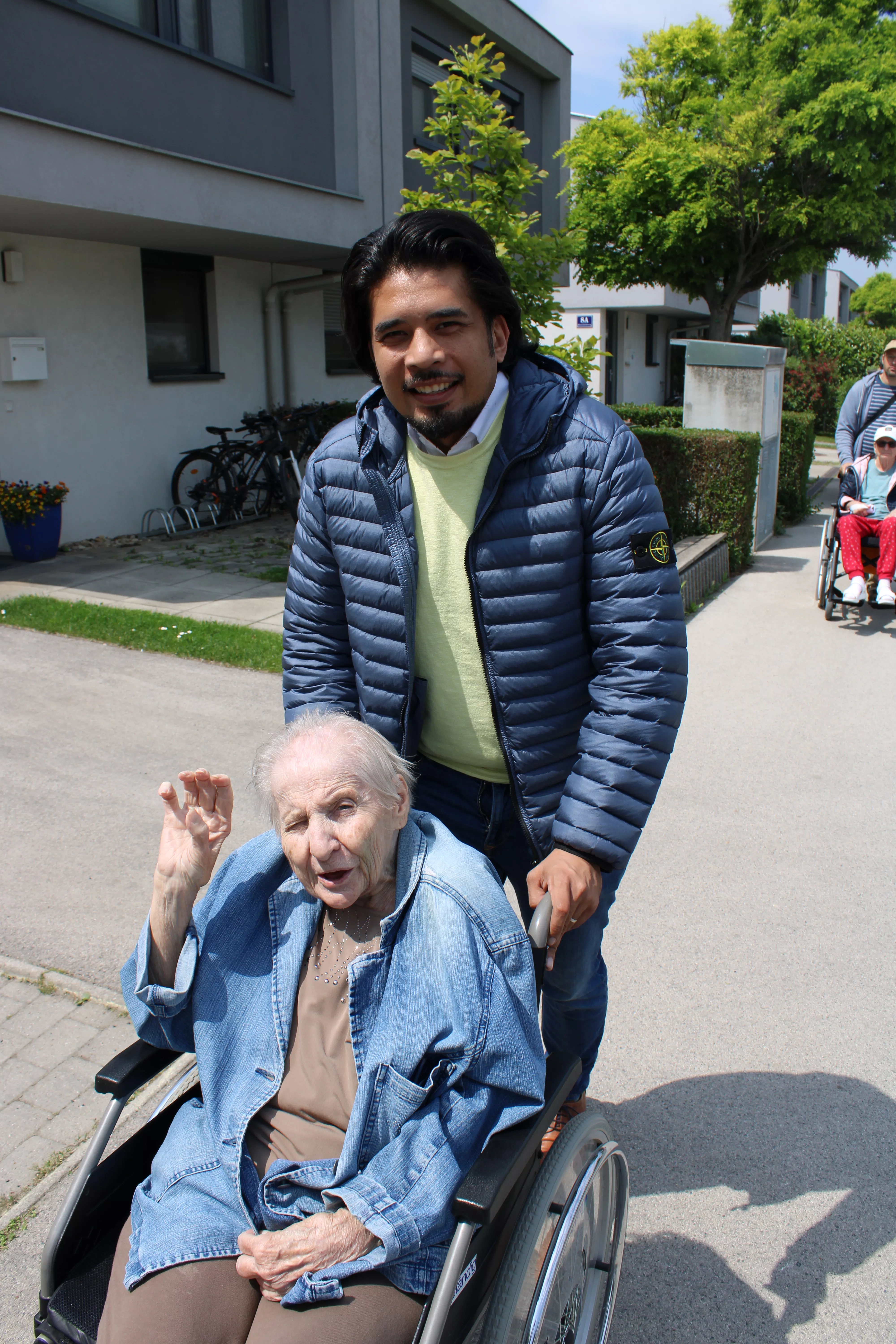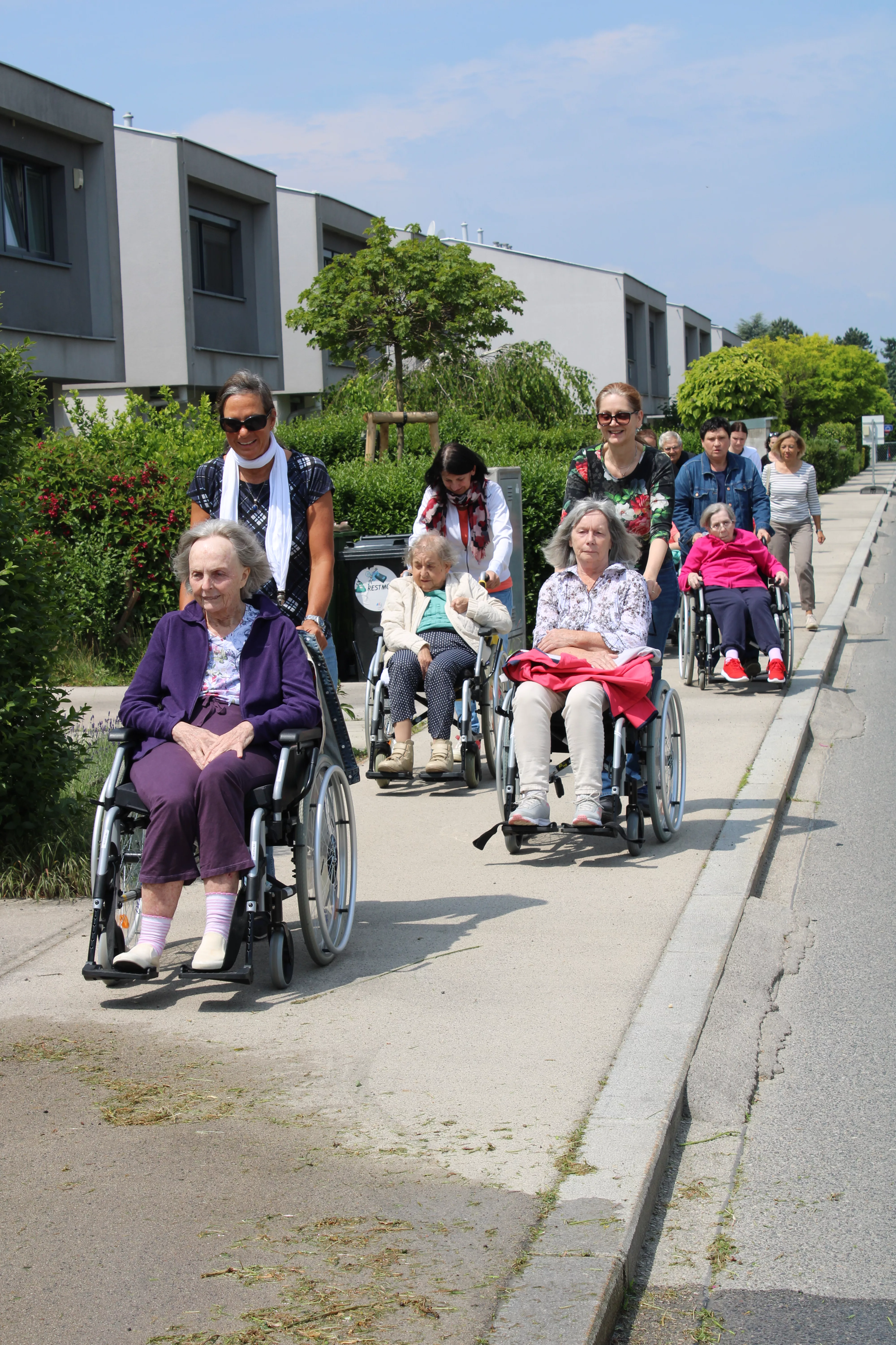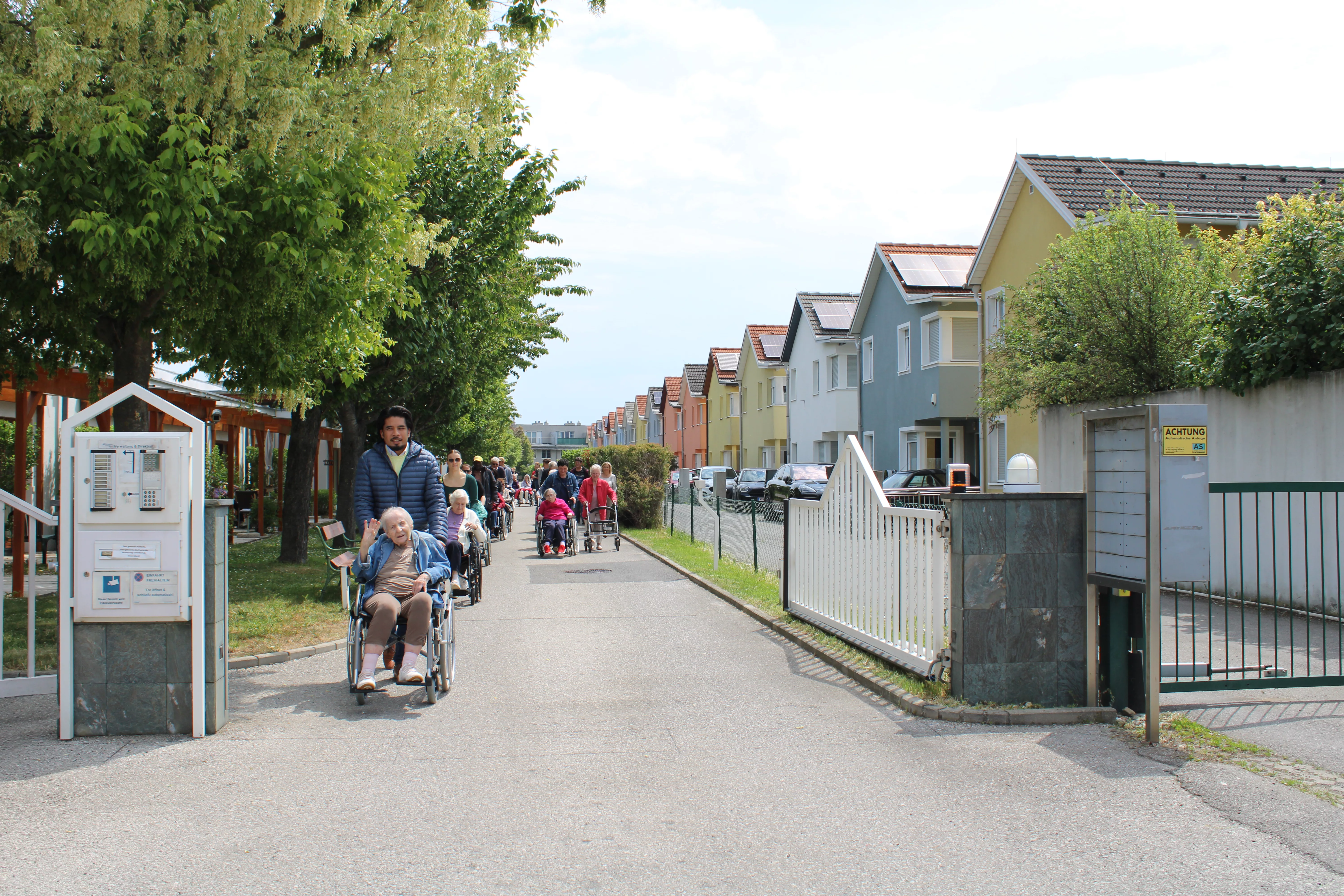 Bei strahlendem Sonnenschein und angenehmen Temperaturen machen sich die beiden Wohnbereiche „Kirschblüte“ und „Apfelblüte“ des liebevoll betreuten Seniorenschlössls „Wie daham“ Donaustadt auf den Weg zum nahegelegenen, gemütlichen Dorfheurigen Breitenlee. Wir freuten uns auf eine willkommene und vor allem gesellige sowie köstliche Abwechslung. Schon aus der Küche kam der verführerische Duft der frisch zubereiteten Spezialitäten. Egal, ob für Schweinsbraten, Zwiebelrostbraten oder Schnitzerl – es wird immer ein kulinarisches Erlebnis sein. Während unseres gemeinsamen Mittagessens sorgen beliebte Heurigenlieder für gute Stimmung. Wir freuen uns sehr, dass auch einige Angehörige dieses Jahr wieder mit dabei sind. Nach einer netten Plauderei, die uns allen sehr gefallen hat, geht es gut gelaunt zurück nach Hause. Es war ein wunderbarer Nachmittag voller Freude und Ausgelassenheit.