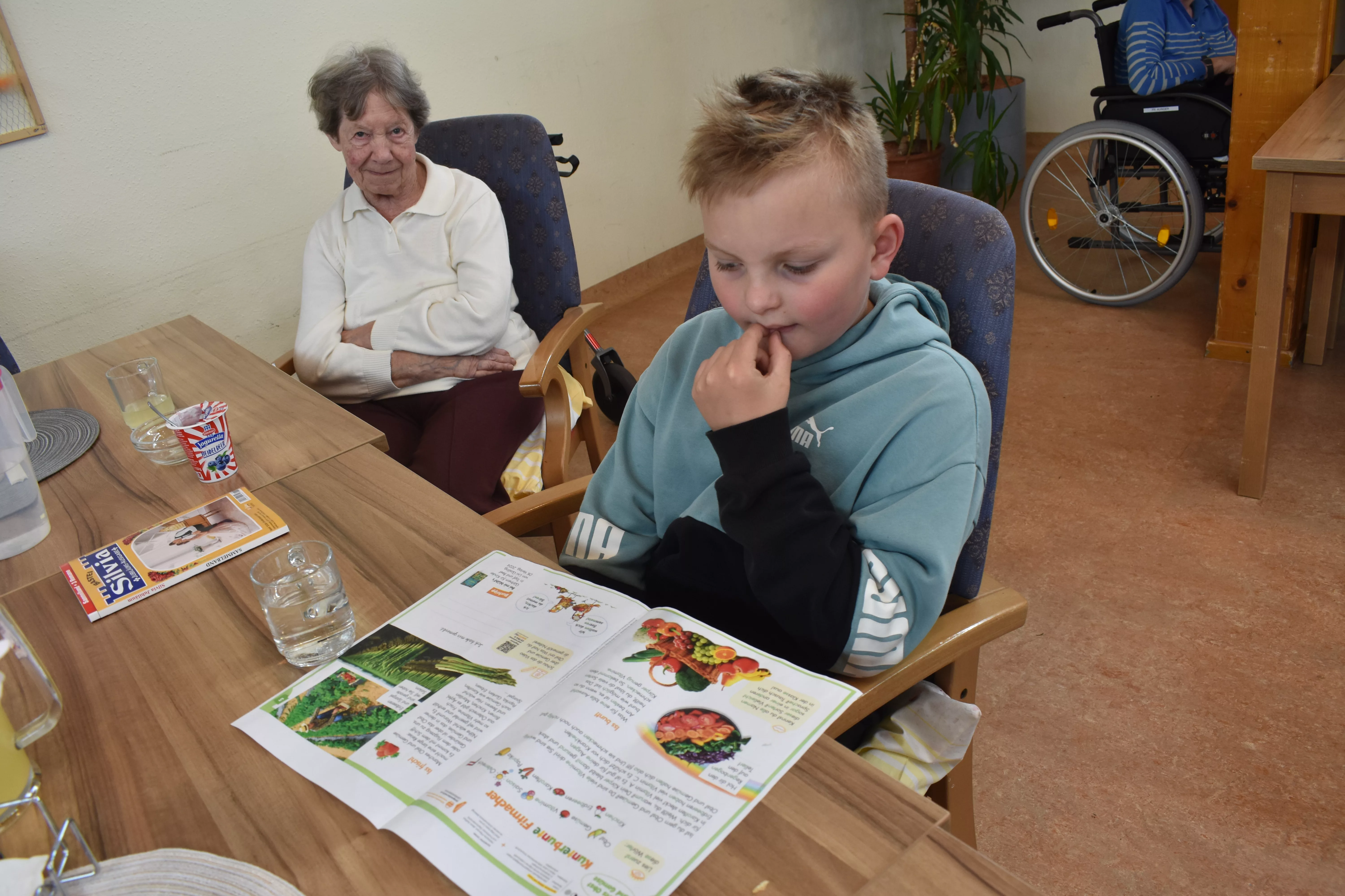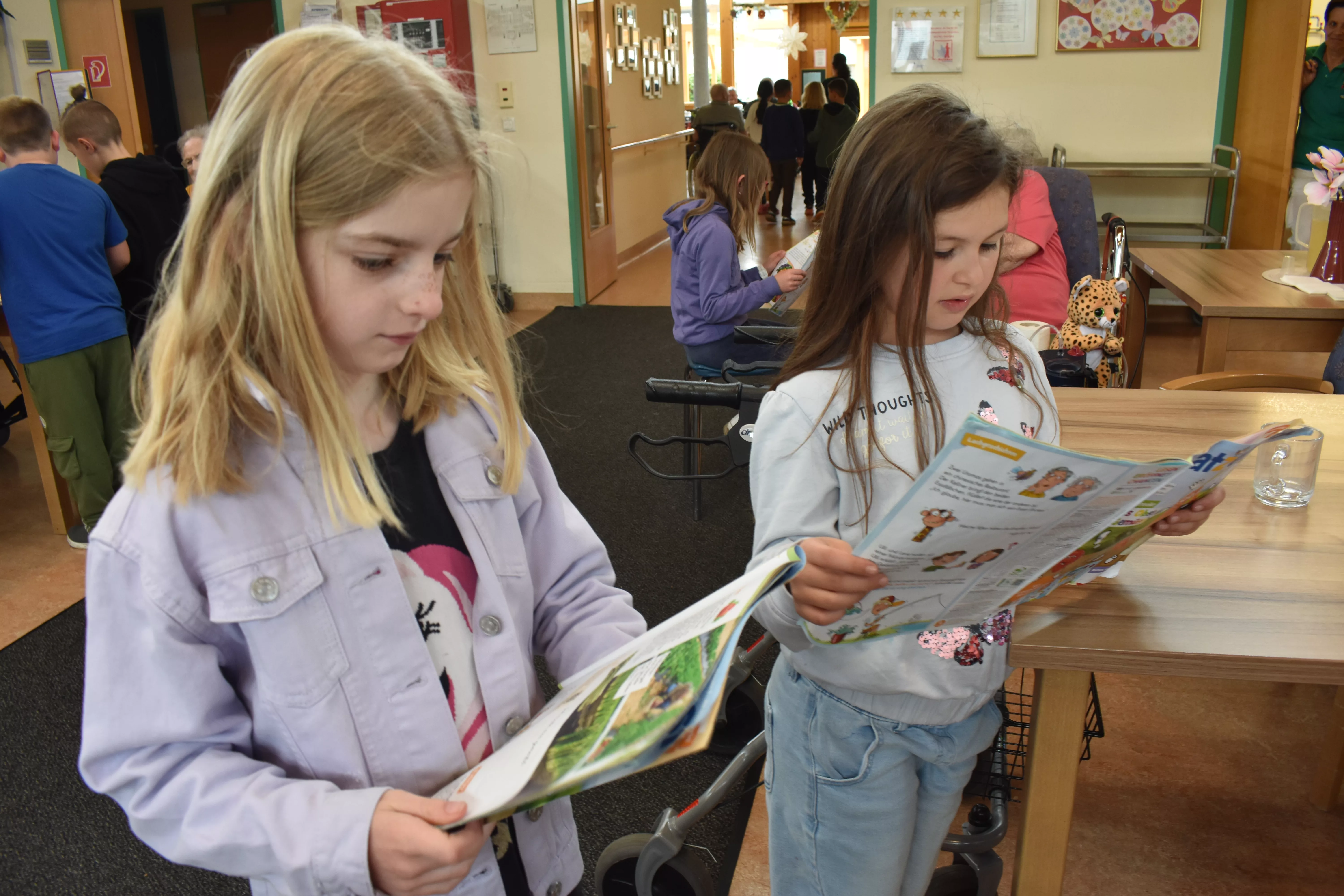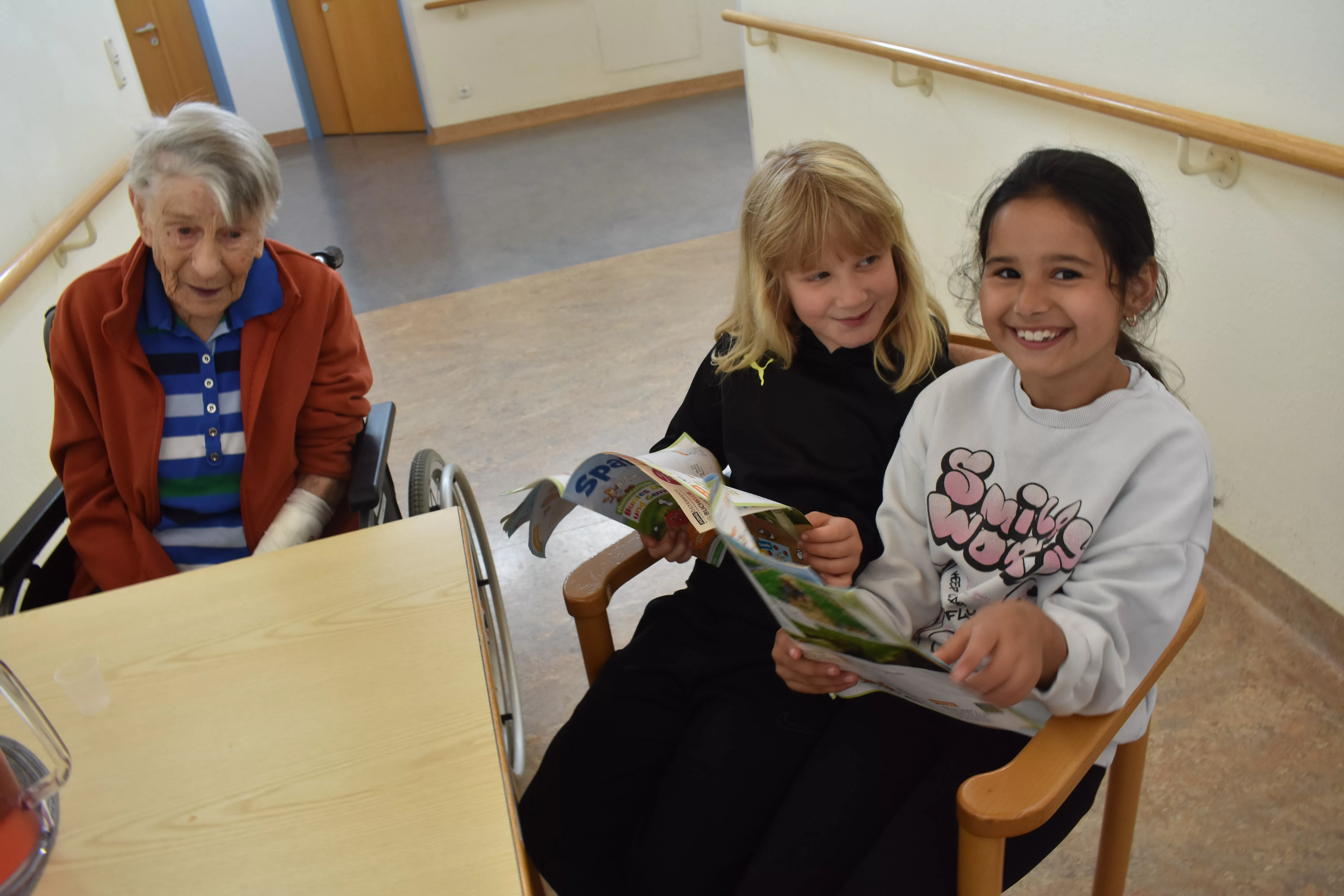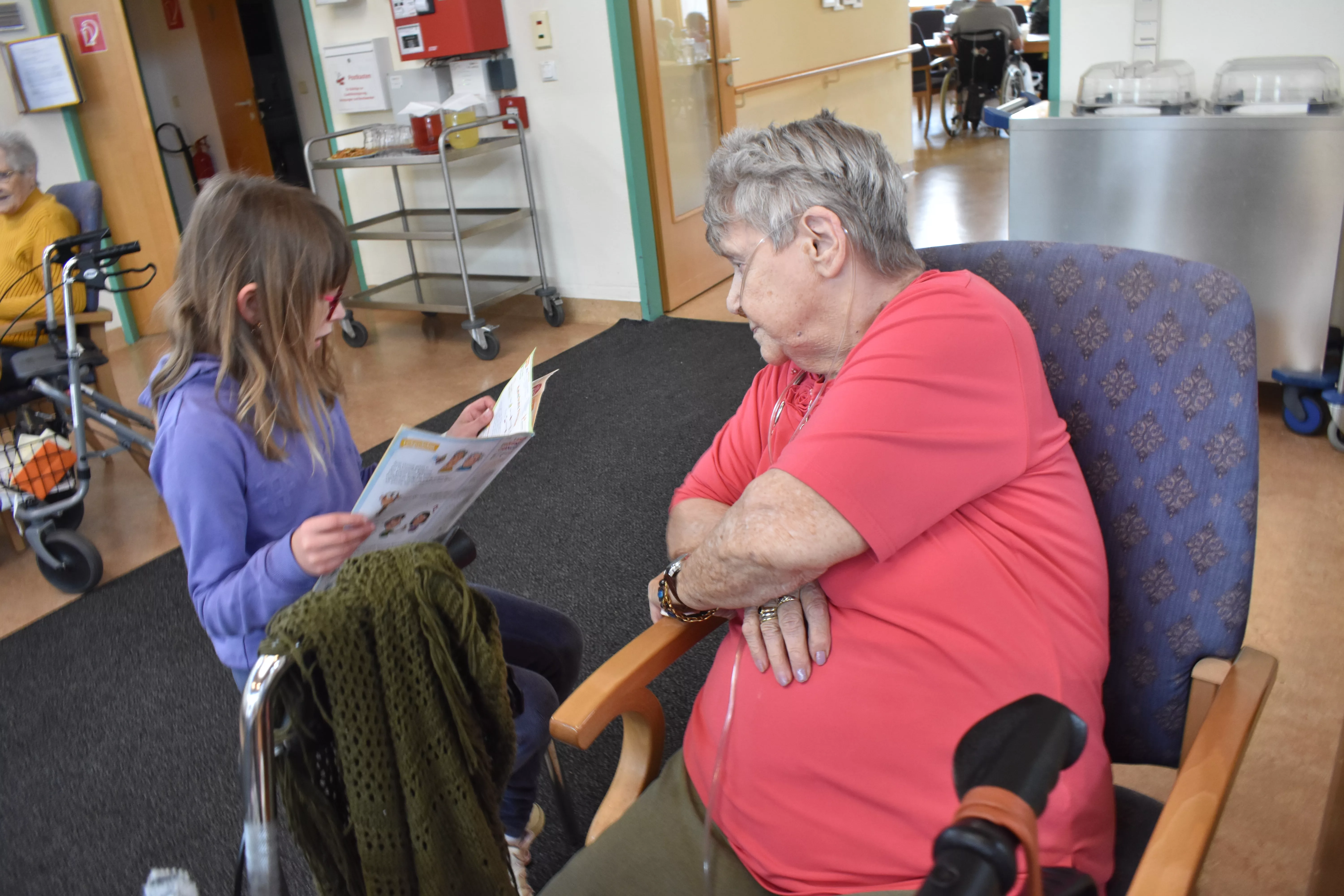 Mit diesem „Vorlesen“ trainieren die Kinder nicht nur ihre eigene Lesefertigkeit, sondern sie möchten damit vor allem auch Mitmenschen, die dankbar sind für jede Art von Abwechslung bzw. Zuwendung, eine Freude bereiten.