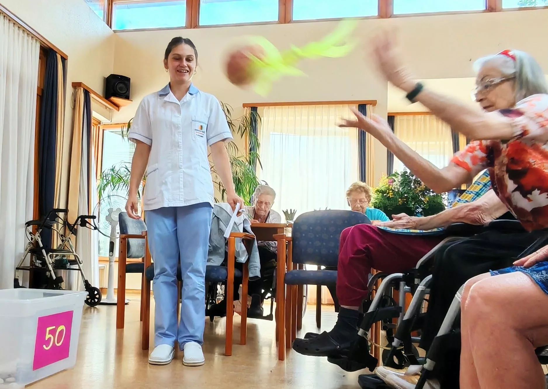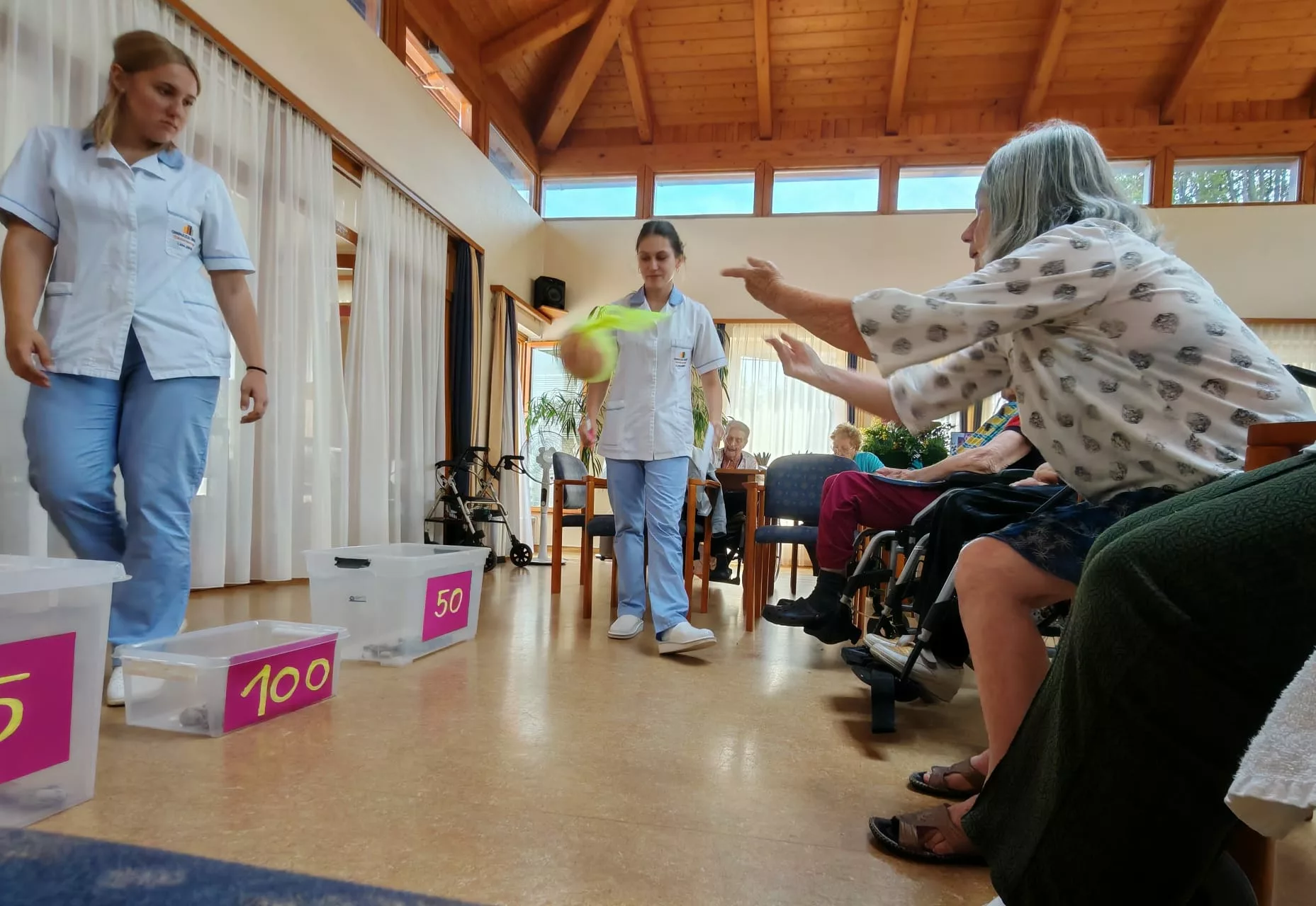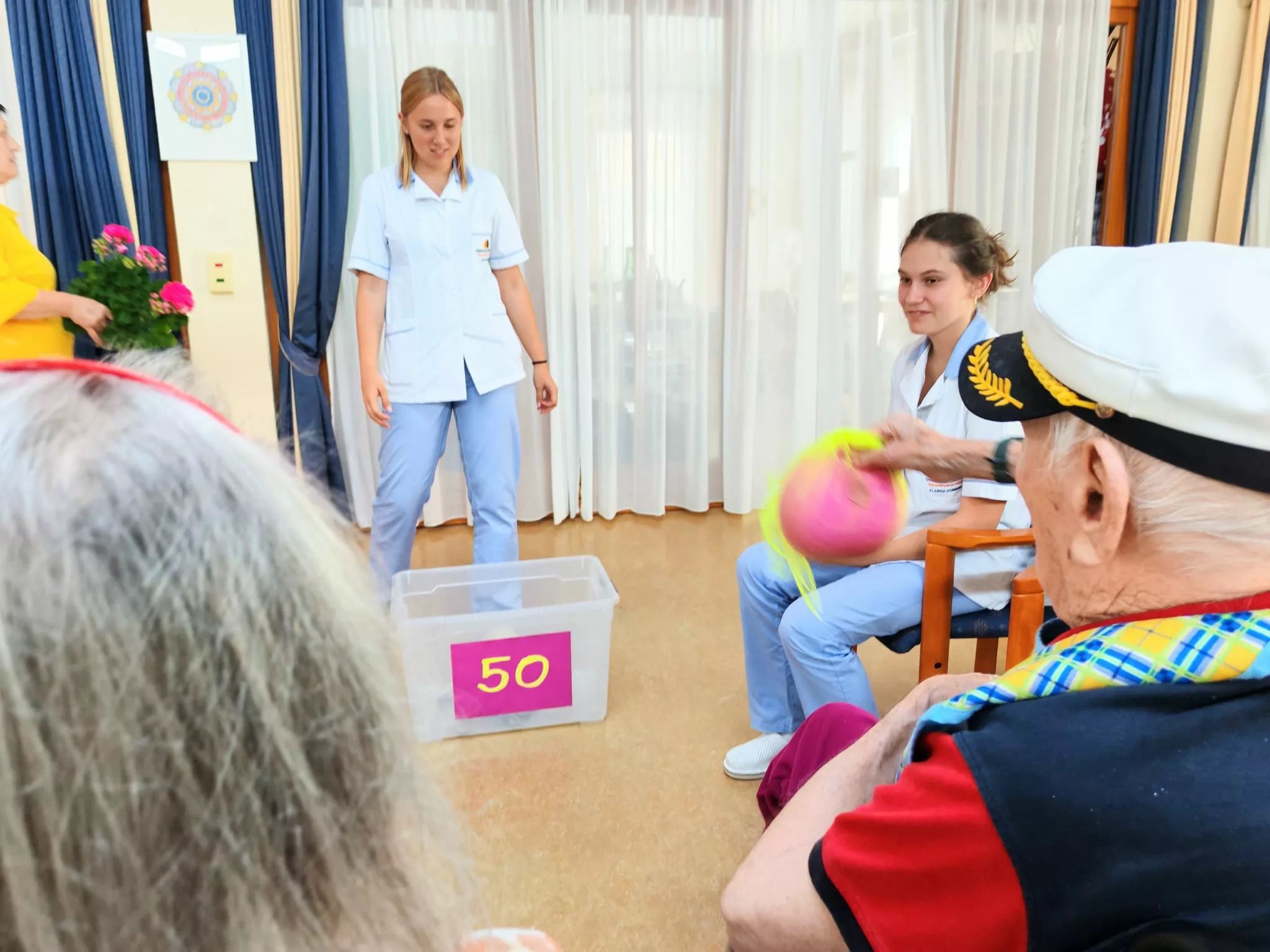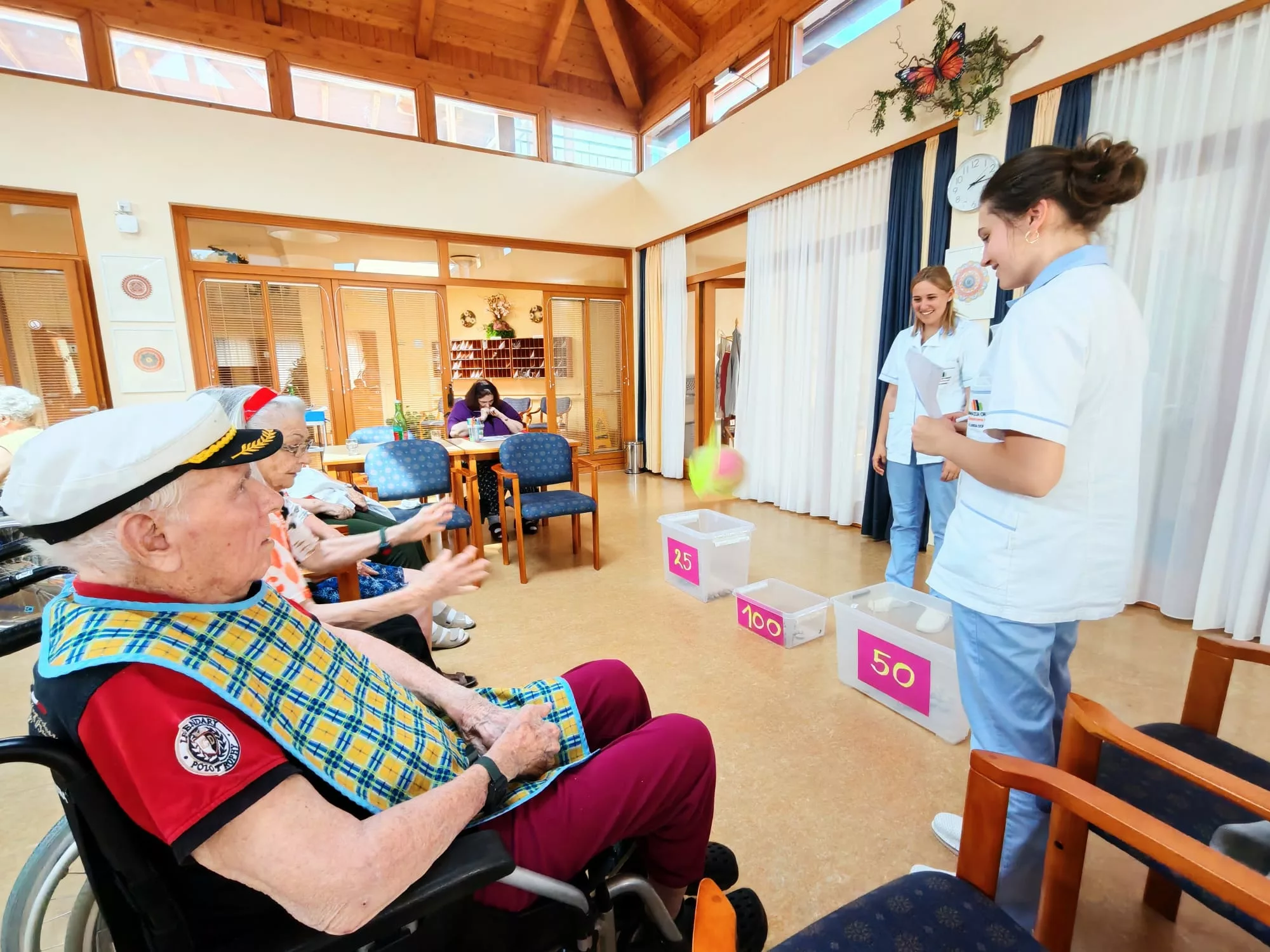 Mit Spiel und Spaß dabei Unsere Erasmus-Studentinnen haben sich echt tolle Sachen ausgedacht für ihren Spiele-Nachmittag mit unseren Bewohnern und Bewohnerinnen. Alle hatten Spaß. Die Betreuung ist ein wichtiger Teil in der Geriatrie, die ersichtlich bei uns gelebt wird.