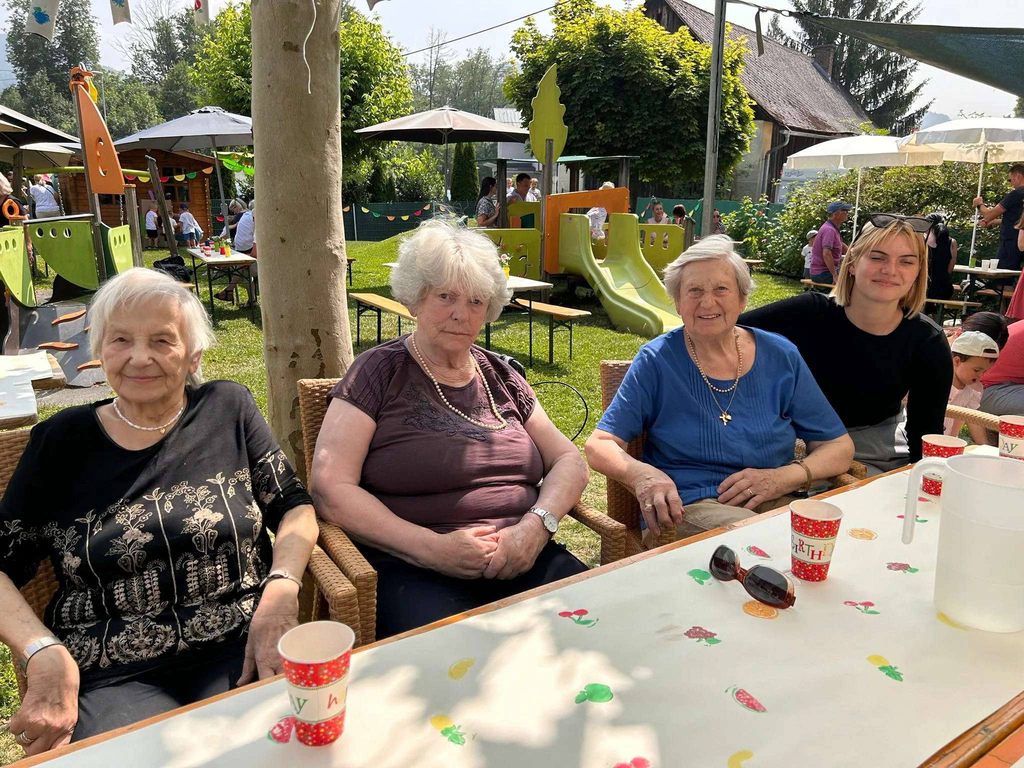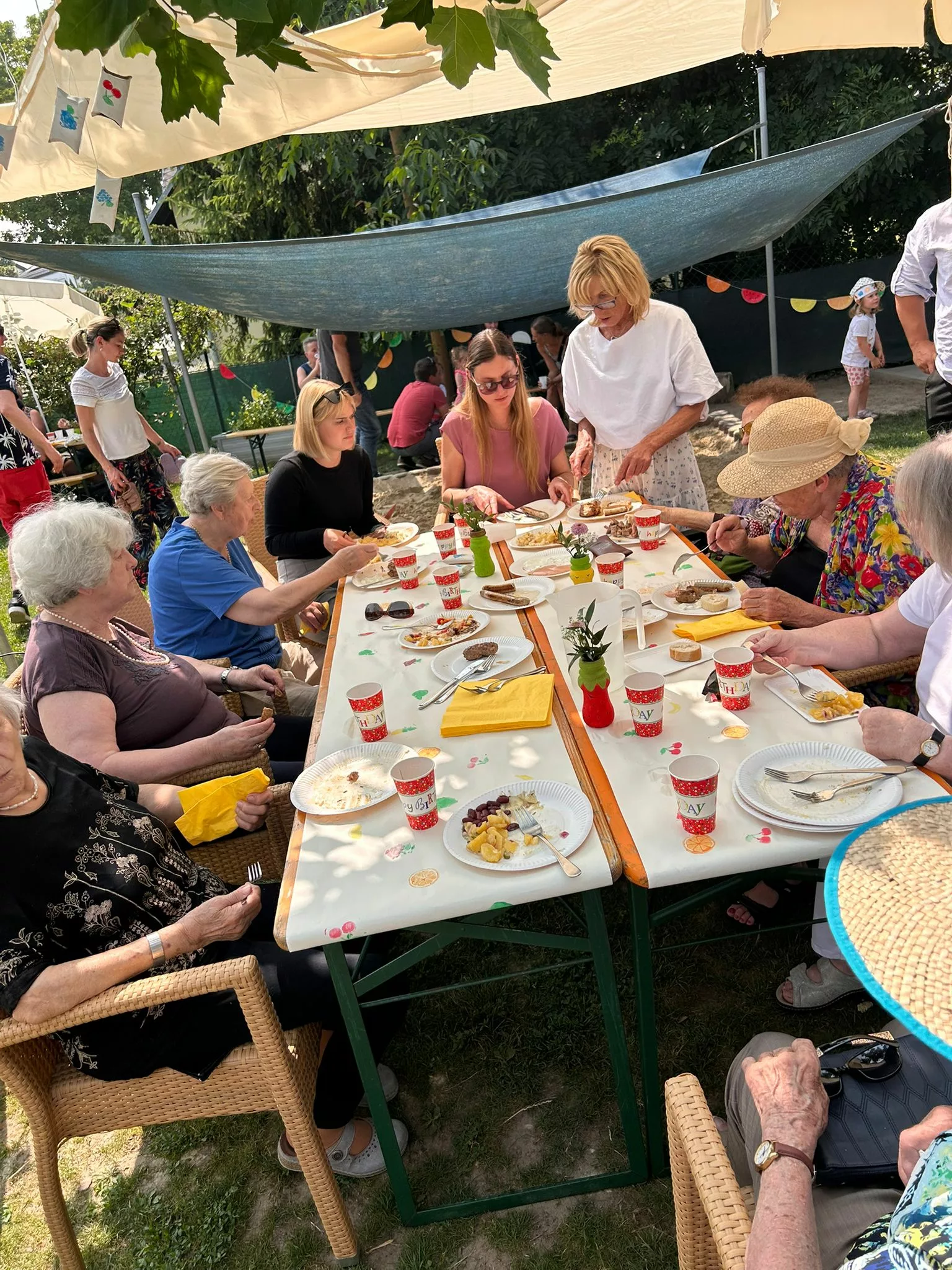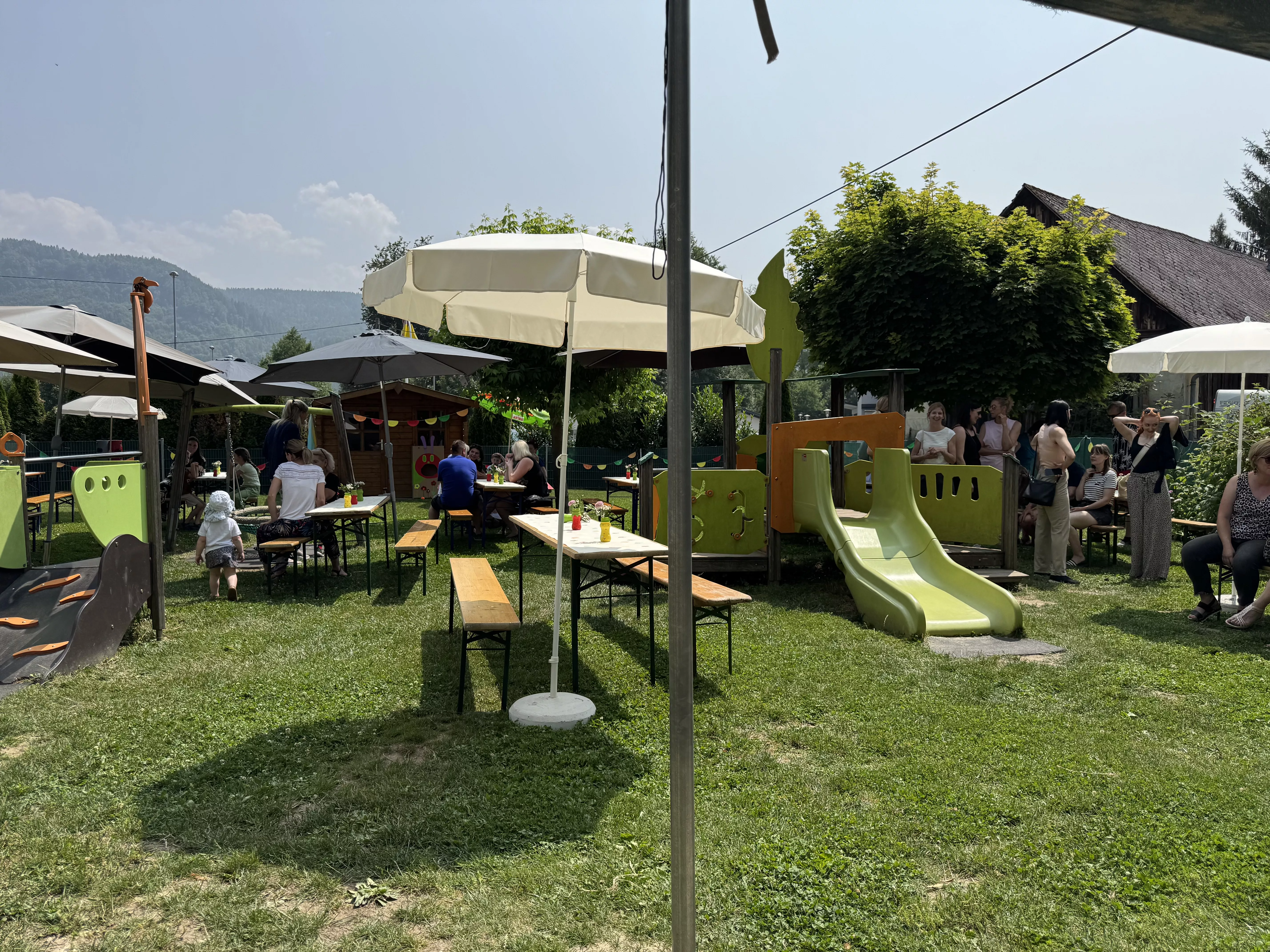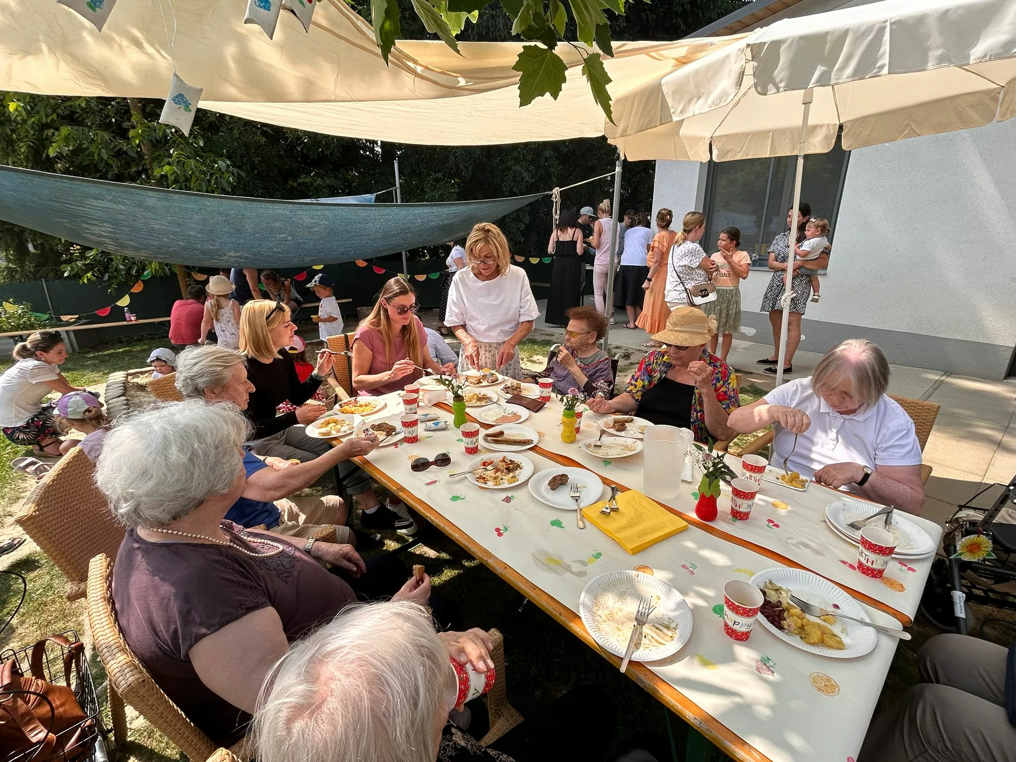 Kulinarisch wurden wir mit Gegrilltem, frischen Salaten und fruchtigen Köstlichkeiten verwöhnt. Eine Smoothiebar lud zum Probieren ein, erfrischend lecker! Bei bestem Sommerwetter genossen wir die entspannte Atmosphäre, und das fröhliche Kinderlachen.