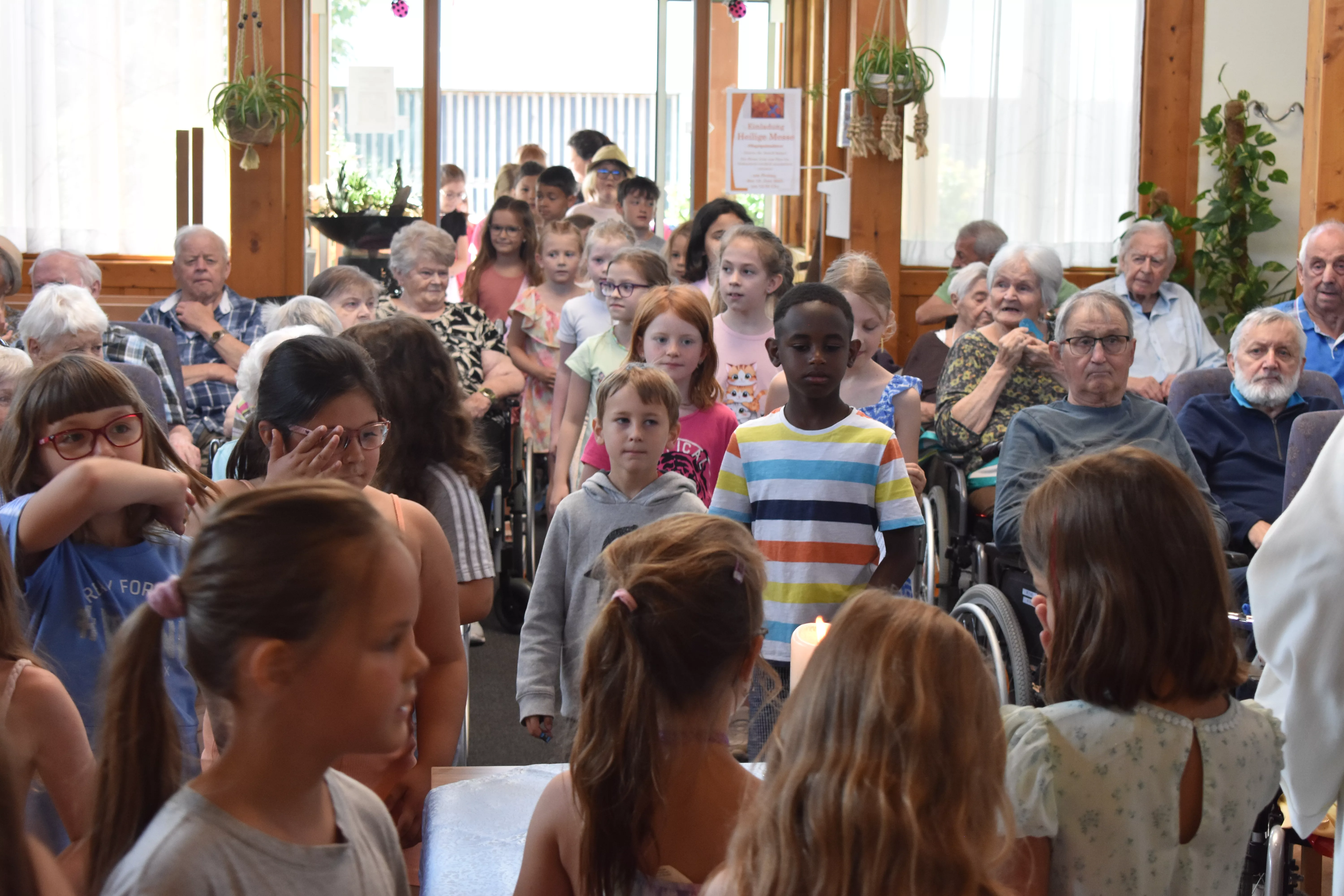 Am Freitag, den 13. Juni 2025 veranstaltete unsere Pflegeheimseelsorgerin Michaela die Heilige Messe, durch die Chorkinder der Volksschule Lindfeld wurde die Messe wunderschön umrahmt.