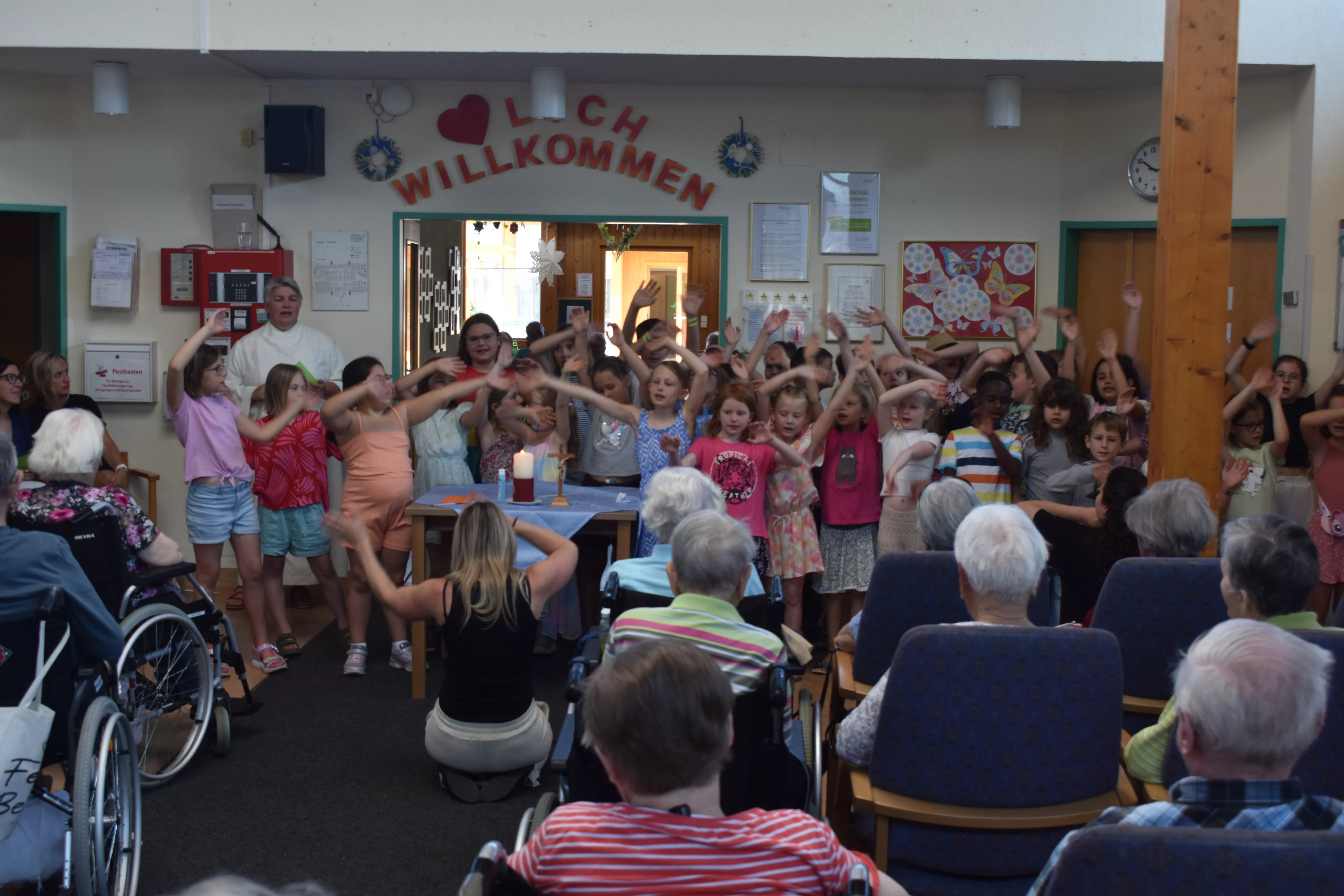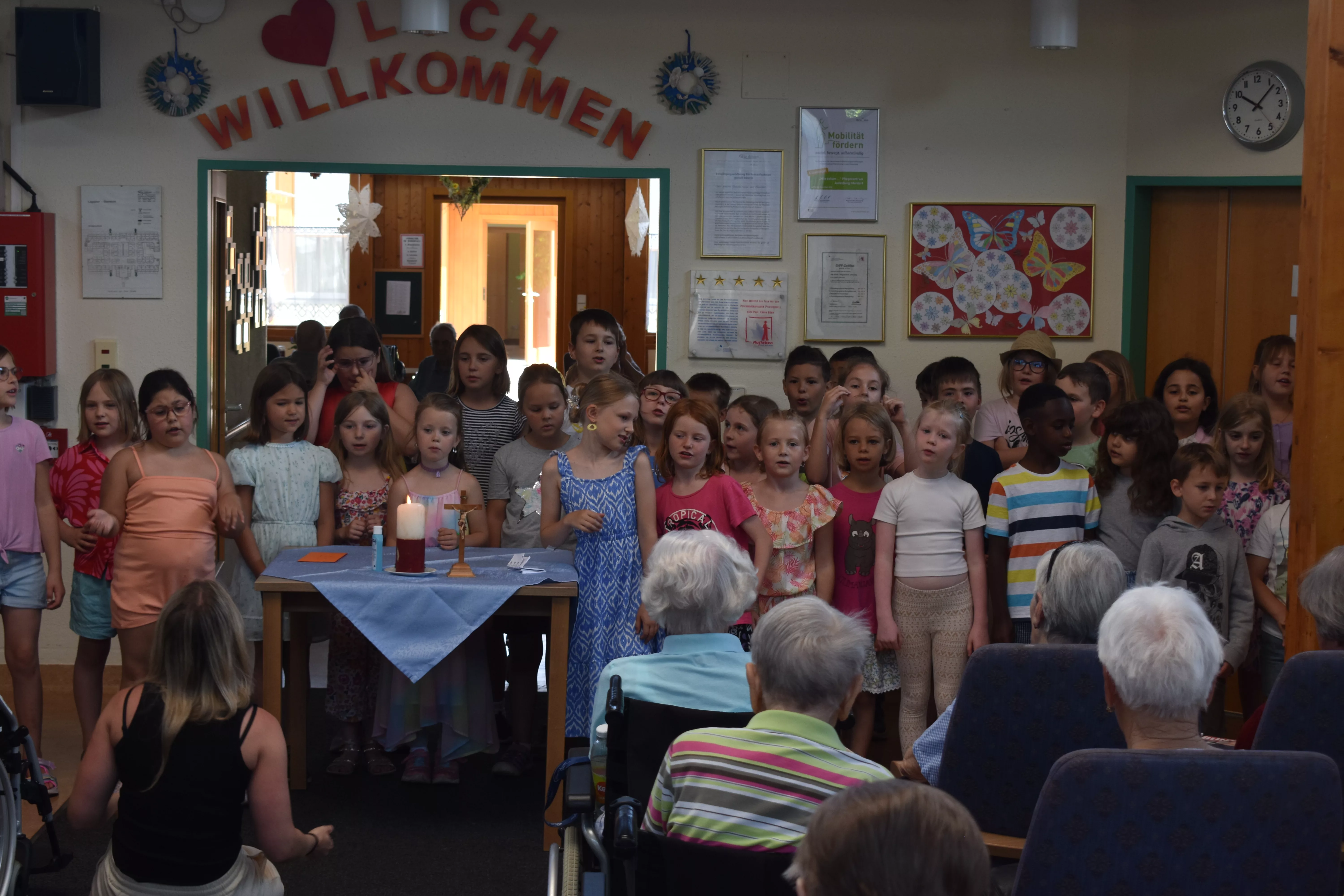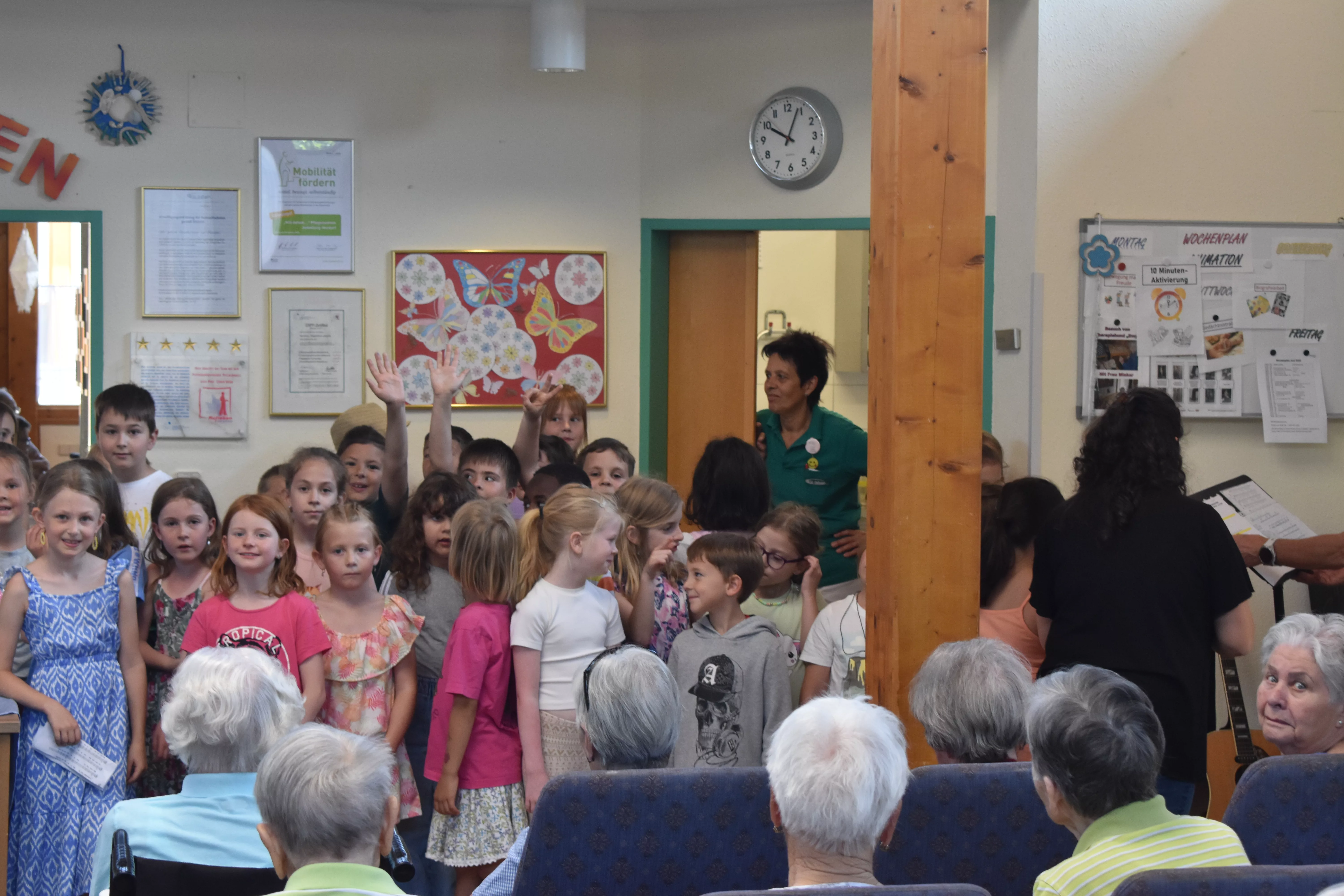 Die Mädchen und Buben sangen voller Freude und auch unsere BewohnerInnen stimmten mit ein.
