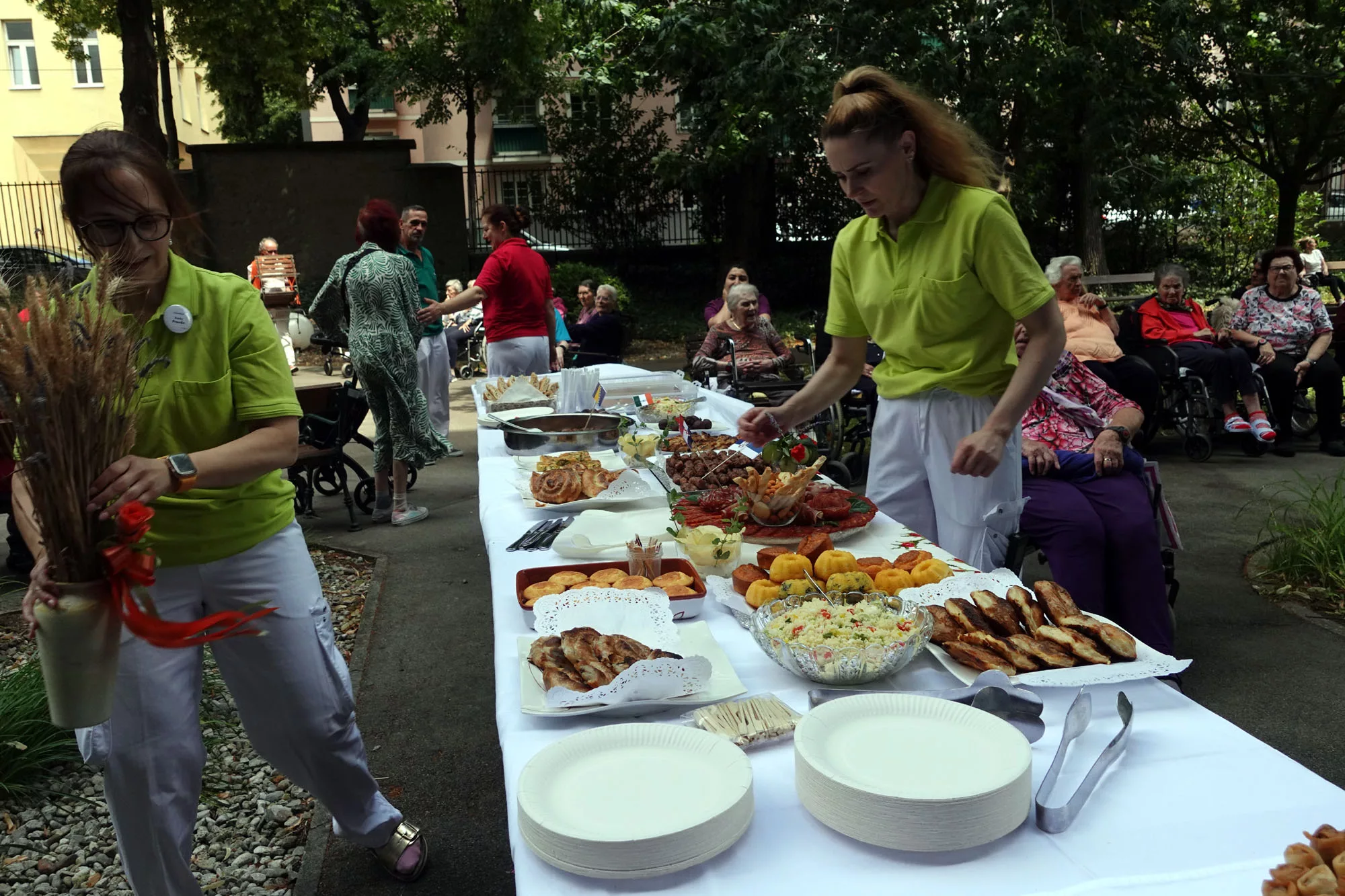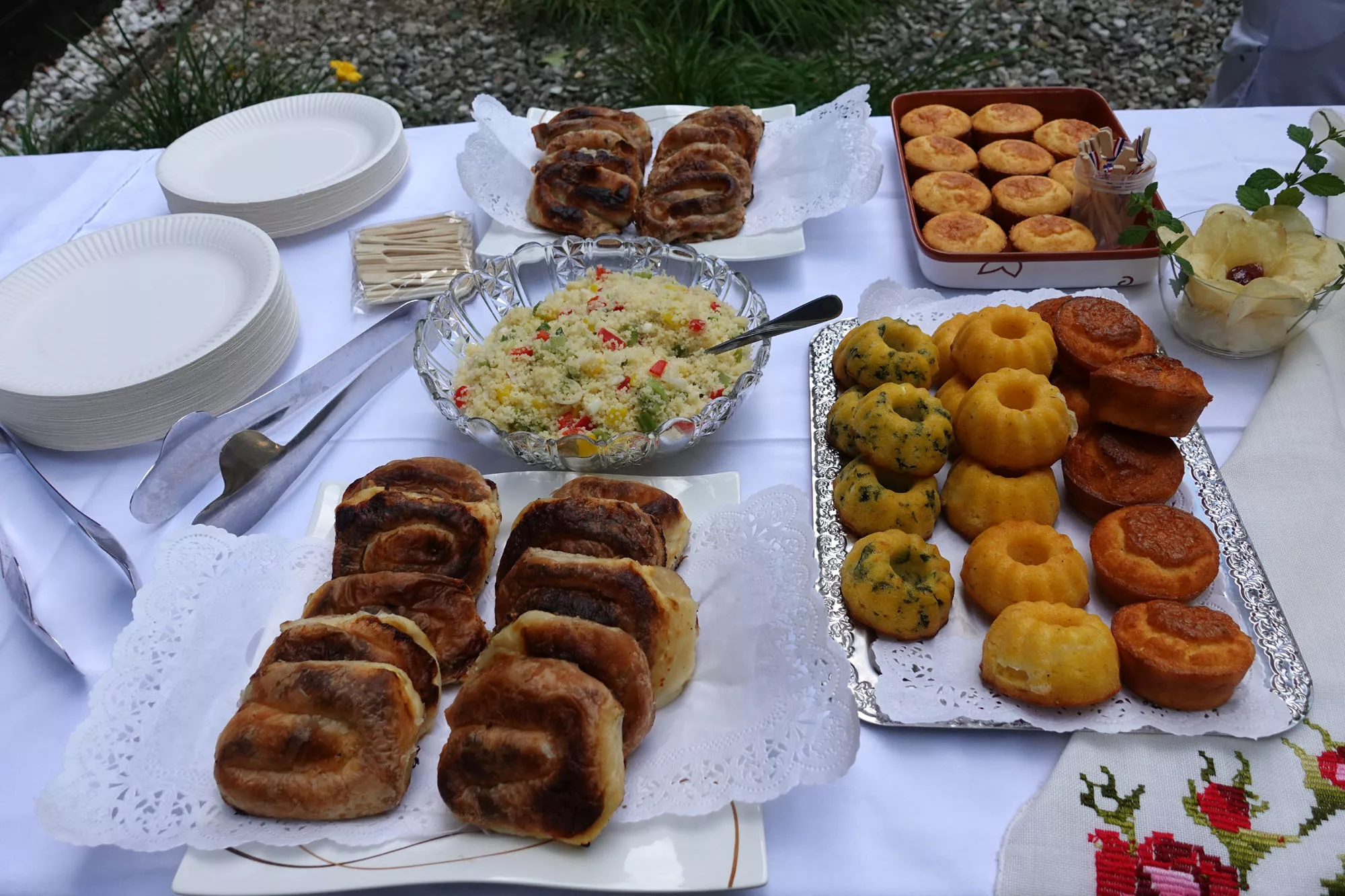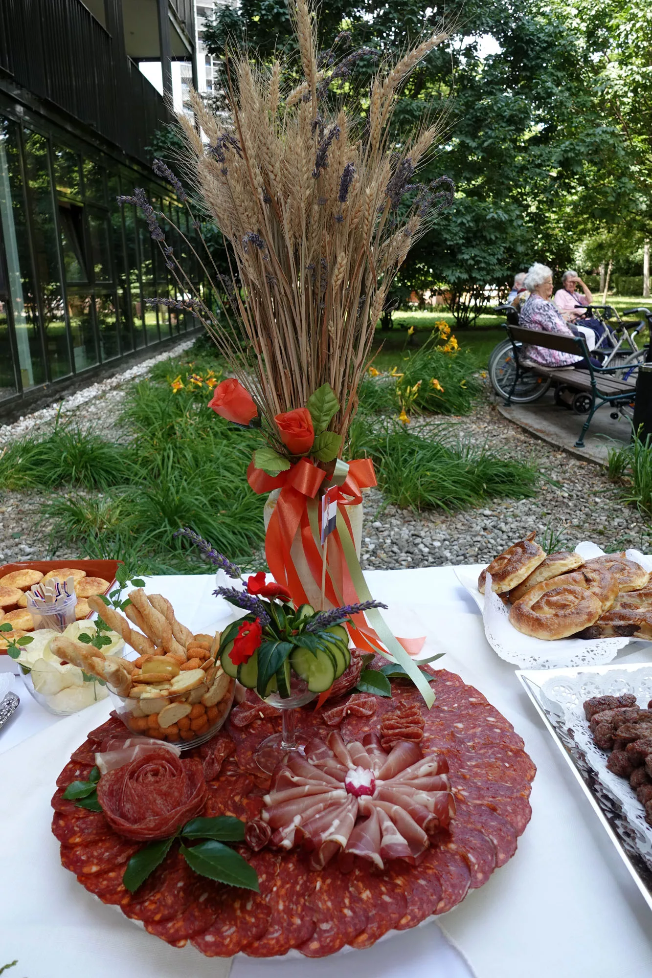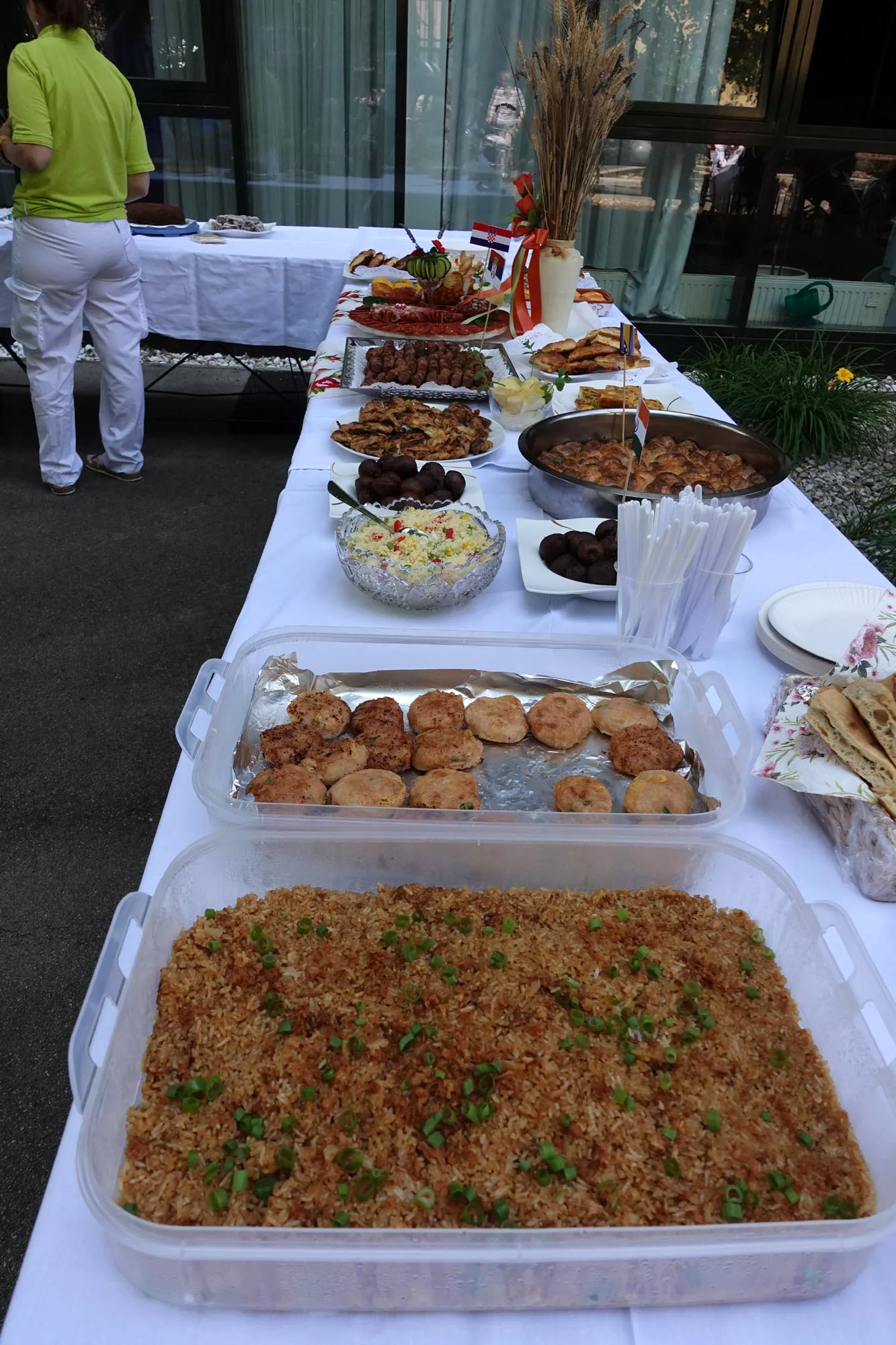 Die Vielfalt unserer Mitarbeiter spiegelte sich heute Nachmittag im Schlösslpark wieder. Entsprechend ihrer Herkunft präsentierten sie den Bewohnern und auch den Kollegen Spezialitäten aus ihren Heimatländern. Jeder durfte sich von allen angebotenen Speisen eine Kostprobe nehmen. Es war interessant zu beobachten, wie untereinander Rezepte ausgetauscht wurden.
