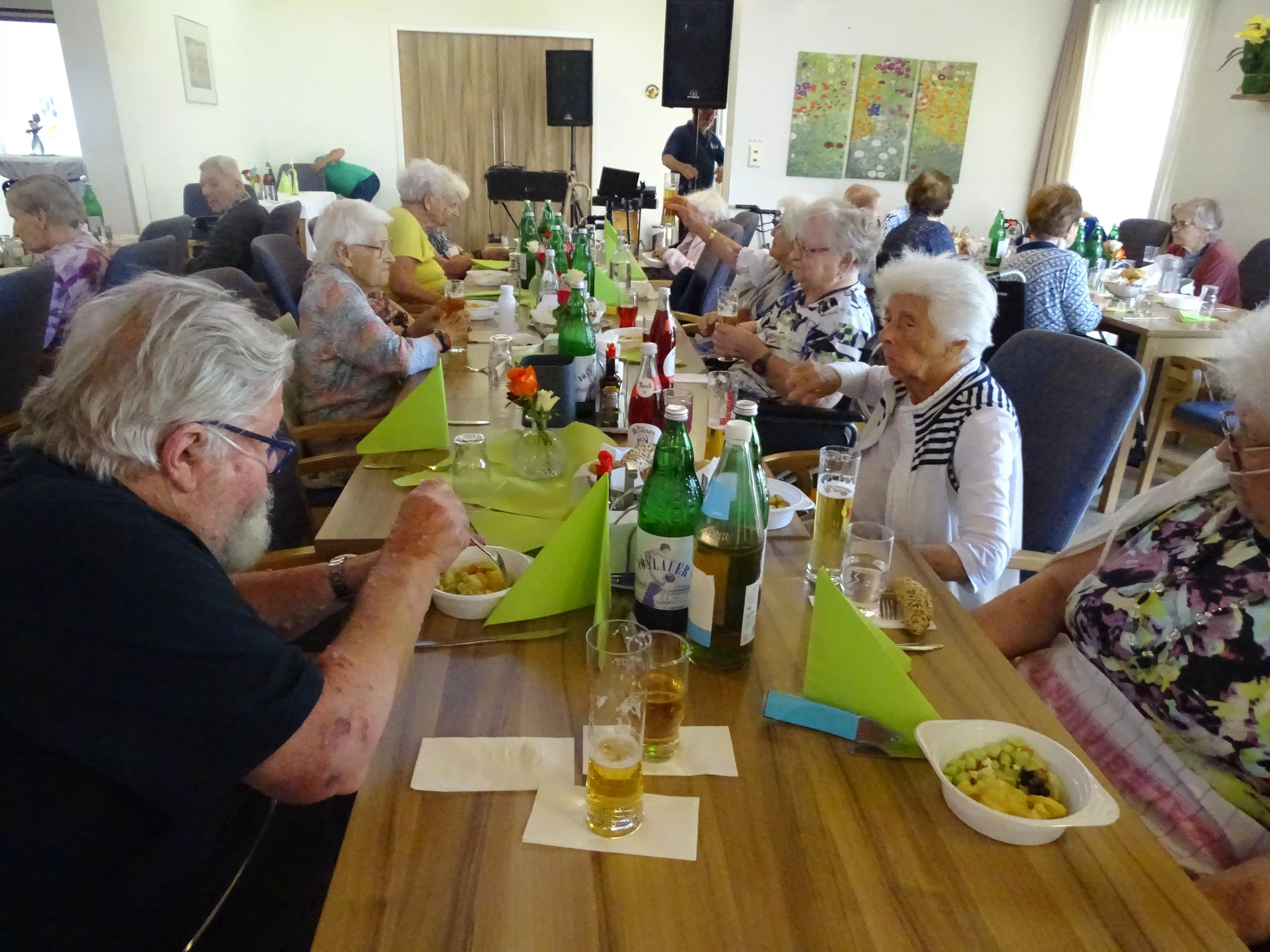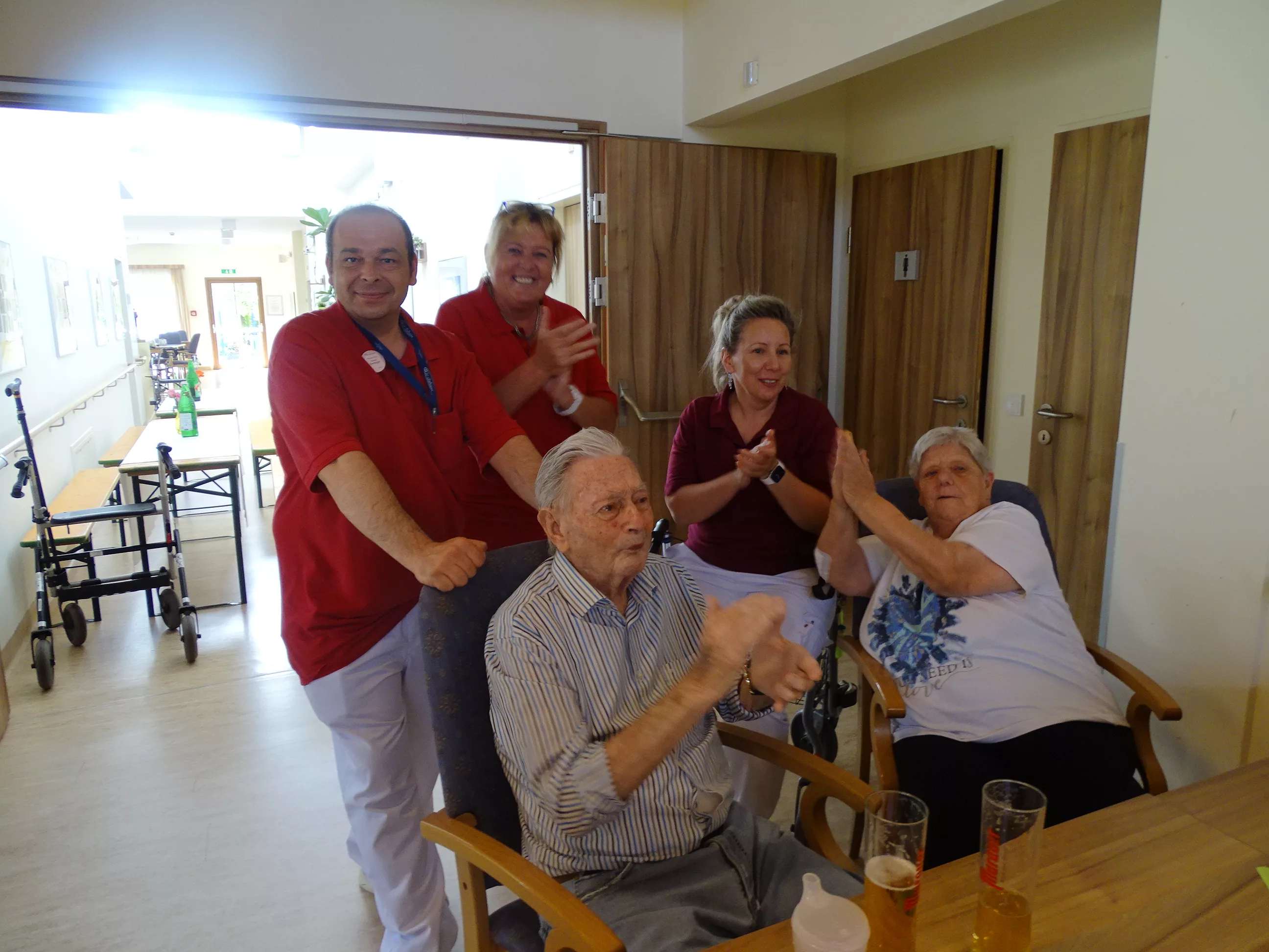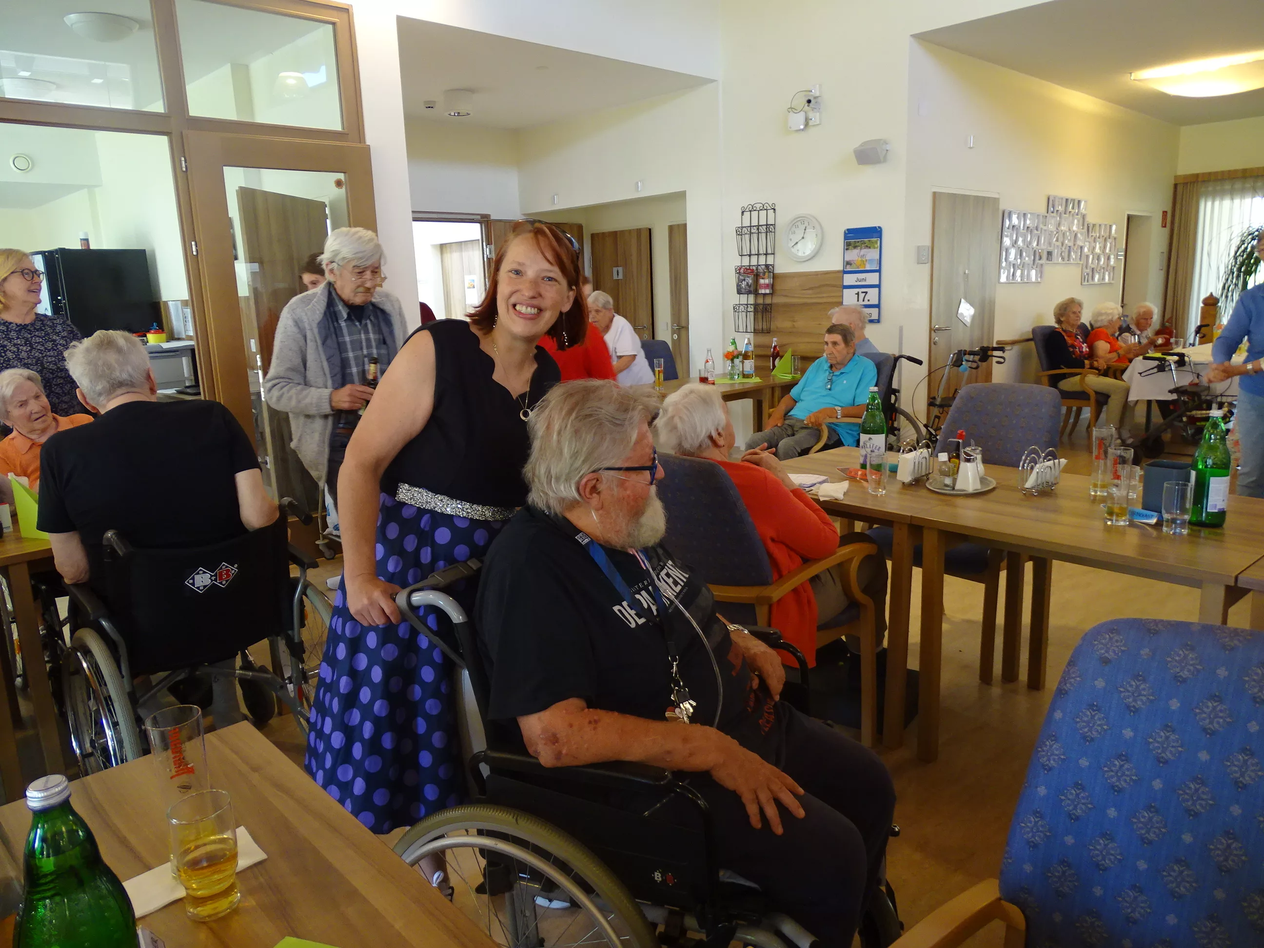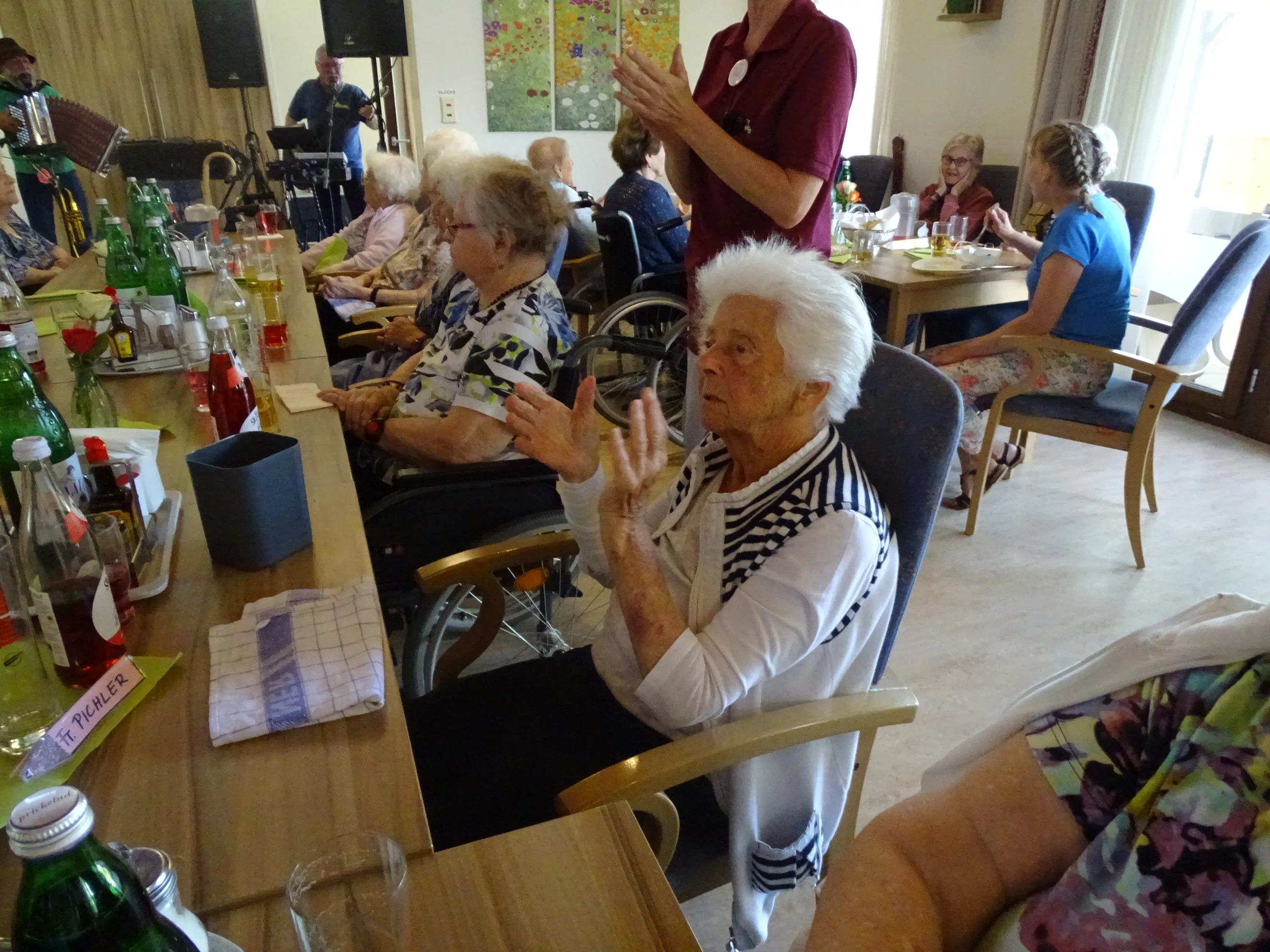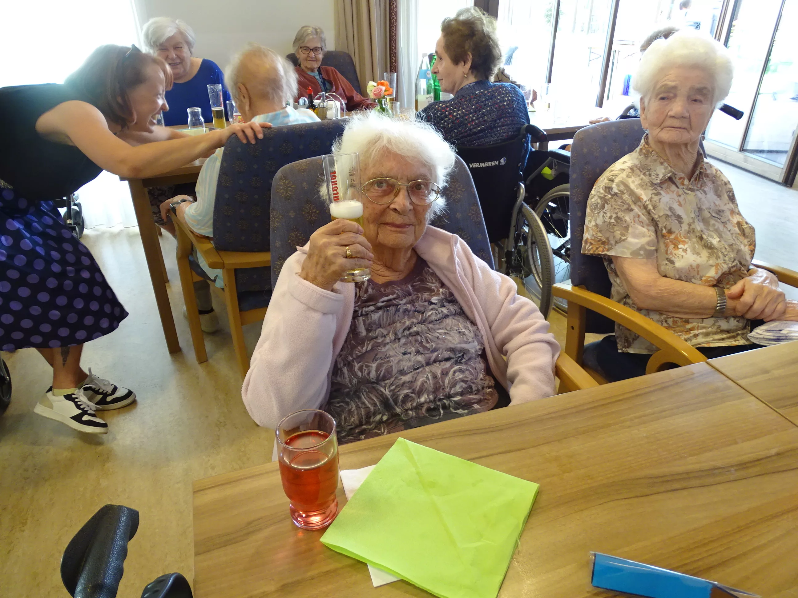 Am 17.06.2025 fand bei uns im Generationenpark Zeltweg wieder ein tolles Fest statt. Diesmal besuchte uns unsere Küchenchefin Gaby und grillte unter blitzblauem Himmel und wunderschönem Sonnenschein Bratwürste, Käsekrainer, Grillfleisch und gefüllte Rouladen, dazu schenkte unsere Heimleitung Maria Heibili gekonnt Bier vom Faß aus! Das Gegrillte und das Bier schmeckte einfach köstlich! Nach dem wunderbaren Essen umrahmten die Stohlis unser Fest mit bester Musik! Wir alle haben getanzt, geschunkelt und gelacht! Unser Haus bebte vor lauter guter Stimmung! Als Abrundung gab es eine leckere Erdbeerschnitte, die keiner ablehnen konnte!