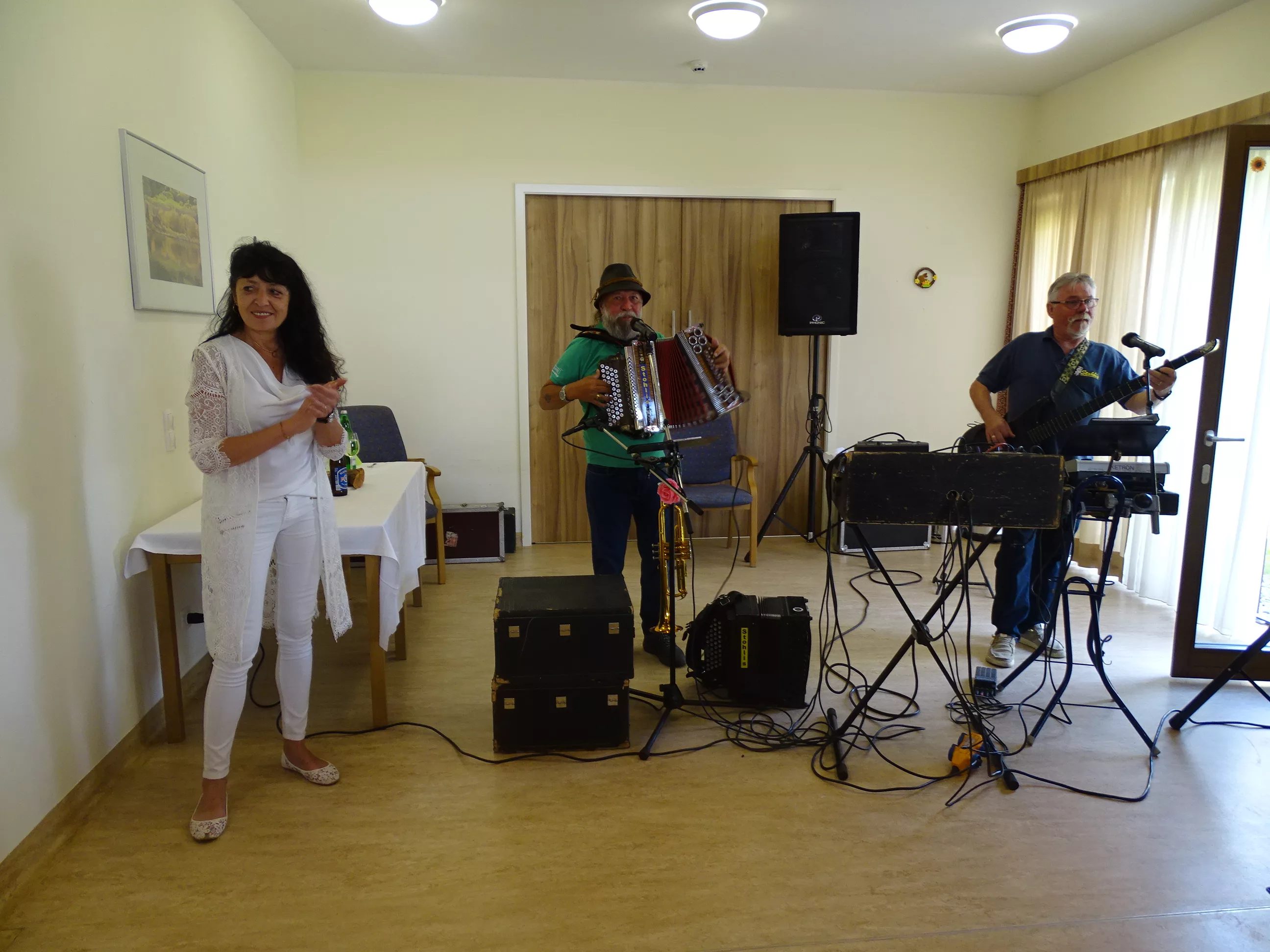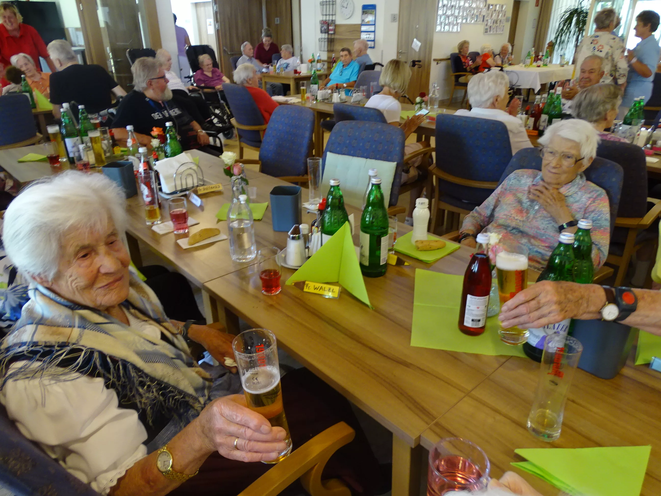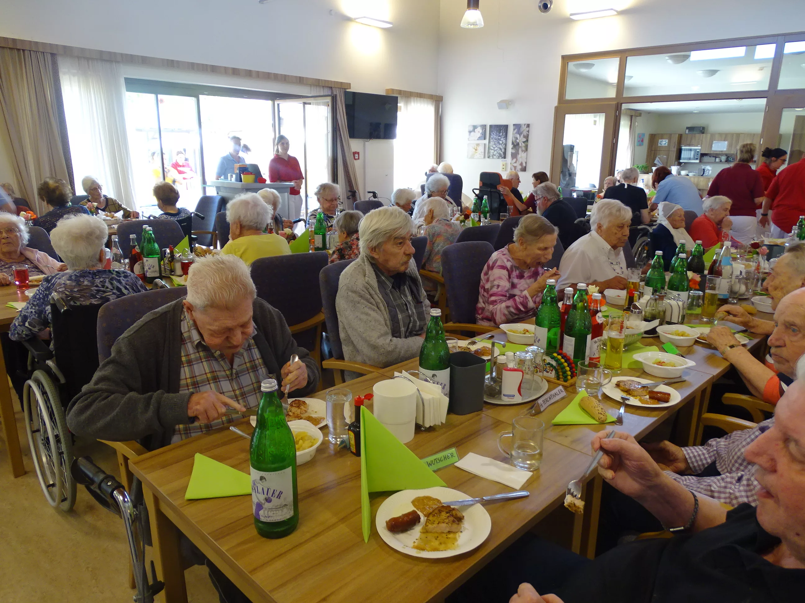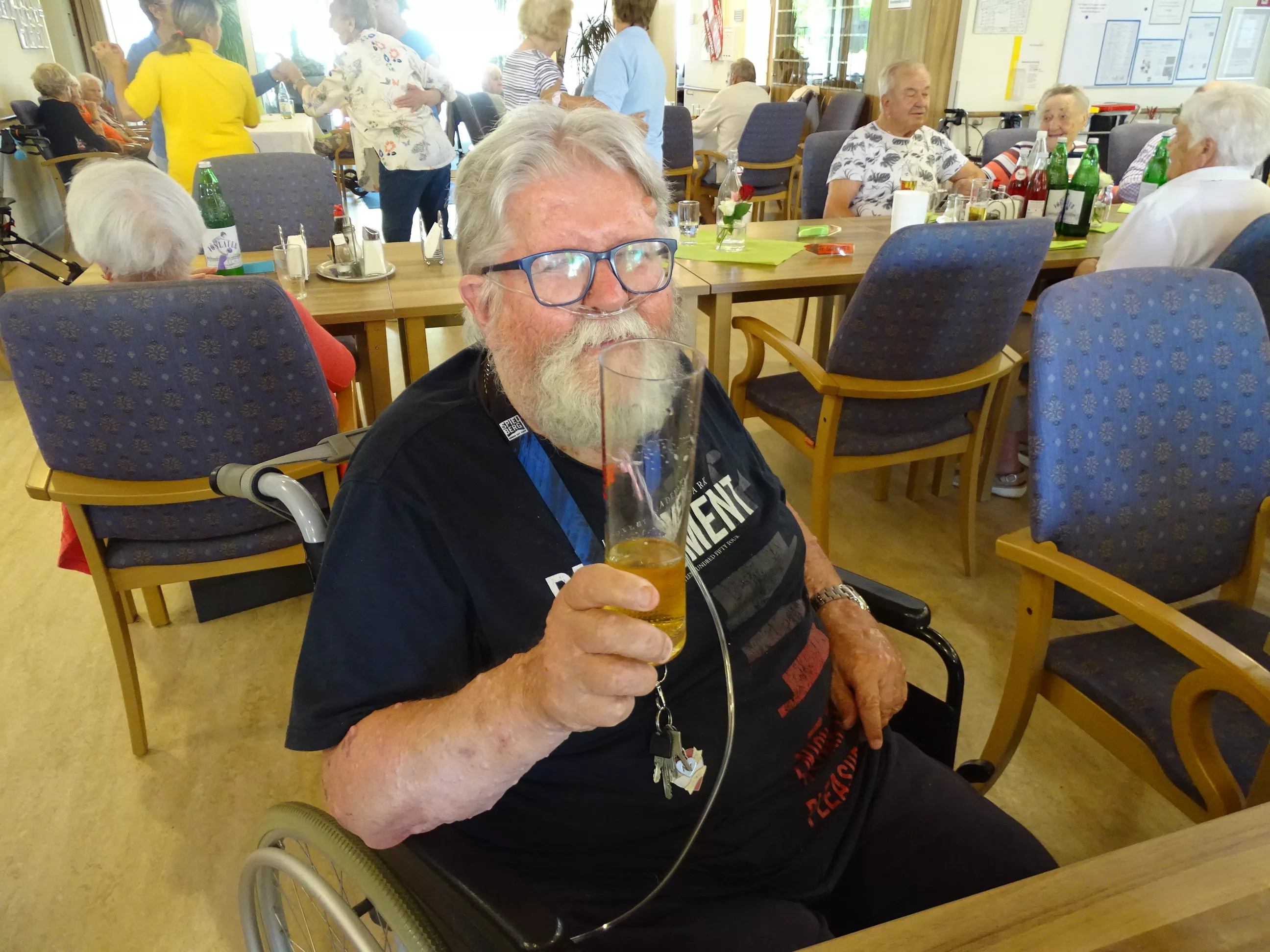 Am 17.06.2025 fand bei uns im Generationenpark Zeltweg wieder ein tolles Fest statt. Diesmal besuchte uns unsere Küchenchefin Gaby und grillte unter blitzblauem Himmel und wunderschönem Sonnenschein Bratwürste, Käsekrainer, Grillfleisch und gefüllte Rouladen, dazu schenkte unsere Heimleitung Maria Heibili gekonnt Bier vom Faß aus! Das Gegrillte und das Bier schmeckte einfach köstlich! Nach dem wunderbaren Essen umrahmten die Stohlis unser Fest mit bester Musik! Wir alle haben getanzt, geschunkelt und gelacht! Unser Haus bebte vor lauter guter Stimmung! Als Abrundung gab es eine leckere Erdbeerschnitte, die keiner ablehnen konnte!