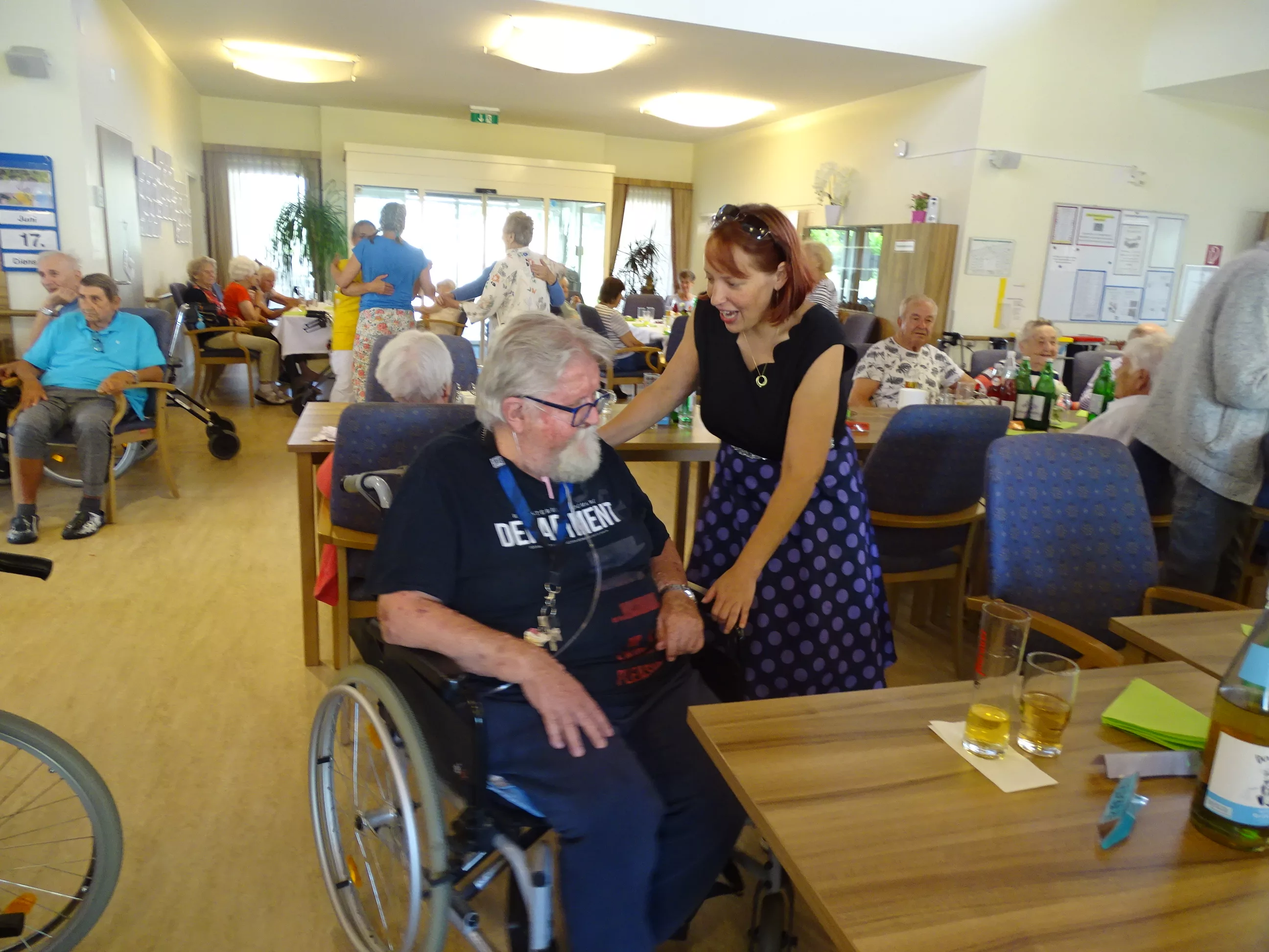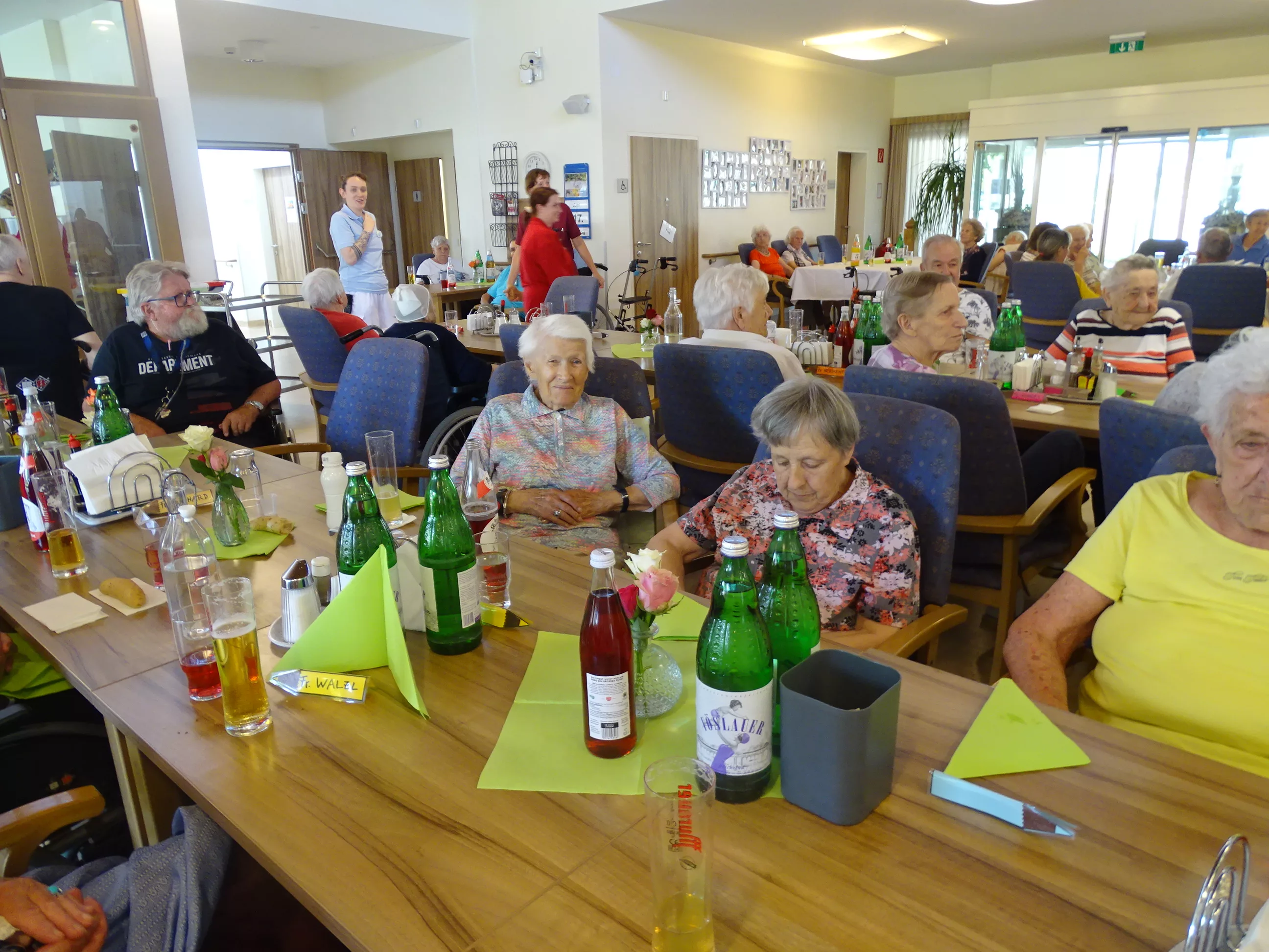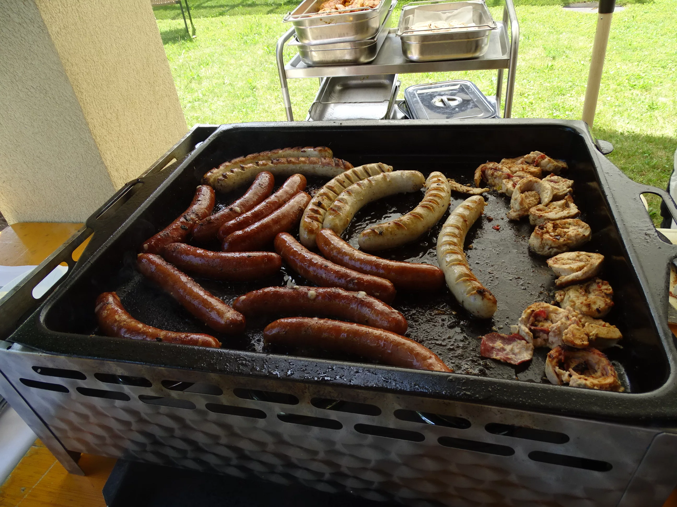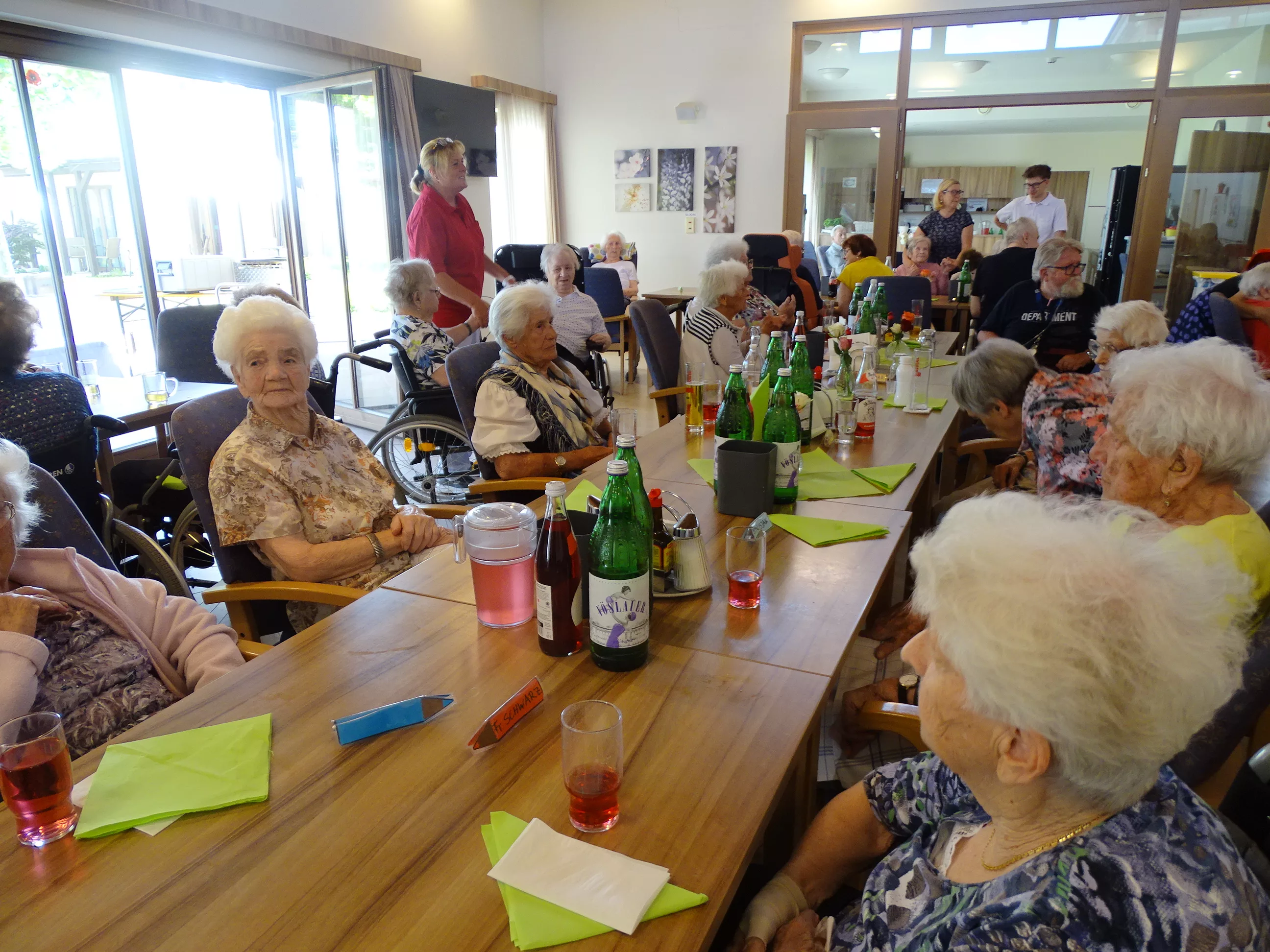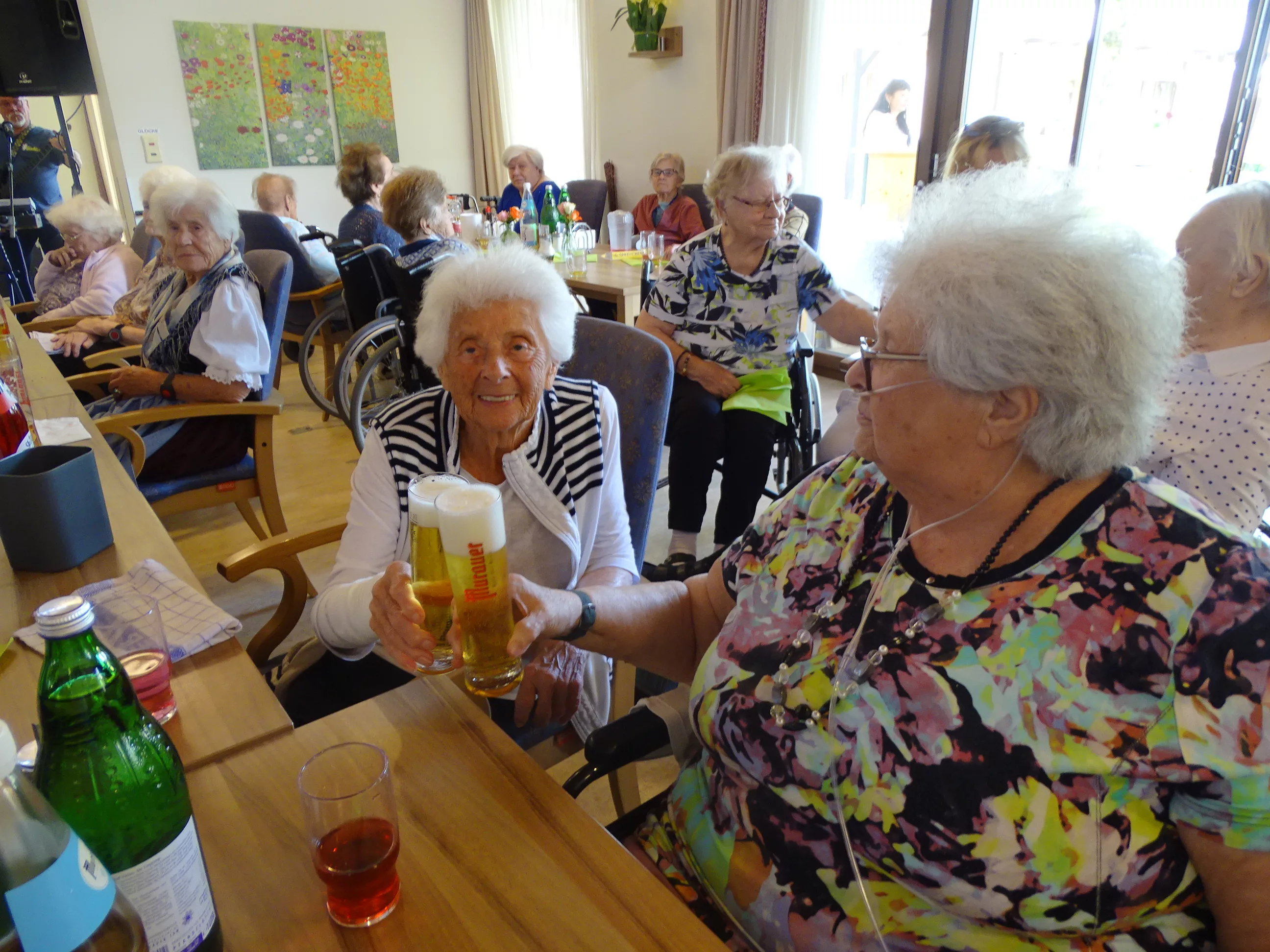 Am 17.06.2025 fand bei uns im Generationenpark Zeltweg wieder ein tolles Fest statt. Diesmal besuchte uns unsere Küchenchefin Gaby und grillte unter blitzblauem Himmel und wunderschönem Sonnenschein Bratwürste, Käsekrainer, Grillfleisch und gefüllte Rouladen, dazu schenkte unsere Heimleitung Maria Heibili gekonnt Bier vom Faß aus! Das Gegrillte und das Bier schmeckte einfach köstlich! Nach dem wunderbaren Essen umrahmten die Stohlis unser Fest mit bester Musik! Wir alle haben getanzt, geschunkelt und gelacht! Unser Haus bebte vor lauter guter Stimmung! Als Abrundung gab es eine leckere Erdbeerschnitte, die keiner ablehnen konnte!