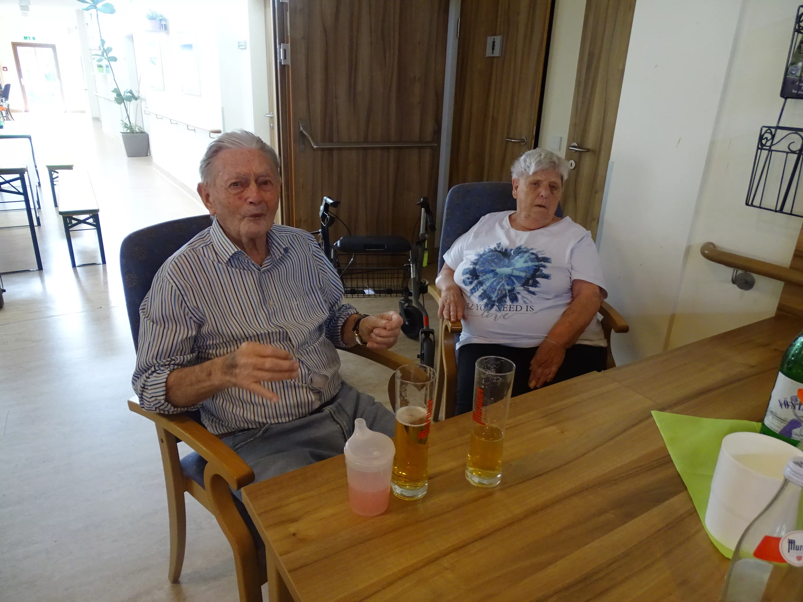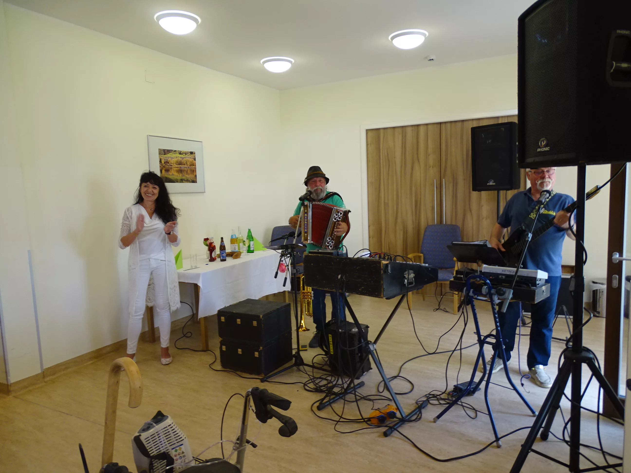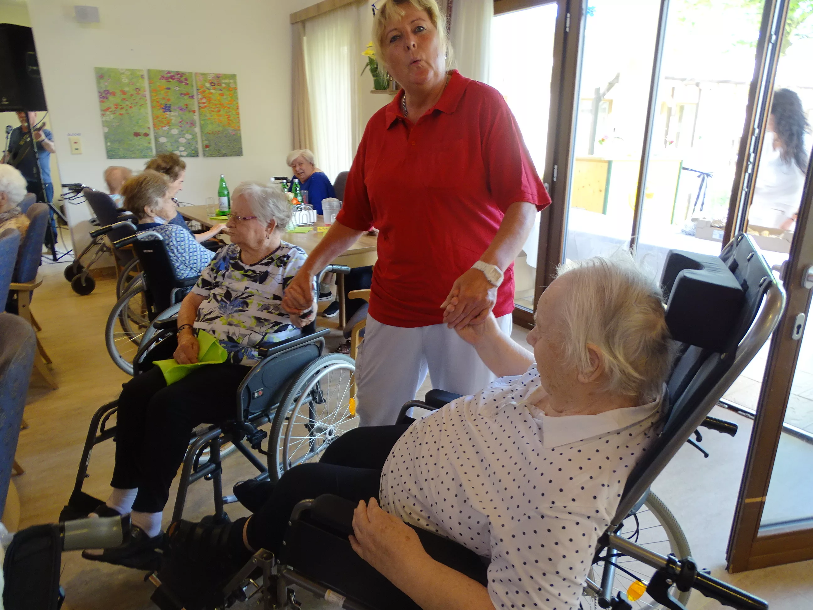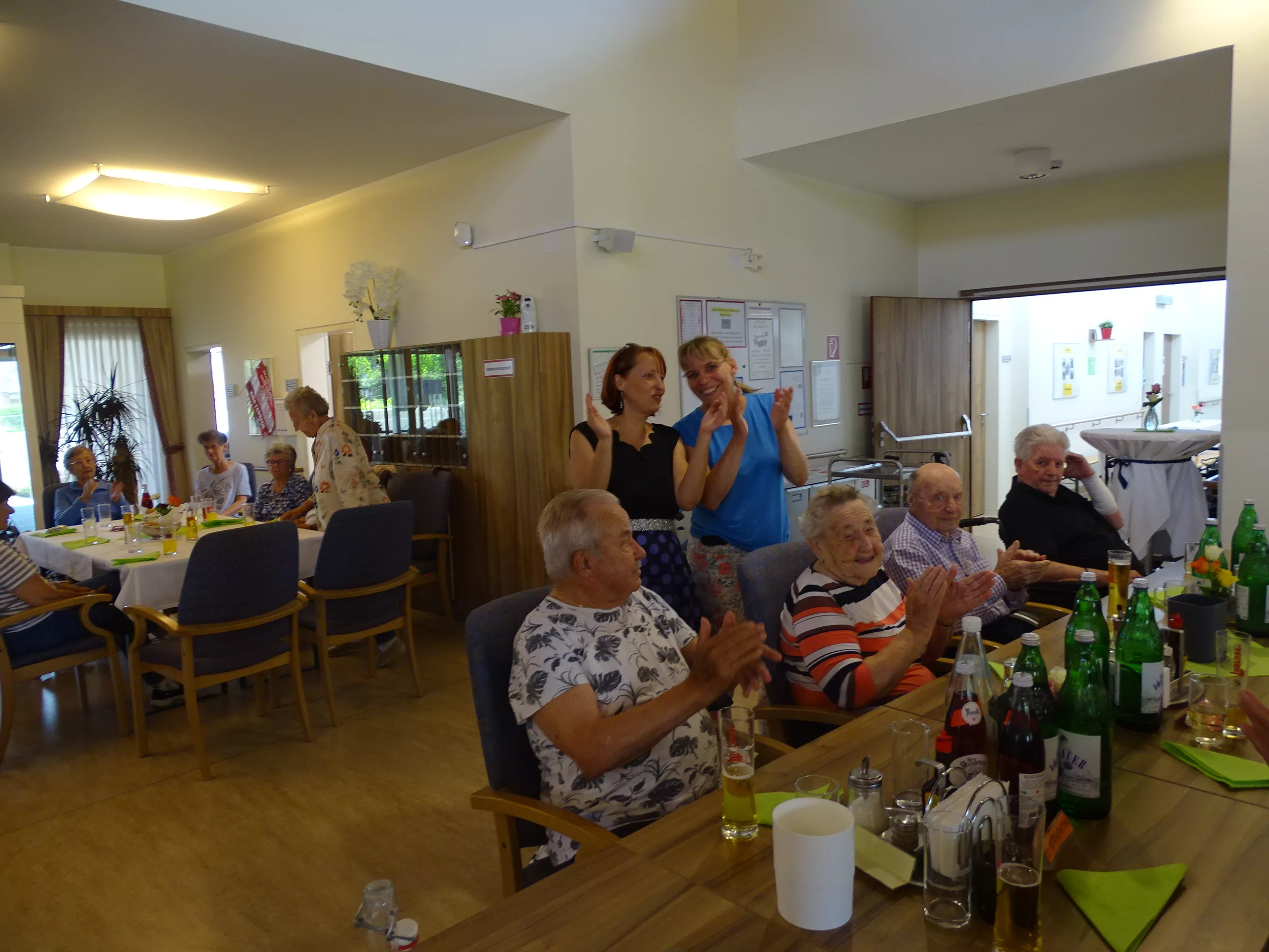 Am 17.06.2025 fand bei uns im Generationenpark Zeltweg wieder ein tolles Fest statt. Diesmal besuchte uns unsere Küchenchefin Gaby und grillte unter blitzblauem Himmel und wunderschönem Sonnenschein Bratwürste, Käsekrainer, Grillfleisch und gefüllte Rouladen, dazu schenkte unsere Heimleitung Maria Heibili gekonnt Bier vom Faß aus! Das Gegrillte und das Bier schmeckte einfach köstlich! Nach dem wunderbaren Essen umrahmten die Stohlis unser Fest mit bester Musik! Wir alle haben getanzt, geschunkelt und gelacht! Unser Haus bebte vor lauter guter Stimmung! Als Abrundung gab es eine leckere Erdbeerschnitte, die keiner ablehnen konnte!