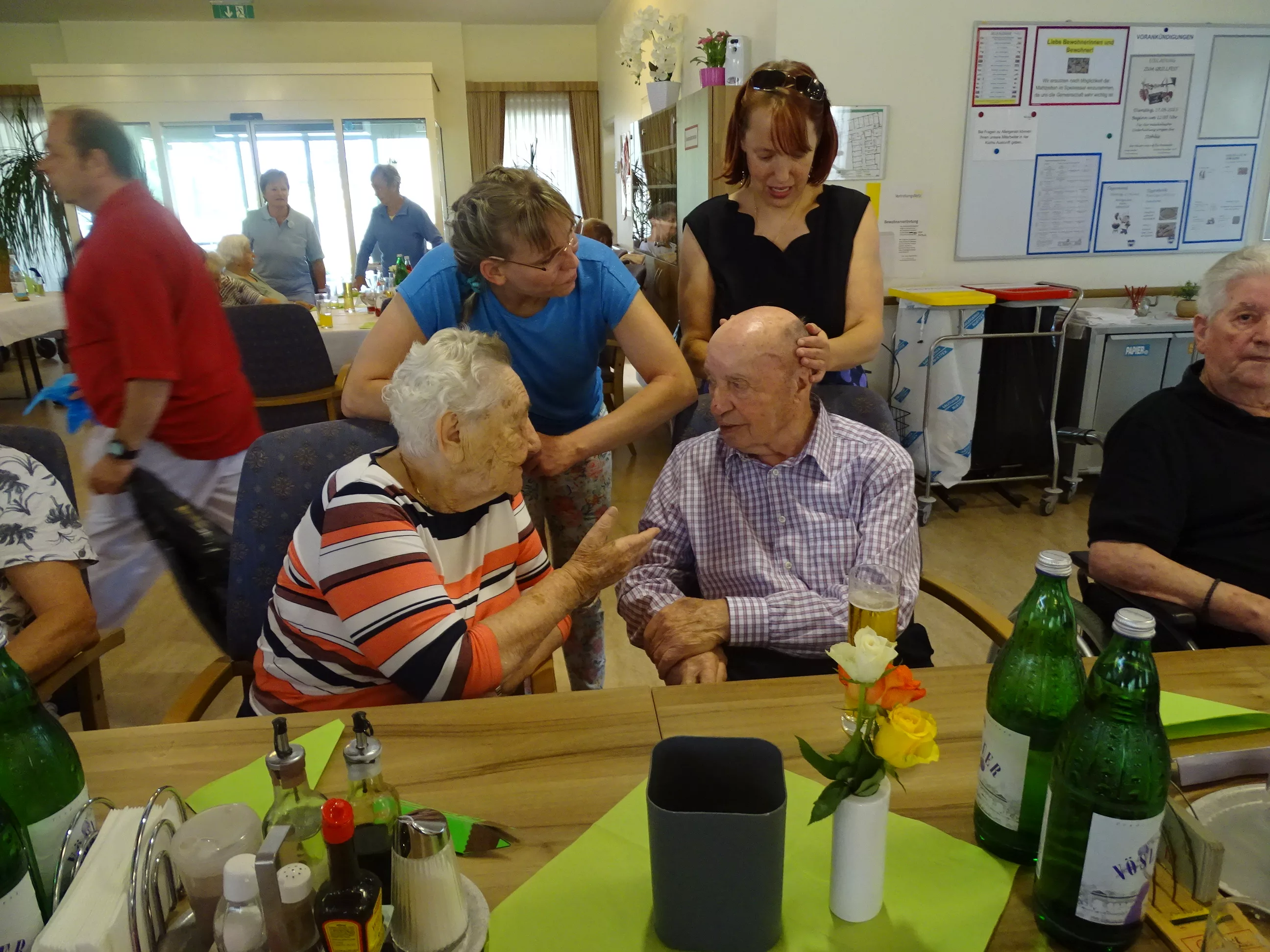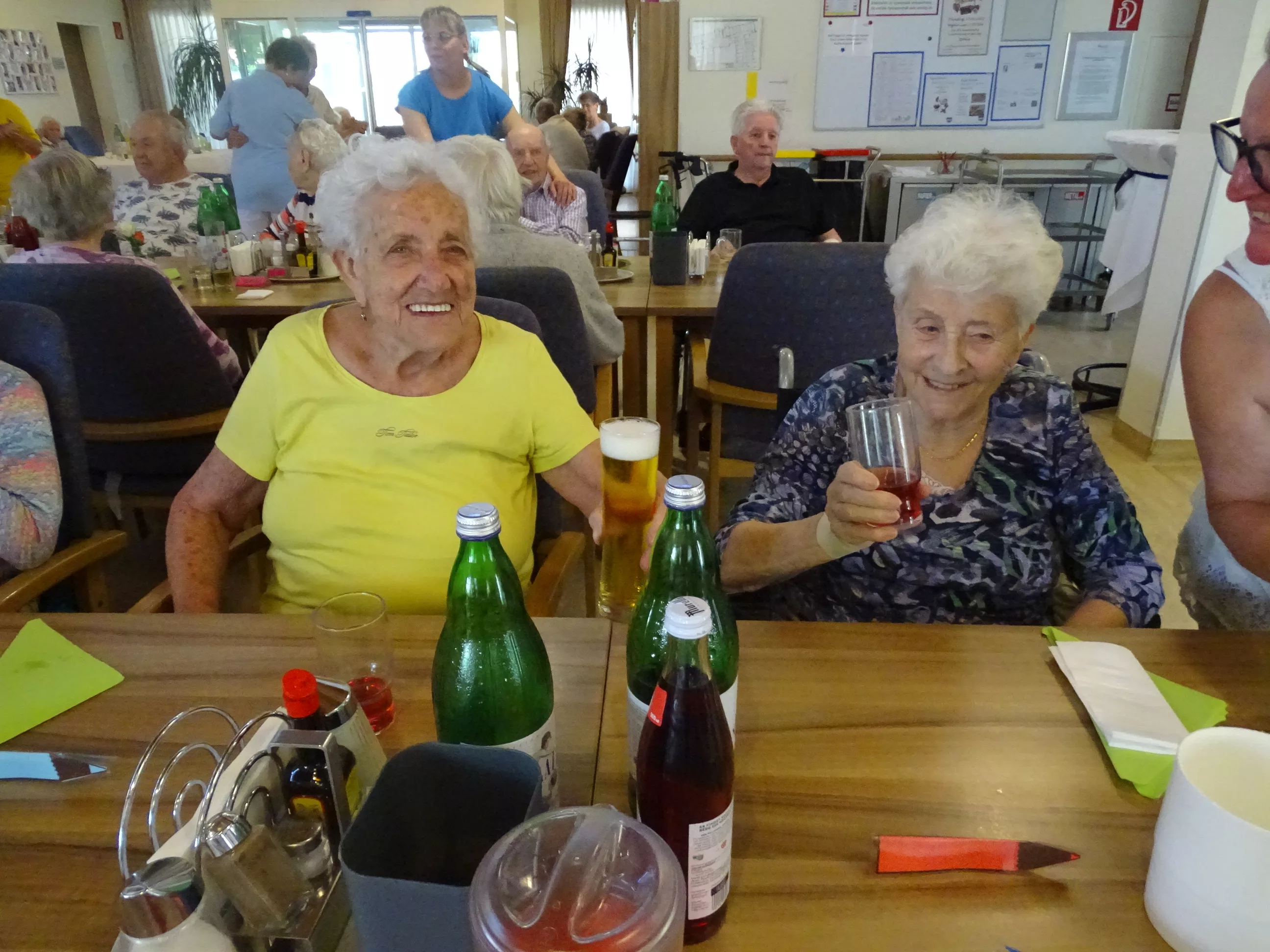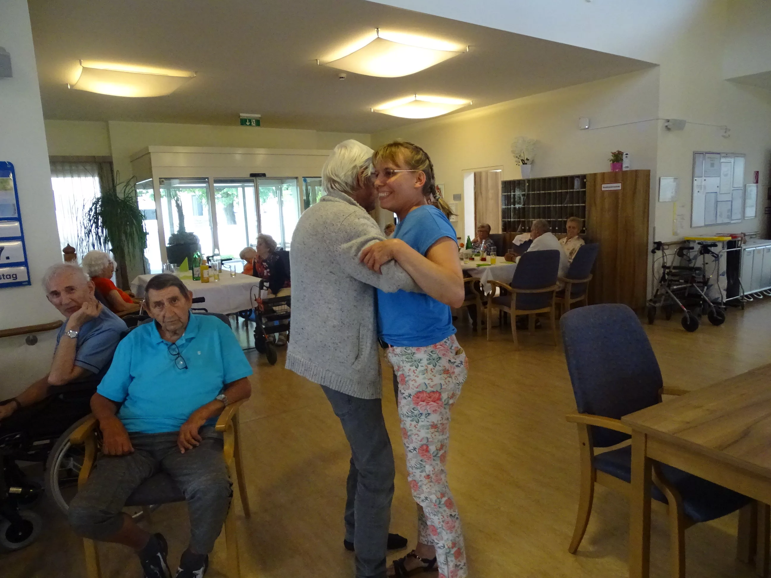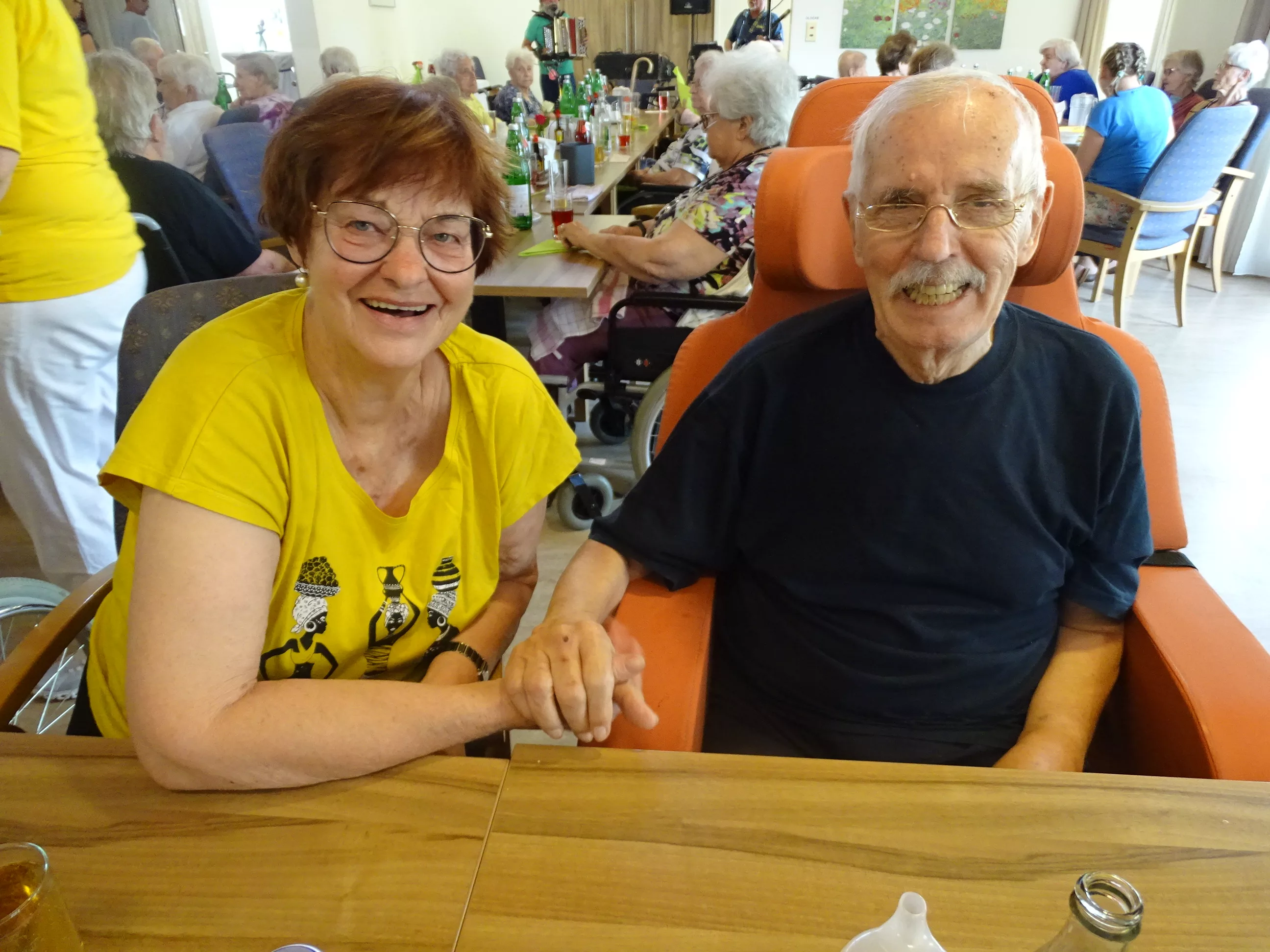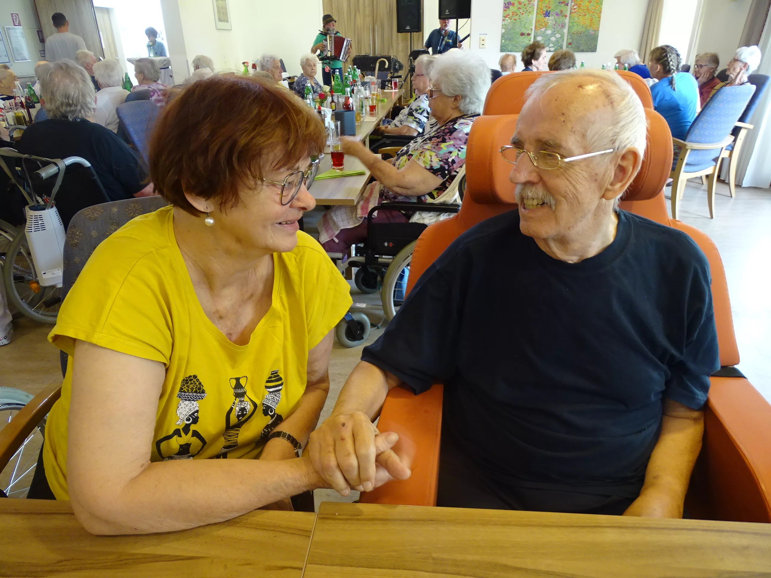 Am 17.06.2025 fand bei uns im Generationenpark Zeltweg wieder ein tolles Fest statt. Diesmal besuchte uns unsere Küchenchefin Gaby und grillte unter blitzblauem Himmel und wunderschönem Sonnenschein Bratwürste, Käsekrainer, Grillfleisch und gefüllte Rouladen, dazu schenkte unsere Heimleitung Maria Heibili gekonnt Bier vom Faß aus! Das Gegrillte und das Bier schmeckte einfach köstlich! Nach dem wunderbaren Essen umrahmten die Stohlis unser Fest mit bester Musik! Wir alle haben getanzt, geschunkelt und gelacht! Unser Haus bebte vor lauter guter Stimmung! Als Abrundung gab es eine leckere Erdbeerschnitte, die keiner ablehnen konnte!