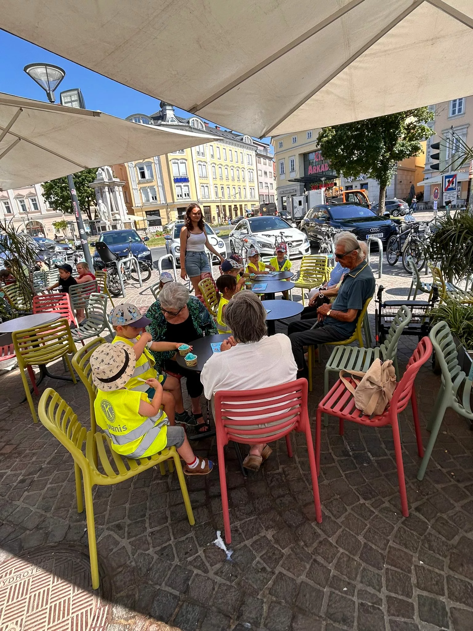 Heute durften unsere Bewohner und Bewohnerinnen einen besonders schönen Sommertag erleben. Gemeinsam mit den Kindern der Kita Abracadabra ging es zum Italiener Arcobaleno in Klagenfurt – natürlich zum Eis essen!