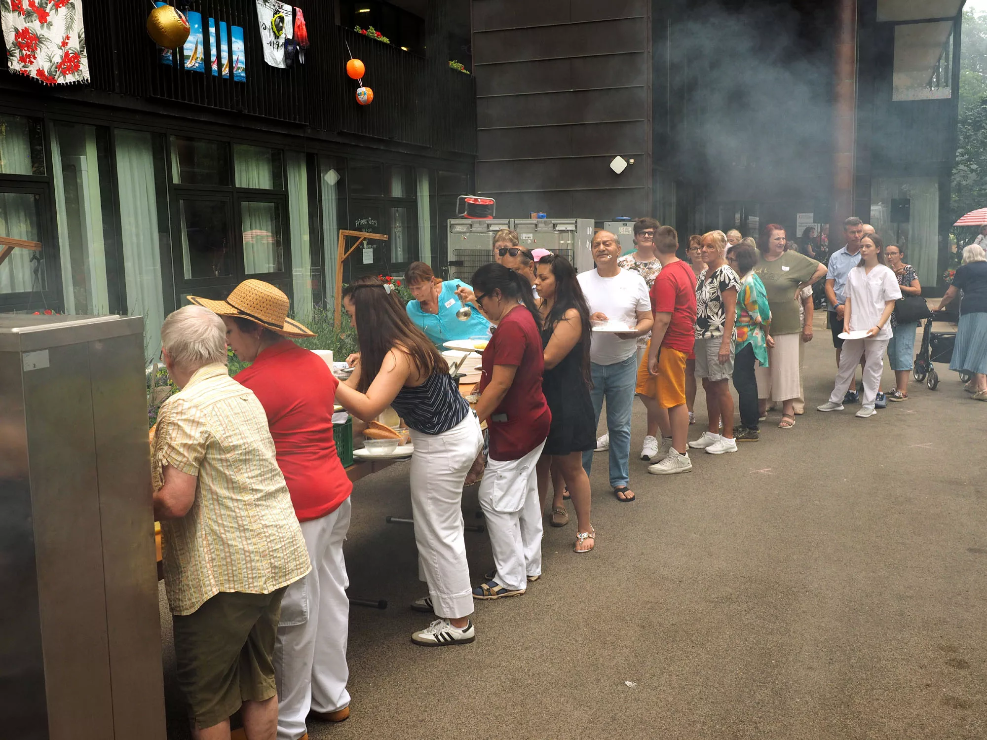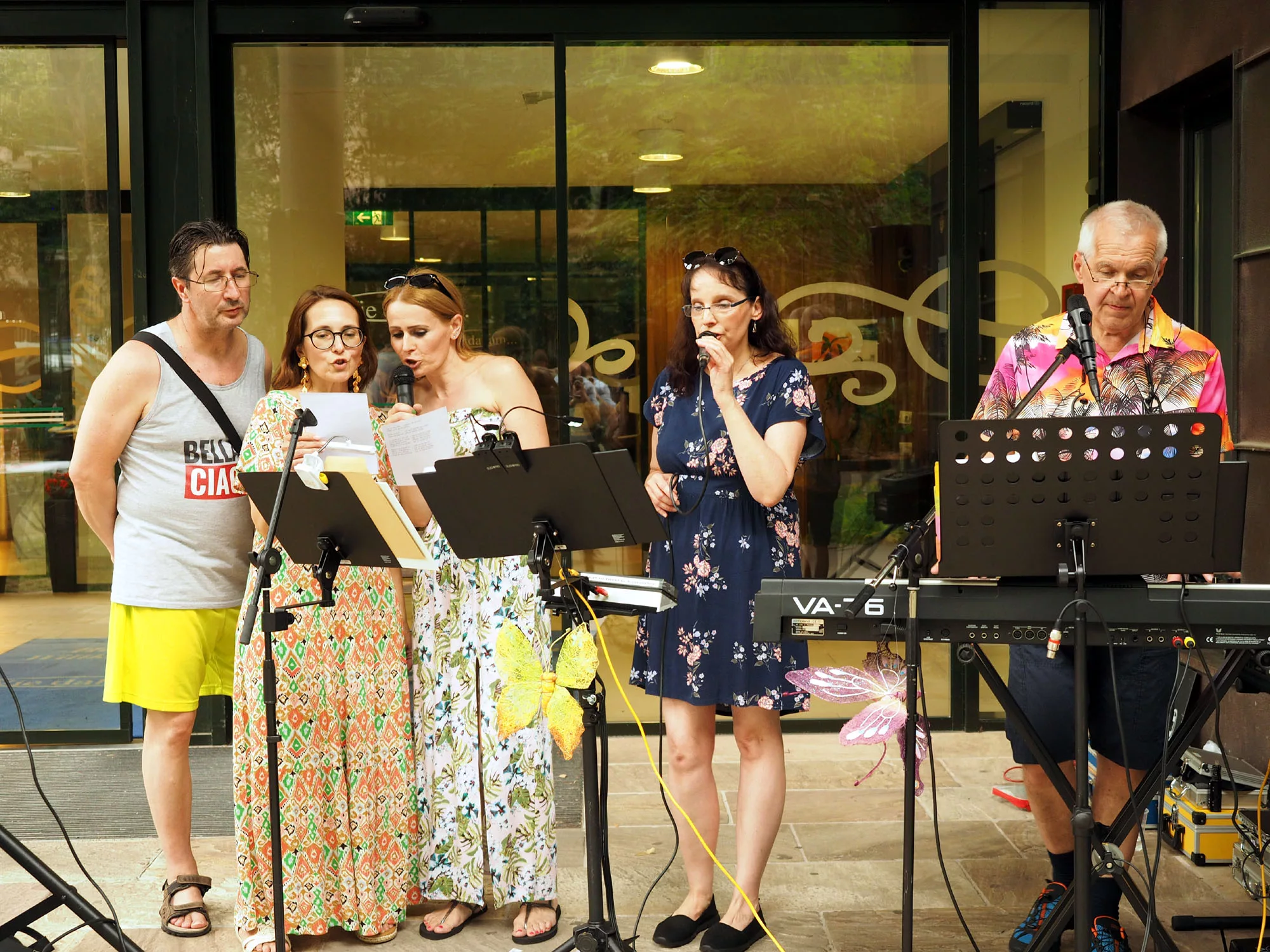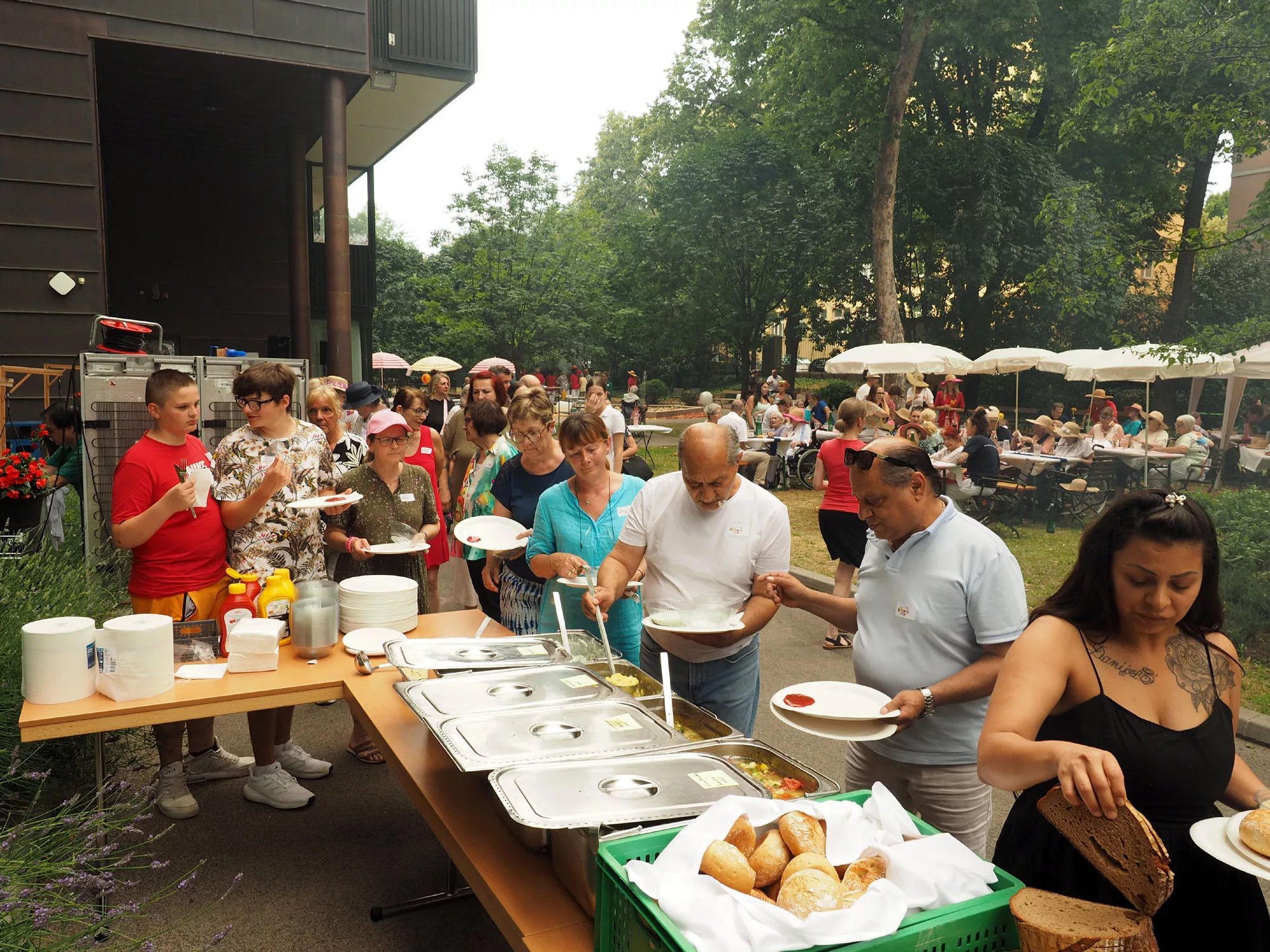 Ein Sommerfest wie man es sich nicht besser vorstellen kann, ging am 26. Juni im wahrsten Sinne des Wortes über die Bühne. Nach feierlicher Eröffnung und Begrüßung der Ehrengäste, unter anderem Frau Bezirksvorsteherin Christine Dubravac-Widholm, sowie die Präsidentin der Wiener Arbeiterkammer, Frau Renate Anderl, startete das Animationsteam mit dem Showprogramm. Die Festbesucher durften sich über eine Persiflage auf Reinhard Fendrichs „Strada del Sole“ amüsieren, gefolgt von einer Abwandlung von Frank Sinatras „New York, New York“ als Homage an Wien. Die Darbietungen des Animationsteams mit Frontfrau Pia überzeugten das Publikum mit semiprofessioneller Qualität, dass sogar die Frage aufgekommen ist, ob man des Ensemble für private Feiern buchen kann.