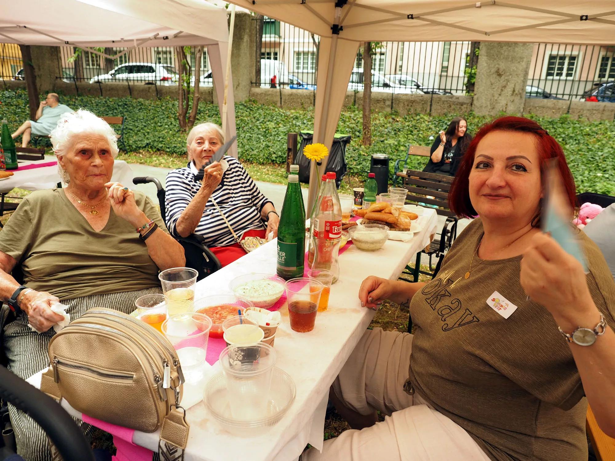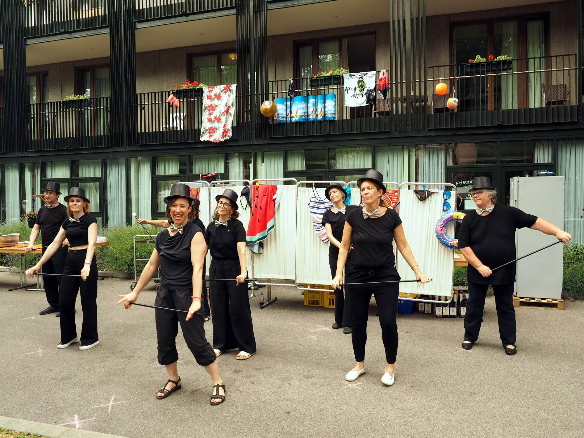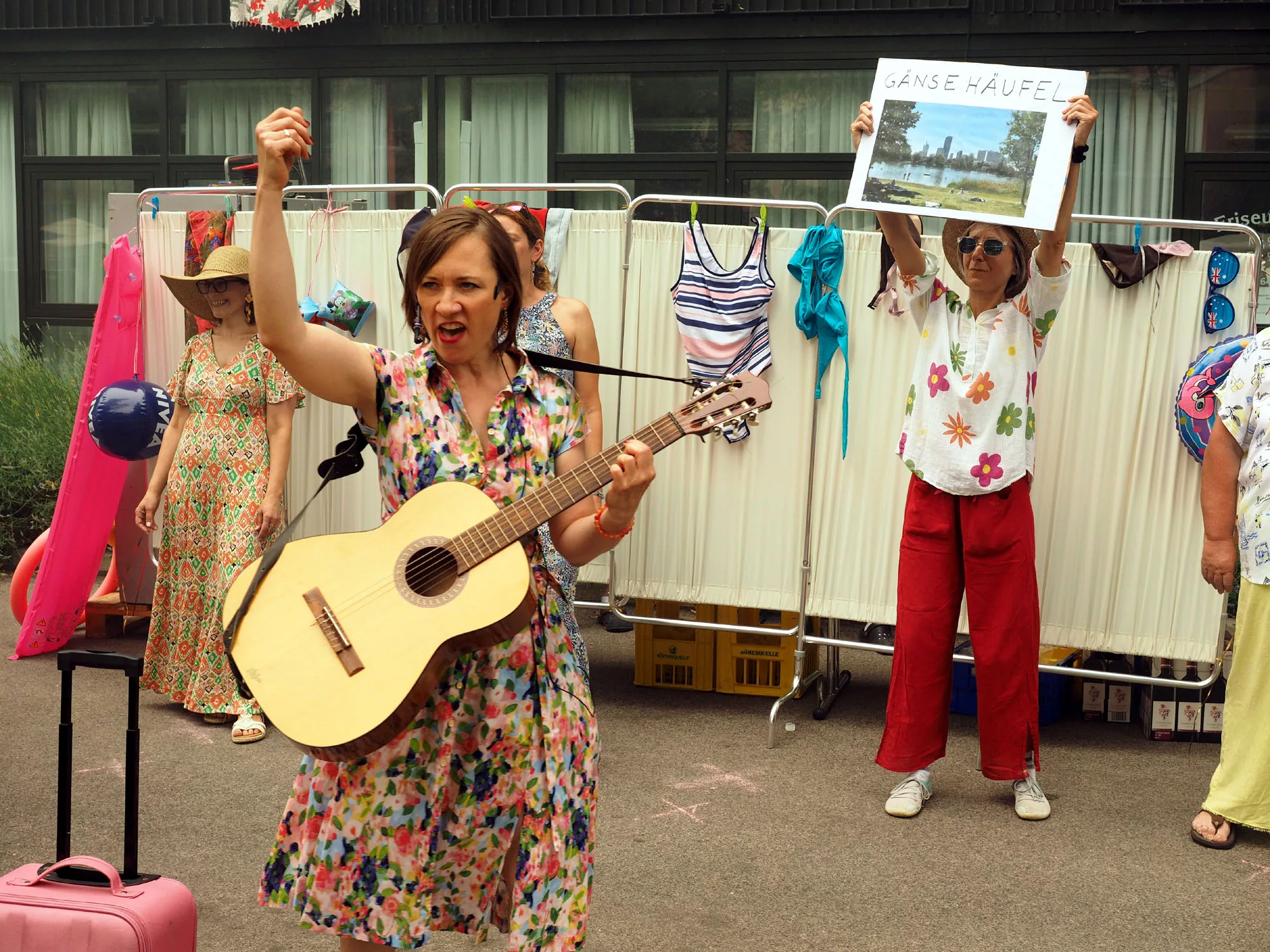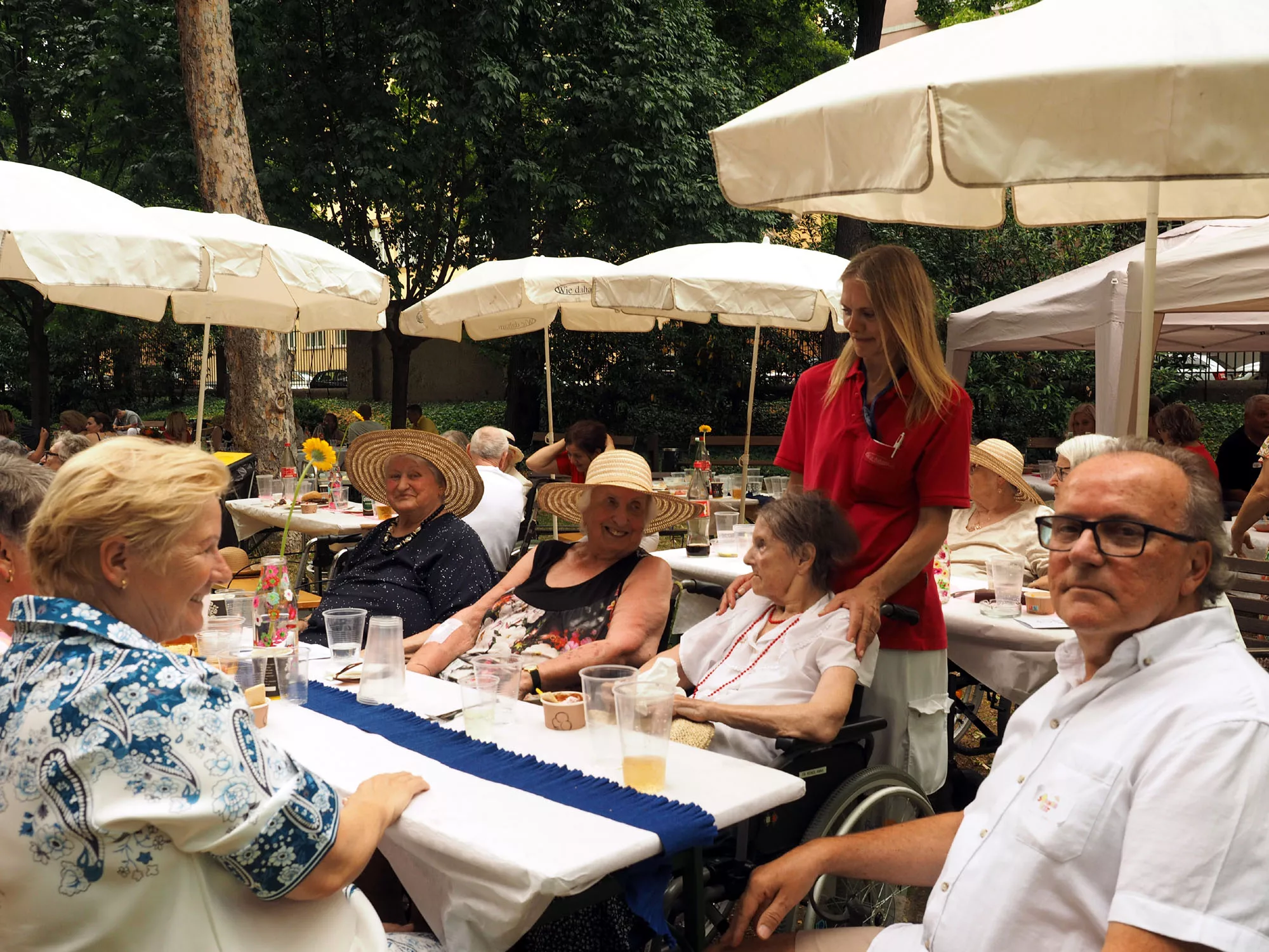Ein Sommerfest wie man es sich nicht besser vorstellen kann, ging am 26. Juni im wahrsten Sinne des Wortes über die Bühne. Nach feierlicher Eröffnung und Begrüßung der Ehrengäste, unter anderem Frau Bezirksvorsteherin Christine Dubravac-Widholm, sowie die Präsidentin der Wiener Arbeiterkammer, Frau Renate Anderl, startete das Animationsteam mit dem Showprogramm. Die Festbesucher durften sich über eine Persiflage auf Reinhard Fendrichs „Strada del Sole“ amüsieren, gefolgt von einer Abwandlung von Frank Sinatras „New York, New York“ als Homage an Wien. Die Darbietungen des Animationsteams mit Frontfrau Pia überzeugten das Publikum mit semiprofessioneller Qualität, dass sogar die Frage aufgekommen ist, ob man des Ensemble für private Feiern buchen kann.